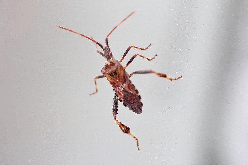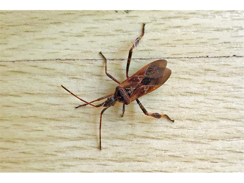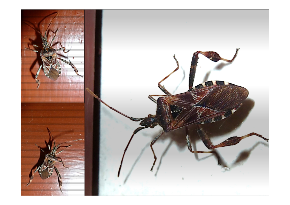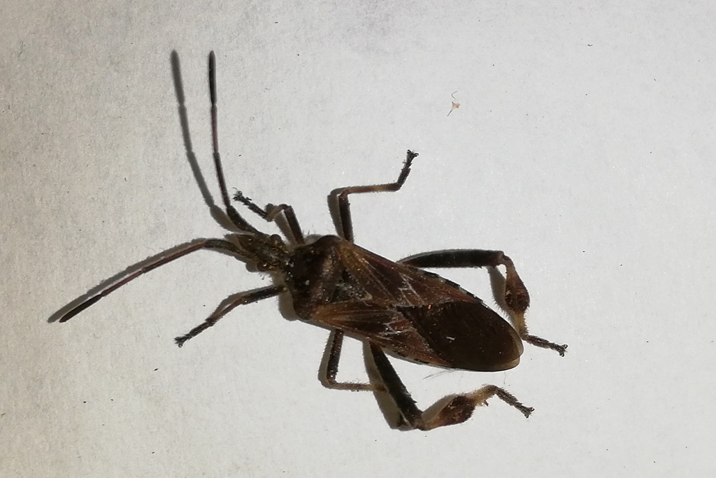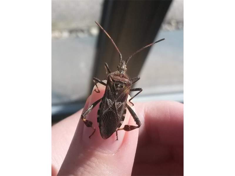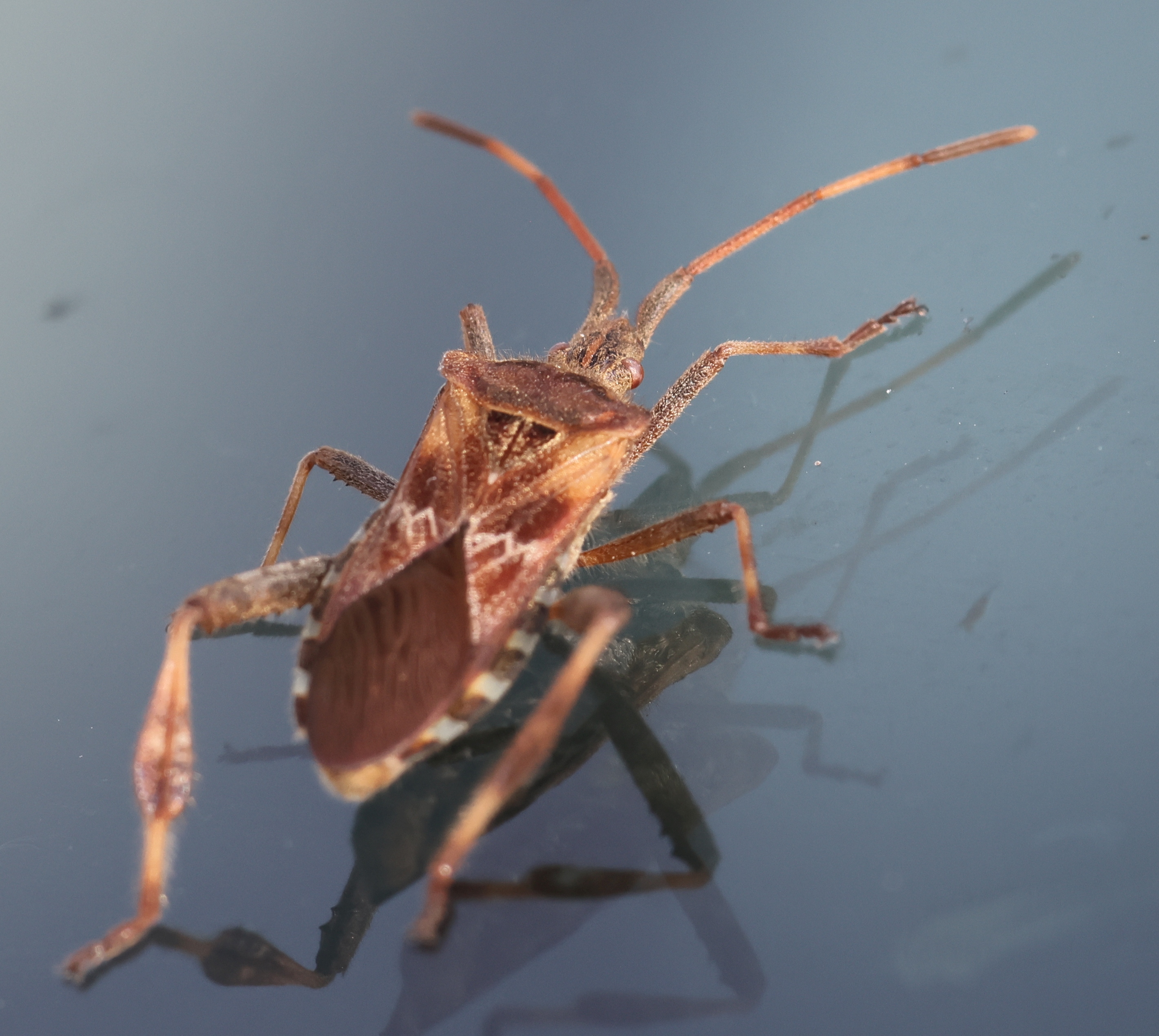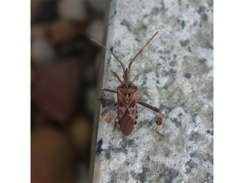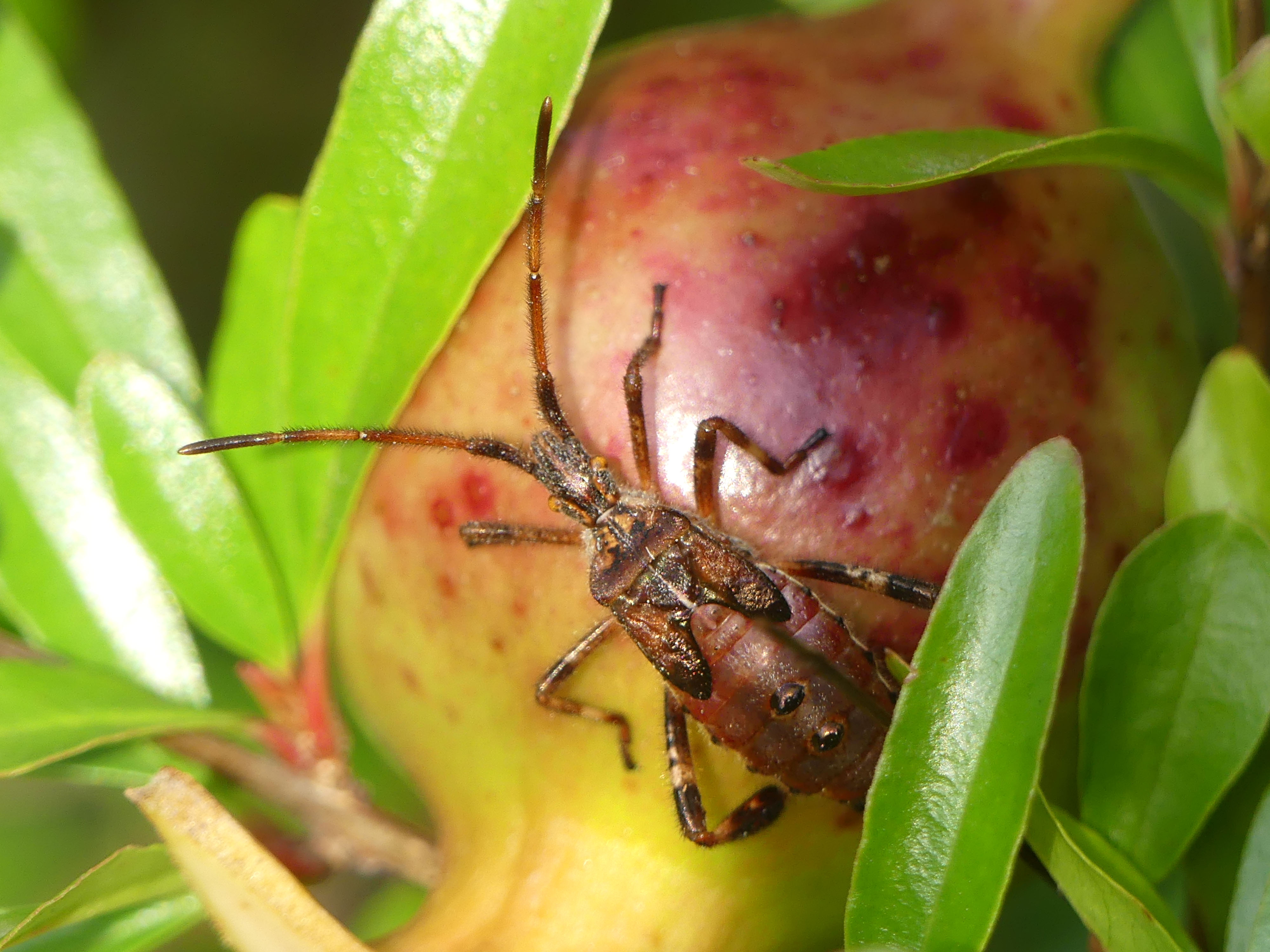 Larve der Amerikanischen Zapfenwanze ( Leptoglossus occidentalis). Deutschland, Baden-Württemberg, Baden-Baden, einzeln stehende Kiefer nord-nord-westlich Ortsteil Sandweier, 30.06.2012 (© Michael Münch)( Bild vergrößern)