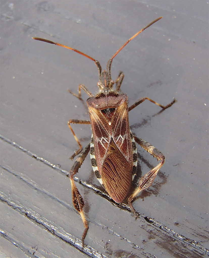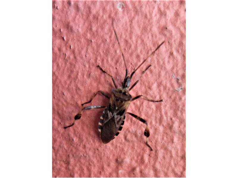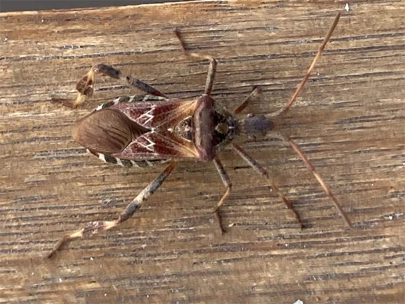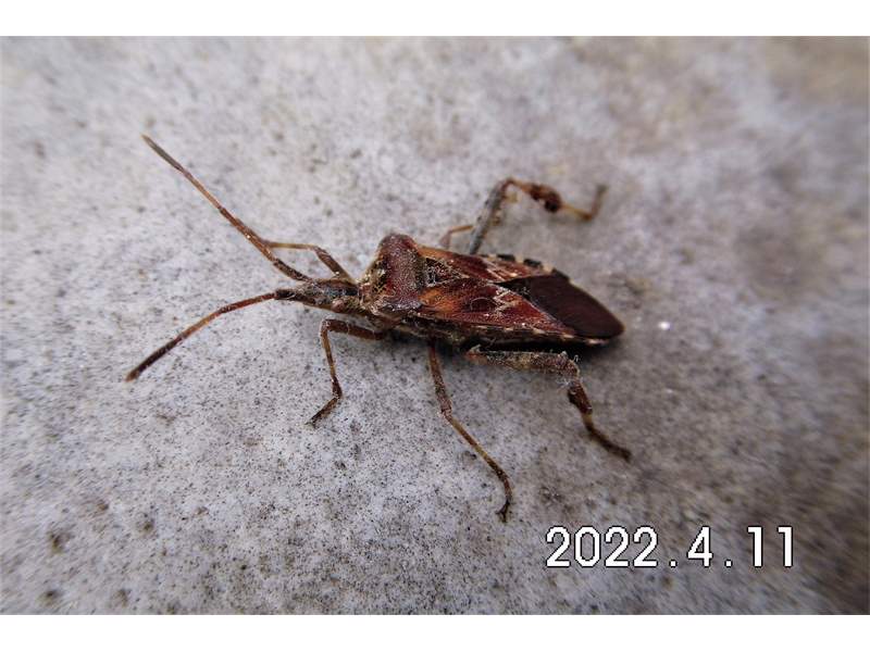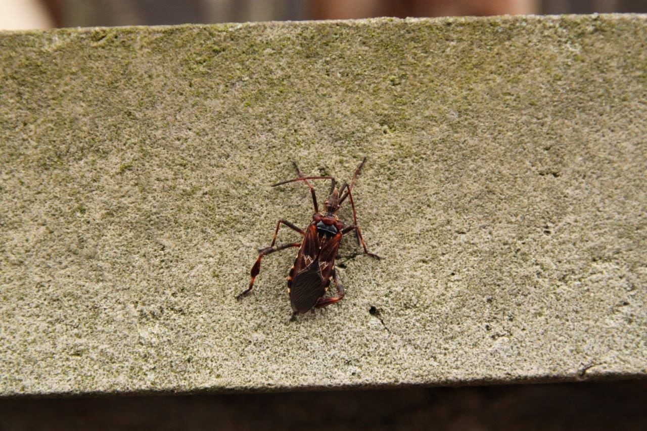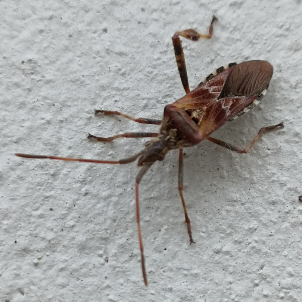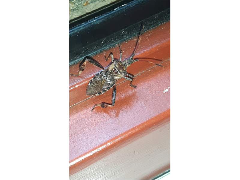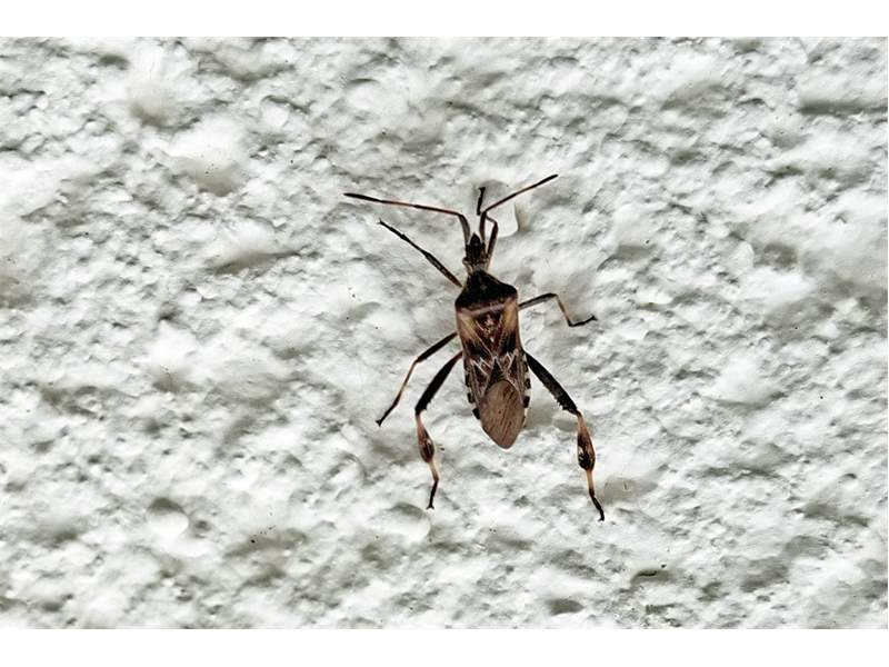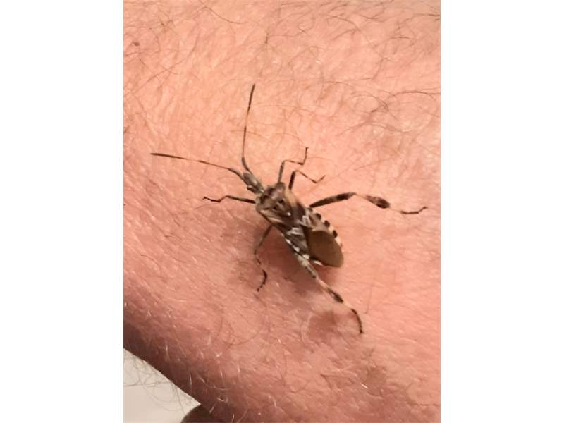 Larve der Amerikanischen Zapfenwanze ( Leptoglossus occidentalis). Deutschland, Baden-Württemberg, Baden-Baden, einzeln stehende Kiefer nord-nord-westlich Ortsteil Sandweier, 30.06.2012 (© Michael Münch)( Bild vergrößern)