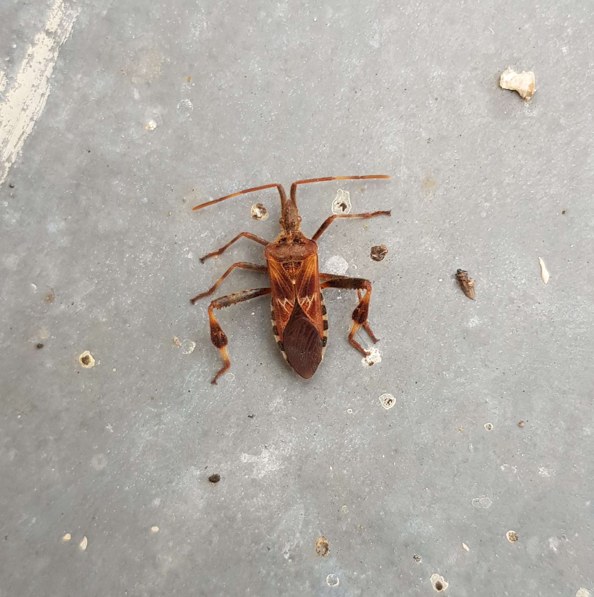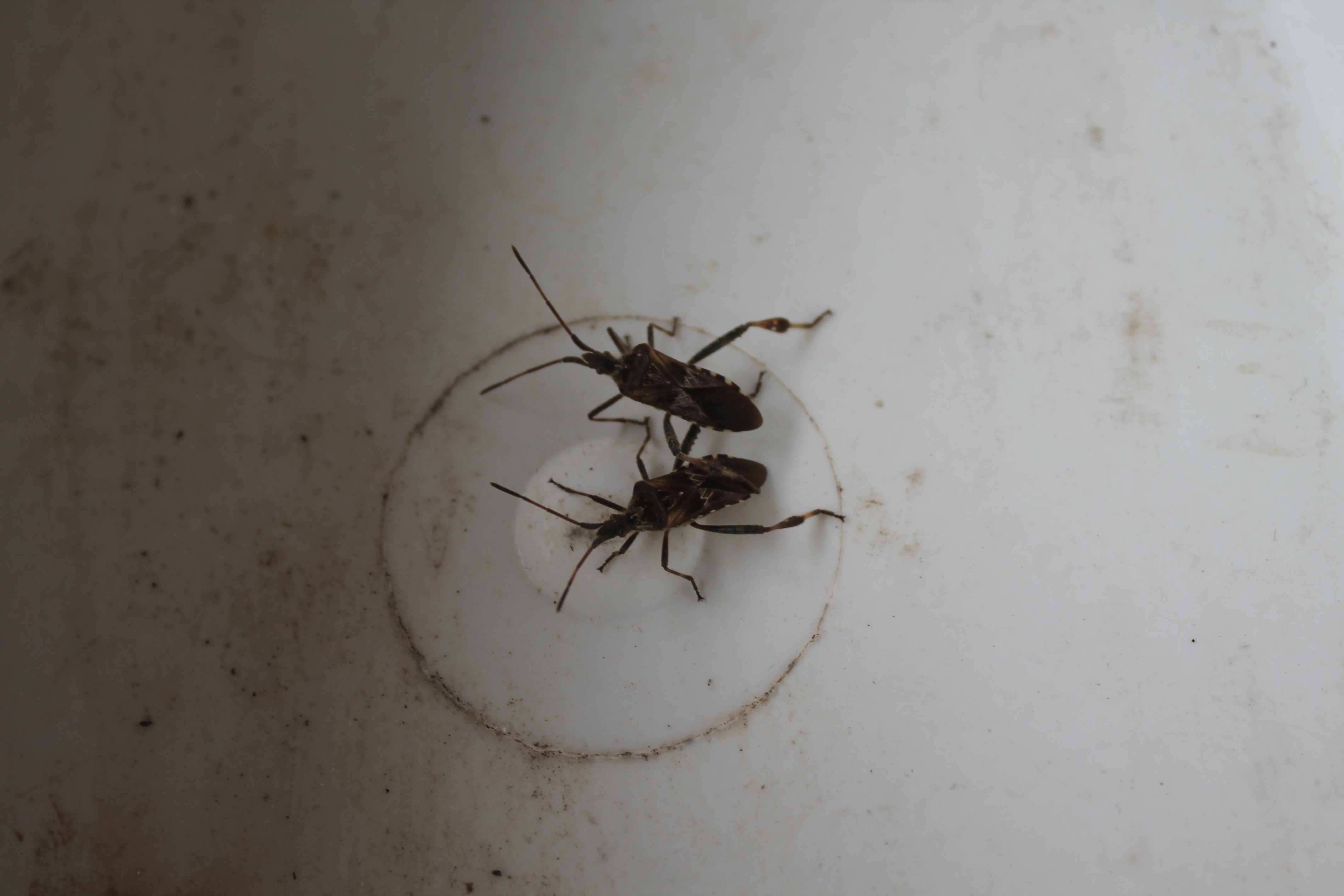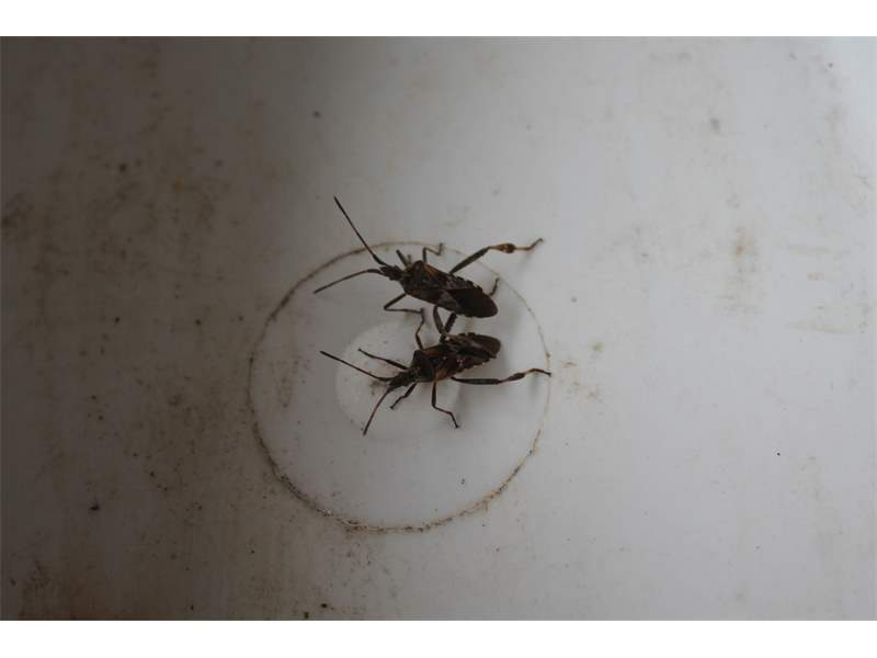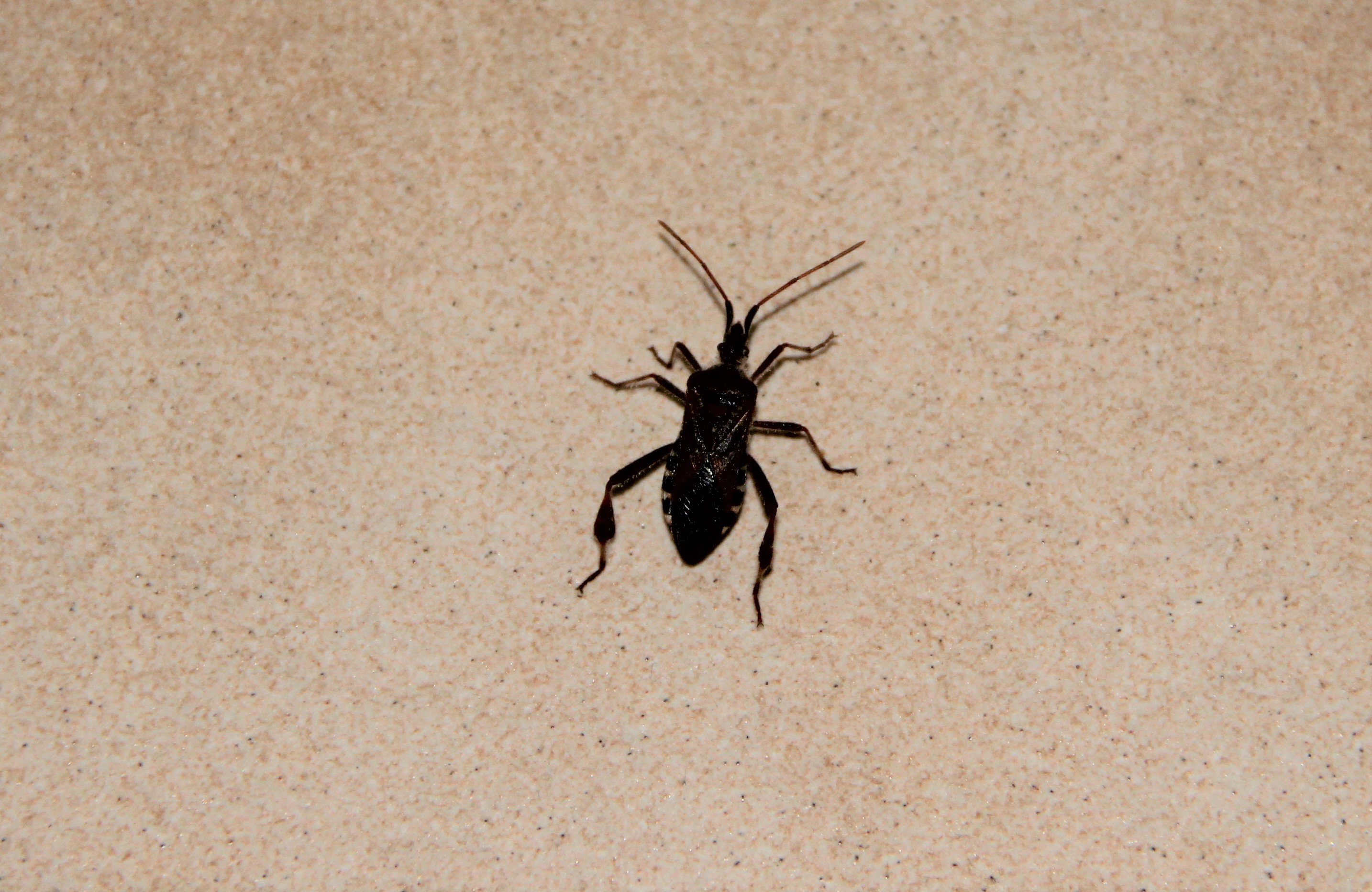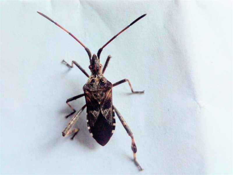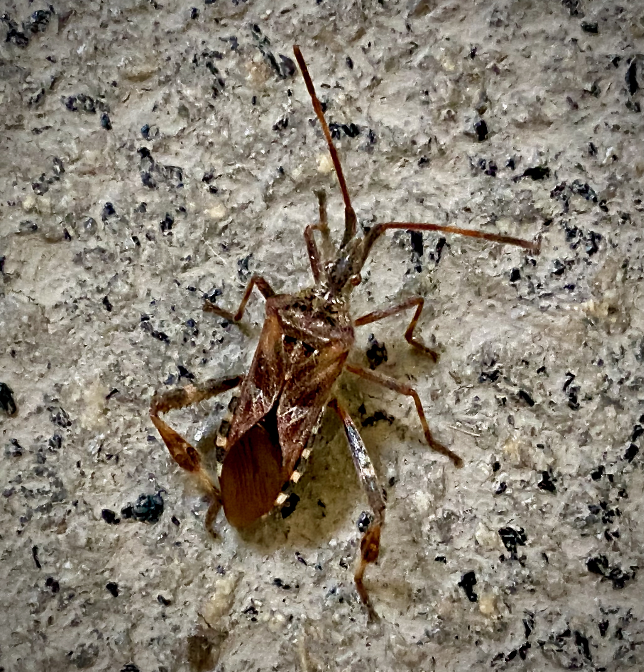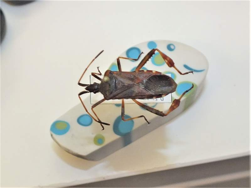 Larve der Amerikanischen Zapfenwanze ( Leptoglossus occidentalis). Deutschland, Baden-Württemberg, Baden-Baden, einzeln stehende Kiefer nord-nord-westlich Ortsteil Sandweier, 30.06.2012 (© Michael Münch)( Bild vergrößern)