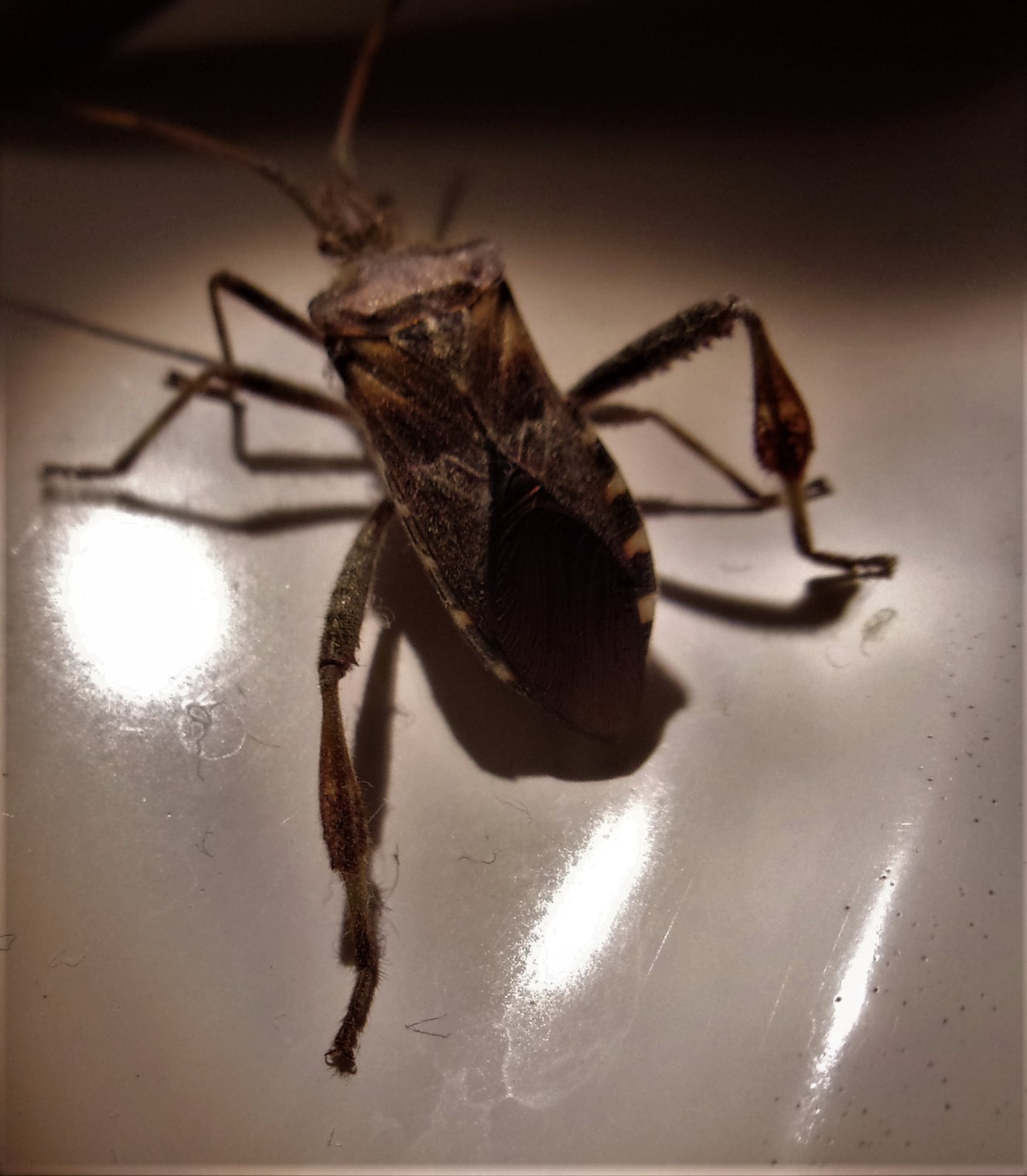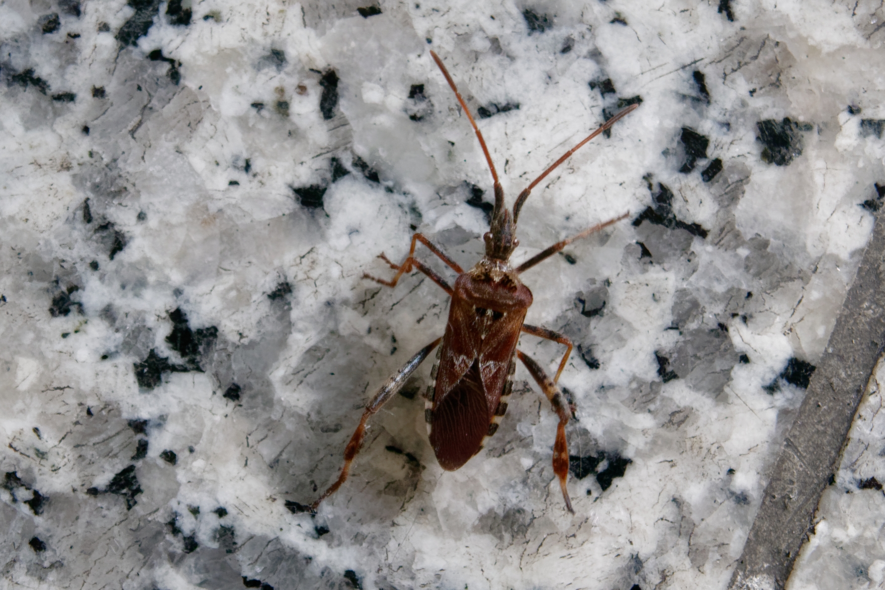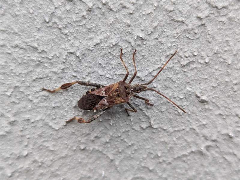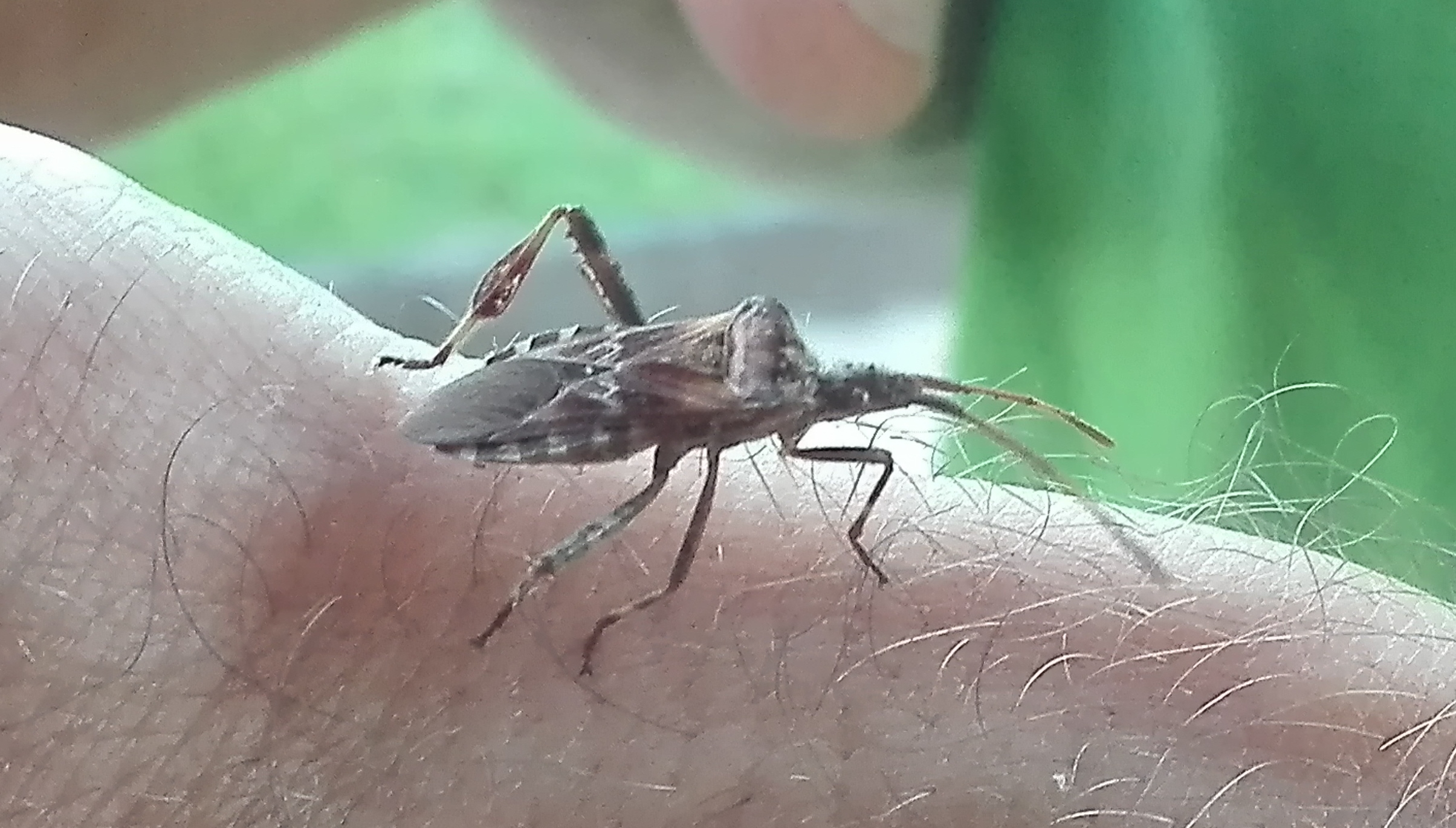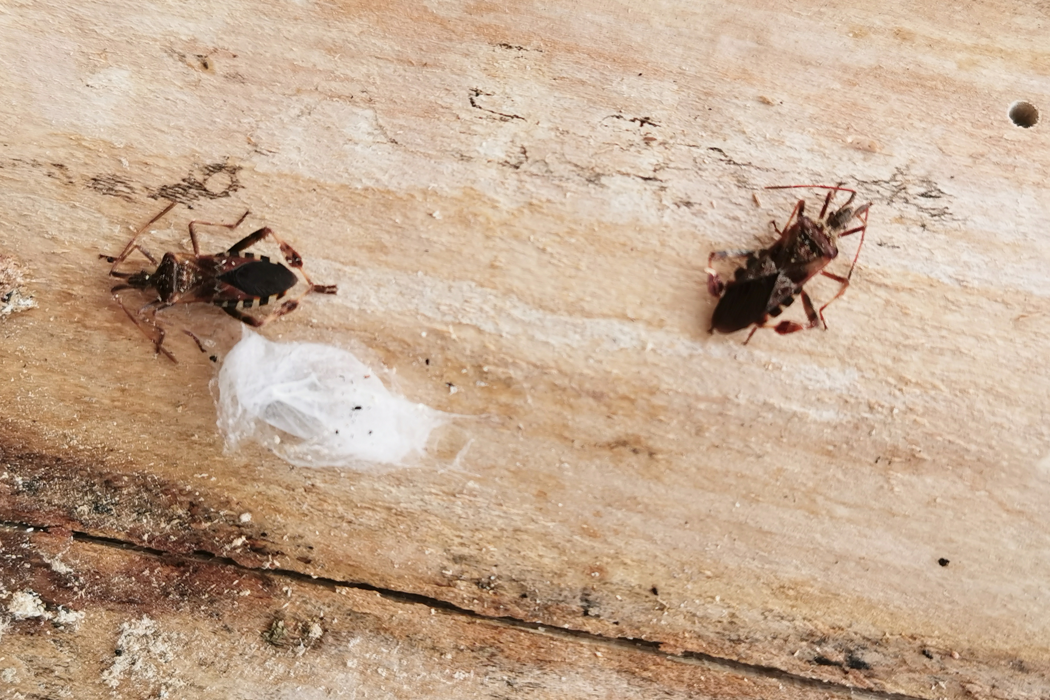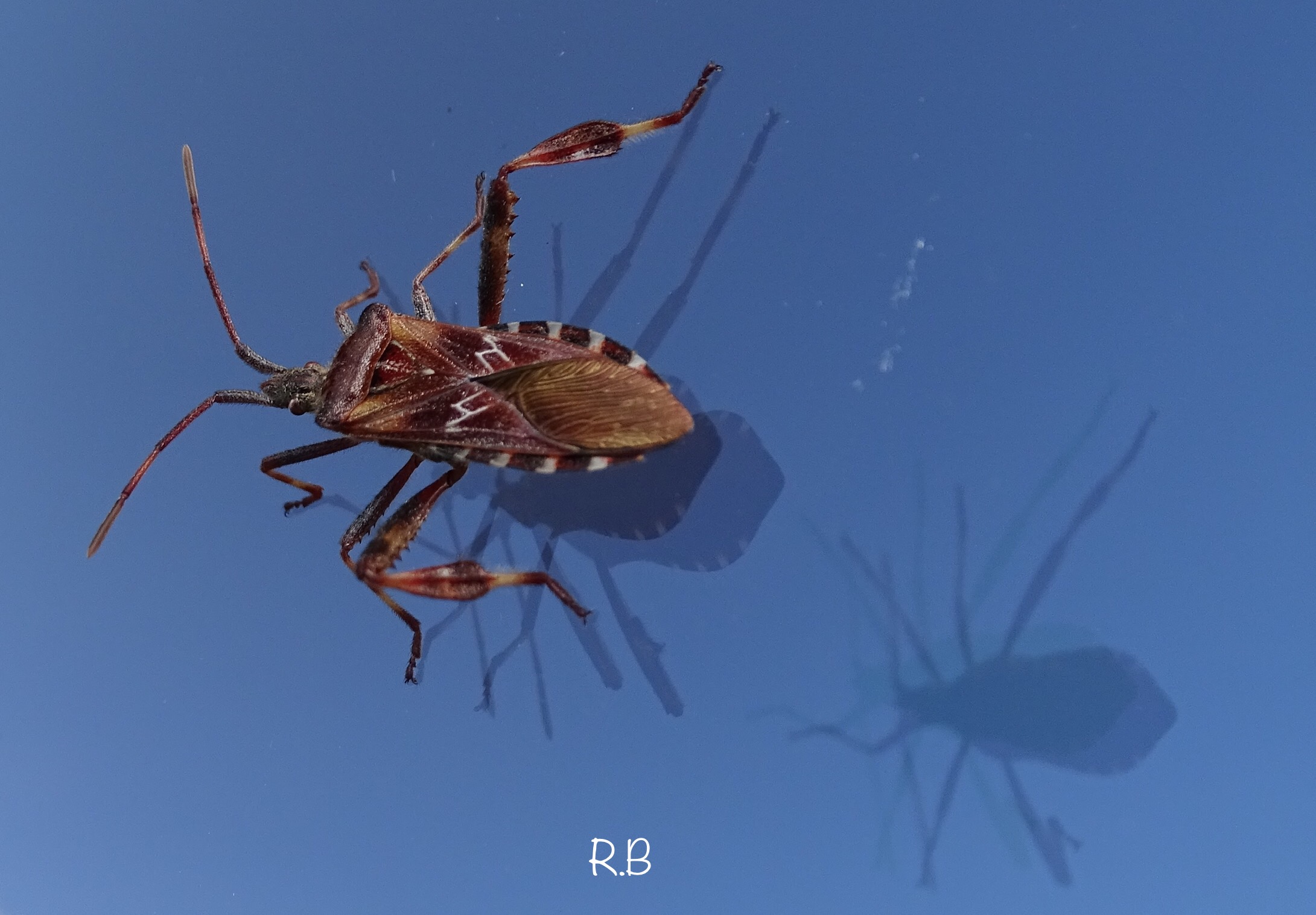 Larve der Amerikanischen Zapfenwanze ( Leptoglossus occidentalis). Deutschland, Baden-Württemberg, Baden-Baden, einzeln stehende Kiefer nord-nord-westlich Ortsteil Sandweier, 30.06.2012 (© Michael Münch)( Bild vergrößern)