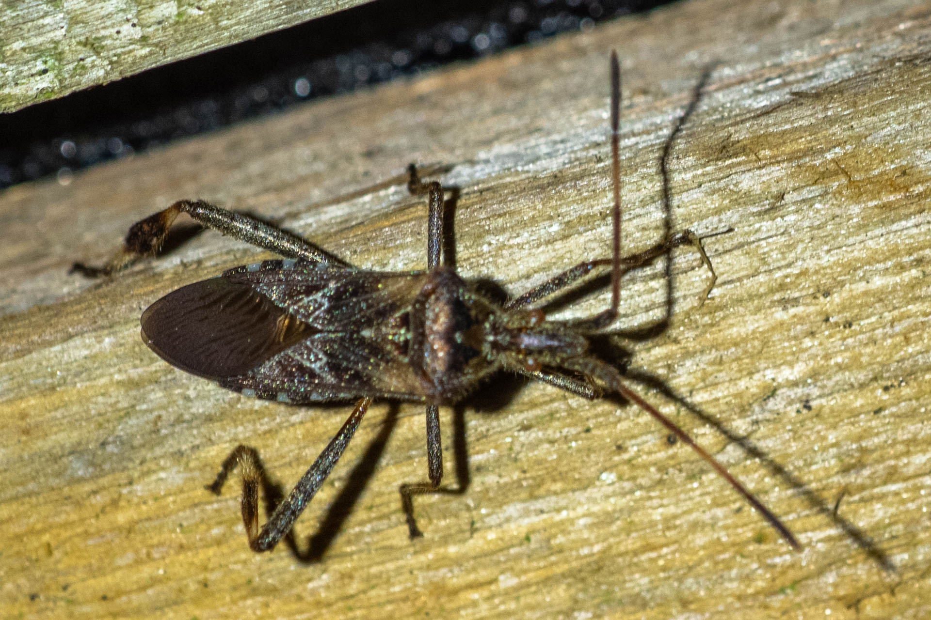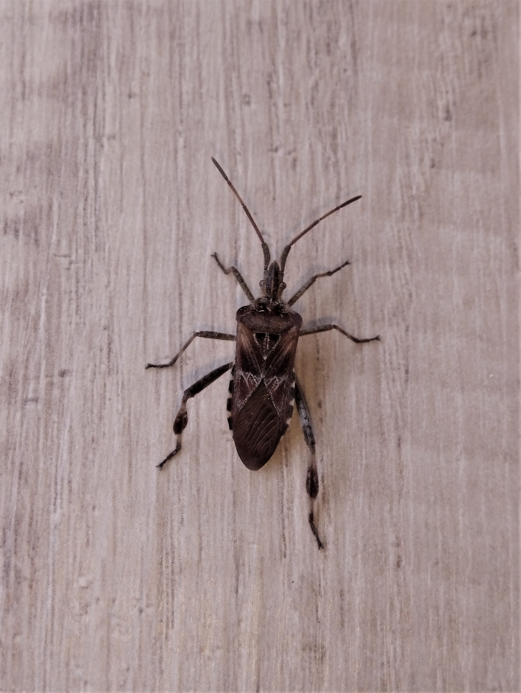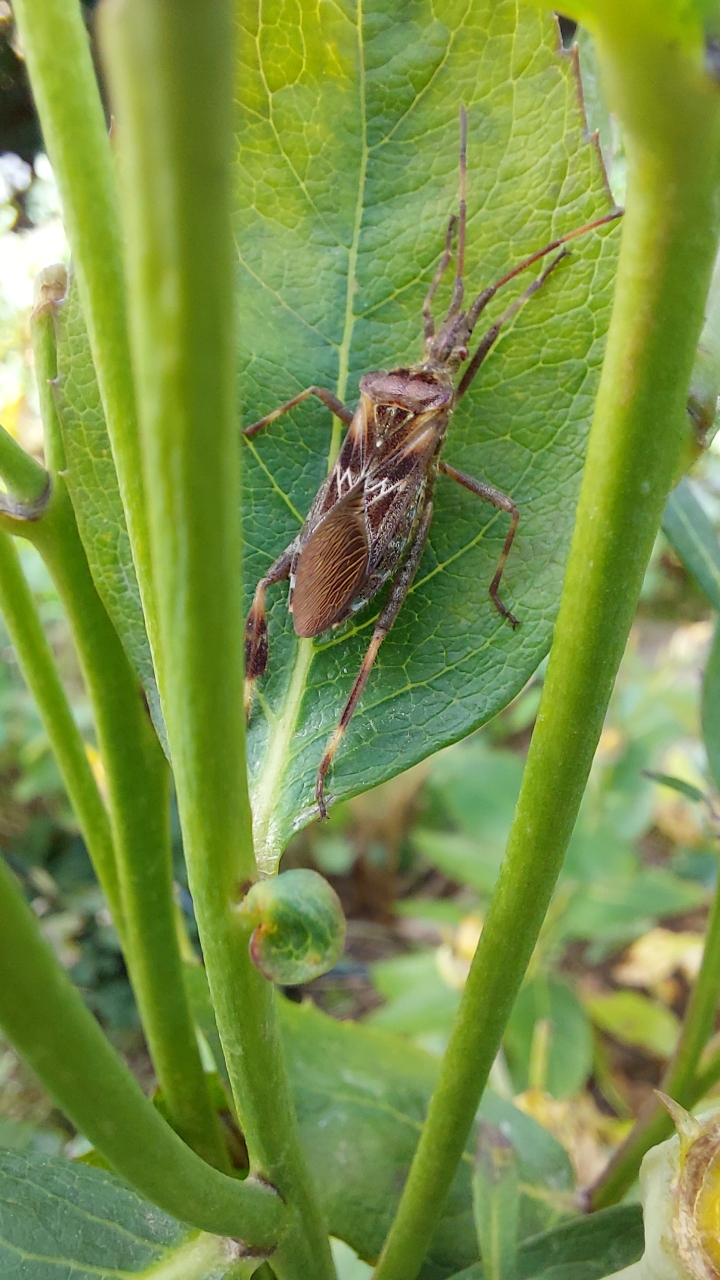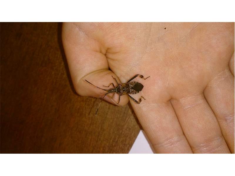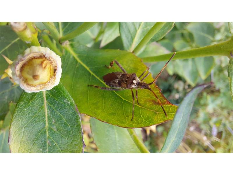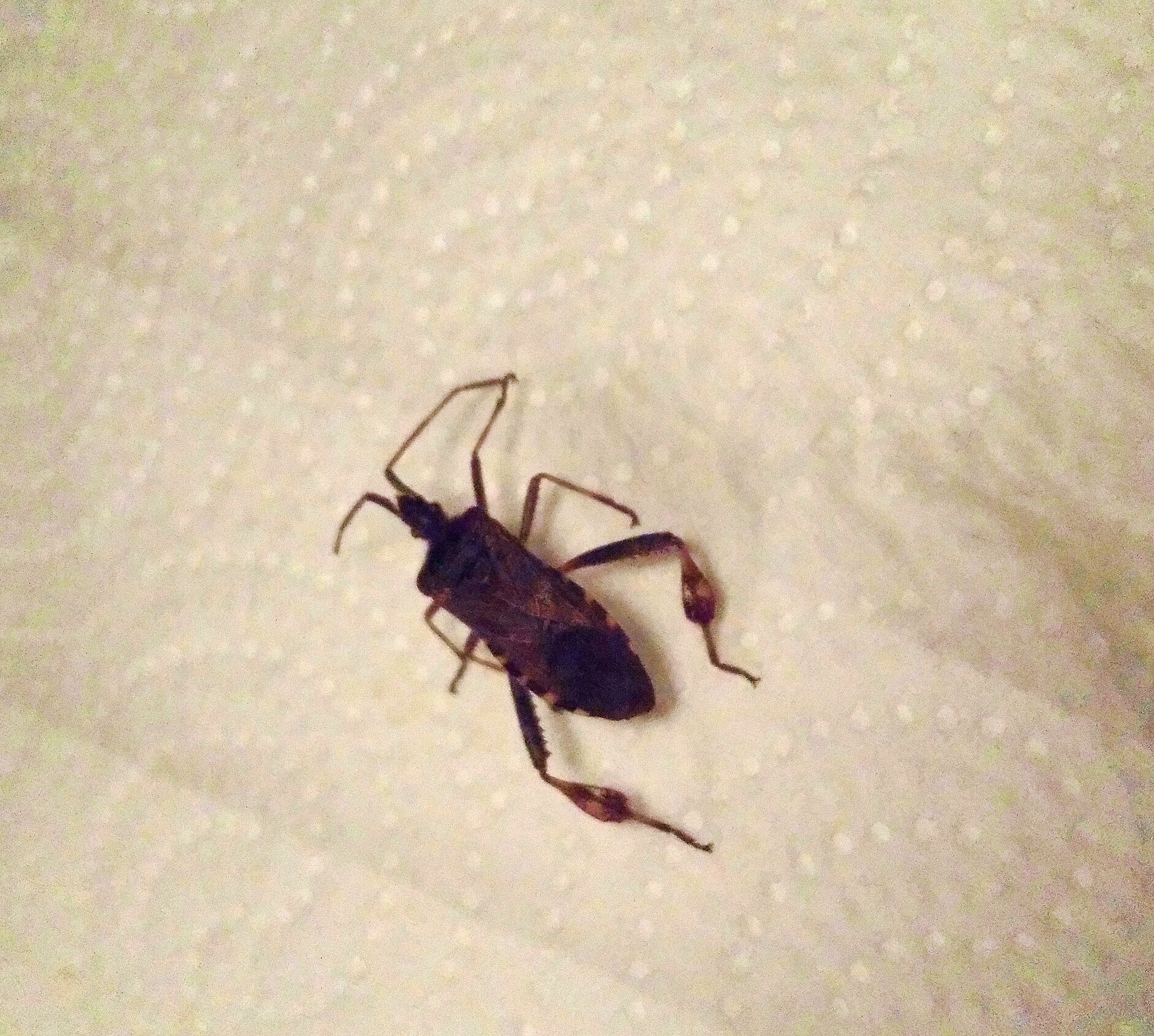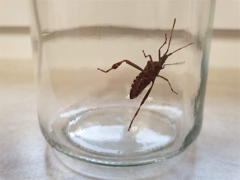 Larve der Amerikanischen Zapfenwanze ( Leptoglossus occidentalis). Deutschland, Baden-Württemberg, Baden-Baden, einzeln stehende Kiefer nord-nord-westlich Ortsteil Sandweier, 30.06.2012 (© Michael Münch)( Bild vergrößern)