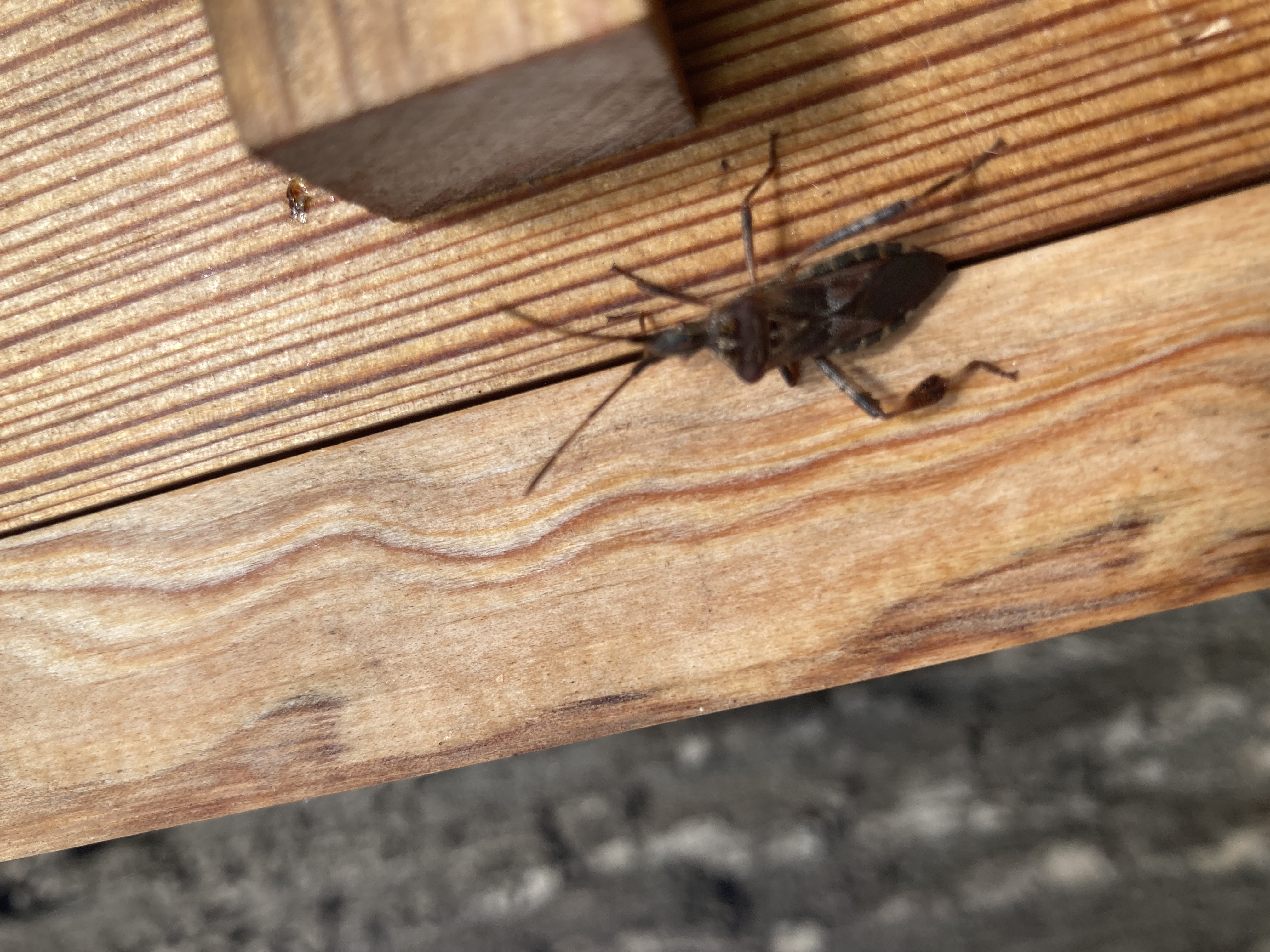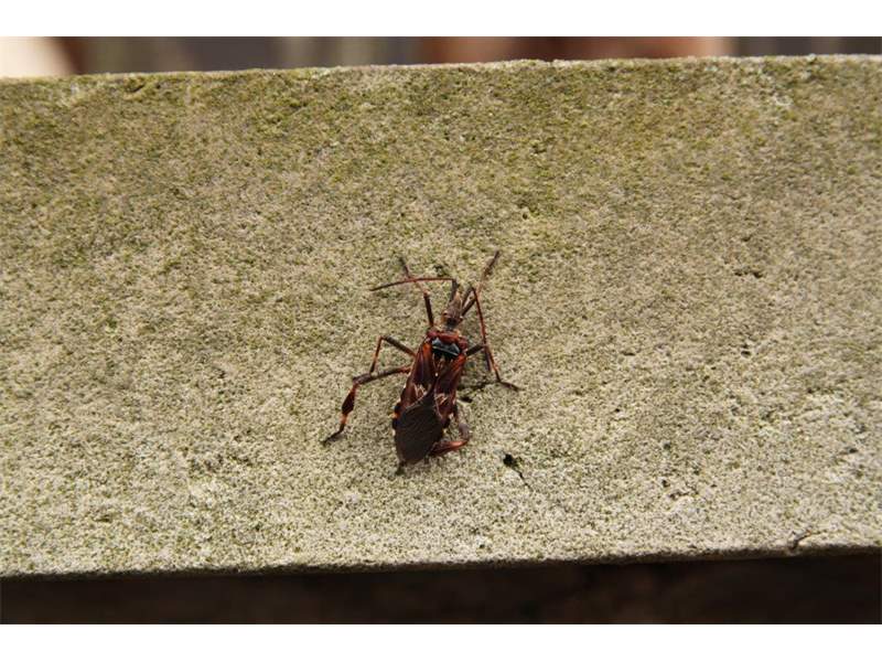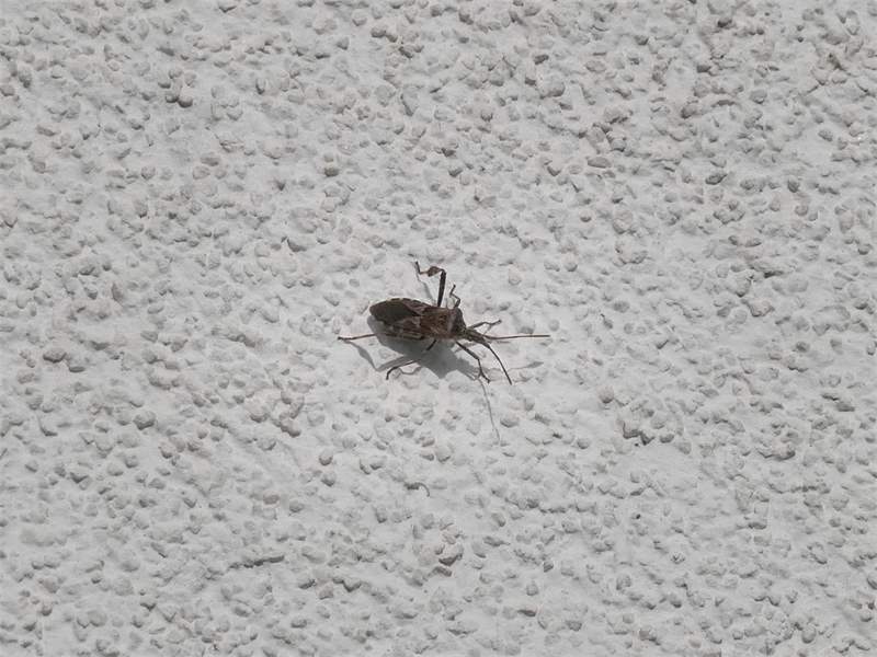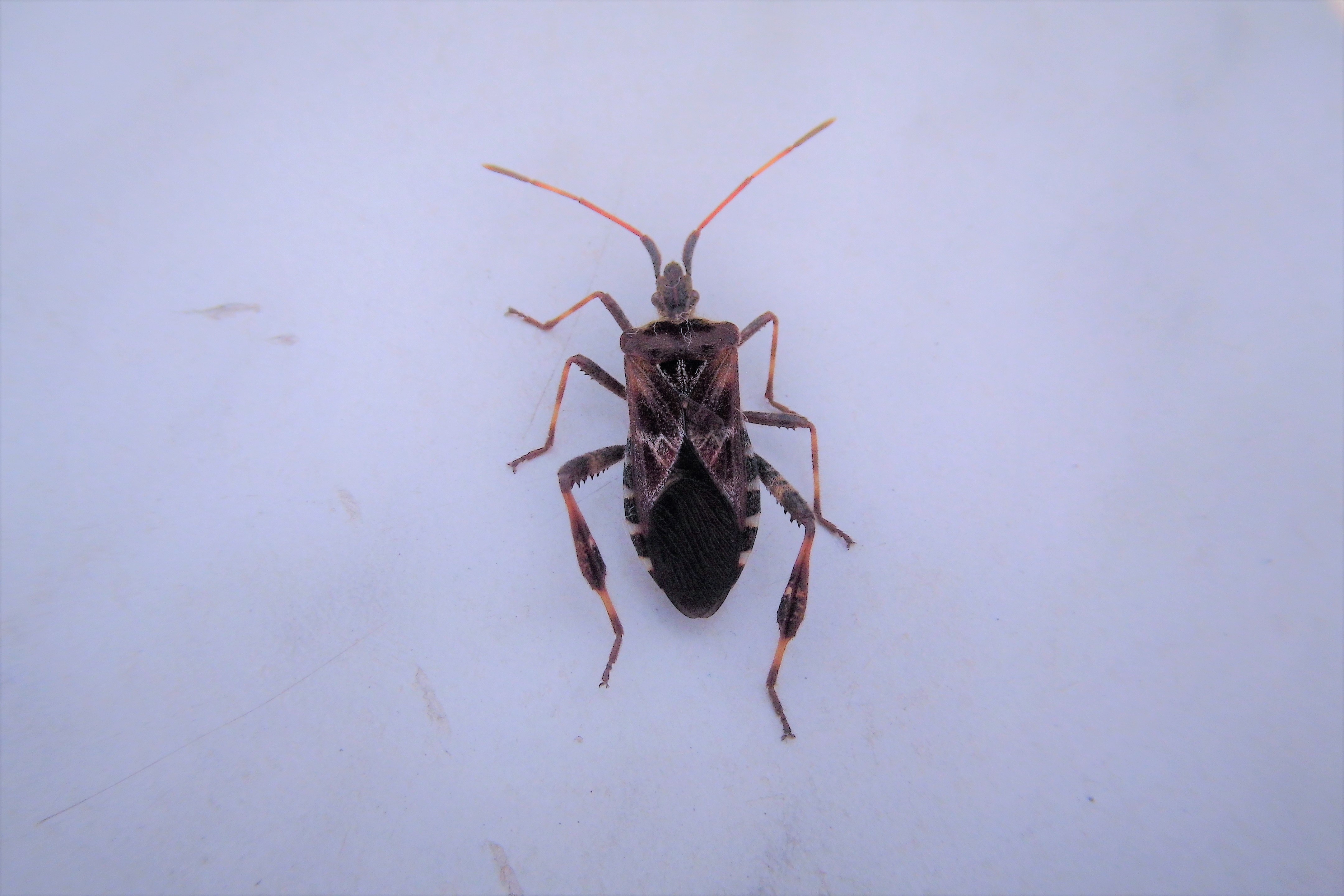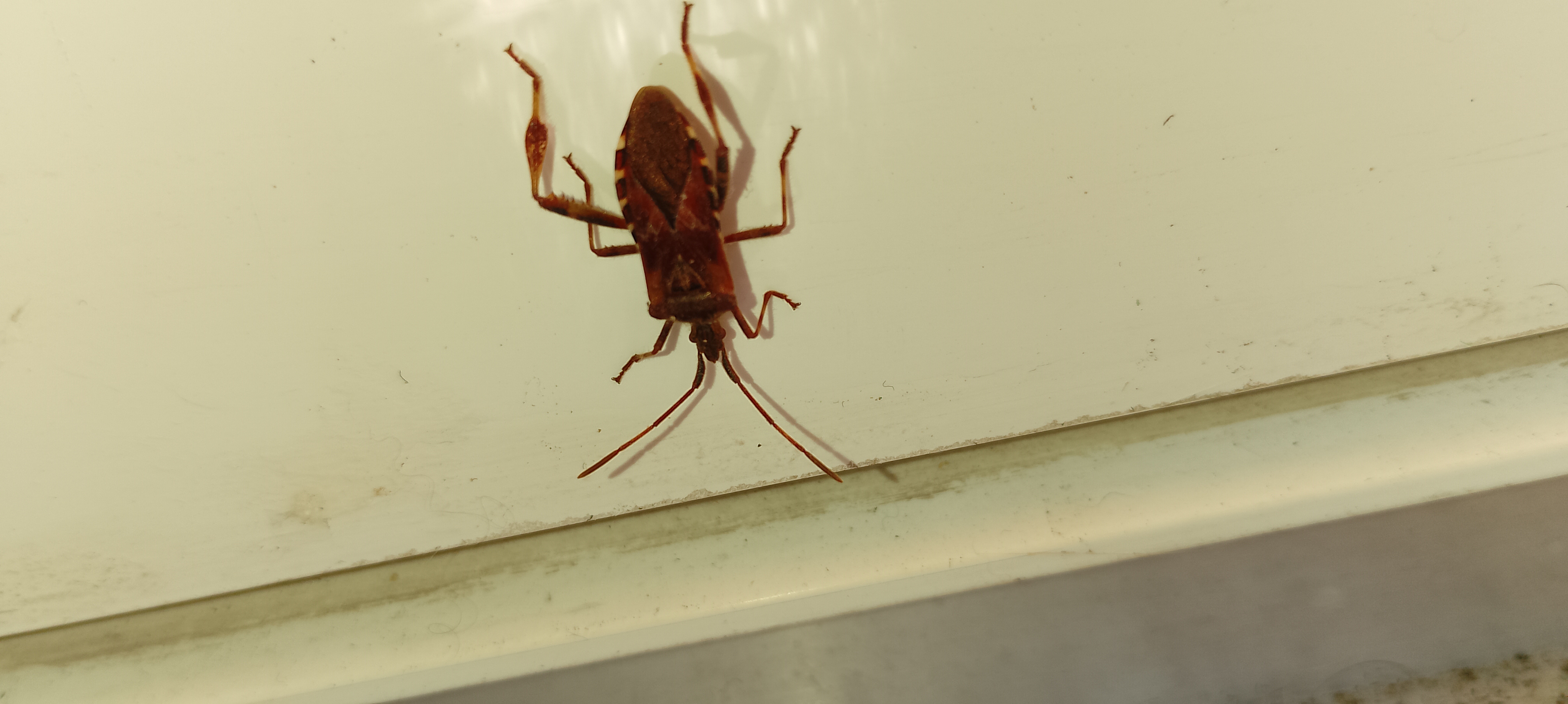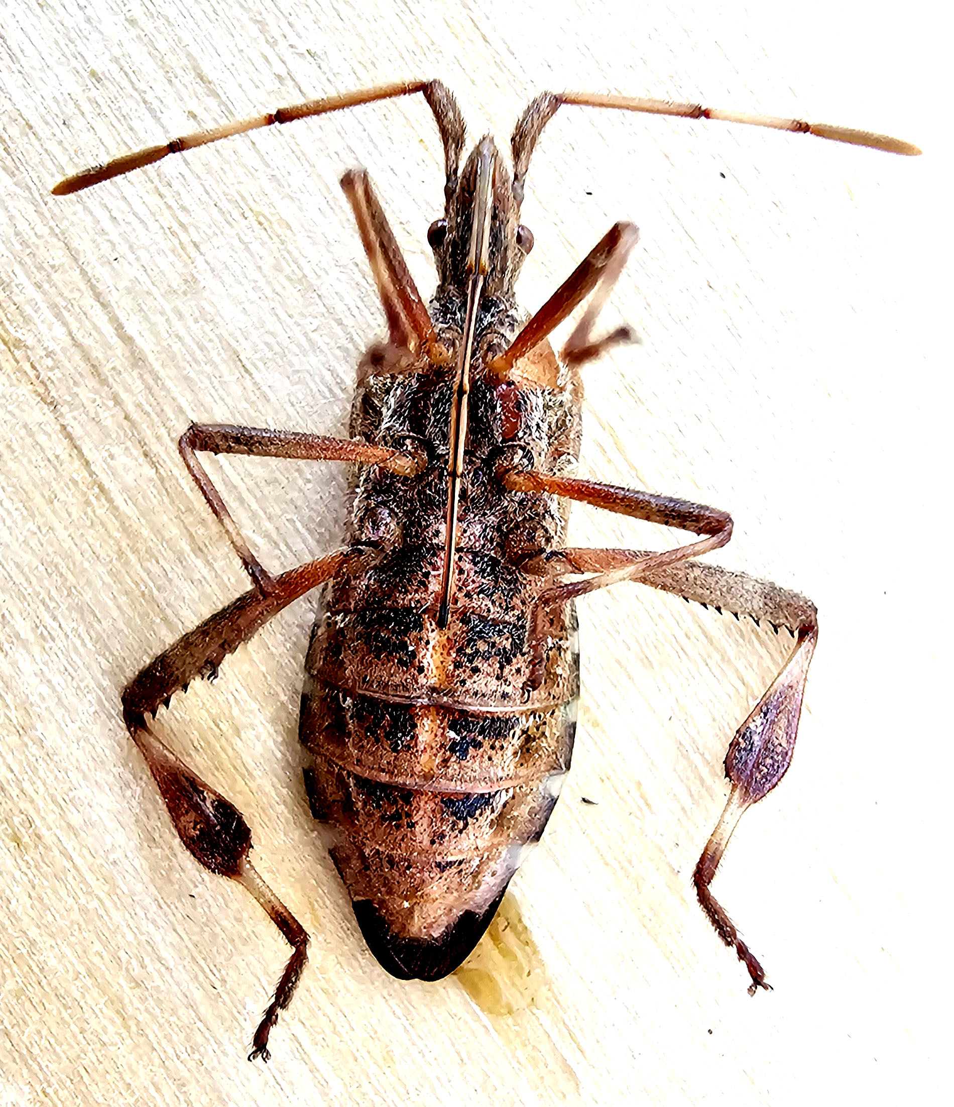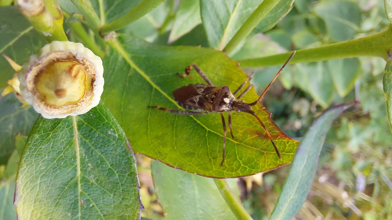 Larve der Amerikanischen Zapfenwanze ( Leptoglossus occidentalis). Deutschland, Baden-Württemberg, Baden-Baden, einzeln stehende Kiefer nord-nord-westlich Ortsteil Sandweier, 30.06.2012 (© Michael Münch)( Bild vergrößern)
