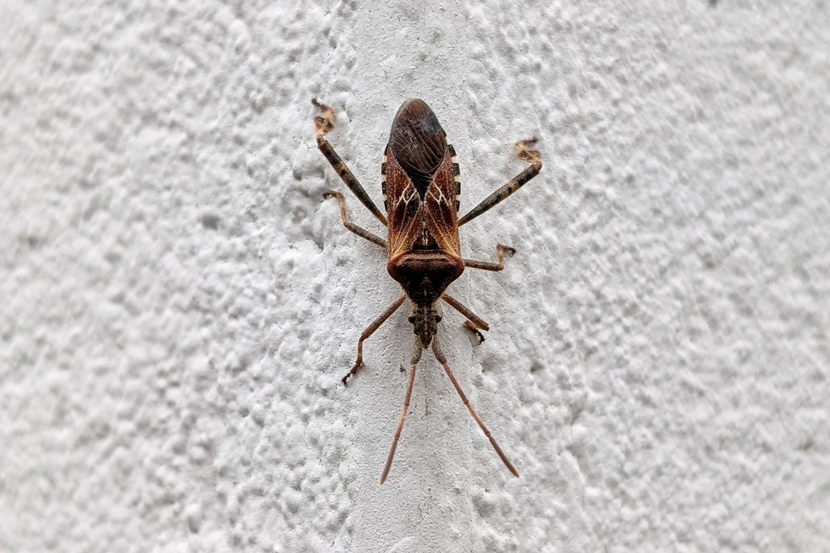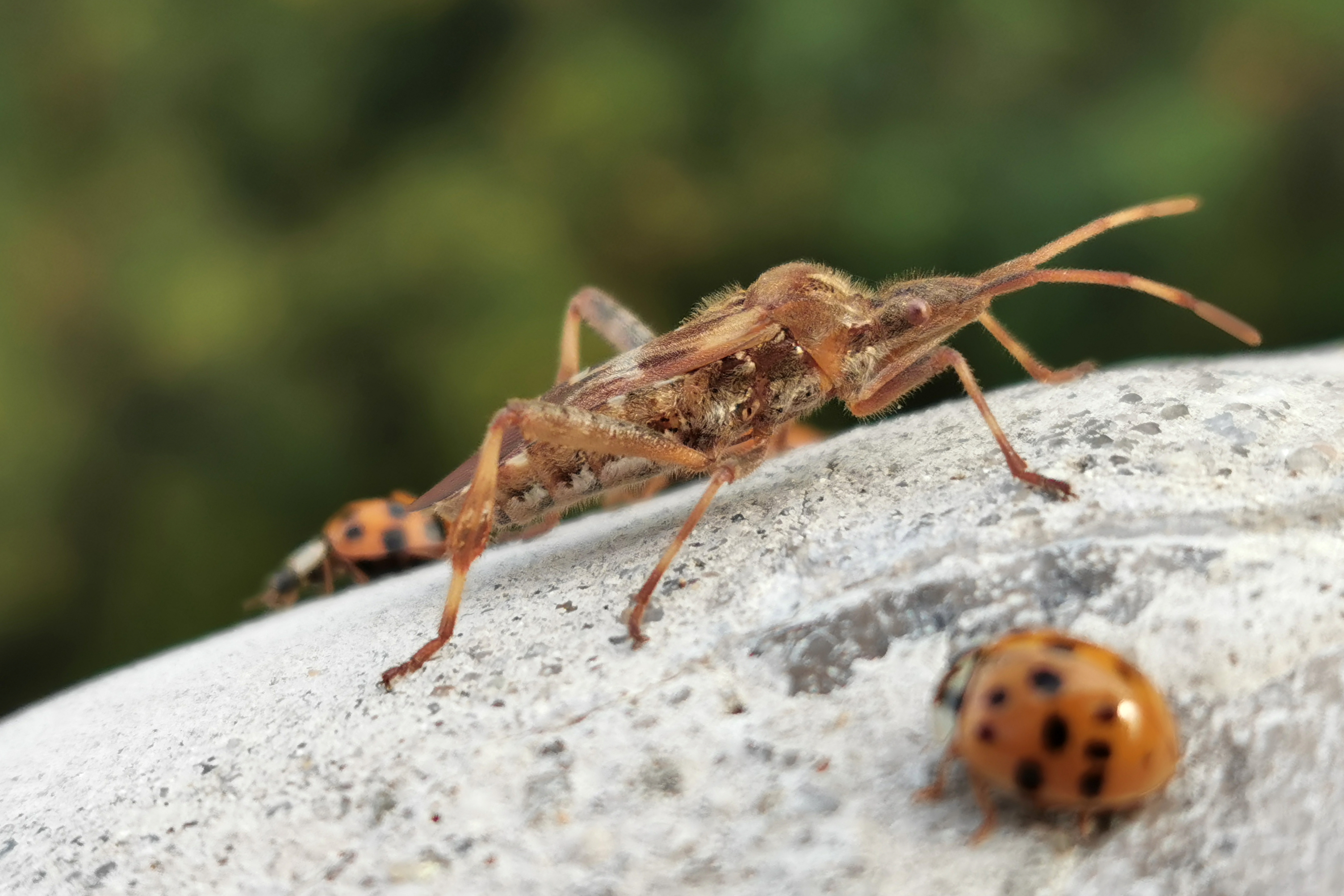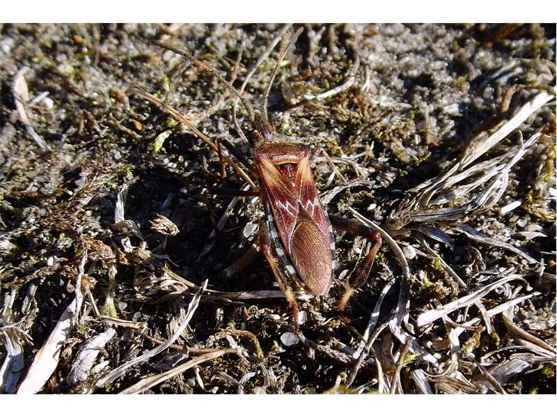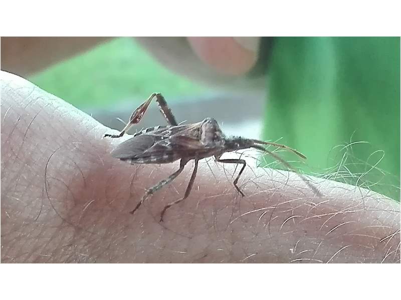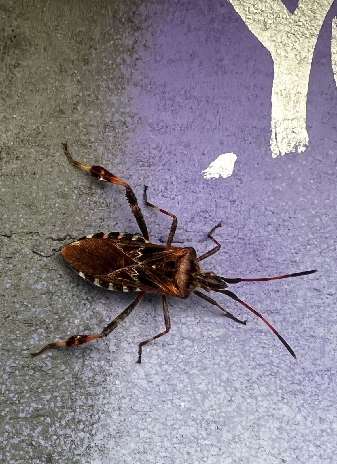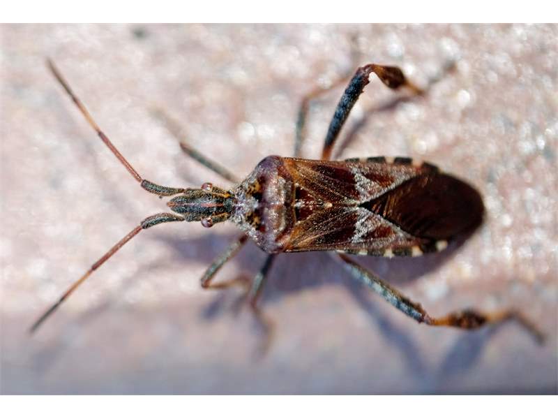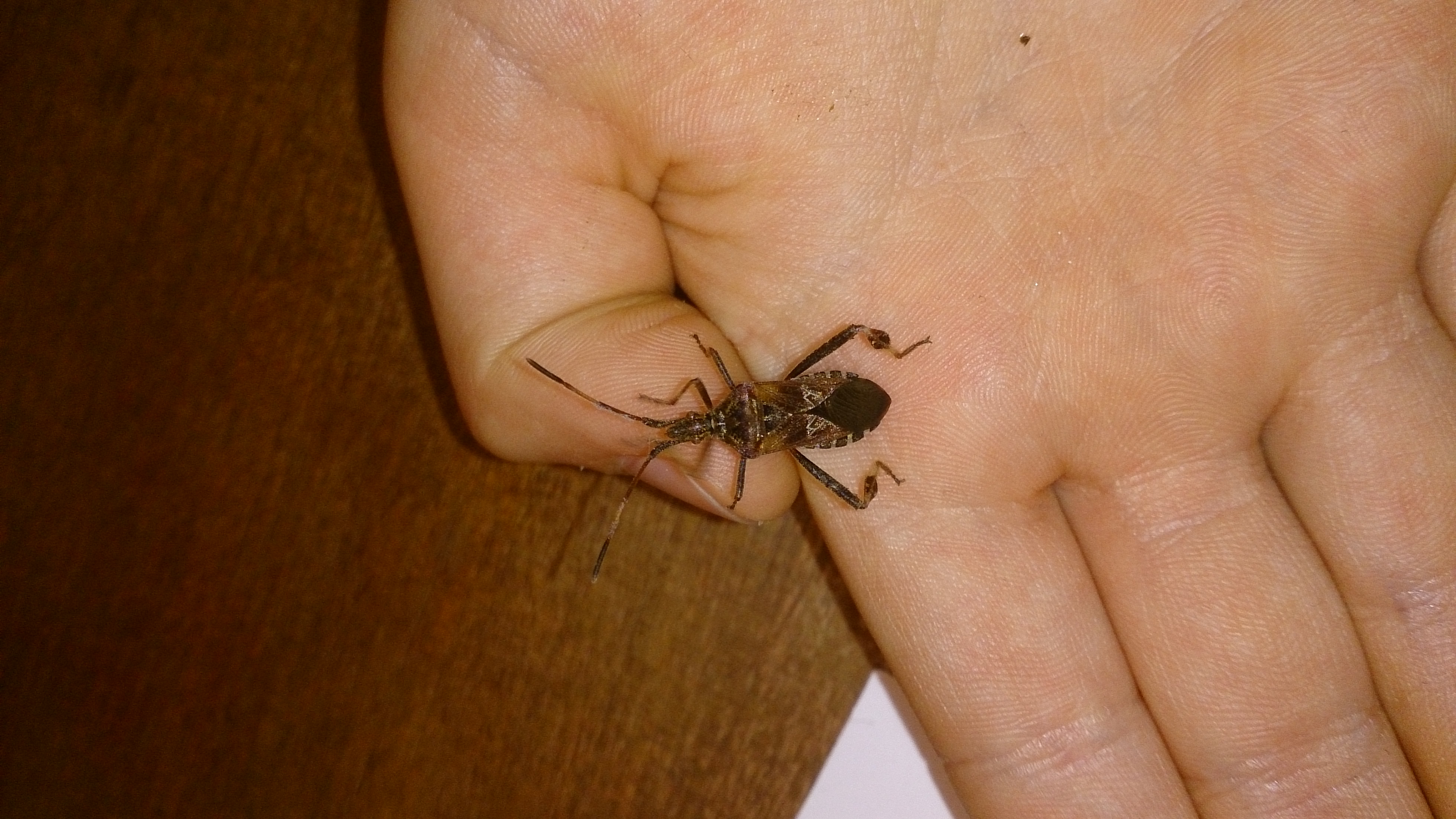 Larve der Amerikanischen Zapfenwanze ( Leptoglossus occidentalis). Deutschland, Baden-Württemberg, Baden-Baden, einzeln stehende Kiefer nord-nord-westlich Ortsteil Sandweier, 30.06.2012 (© Michael Münch)( Bild vergrößern)