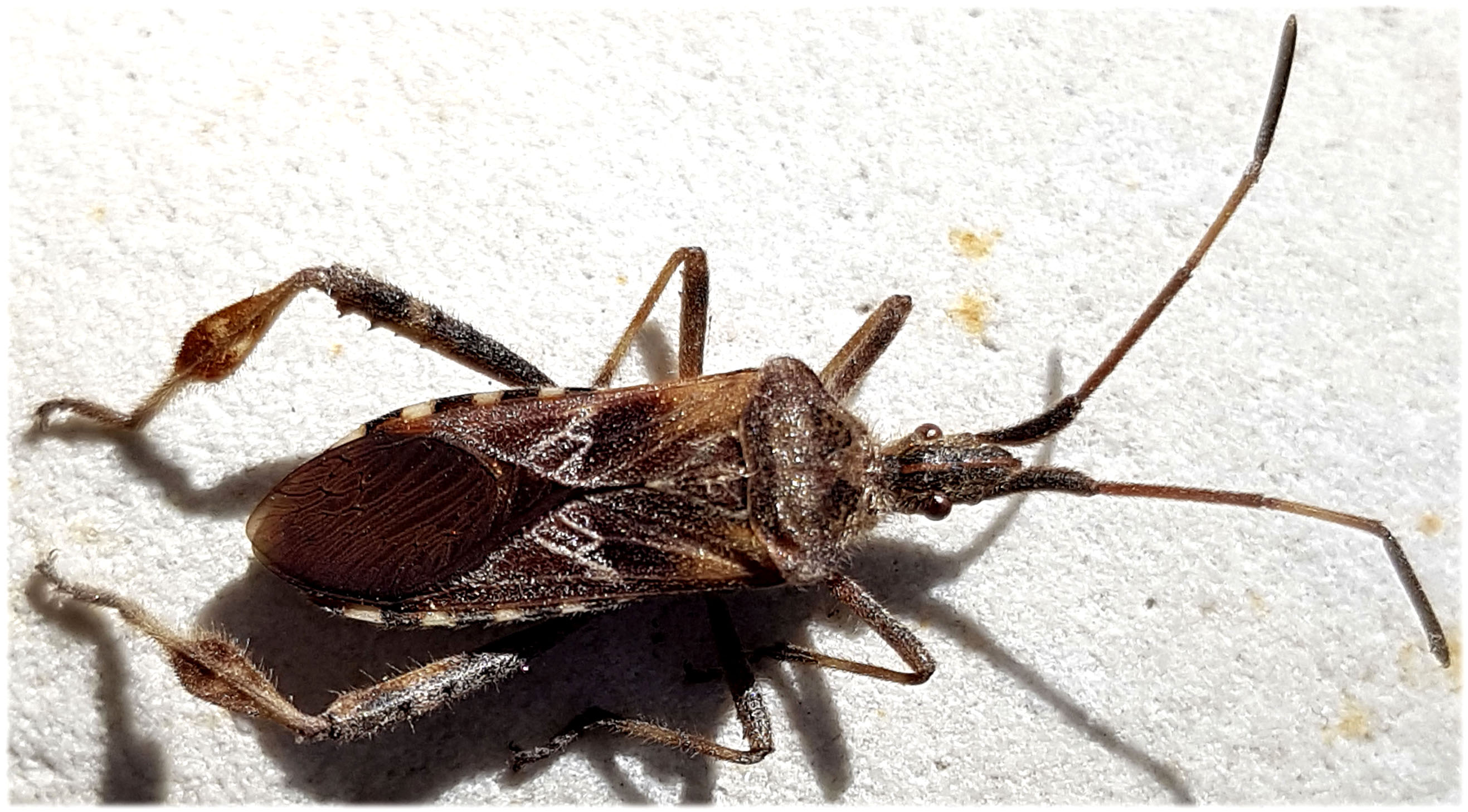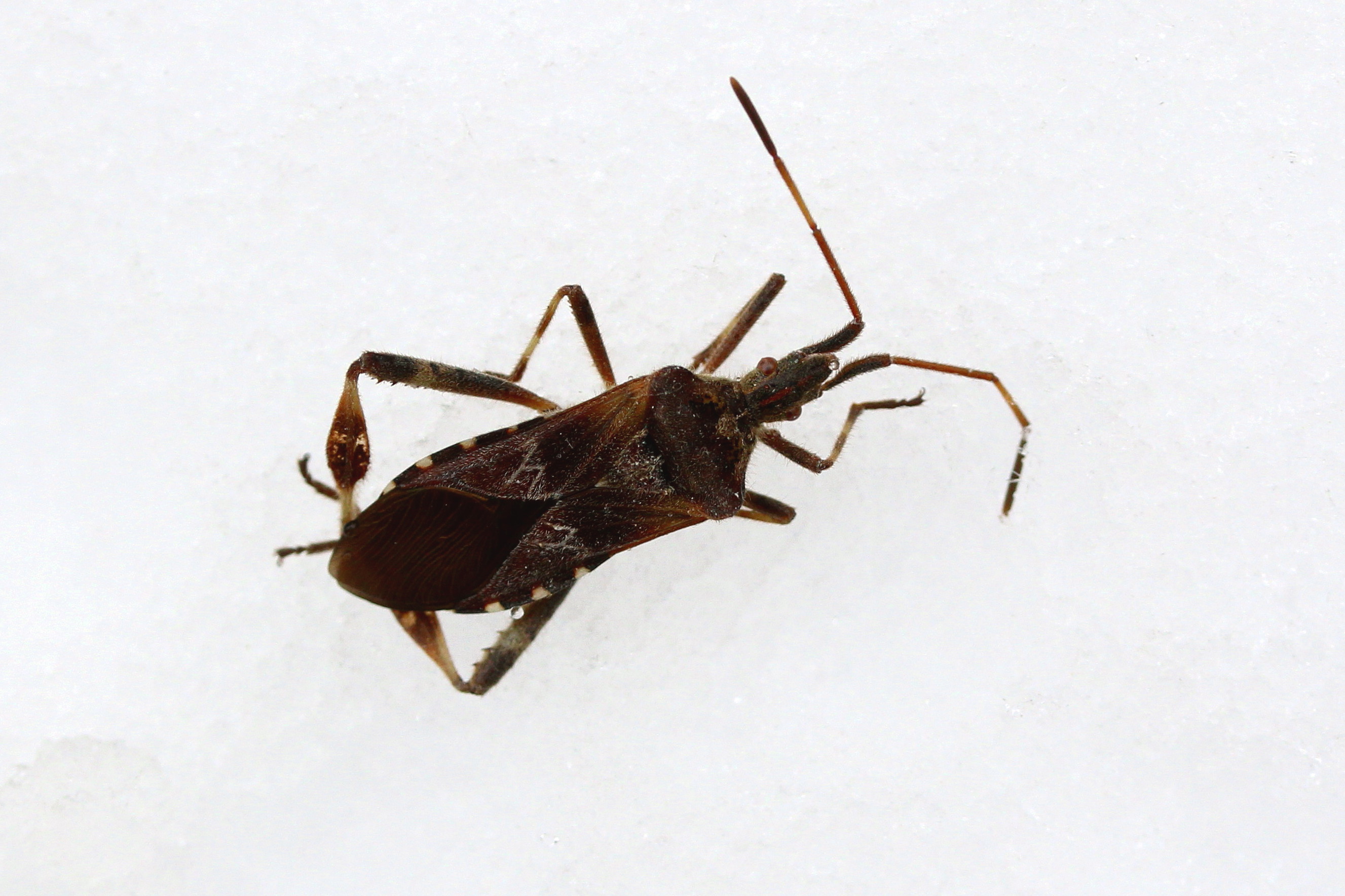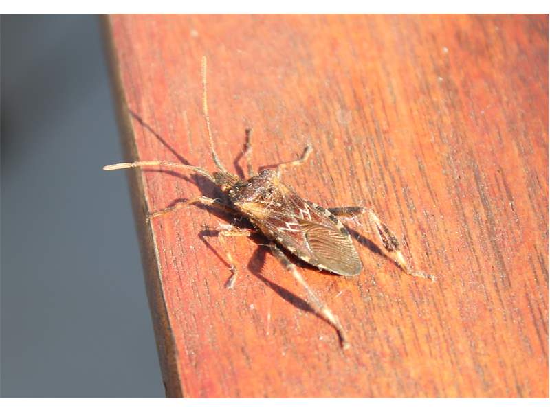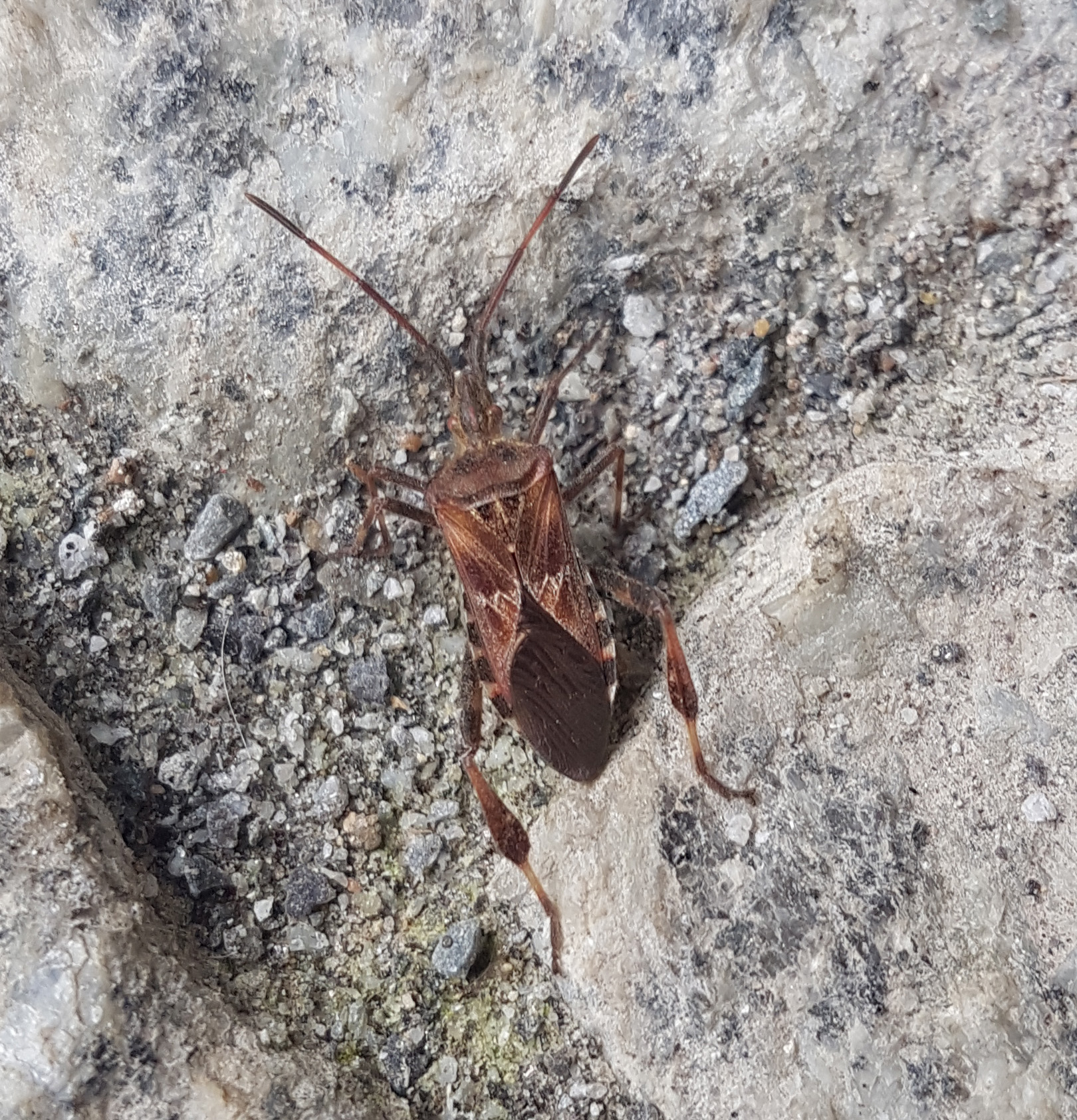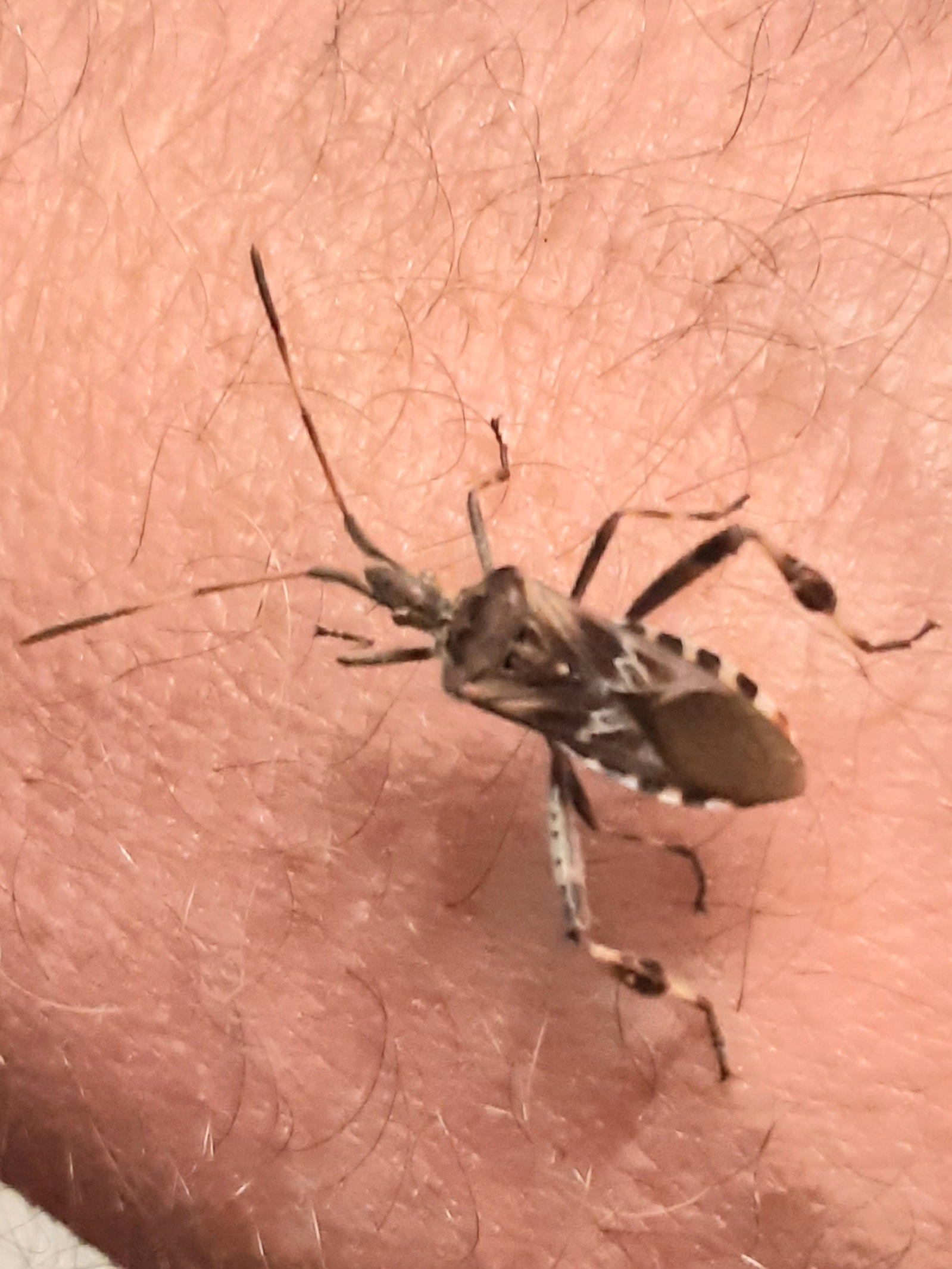 Larve der Amerikanischen Zapfenwanze ( Leptoglossus occidentalis). Deutschland, Baden-Württemberg, Baden-Baden, einzeln stehende Kiefer nord-nord-westlich Ortsteil Sandweier, 30.06.2012 (© Michael Münch)( Bild vergrößern)