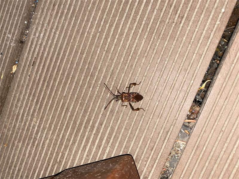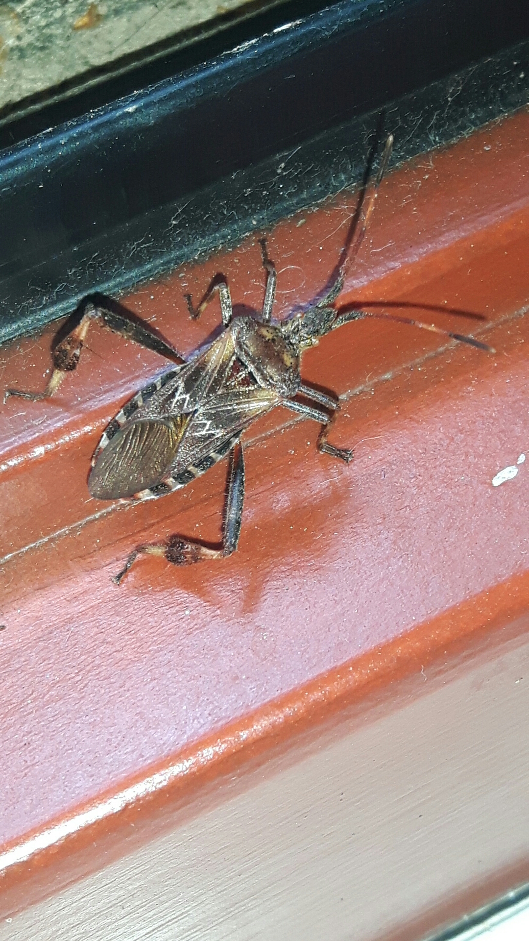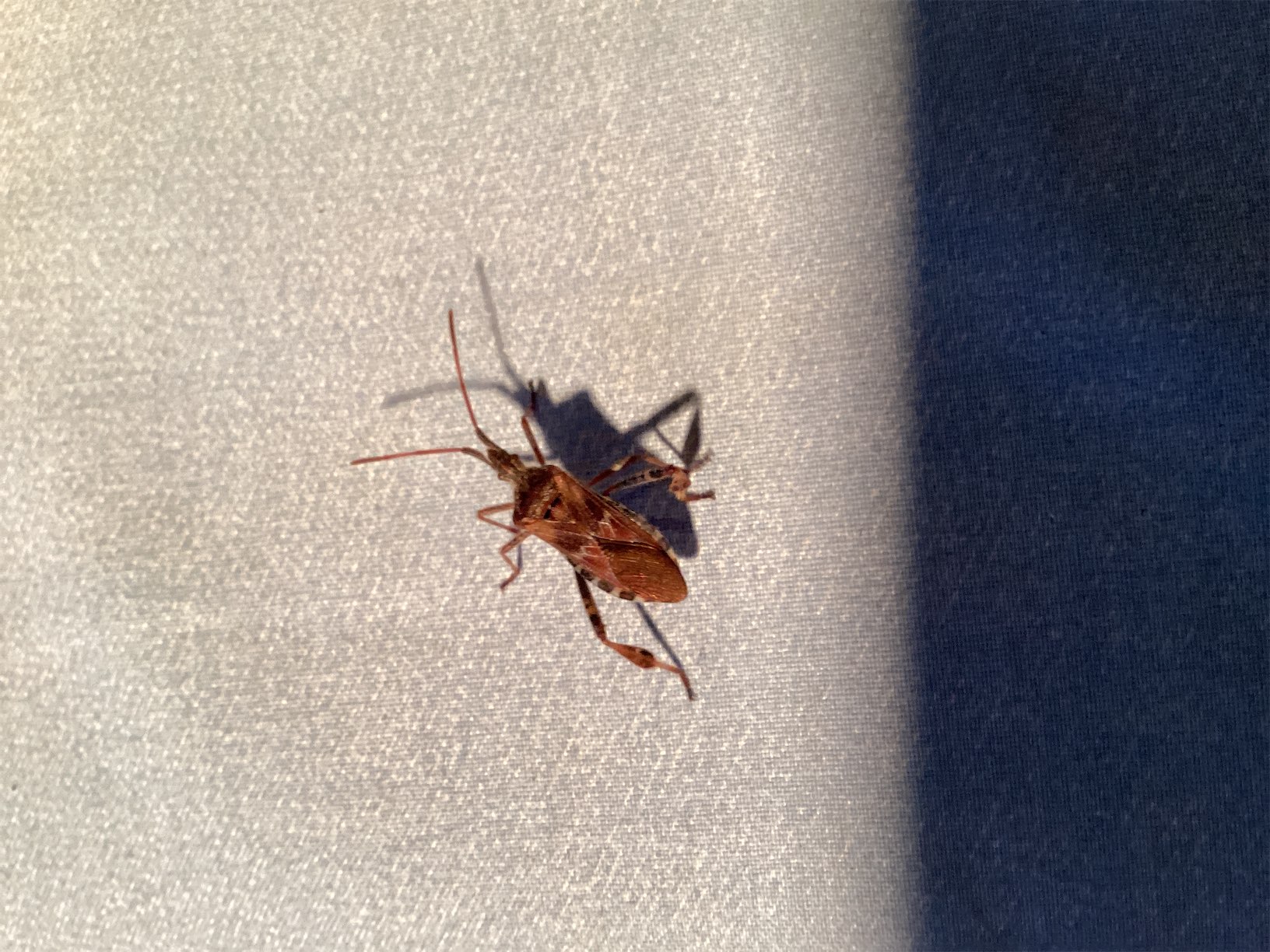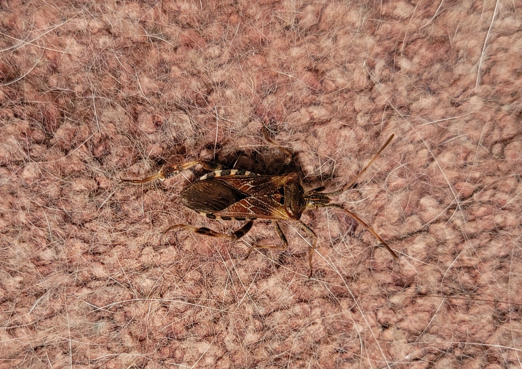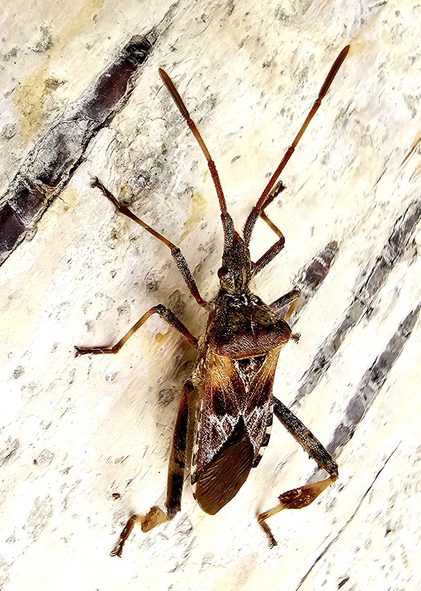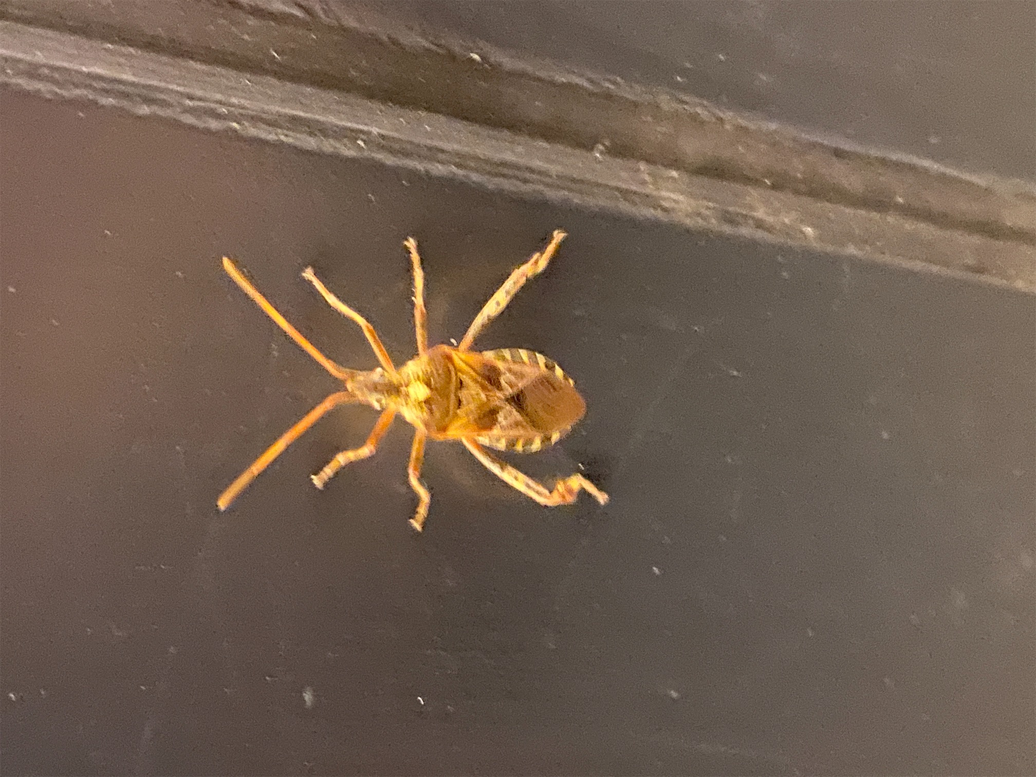 Larve der Amerikanischen Zapfenwanze ( Leptoglossus occidentalis). Deutschland, Baden-Württemberg, Baden-Baden, einzeln stehende Kiefer nord-nord-westlich Ortsteil Sandweier, 30.06.2012 (© Michael Münch)( Bild vergrößern)
