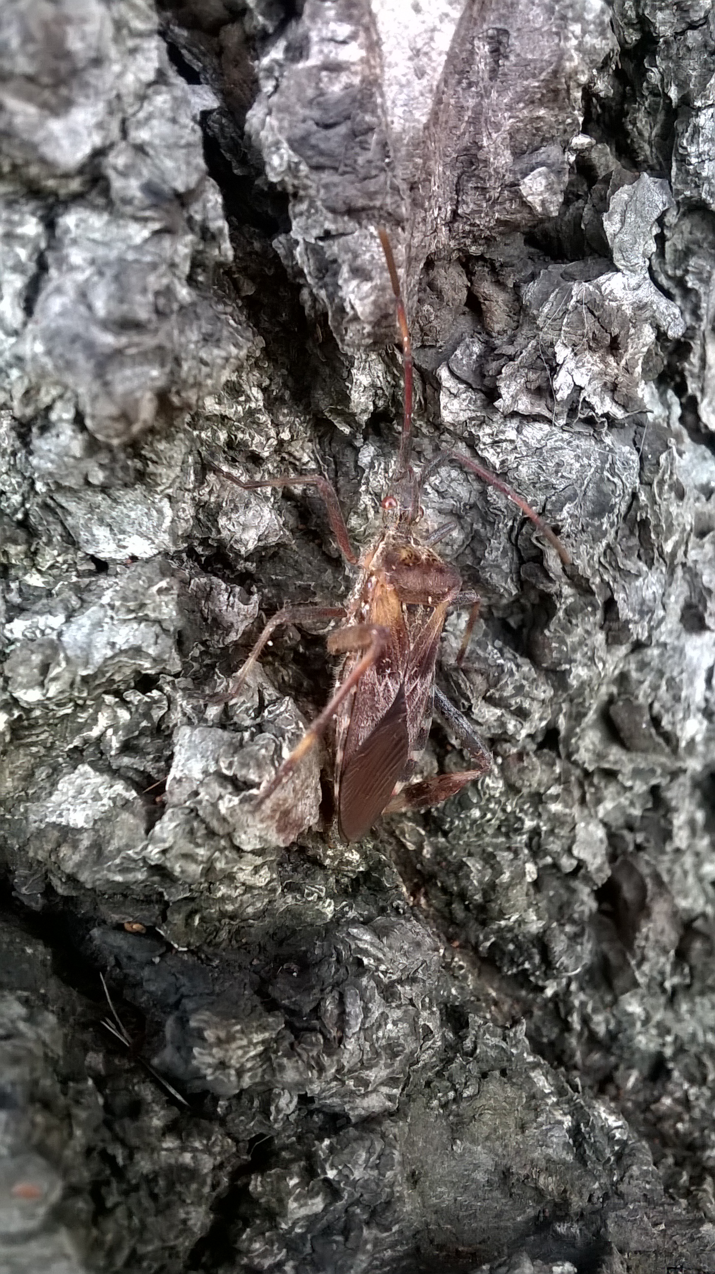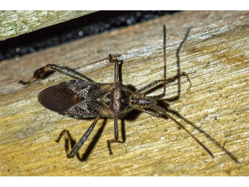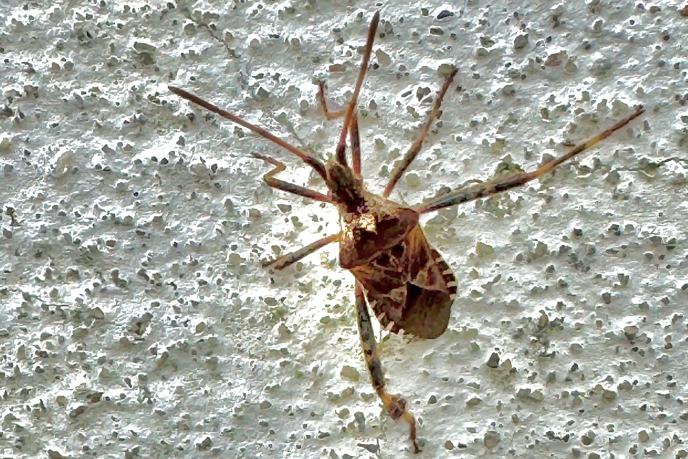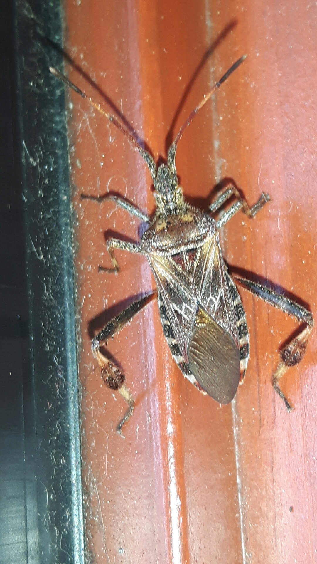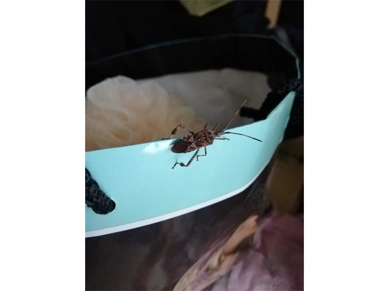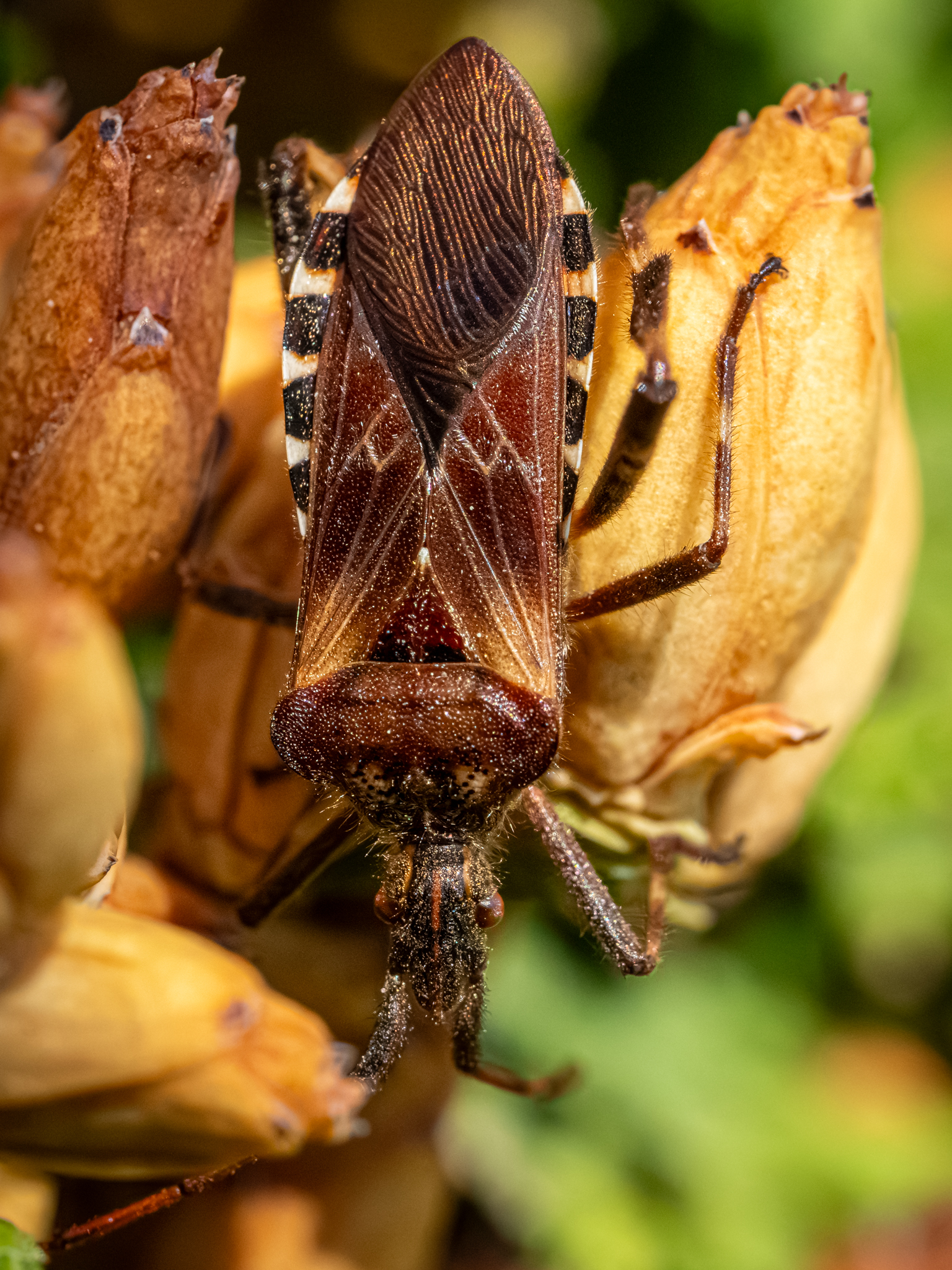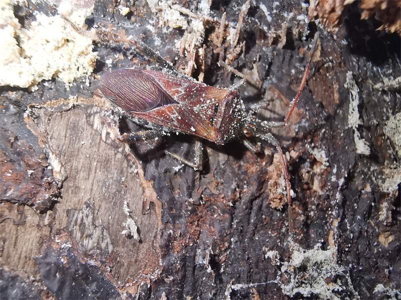 Larve der Amerikanischen Zapfenwanze ( Leptoglossus occidentalis). Deutschland, Baden-Württemberg, Baden-Baden, einzeln stehende Kiefer nord-nord-westlich Ortsteil Sandweier, 30.06.2012 (© Michael Münch)( Bild vergrößern)