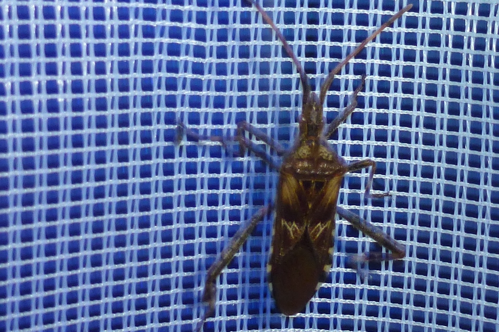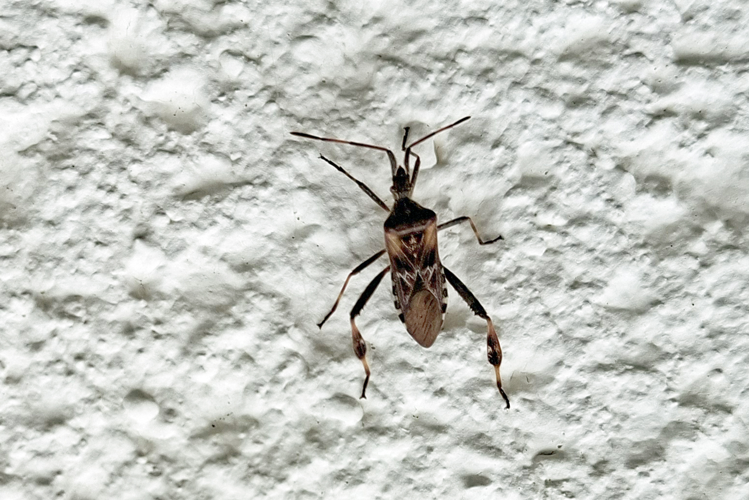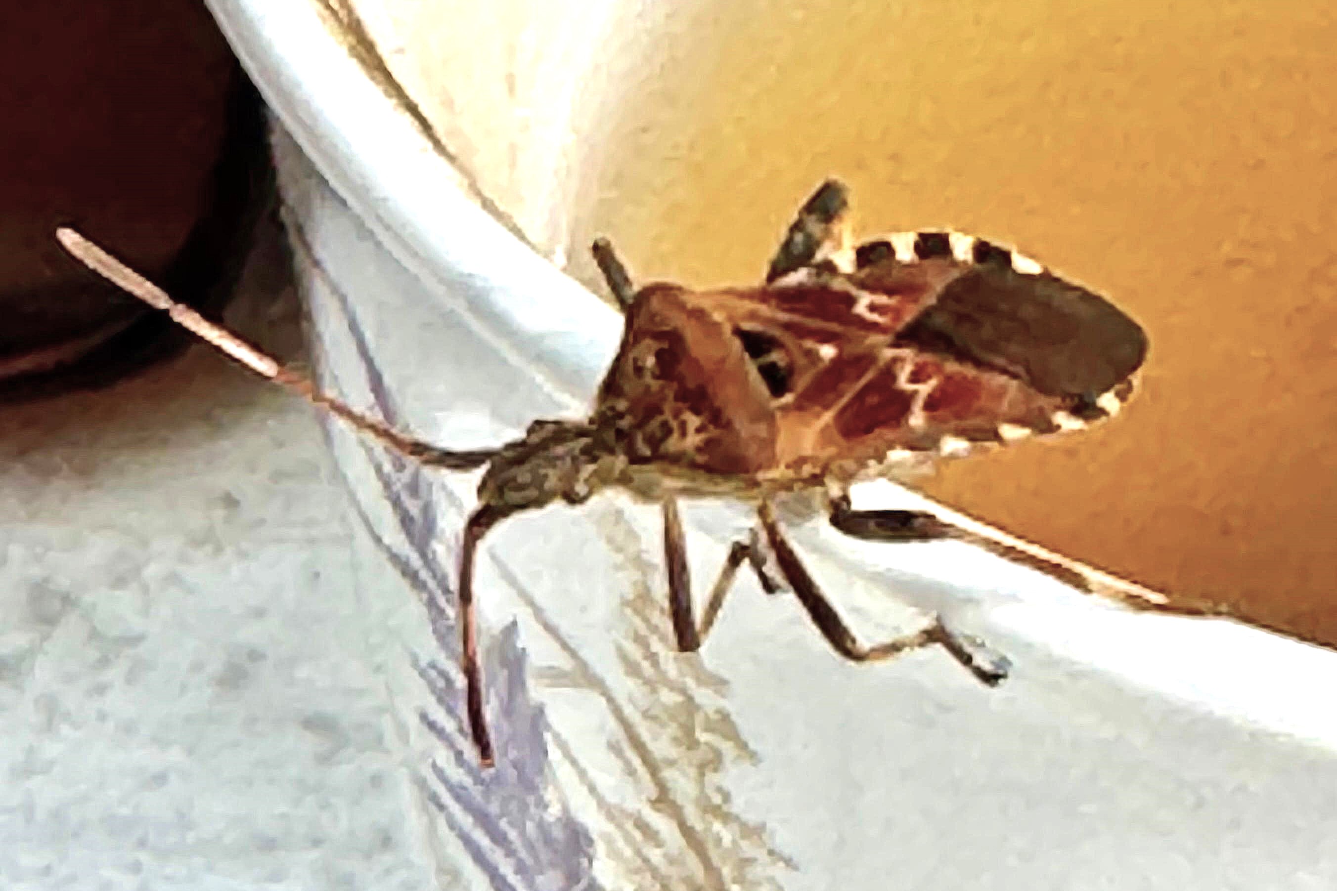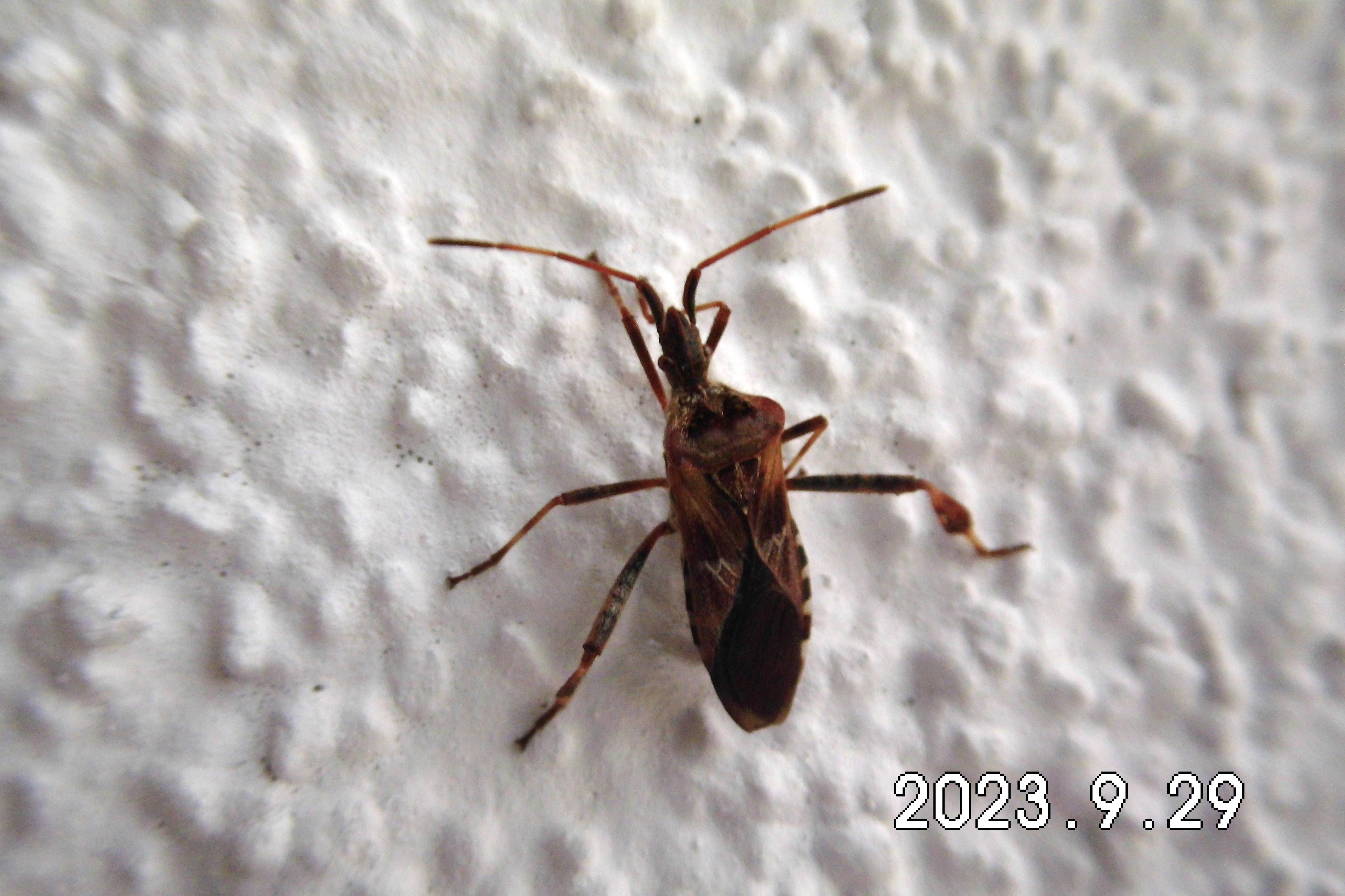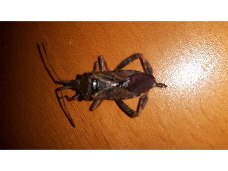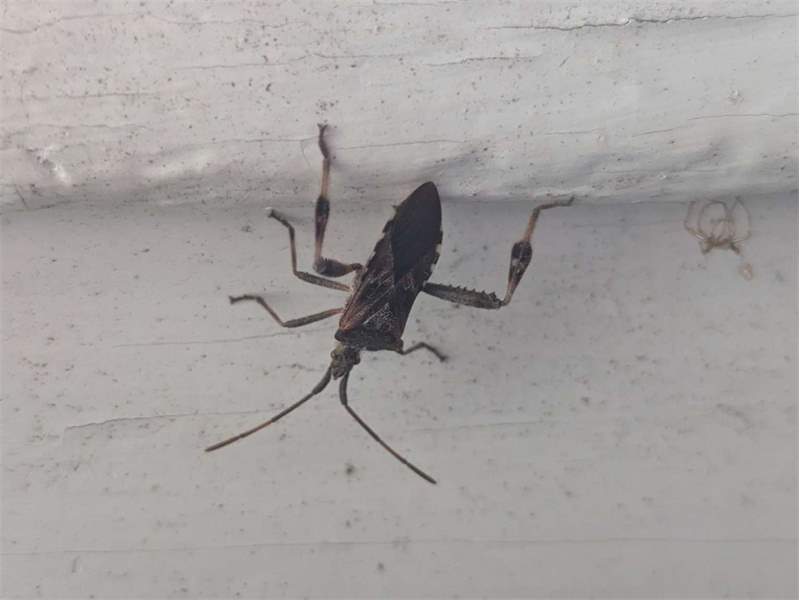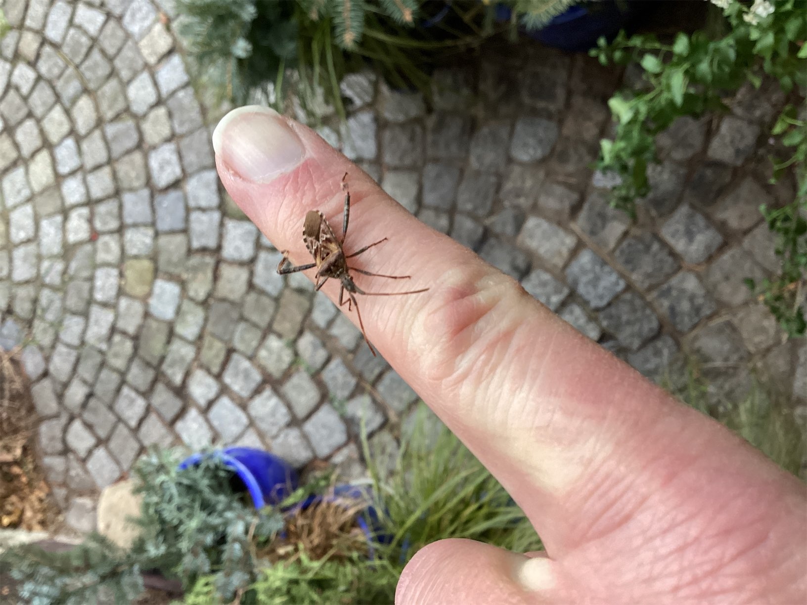 Larve der Amerikanischen Zapfenwanze ( Leptoglossus occidentalis). Deutschland, Baden-Württemberg, Baden-Baden, einzeln stehende Kiefer nord-nord-westlich Ortsteil Sandweier, 30.06.2012 (© Michael Münch)( Bild vergrößern)