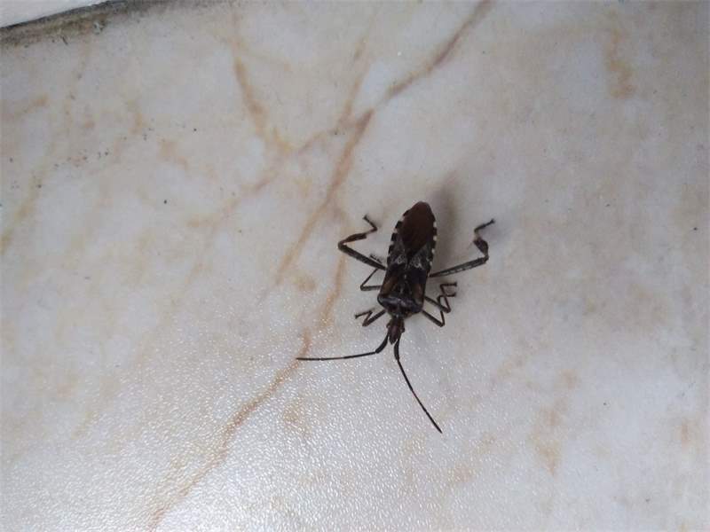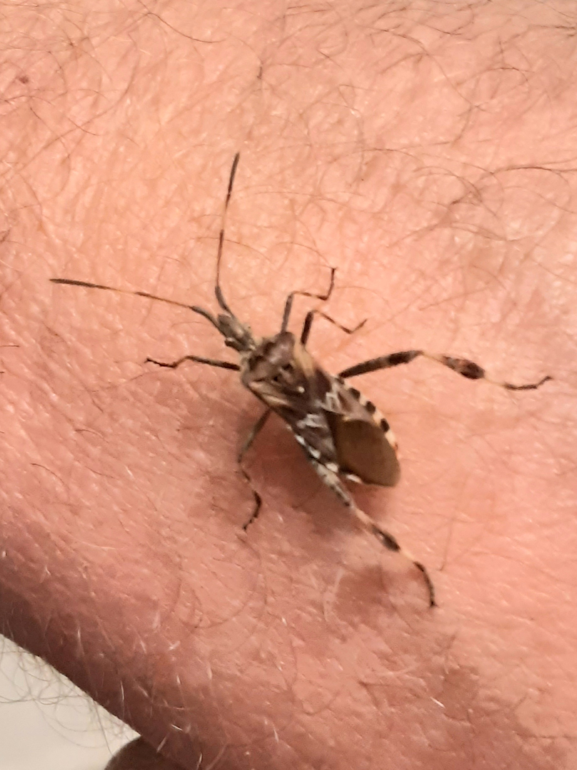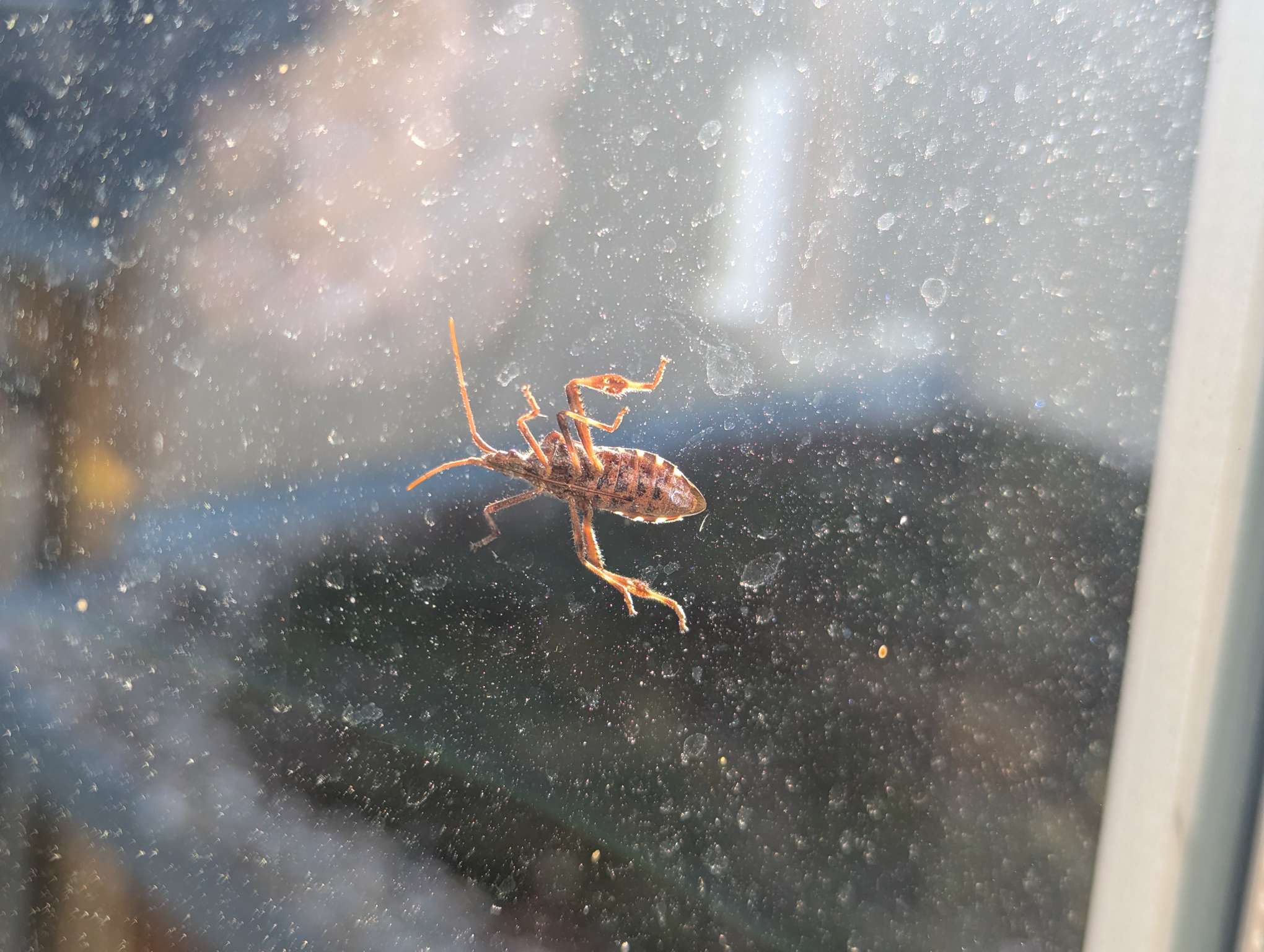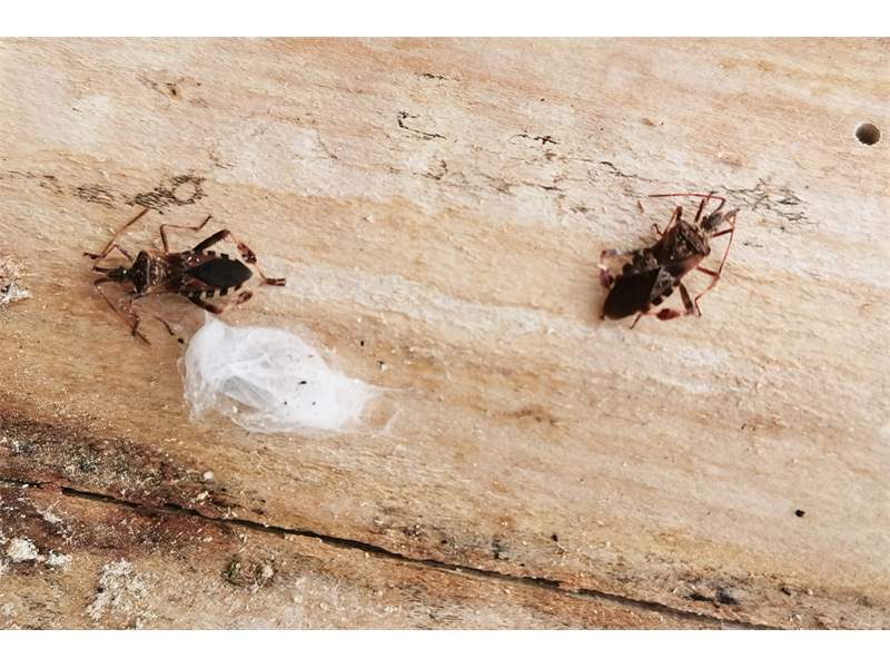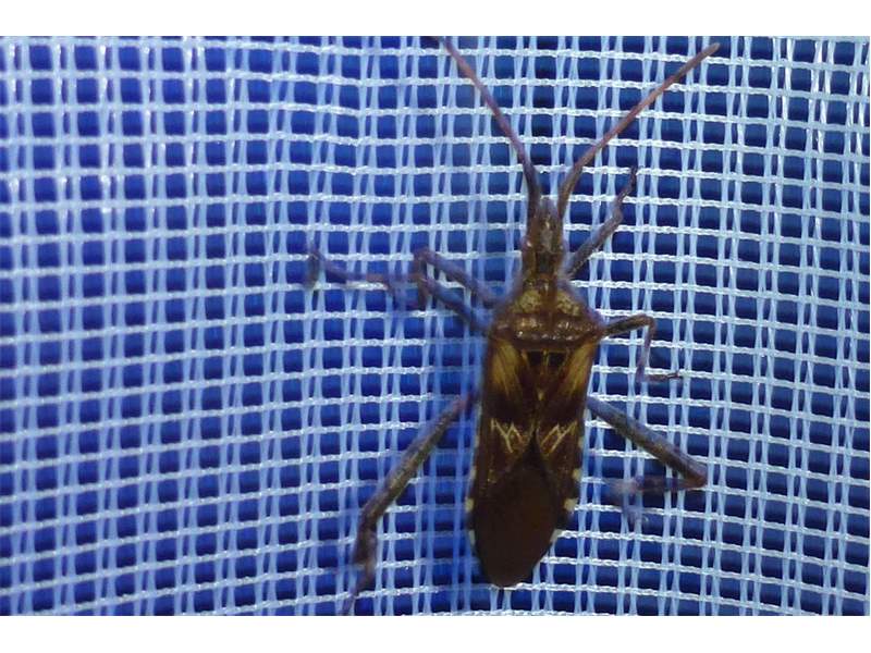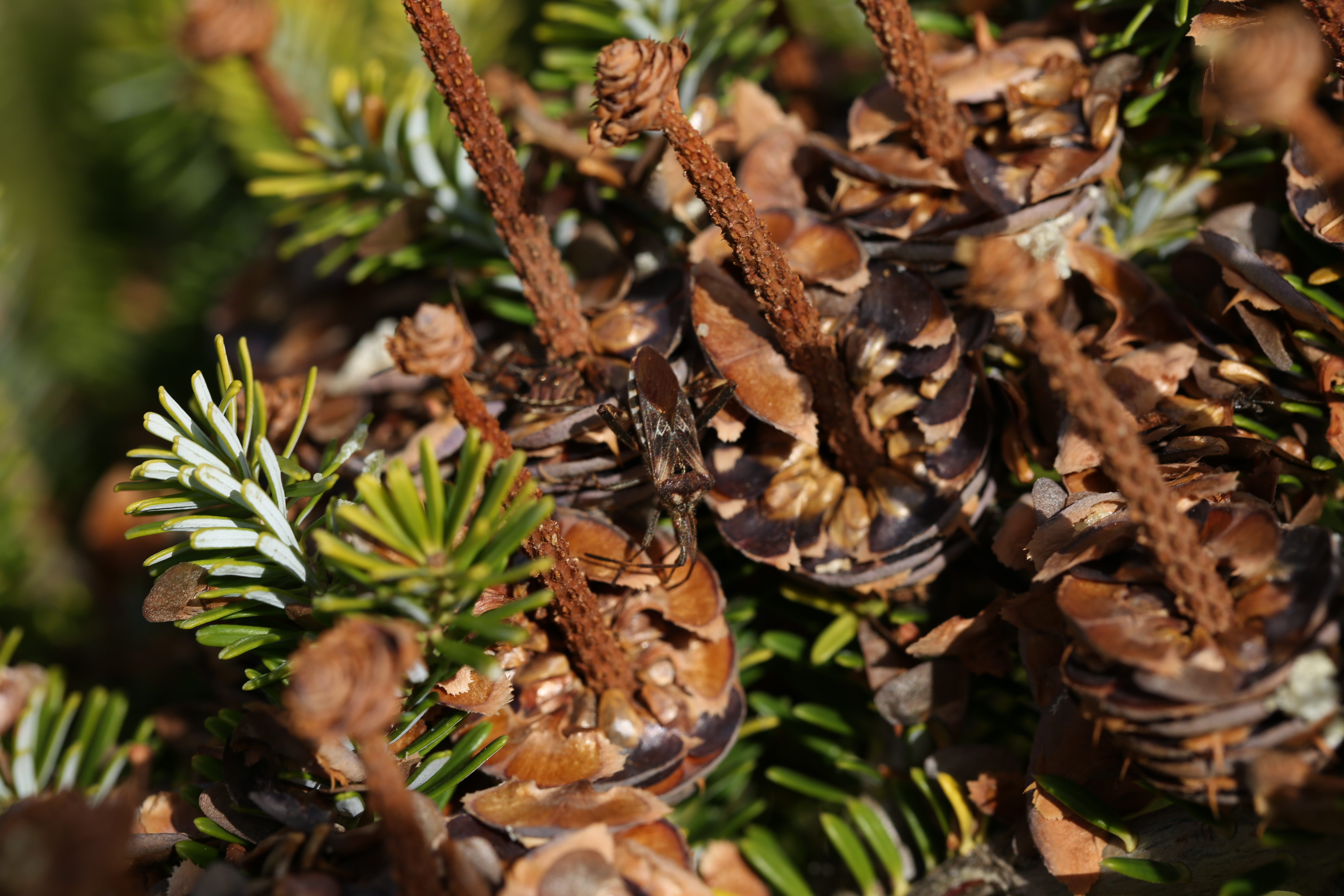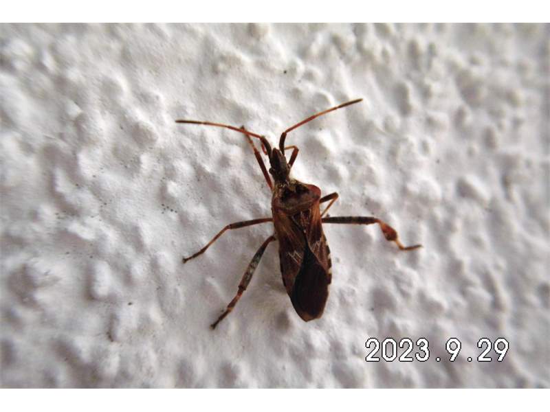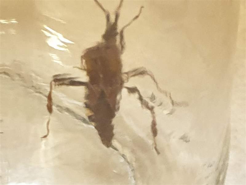Larve der Amerikanischen Zapfenwanze ( Leptoglossus occidentalis). Deutschland, Baden-Württemberg, Baden-Baden, einzeln stehende Kiefer nord-nord-westlich Ortsteil Sandweier, 30.06.2012 (© Michael Münch)( Bild vergrößern)