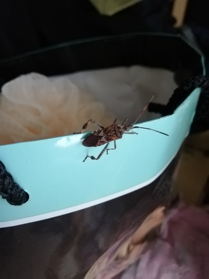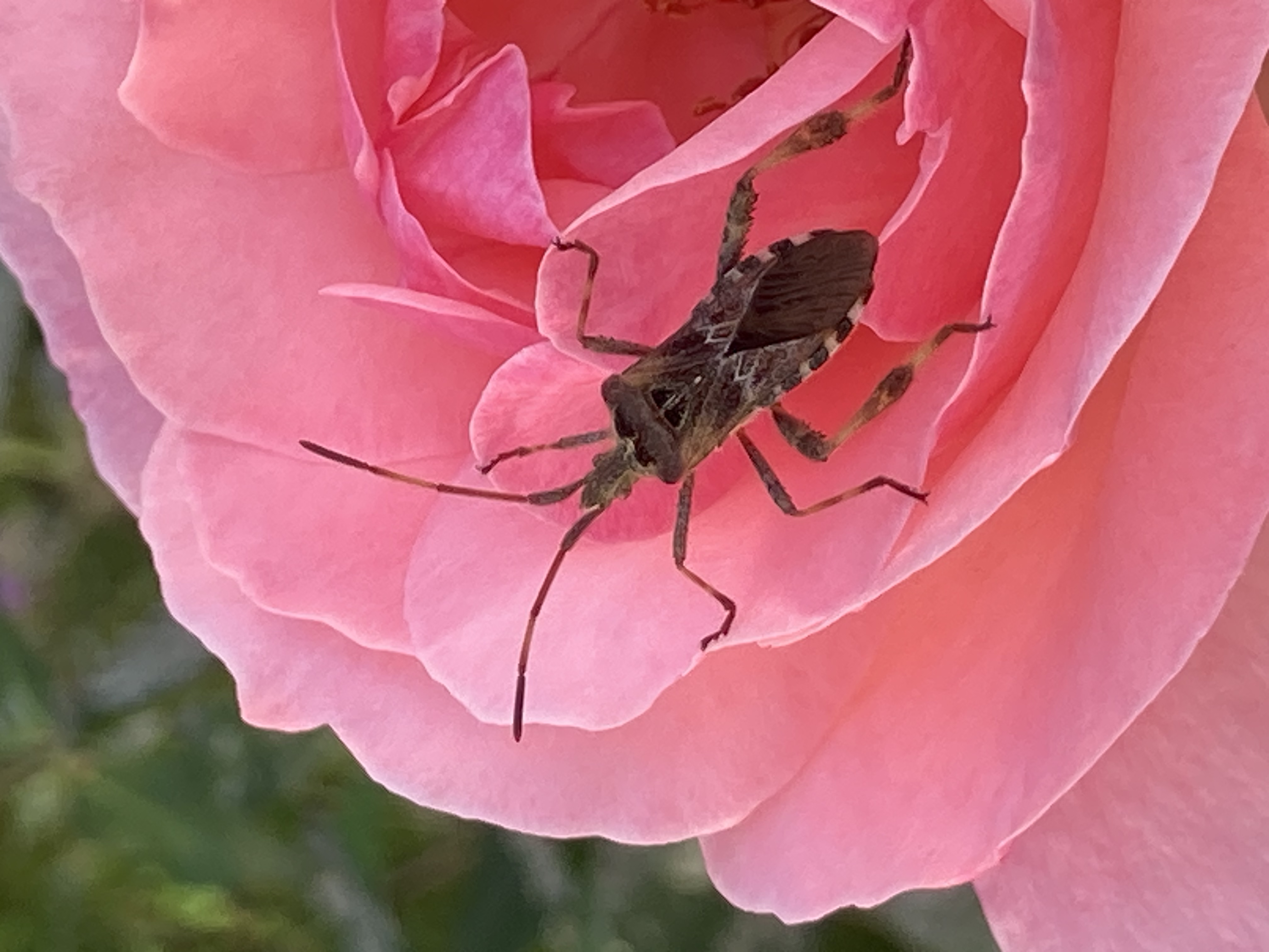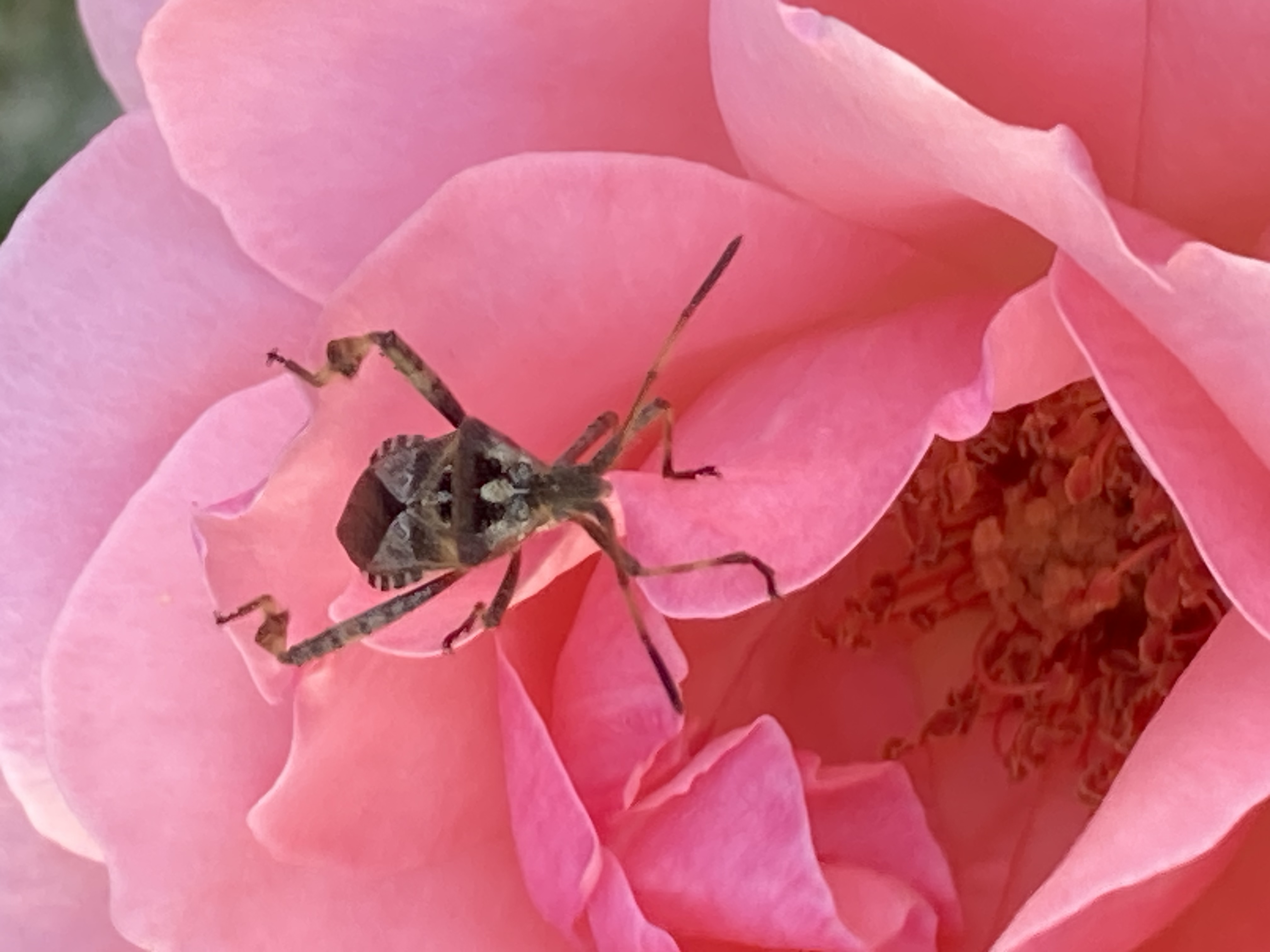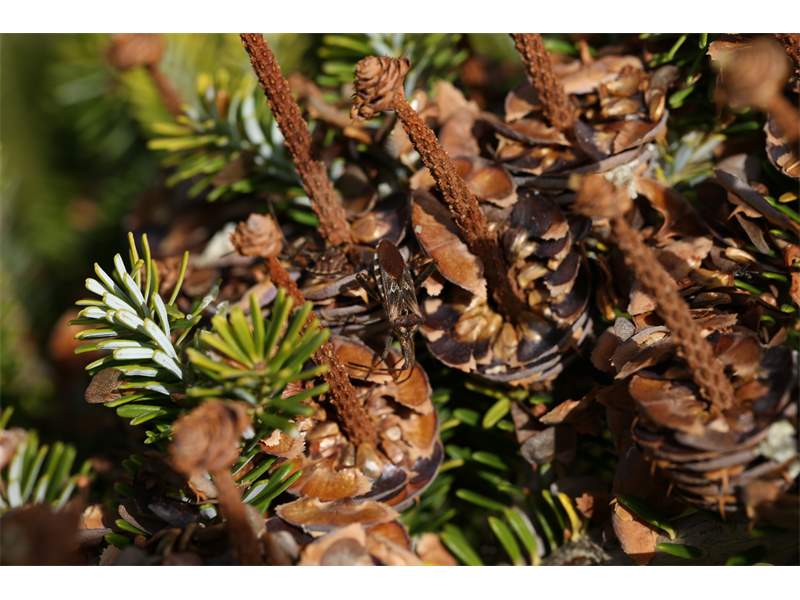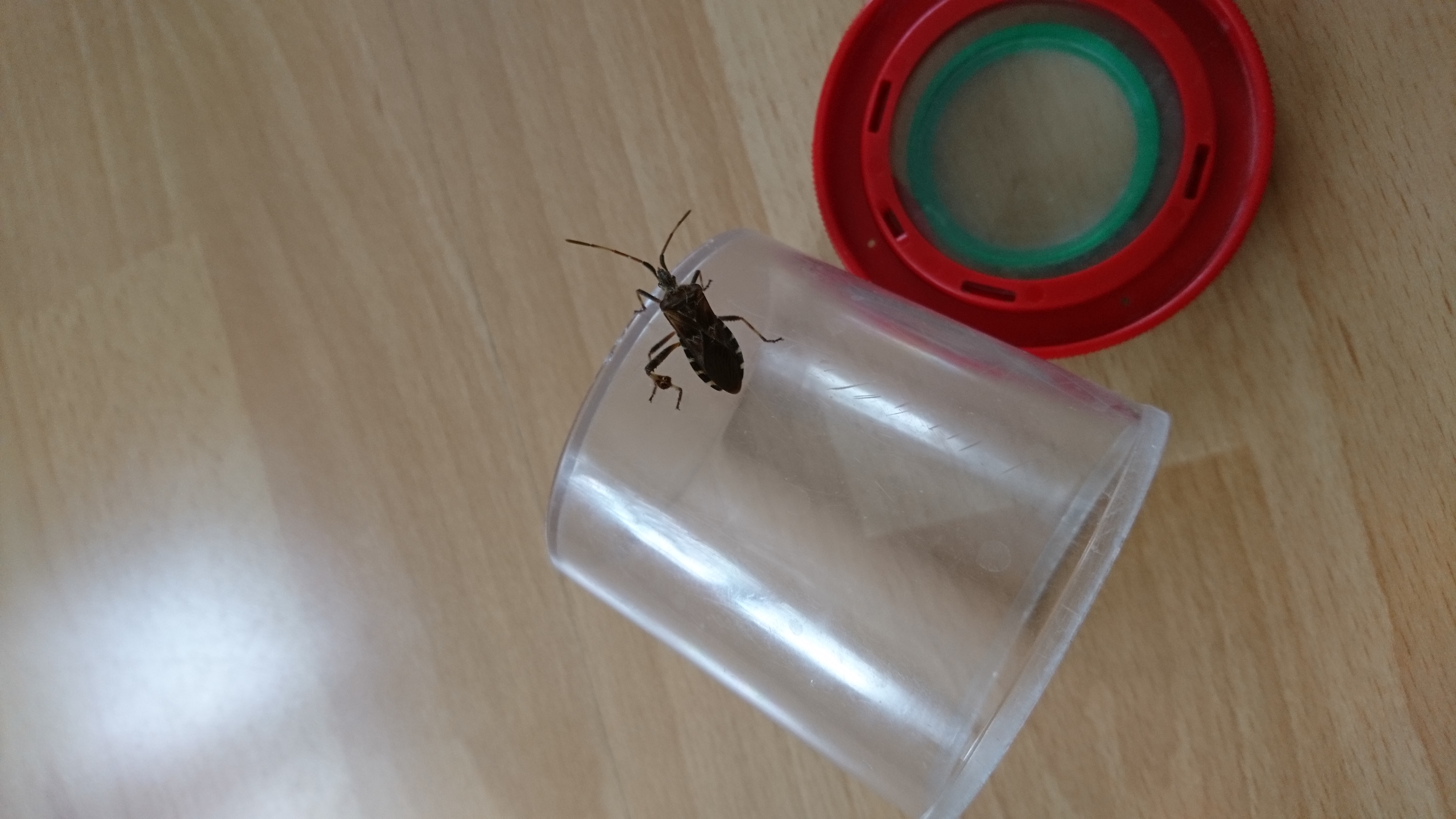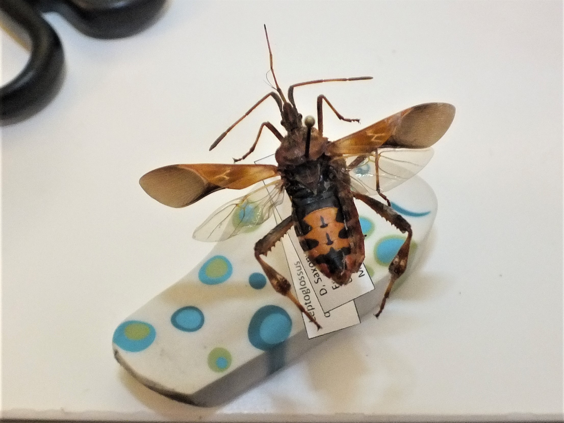 Larve der Amerikanischen Zapfenwanze ( Leptoglossus occidentalis). Deutschland, Baden-Württemberg, Baden-Baden, einzeln stehende Kiefer nord-nord-westlich Ortsteil Sandweier, 30.06.2012 (© Michael Münch)( Bild vergrößern)