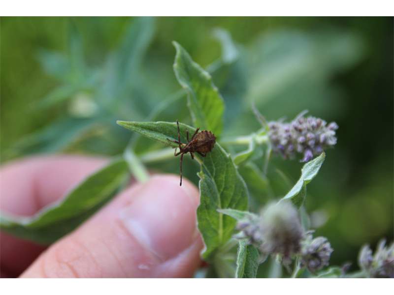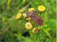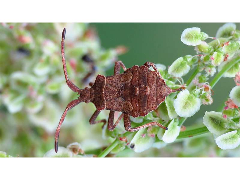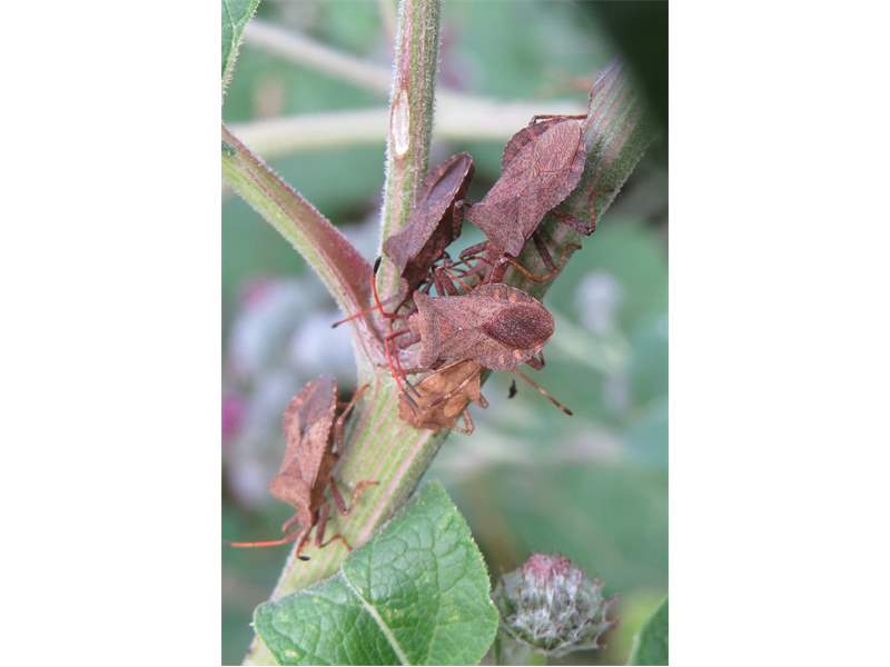 Leder-,Saumwanze (Coreus marginatus (Linnaeus, 1758)), Nymphe, bei Priestewitz, Großenhainer Pflege, Juli 2015 (© Udo Lemke )( Bild vergrößern)