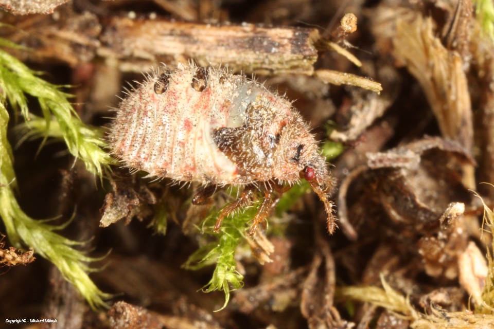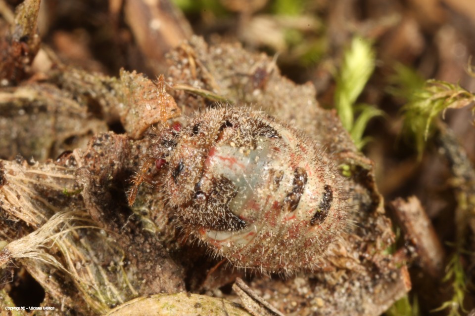 Larve im 5.Stadium. Die seitliche Rückenline des späteren erwachsenen Tiers ist bereits ausgebildet. Am Boden im Detritus an einem Wegrain zwischen Weinbergen bei Bickensohl (Stadt Vogtsburg im Kaiserstuhl, Baden-Württemberg, Landkreis Breisgau-Hochschwarzwald), 13.05.2012. (© Michael Münch)( Bild vergrößern)
