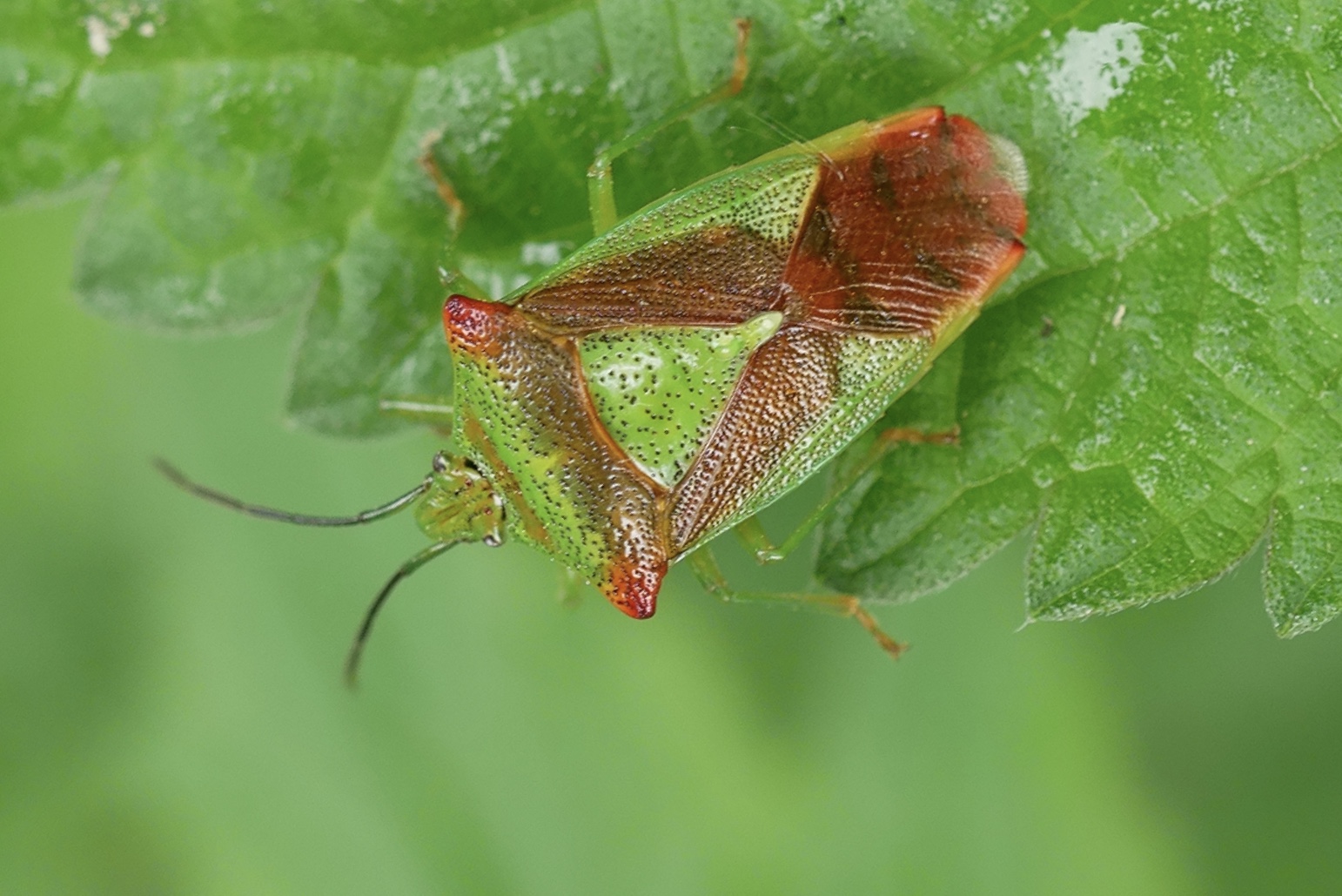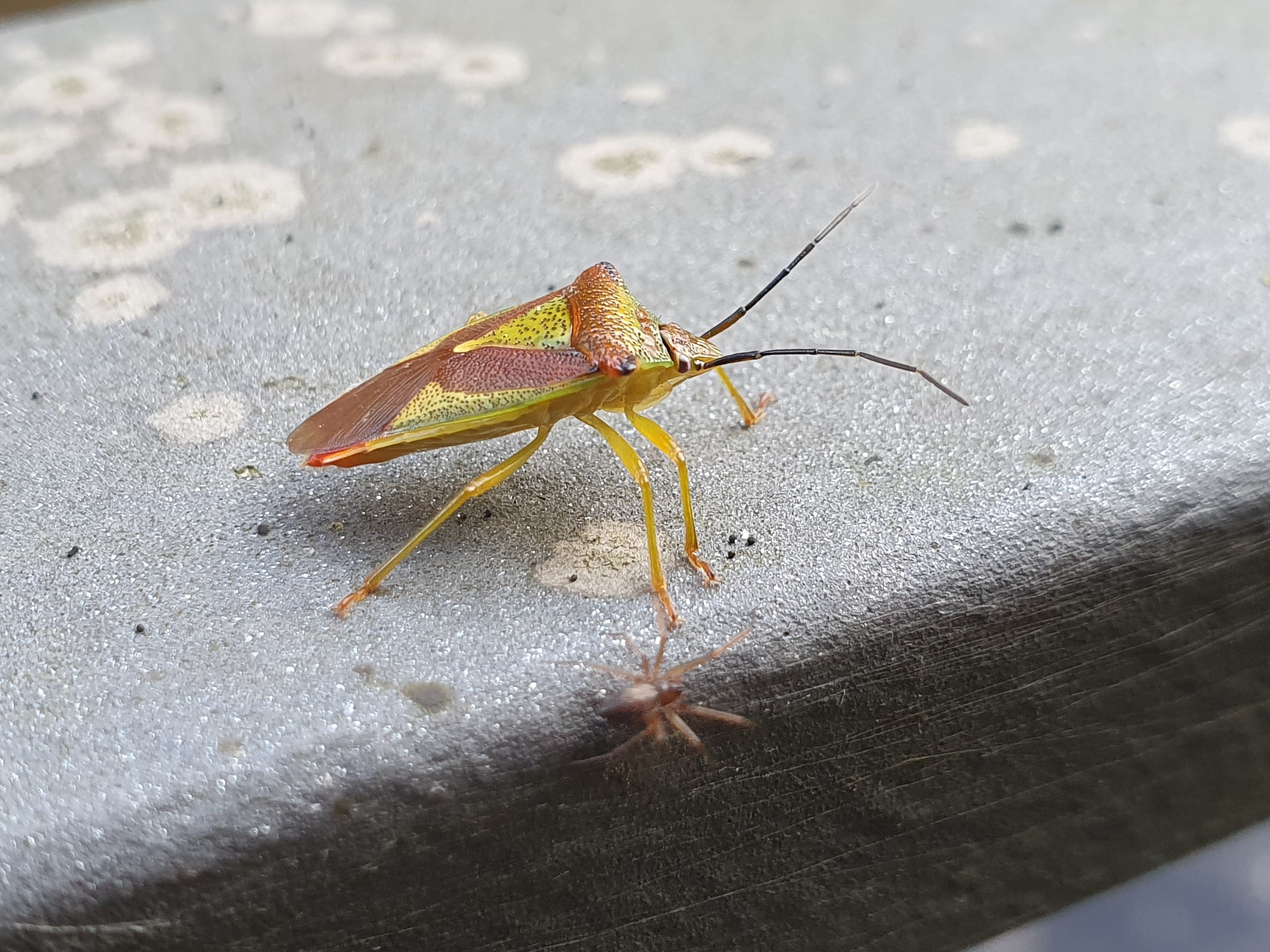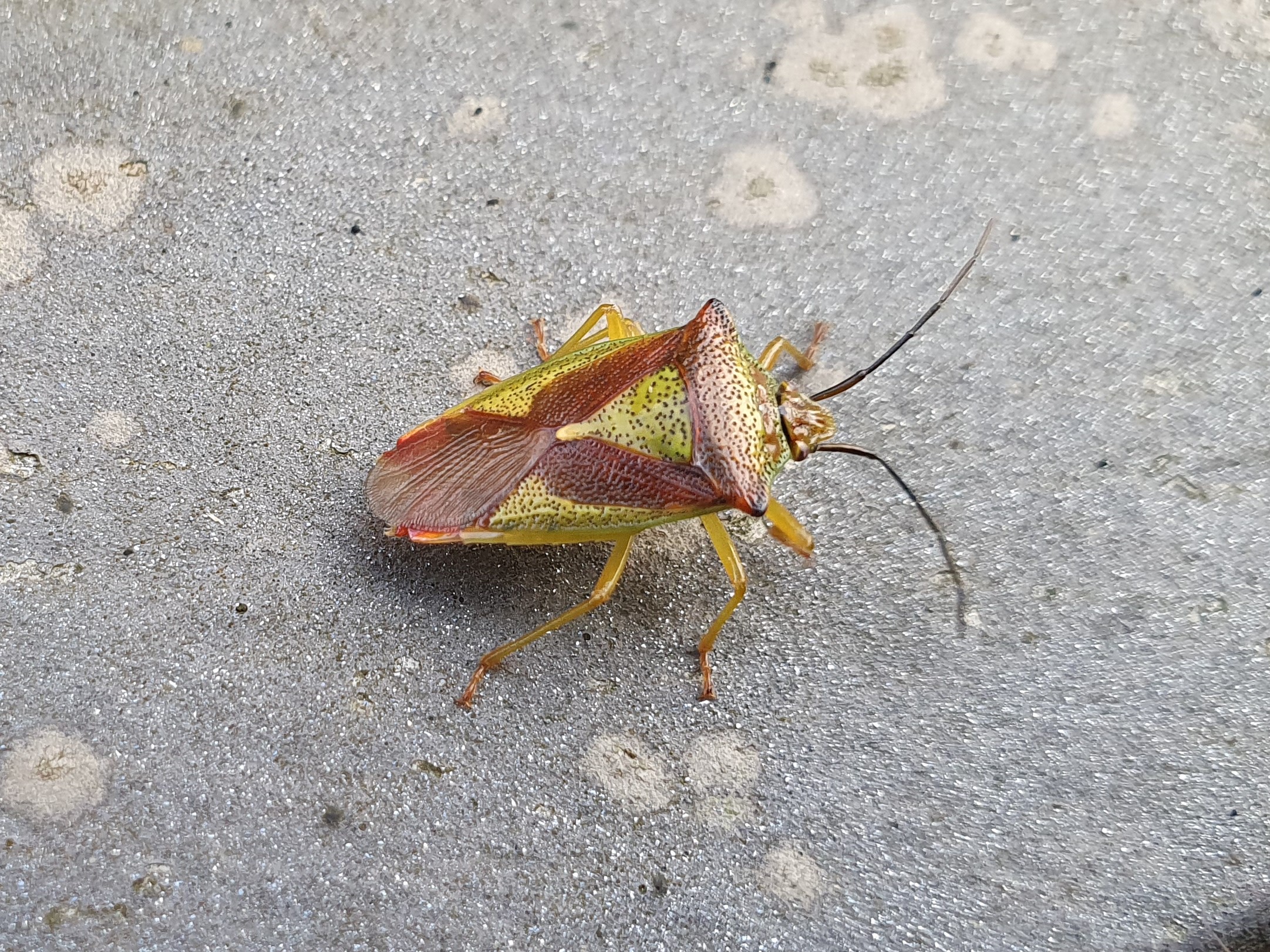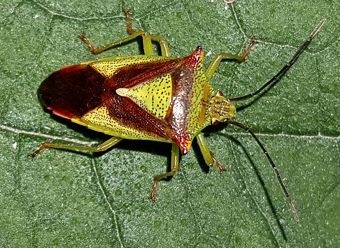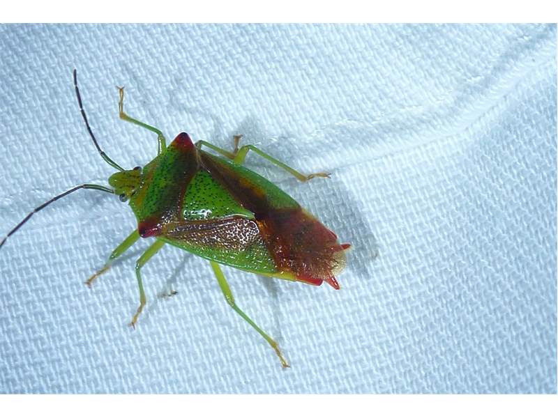 Stachelwanze (Acanthosoma haemorrhoidale (Linnaeus, 1758)), nachtaktiv, in der Gemarkung Hohenprießnitz, August 2018 (© Michael Happ)( Bild vergrößern)