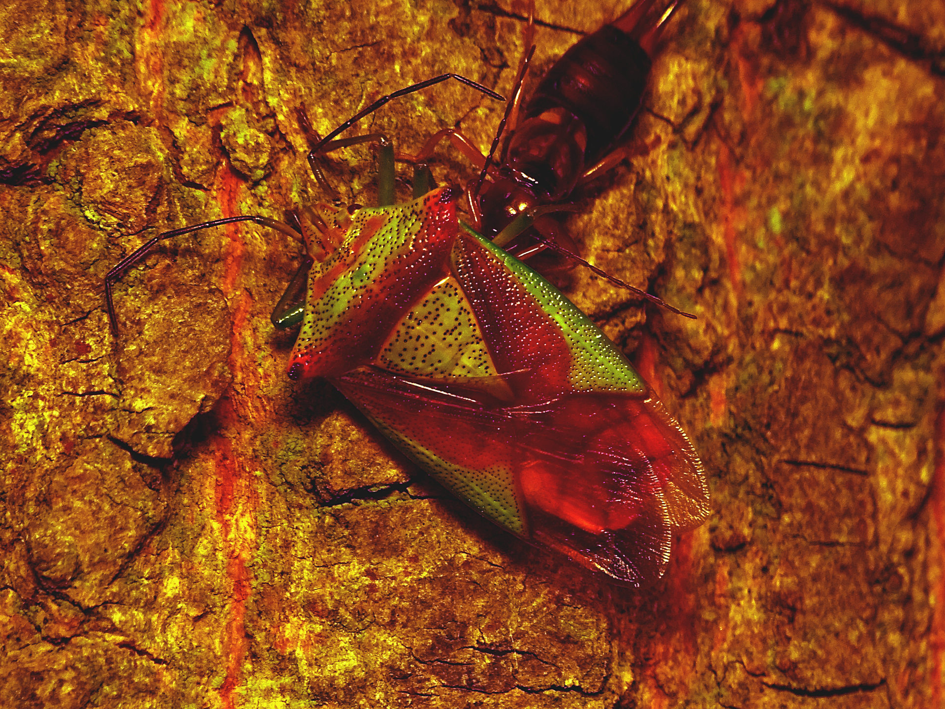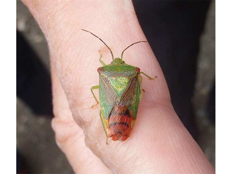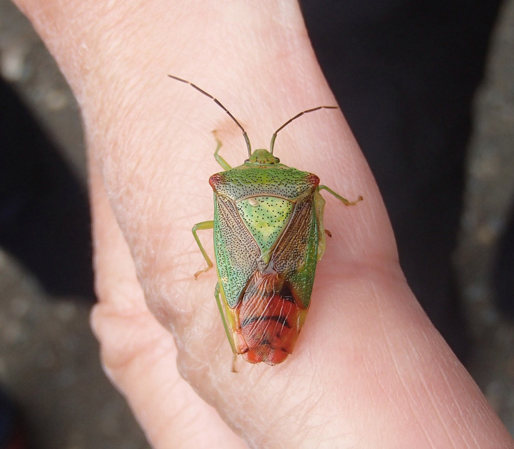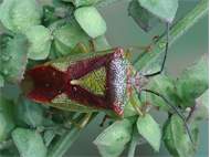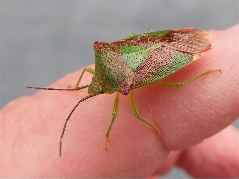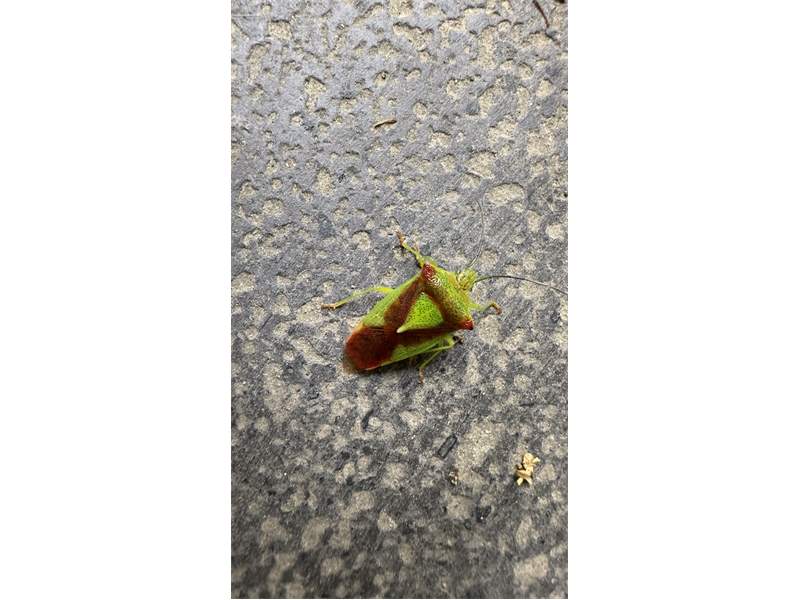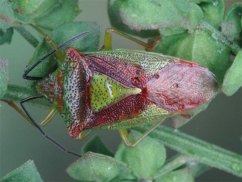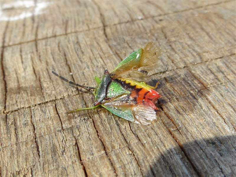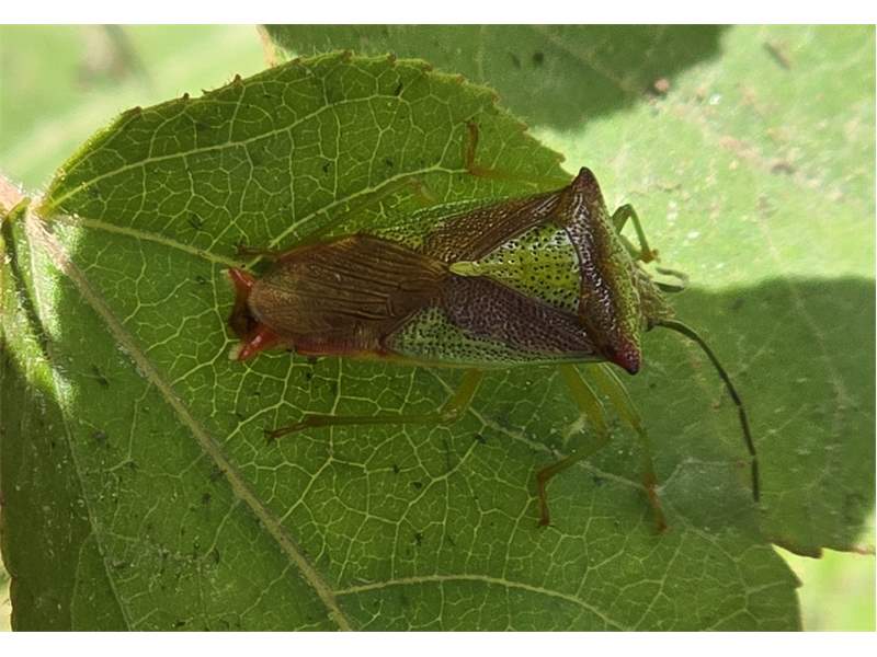 Stachelwanze (Acanthosoma haemorrhoidale (Linnaeus, 1758)), nachtaktiv, in der Gemarkung Hohenprießnitz, August 2018 (© Michael Happ)( Bild vergrößern)