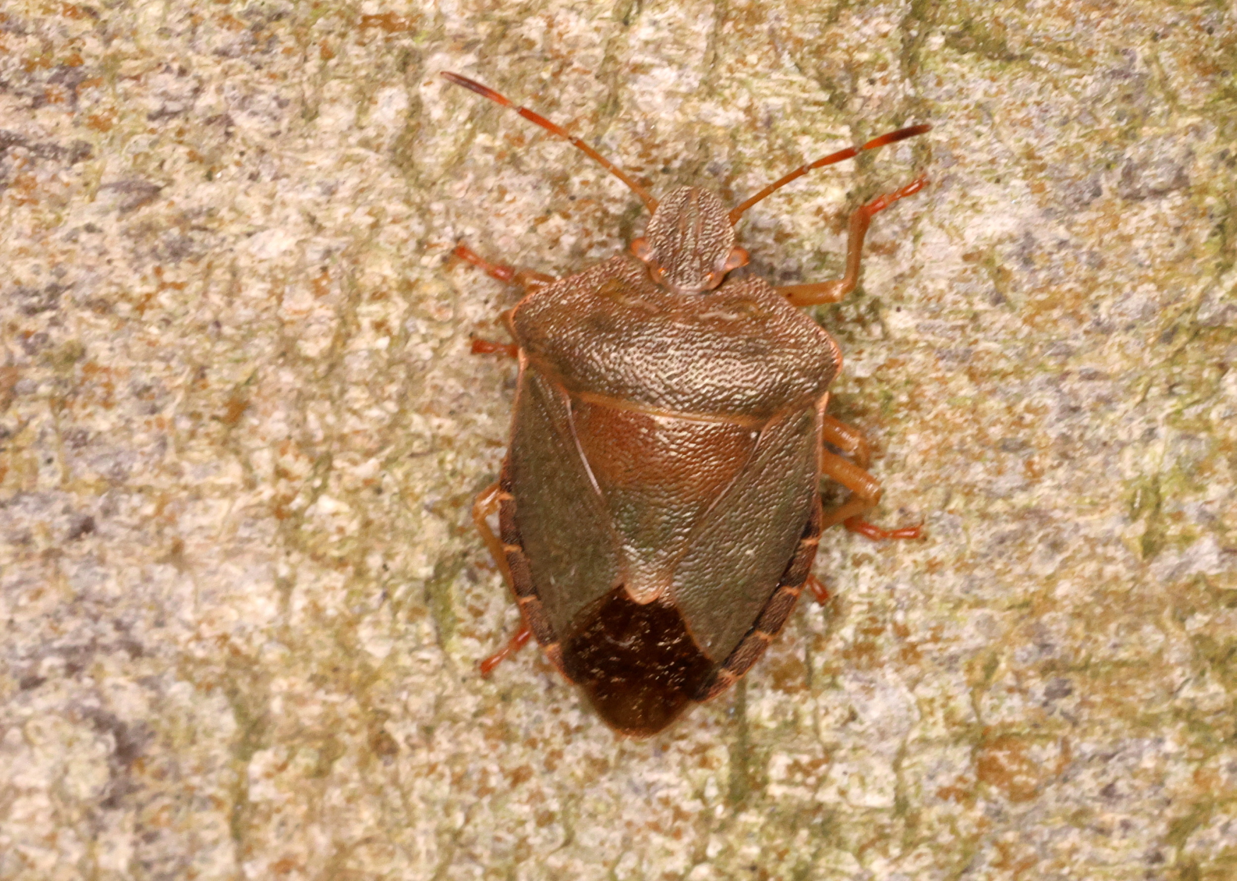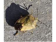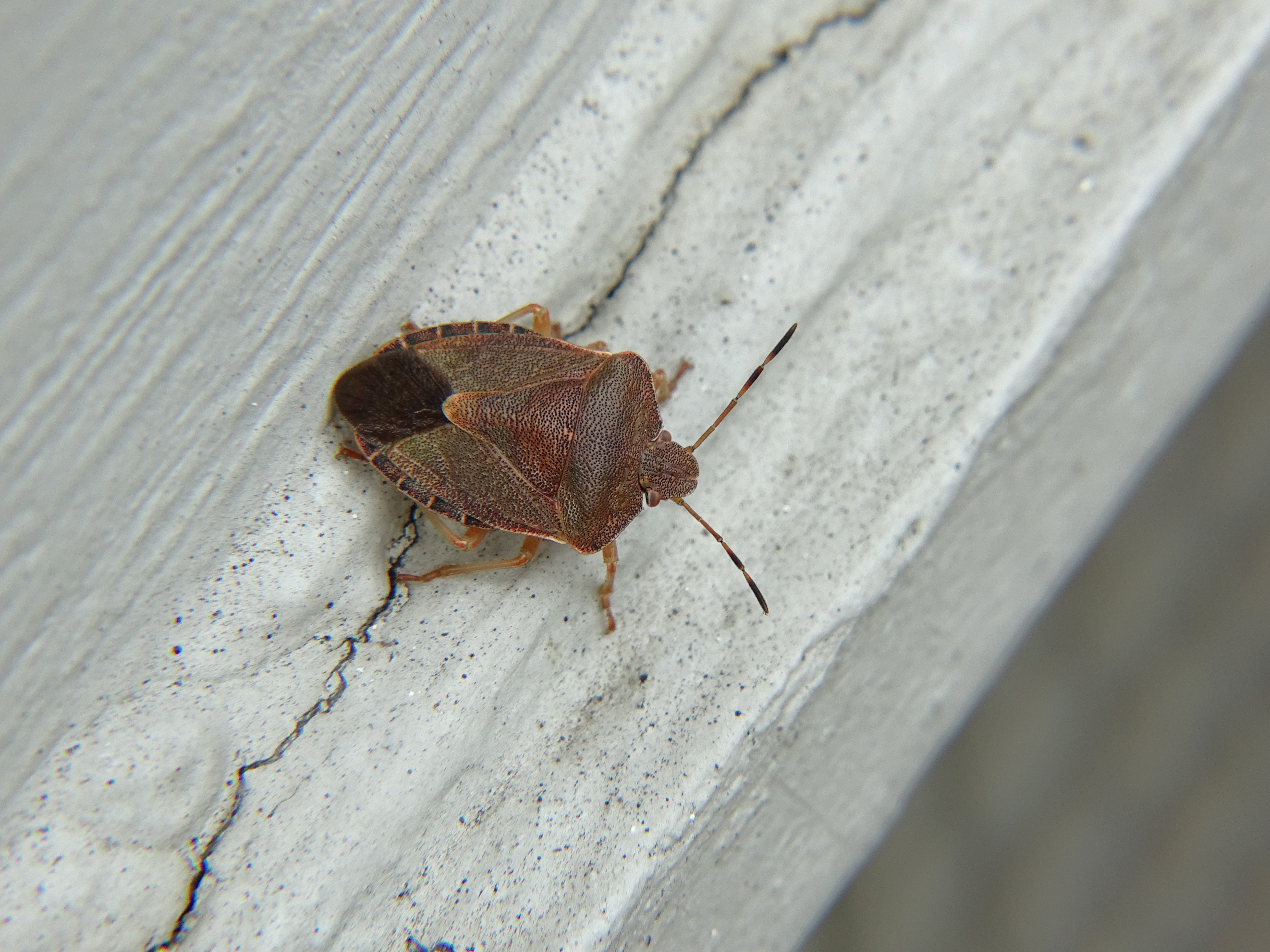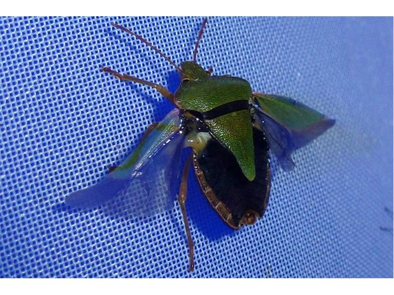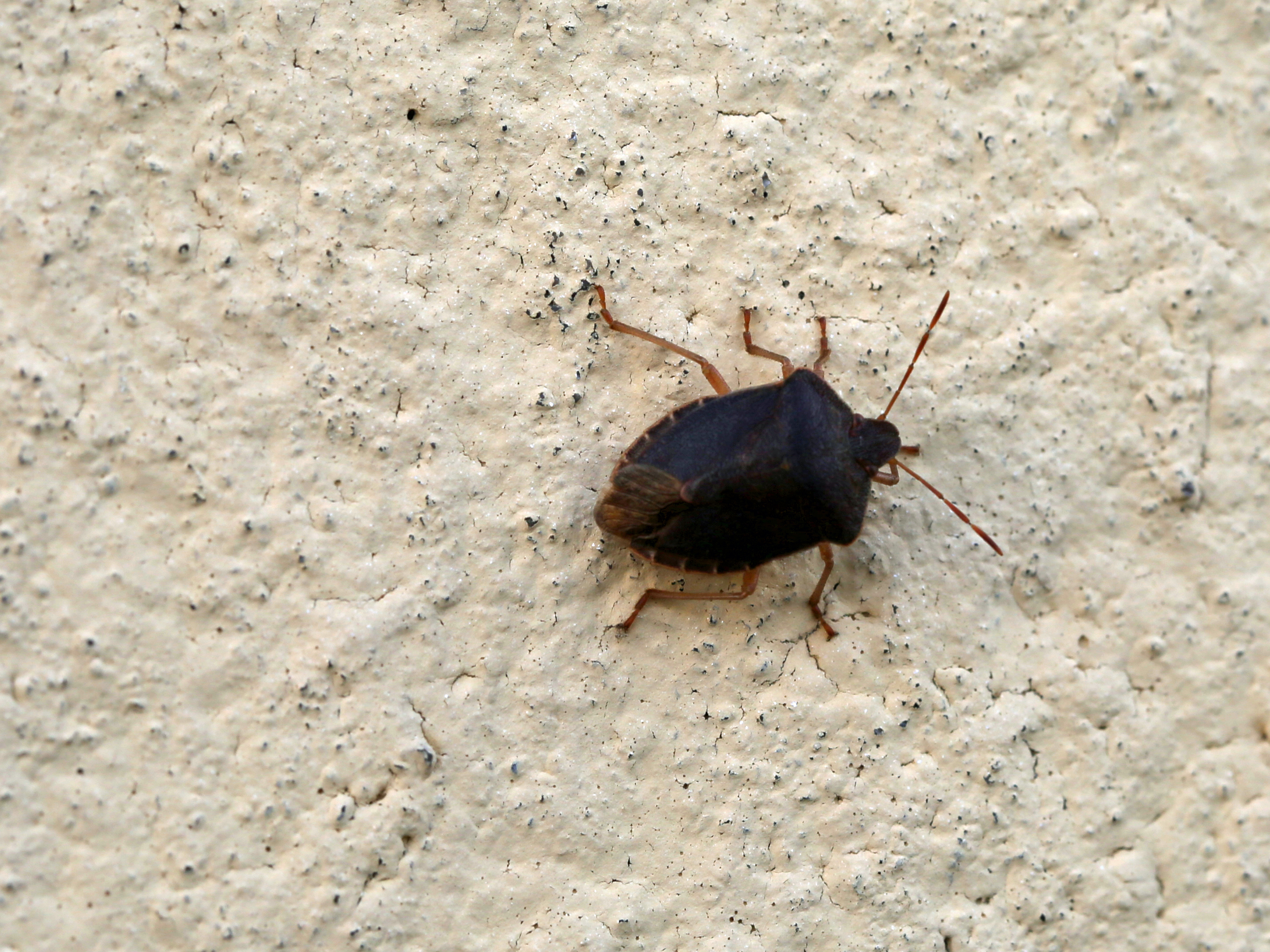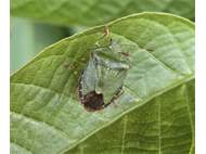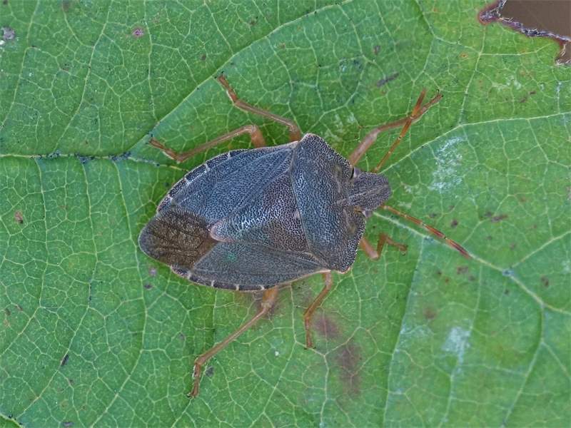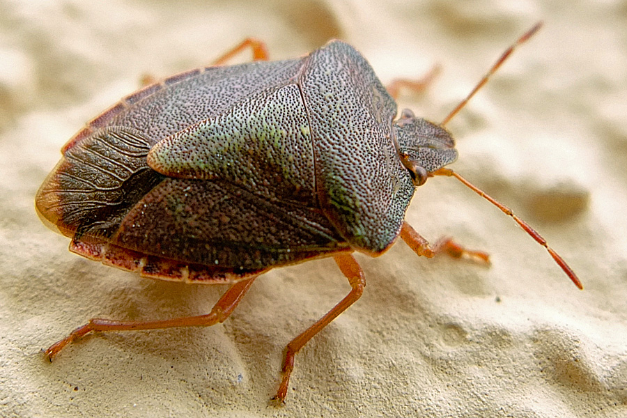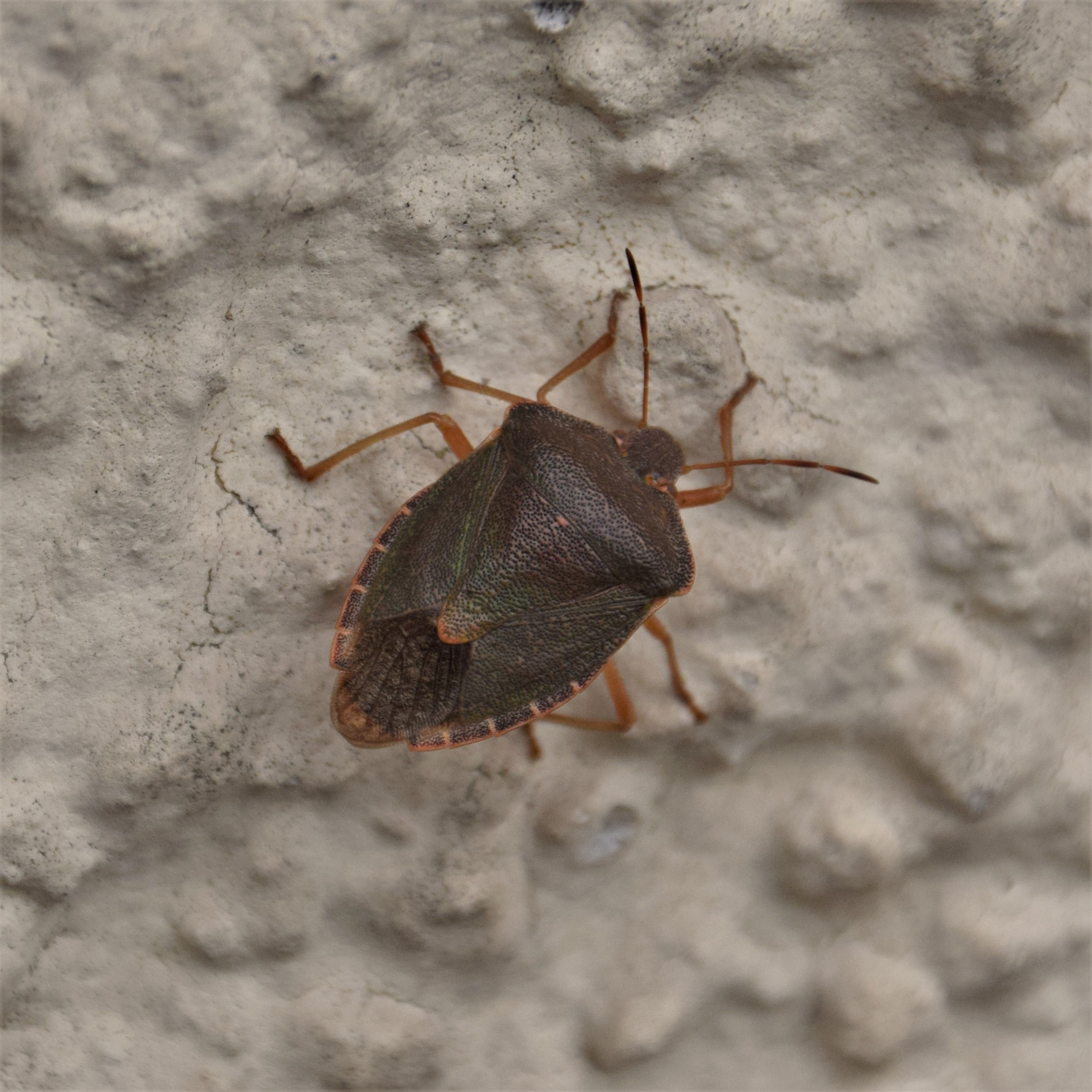 Grüne Stinkwanze (Palomena prasina (Linnaeus, 1761)), das zweite und dritte Fühlerglied sind annähernd gleich lang, im Unterschied zu Palomena viridissima, wo das dritte Fühlerglied kürzer als das zweite ist, am 1. Mai 2013 im Seifersdorfer Tal.