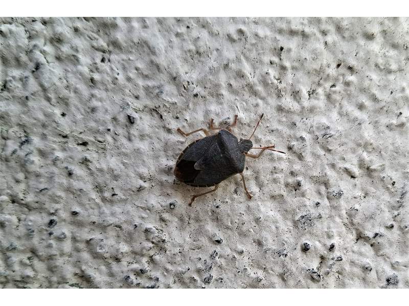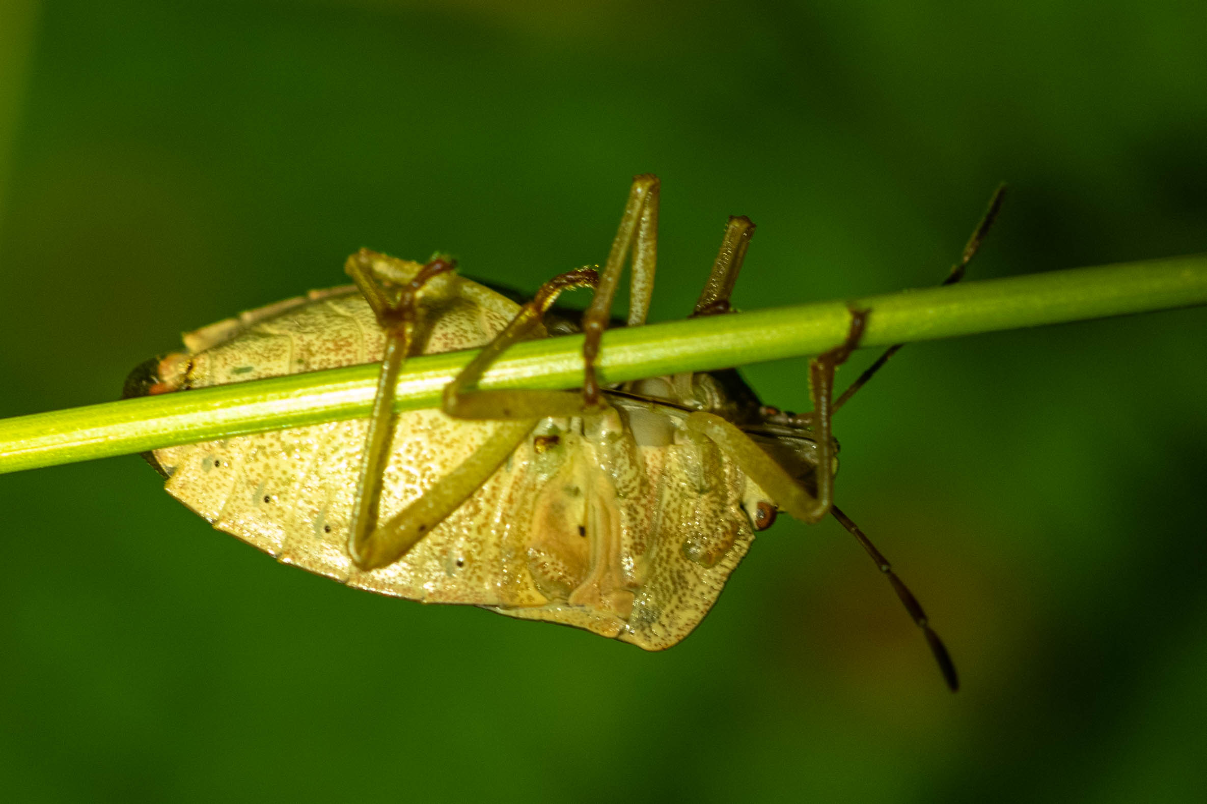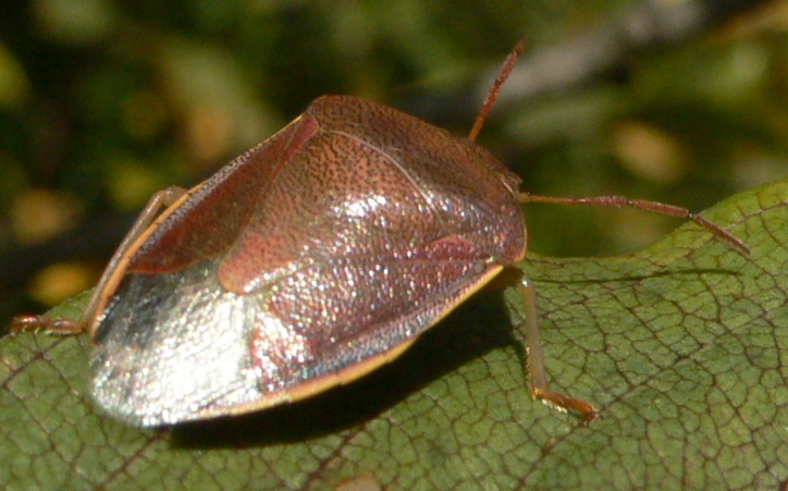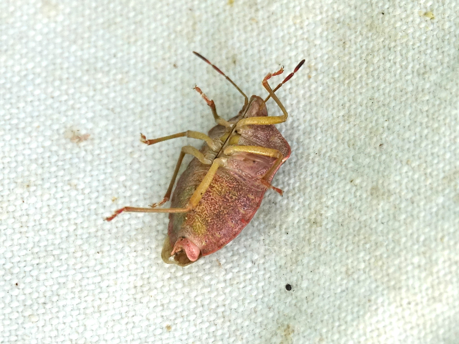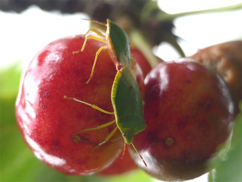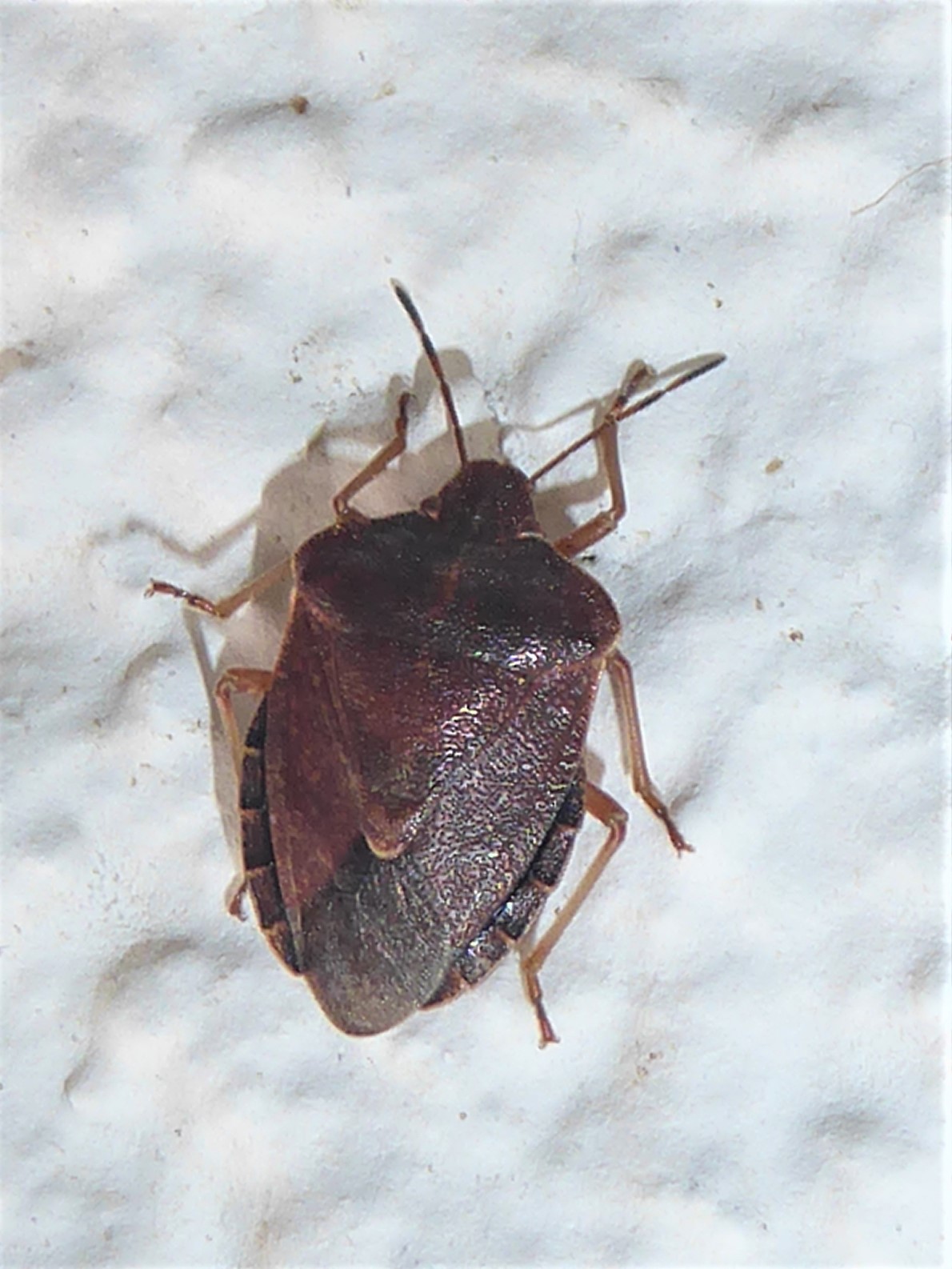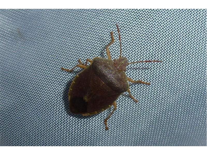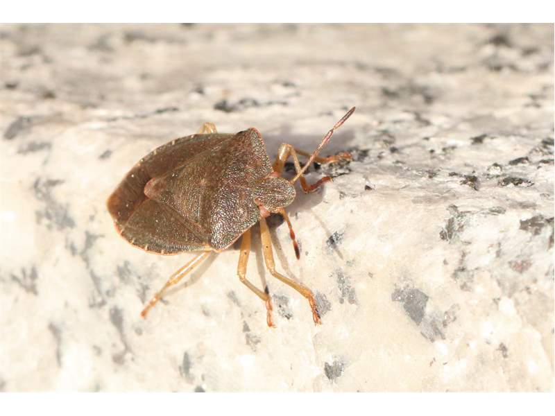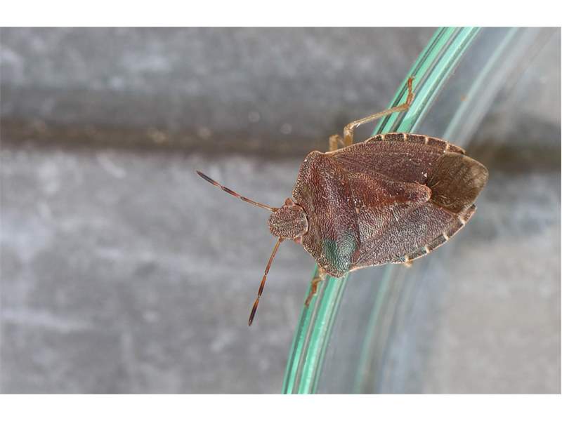 Grüne Stinkwanze (Palomena prasina (Linnaeus, 1761)), das zweite und dritte Fühlerglied sind annähernd gleich lang, im Unterschied zu Palomena viridissima, wo das dritte Fühlerglied kürzer als das zweite ist, am 1. Mai 2013 im Seifersdorfer Tal.