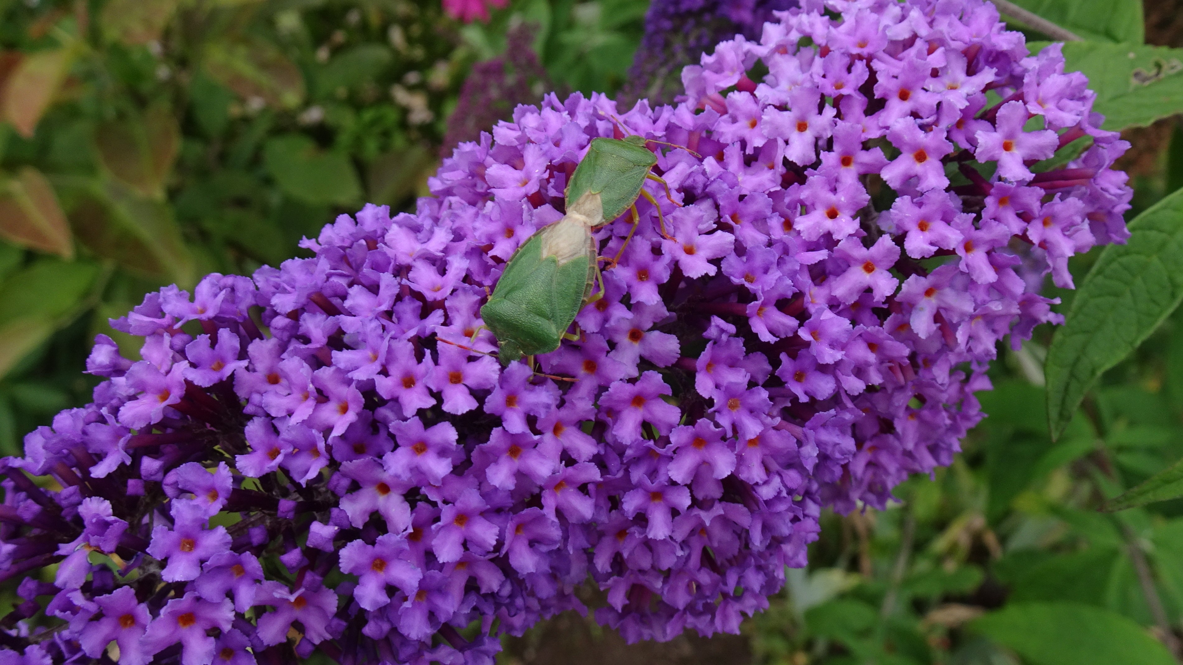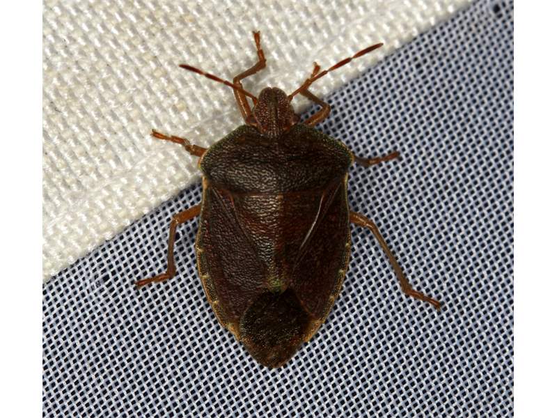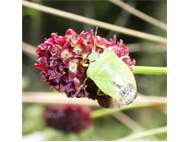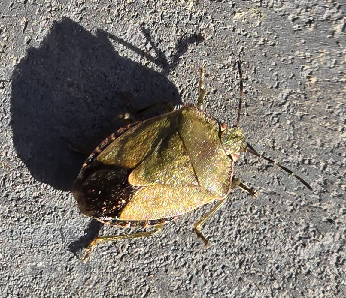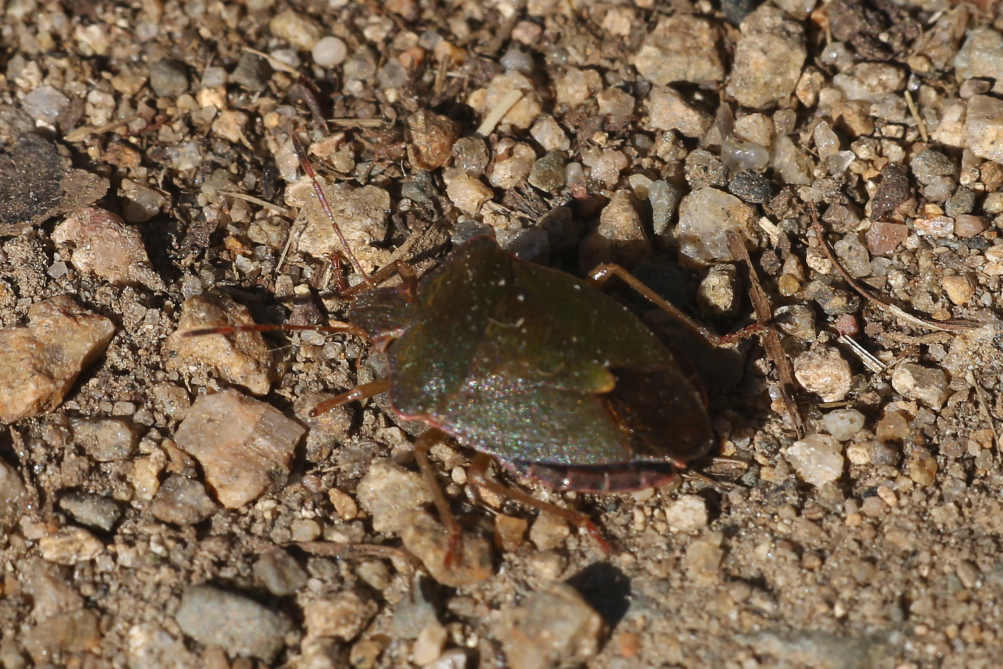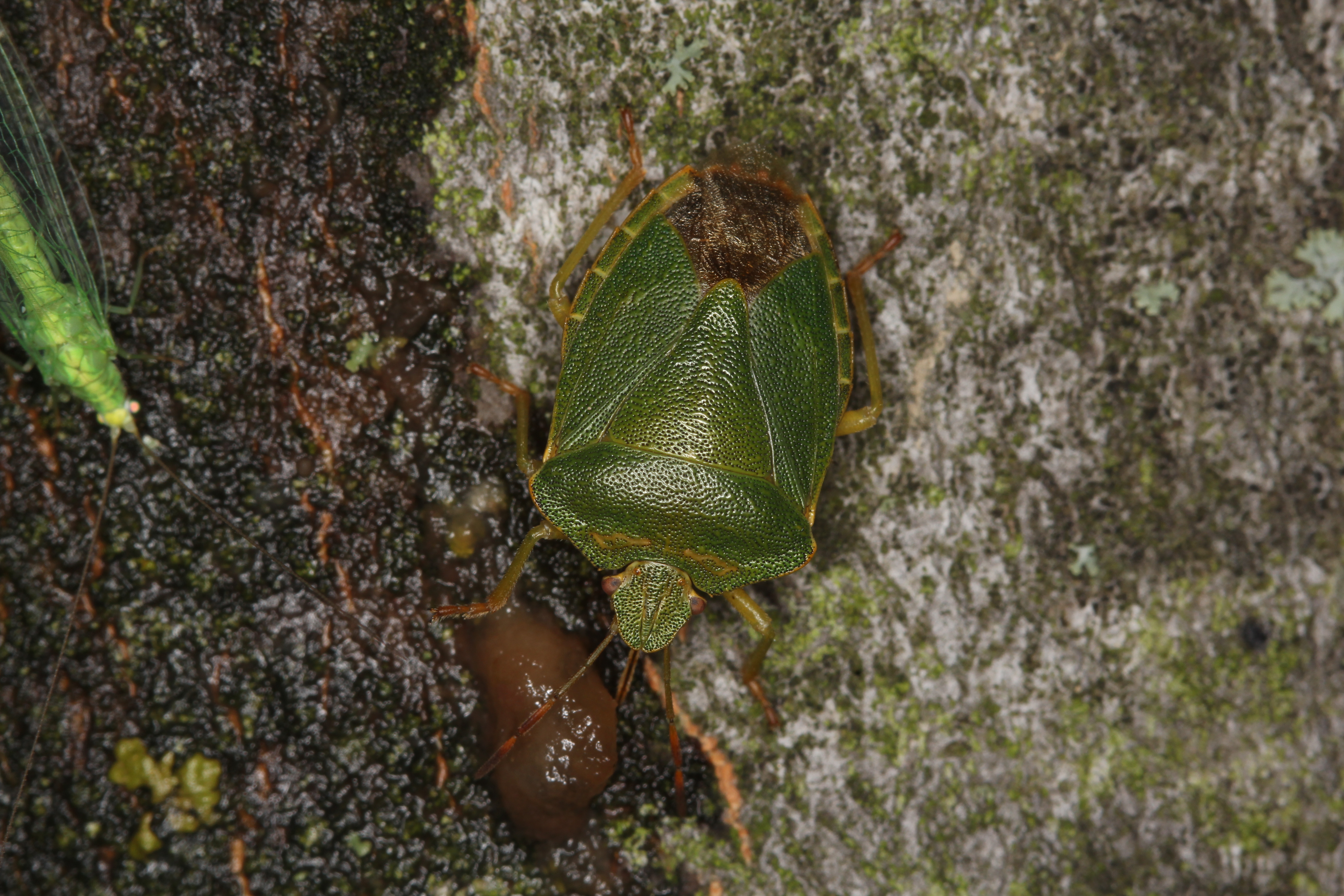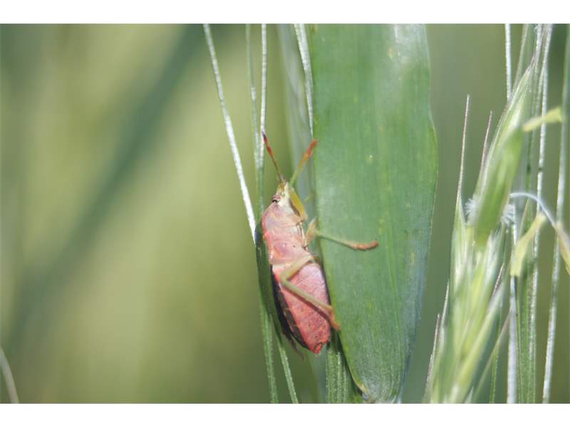 Grüne Stinkwanze (Palomena prasina (Linnaeus, 1761)), das zweite und dritte Fühlerglied sind annähernd gleich lang, im Unterschied zu Palomena viridissima, wo das dritte Fühlerglied kürzer als das zweite ist, am 1. Mai 2013 im Seifersdorfer Tal.