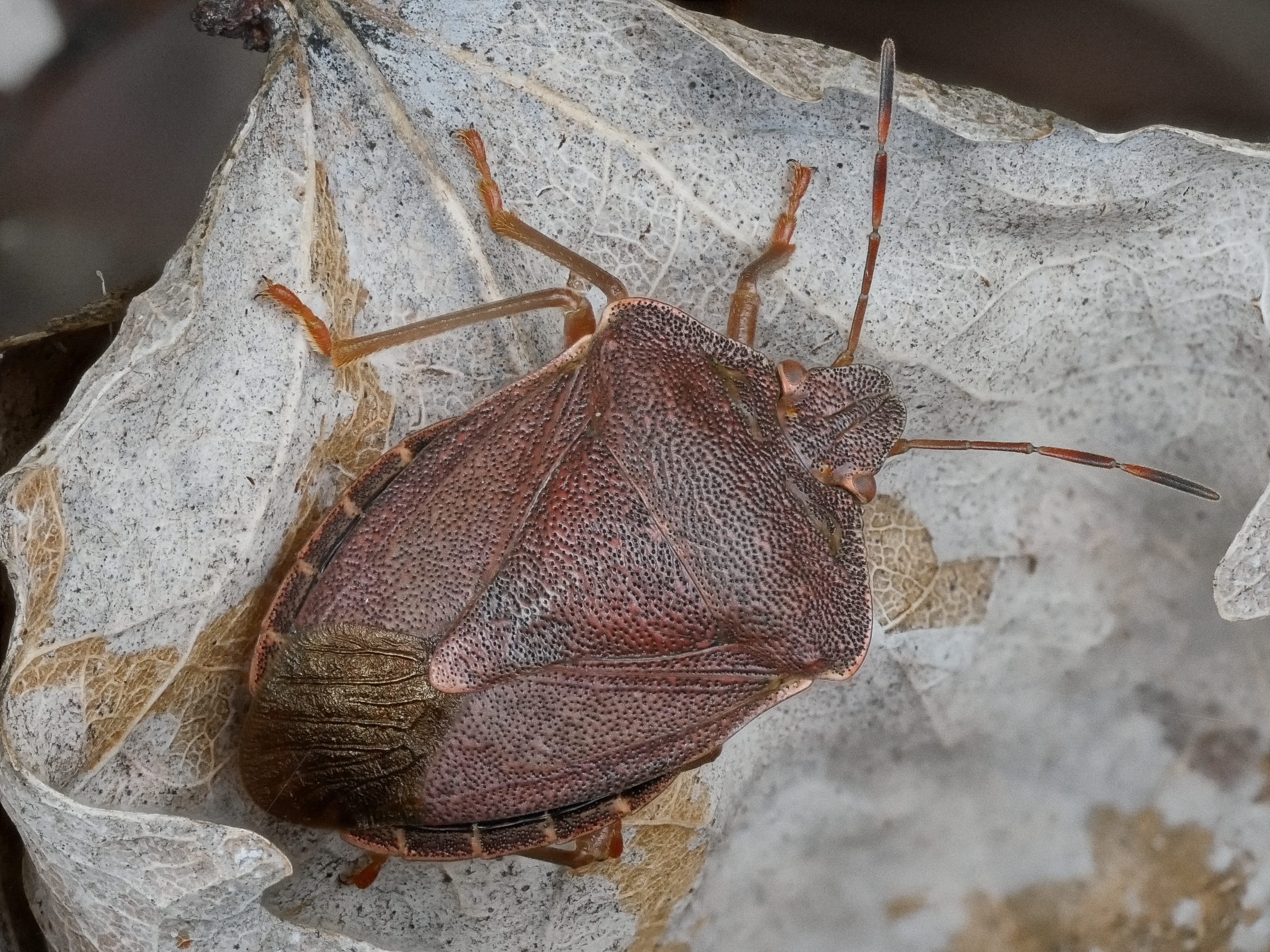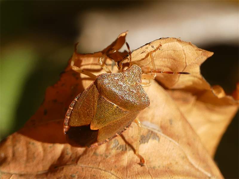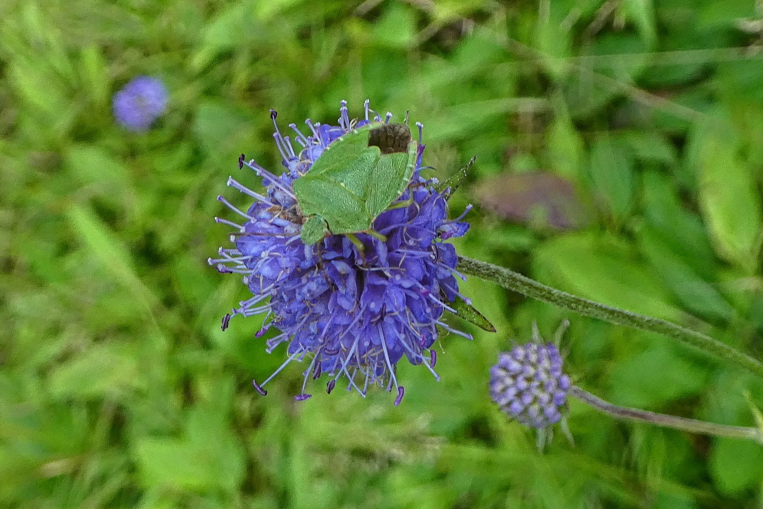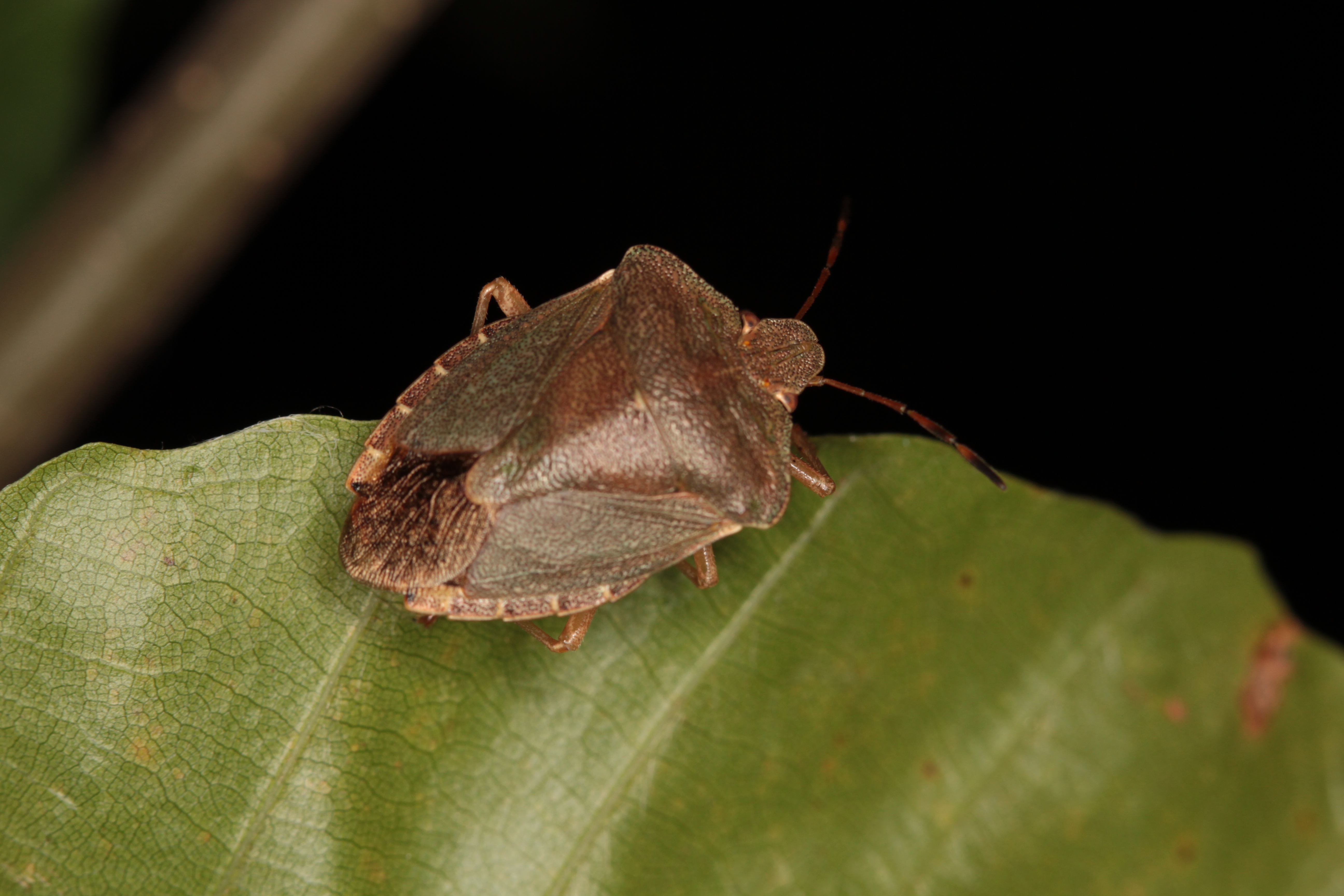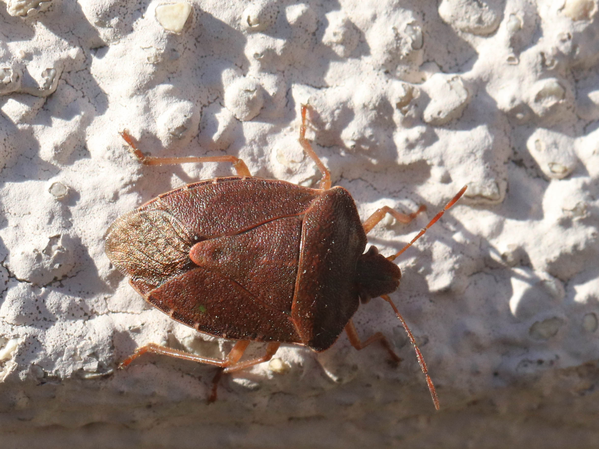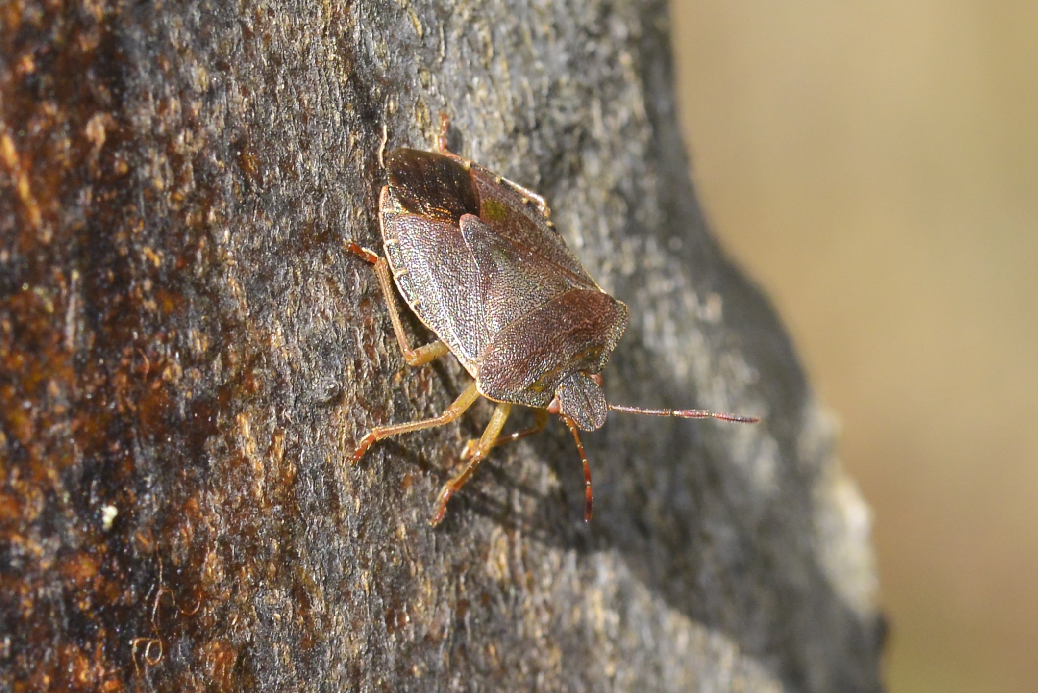 Grüne Stinkwanze (Palomena prasina (Linnaeus, 1761)), das zweite und dritte Fühlerglied sind annähernd gleich lang, im Unterschied zu Palomena viridissima, wo das dritte Fühlerglied kürzer als das zweite ist, am 1. Mai 2013 im Seifersdorfer Tal.