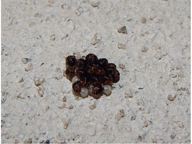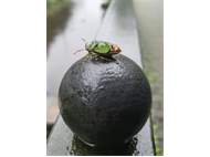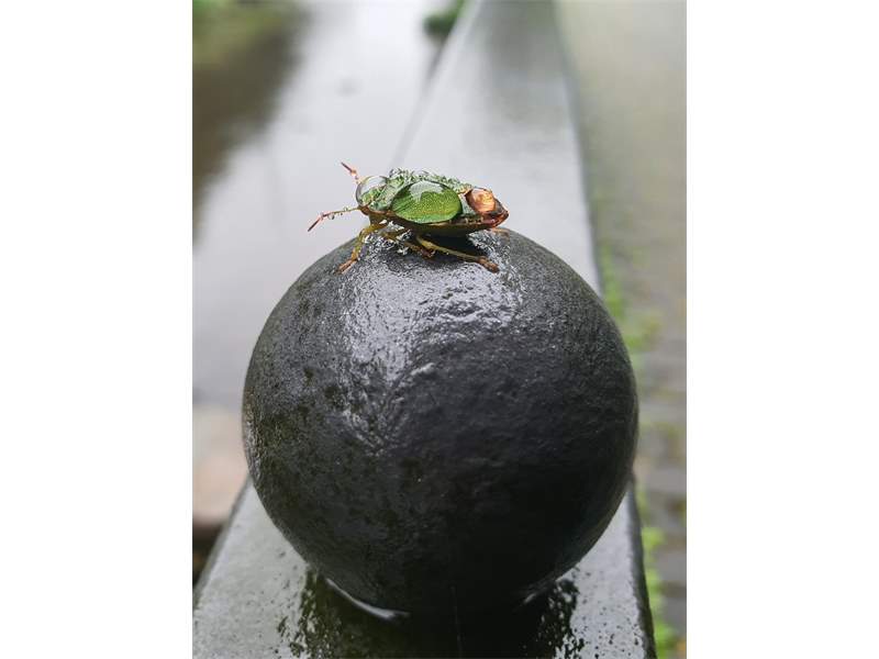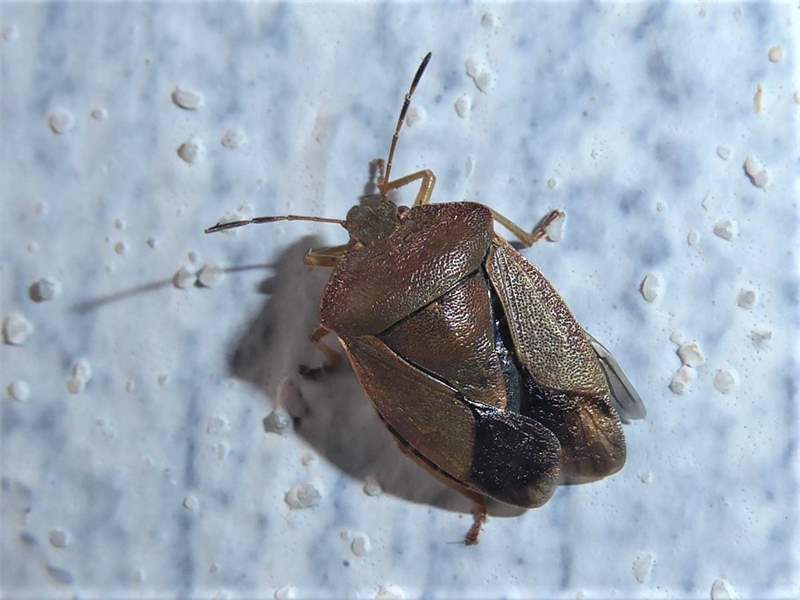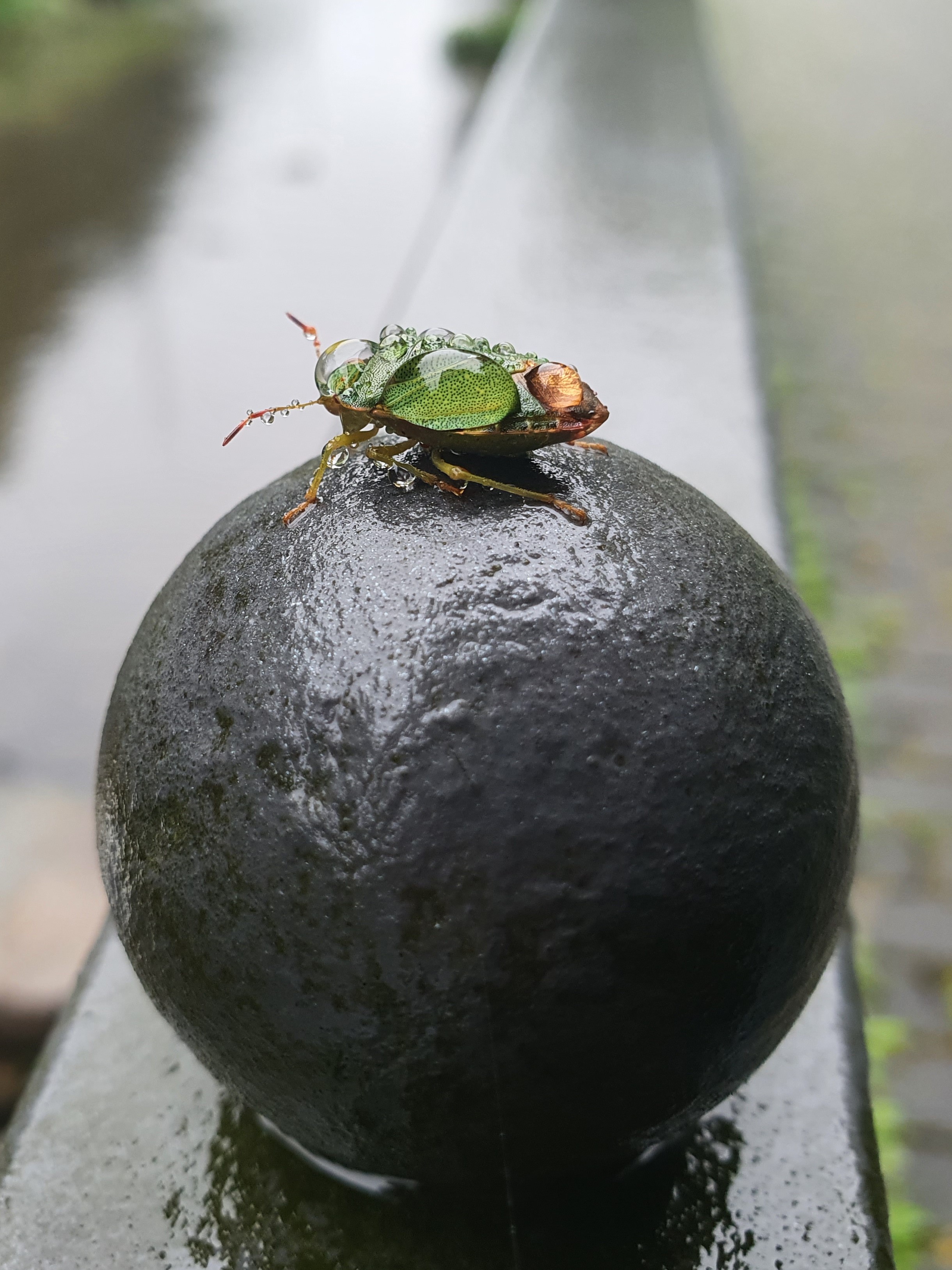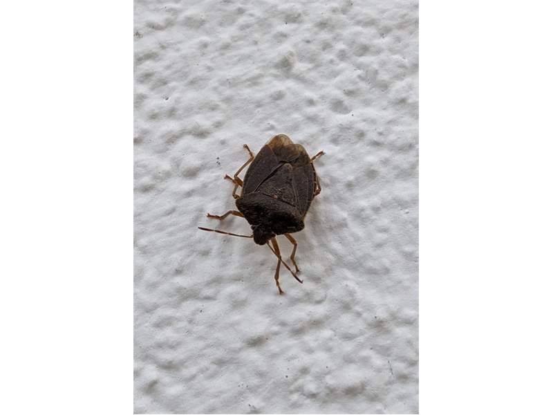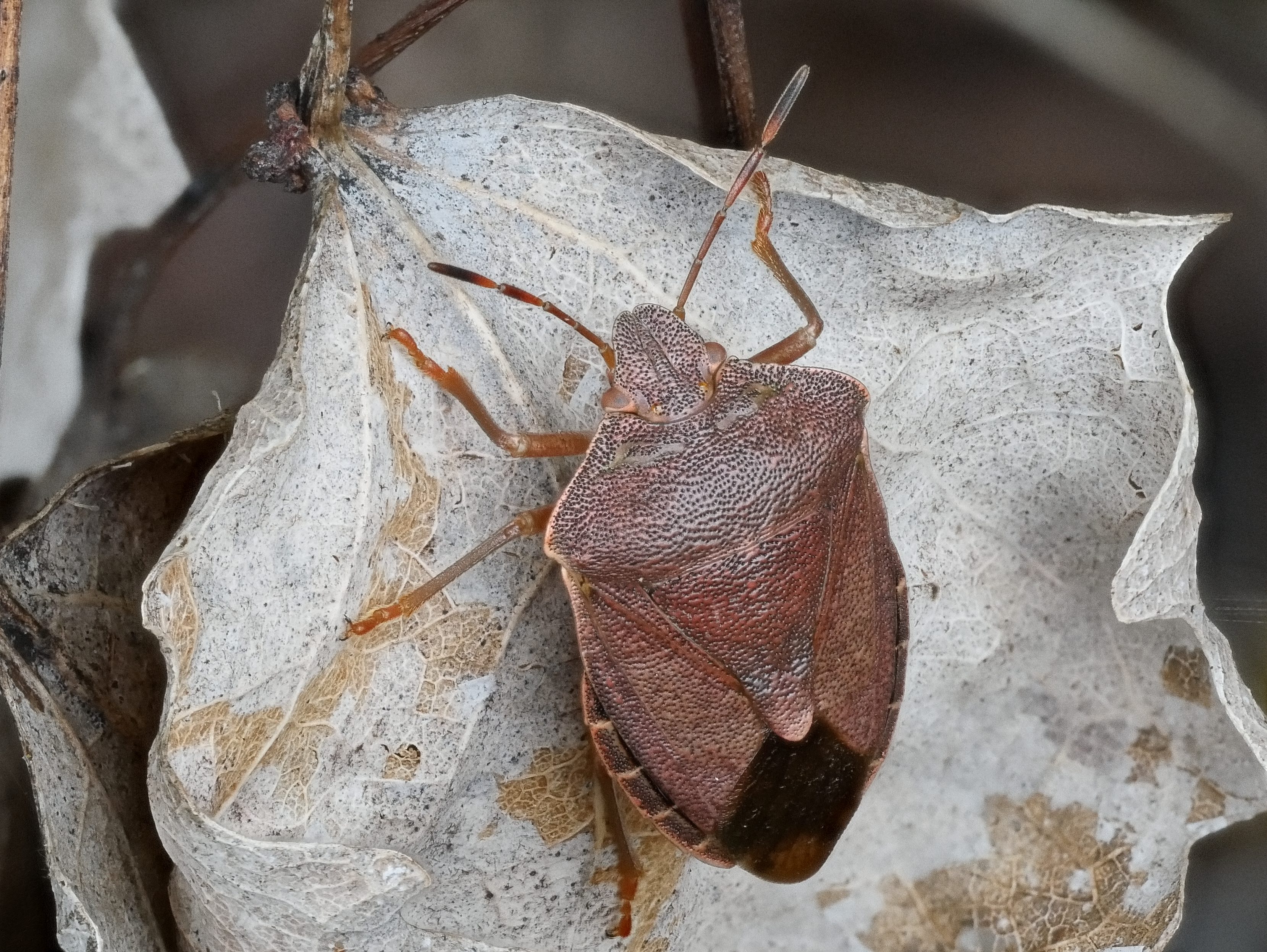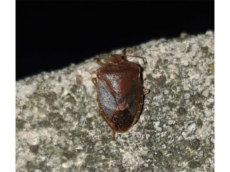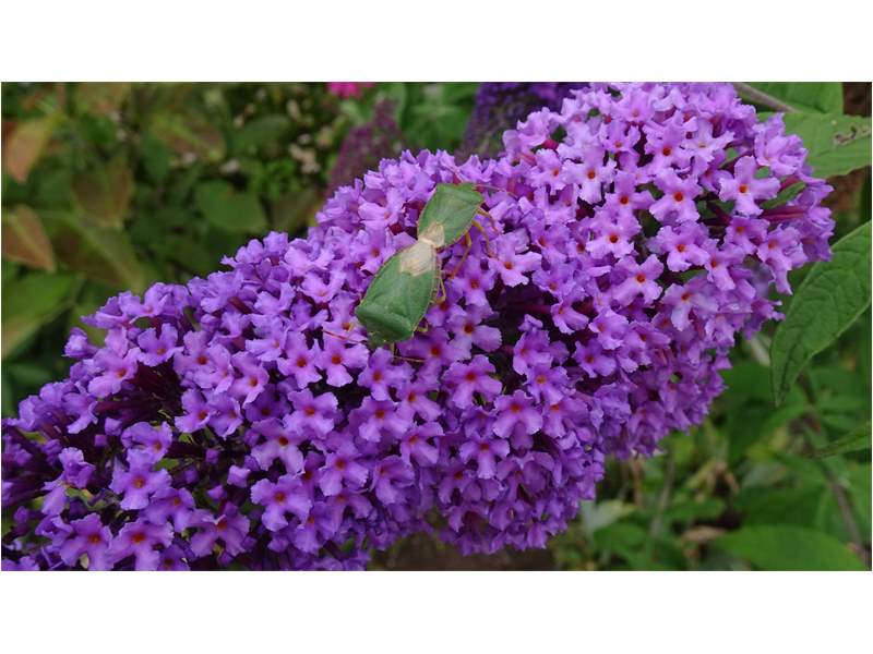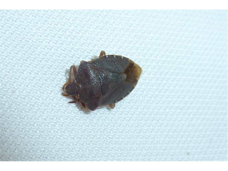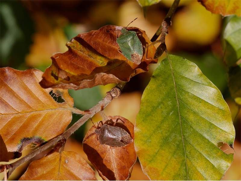 Grüne Stinkwanze (Palomena prasina (Linnaeus, 1761)), das zweite und dritte Fühlerglied sind annähernd gleich lang, im Unterschied zu Palomena viridissima, wo das dritte Fühlerglied kürzer als das zweite ist, am 1. Mai 2013 im Seifersdorfer Tal.