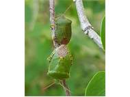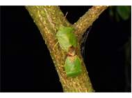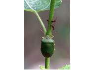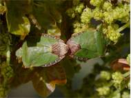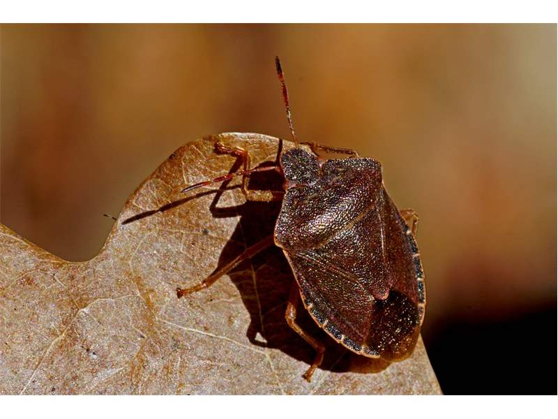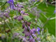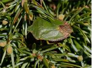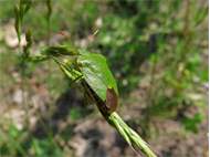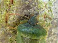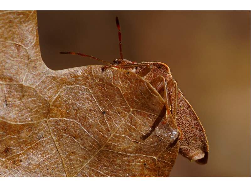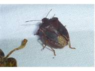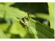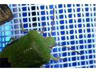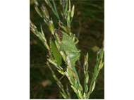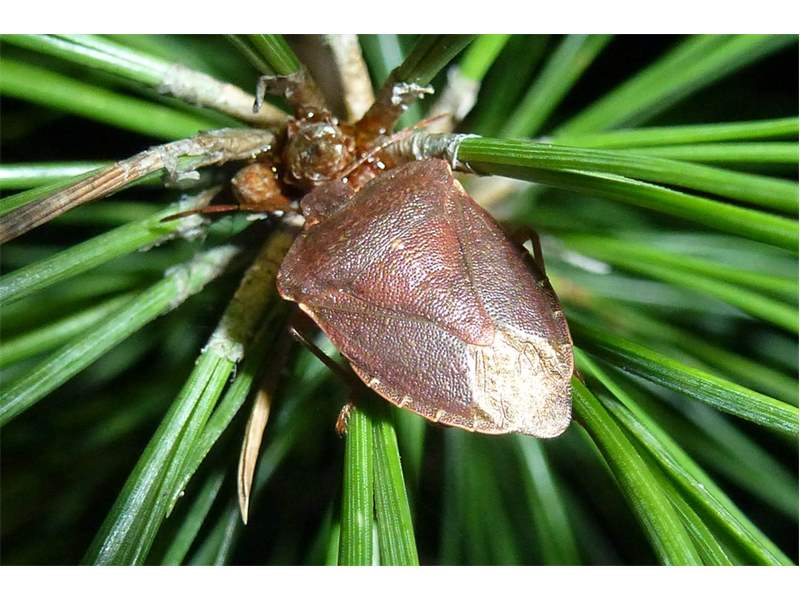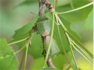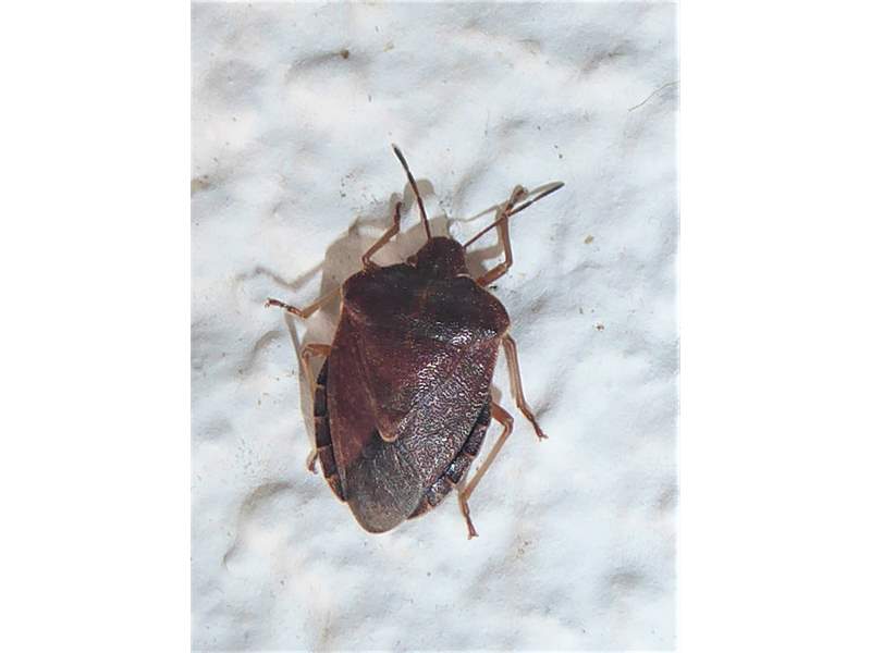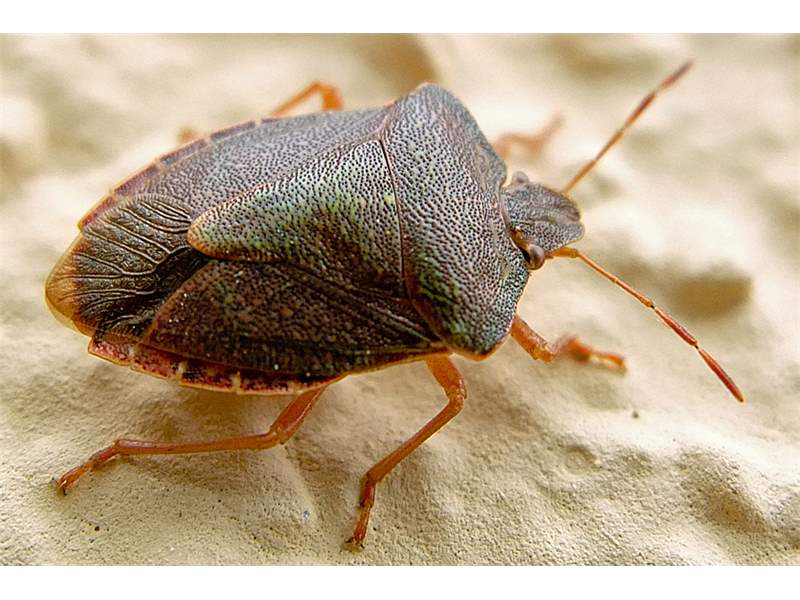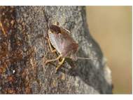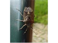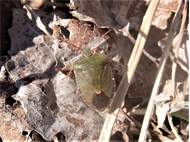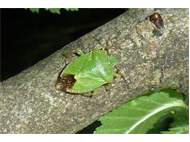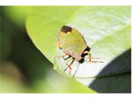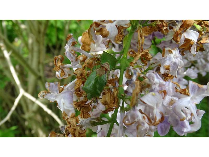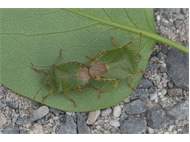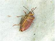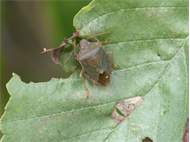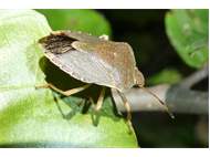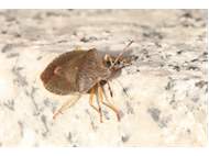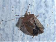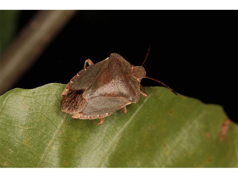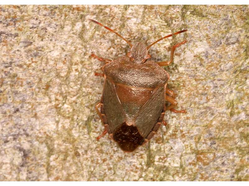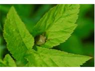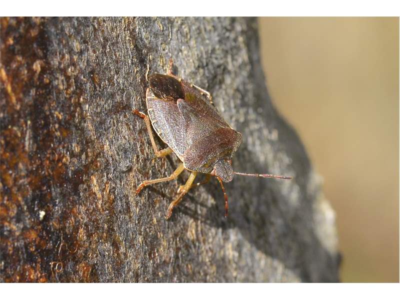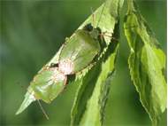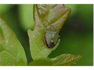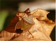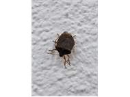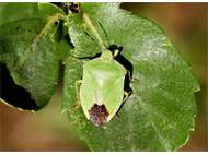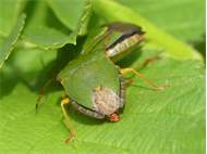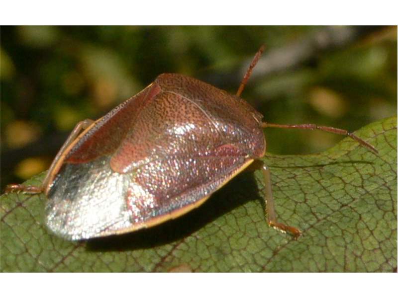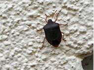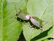 Grüne Stinkwanze (Palomena prasina (Linnaeus, 1761)), das zweite und dritte Fühlerglied sind annähernd gleich lang, im Unterschied zu Palomena viridissima, wo das dritte Fühlerglied kürzer als das zweite ist, am 1. Mai 2013 im Seifersdorfer Tal. (© Udo Lemke)( Bild vergrößern)