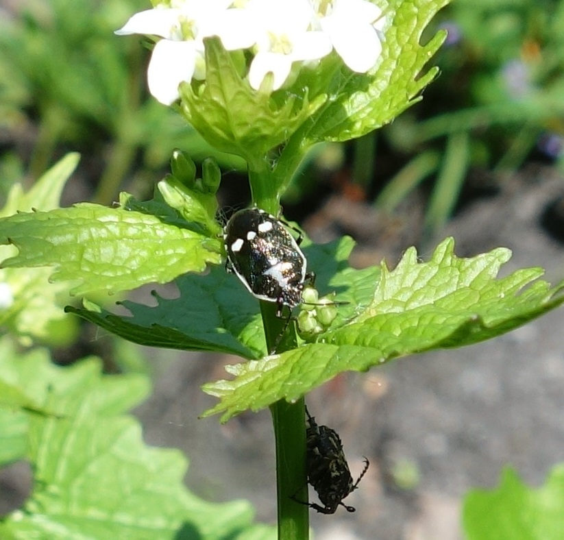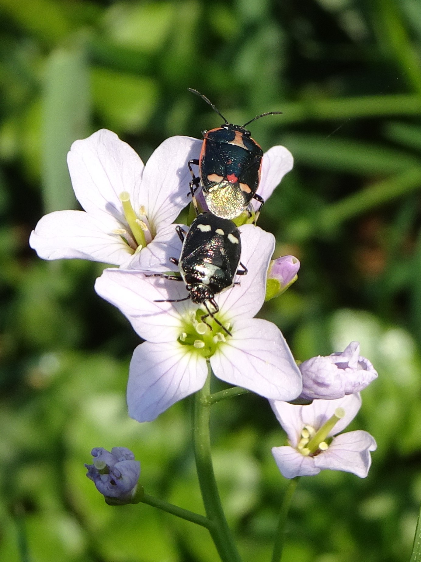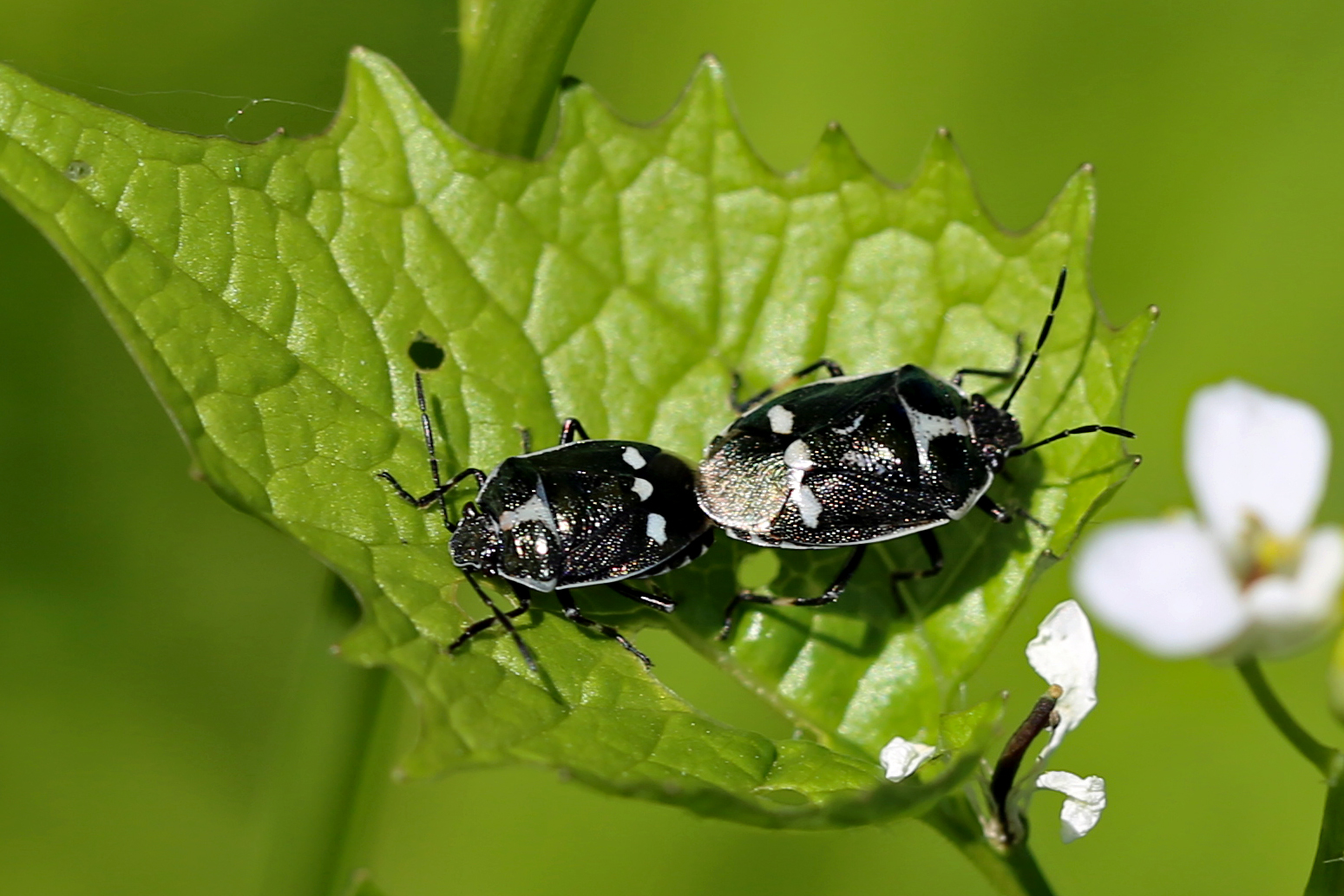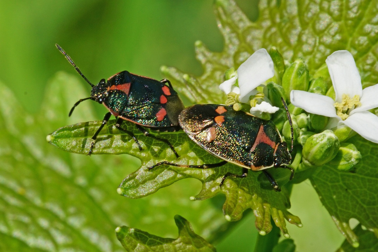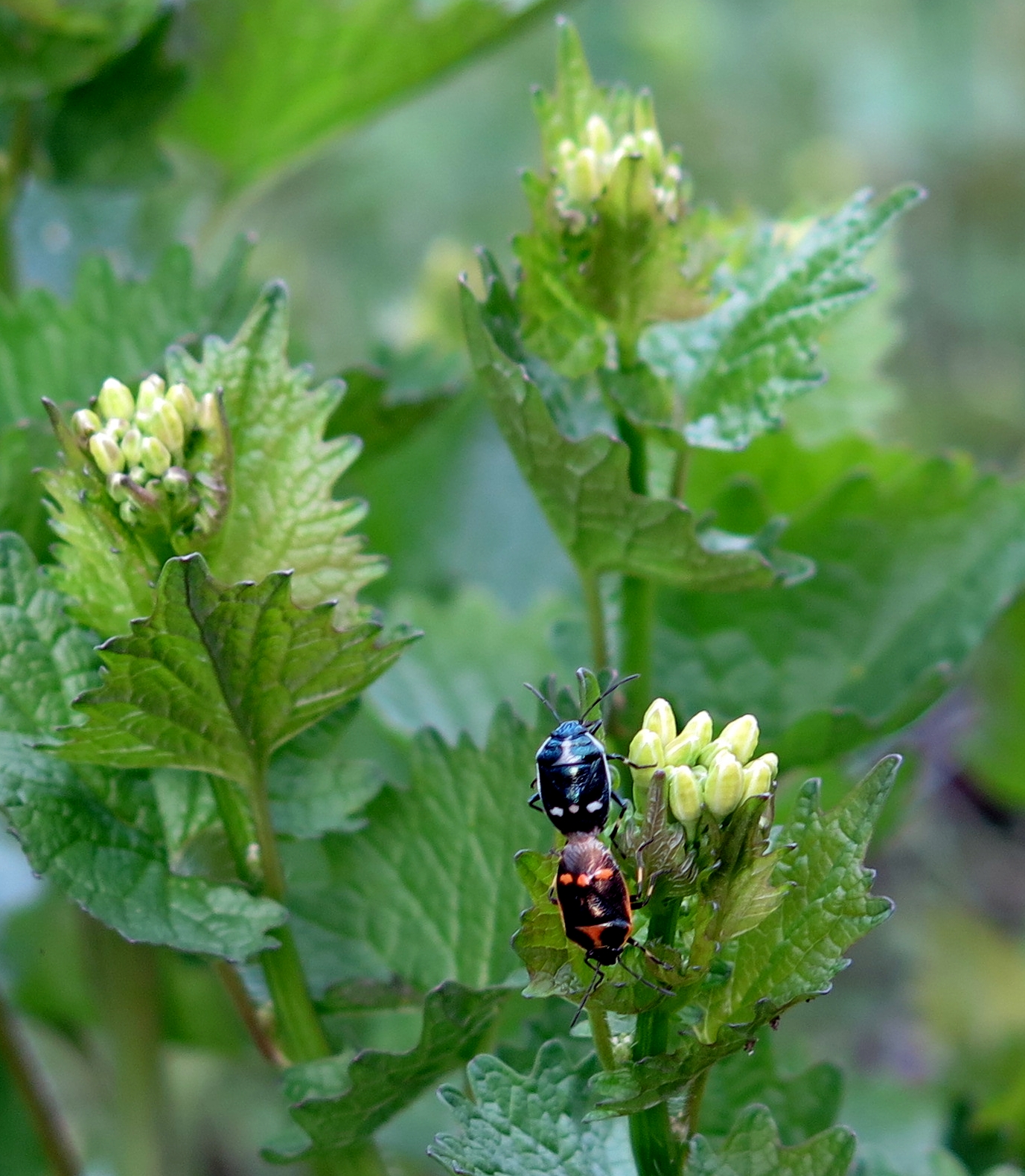 auf Alliaria petiolata in Kopula (oben W, unten M), Oberes Elbtal, Waldrand am Kohlberg, Pirna, 30.04.2020
