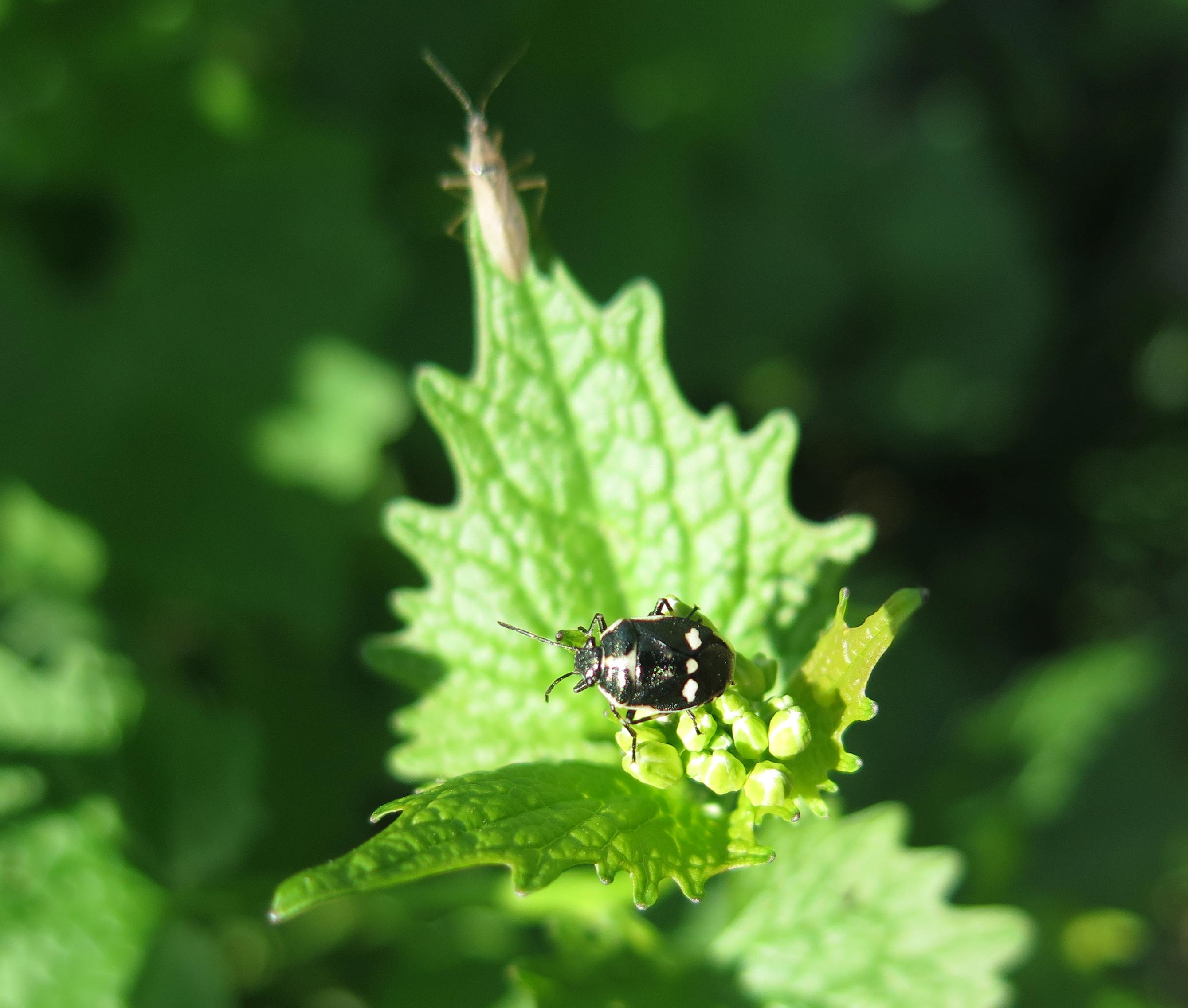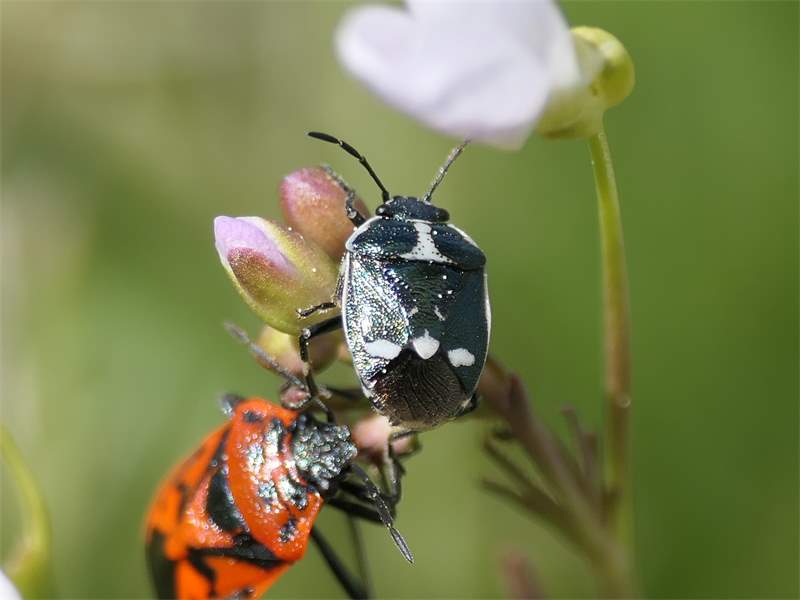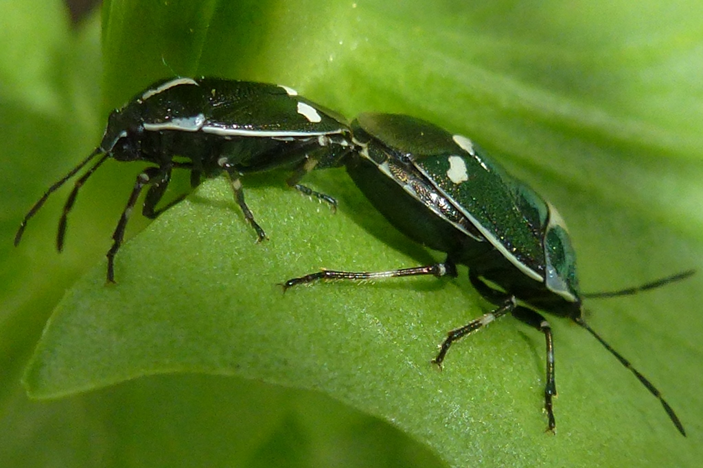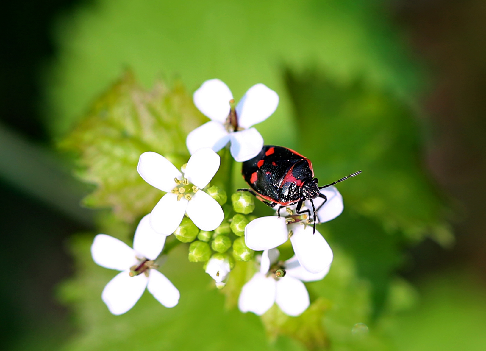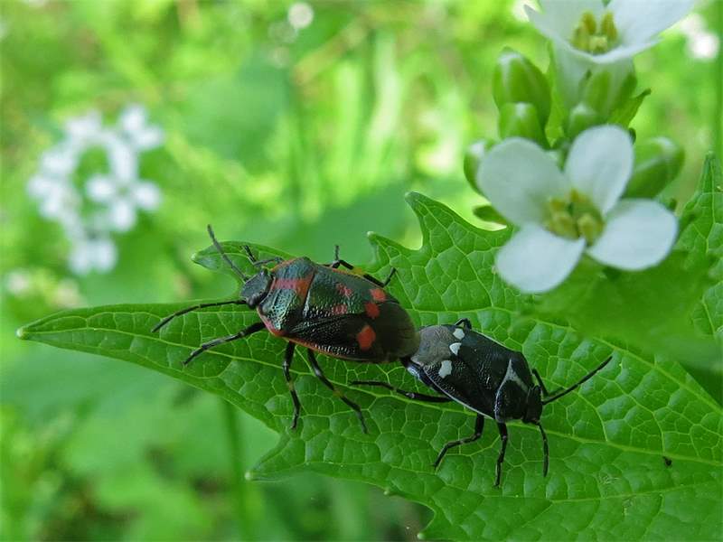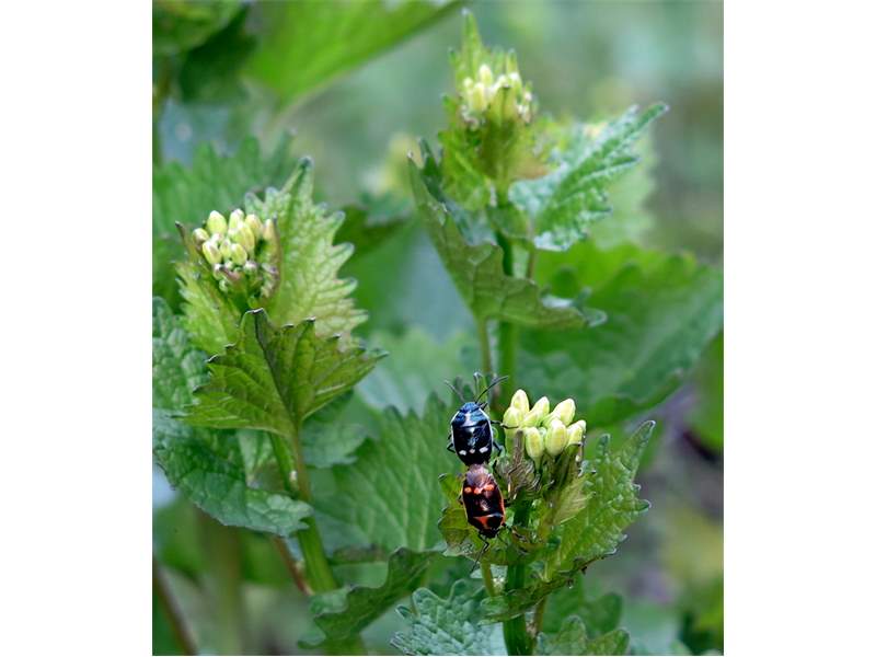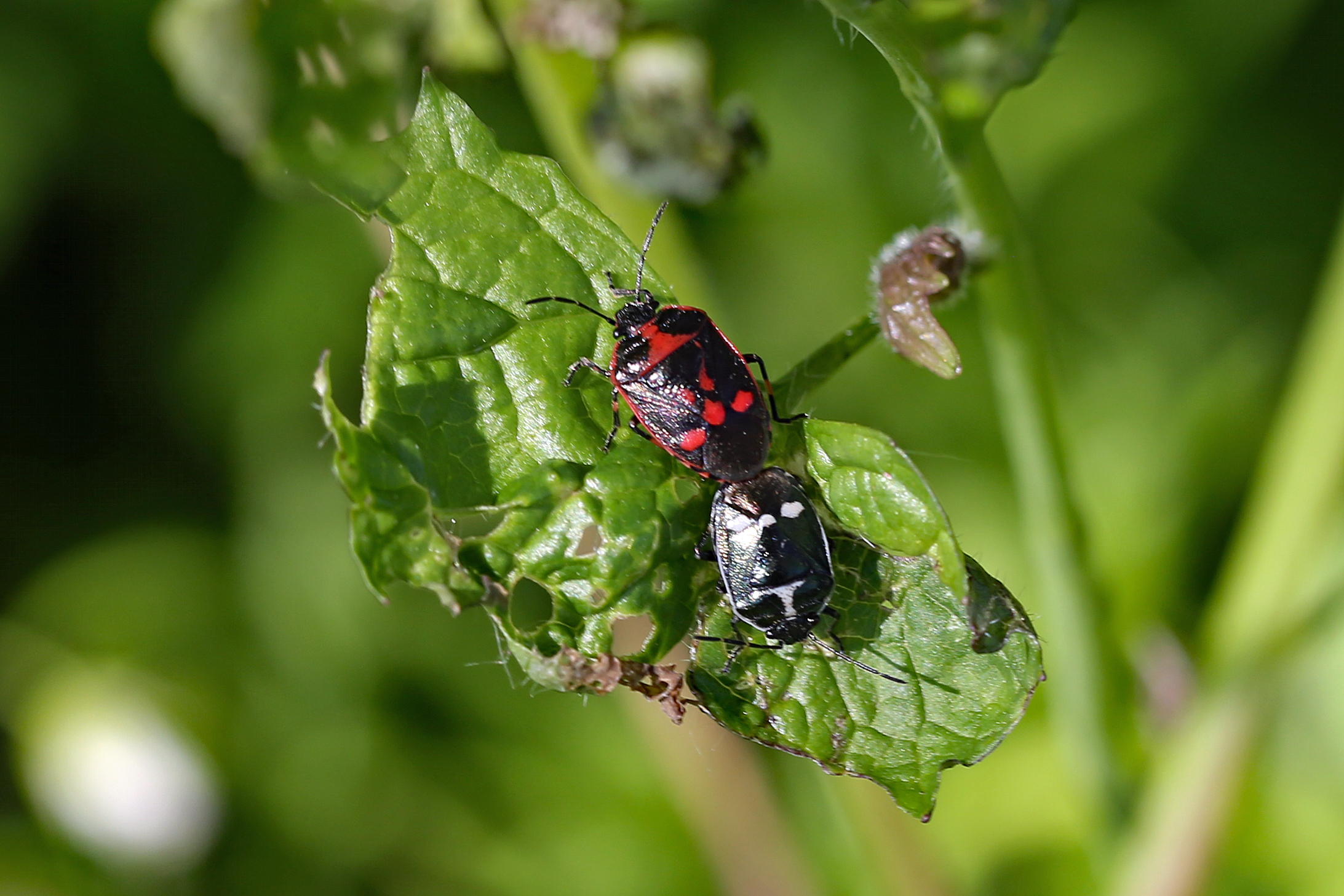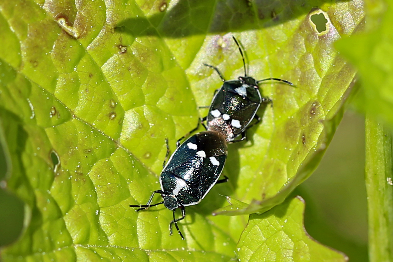 auf Alliaria petiolata in Kopula (oben W, unten M), Oberes Elbtal, Waldrand am Kohlberg, Pirna, 30.04.2020