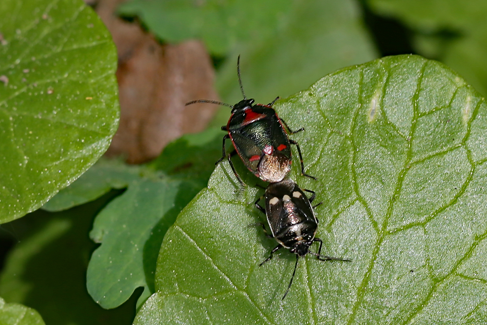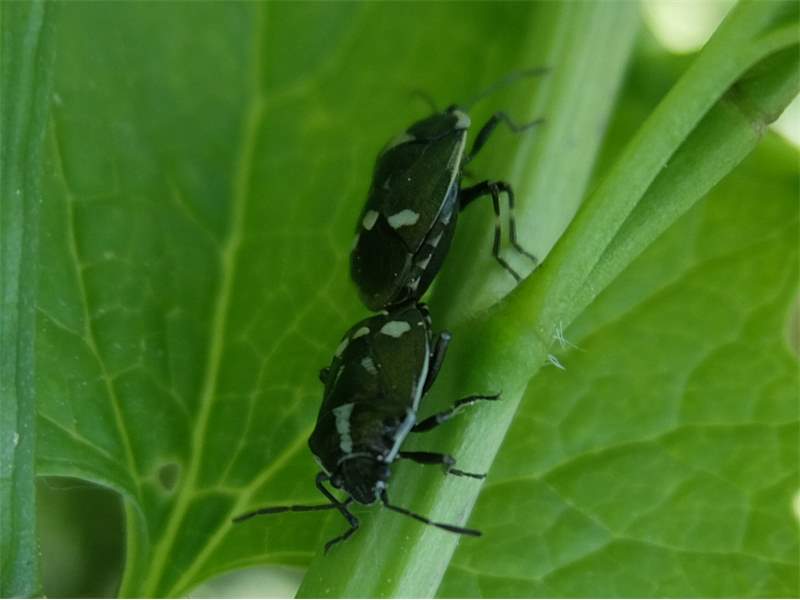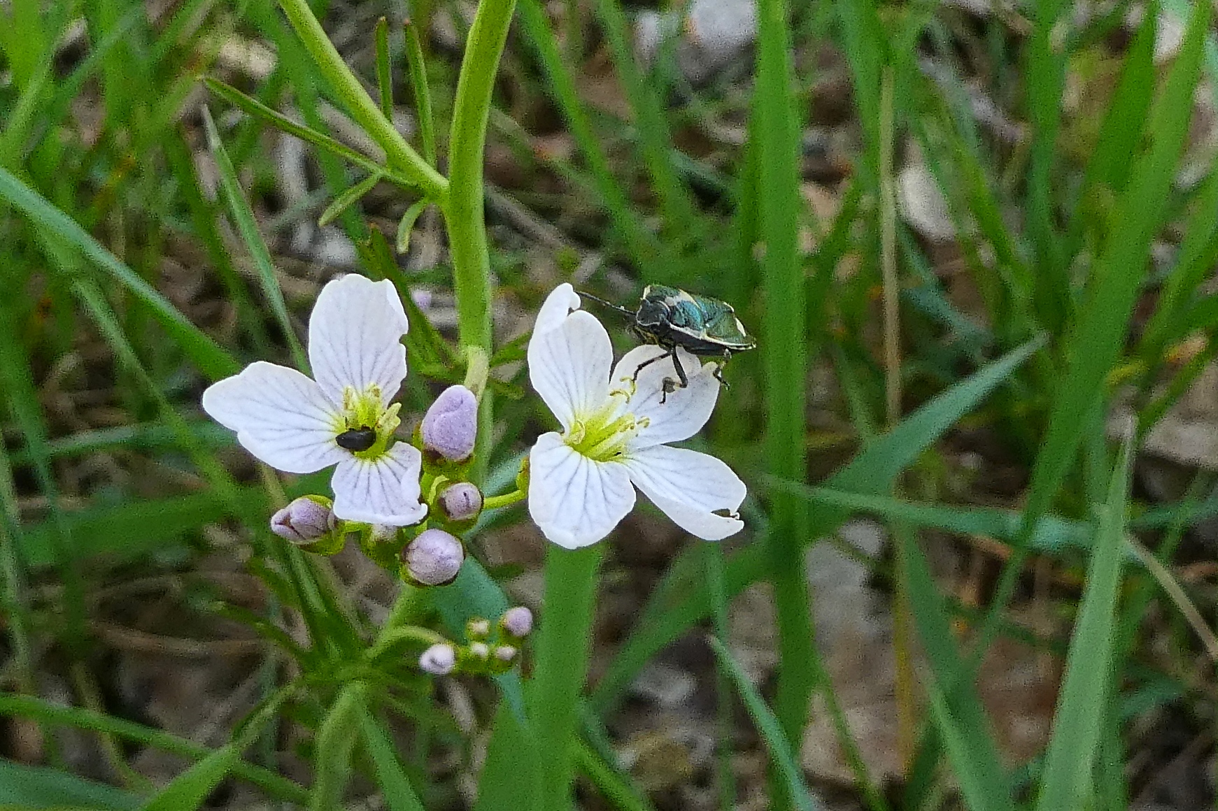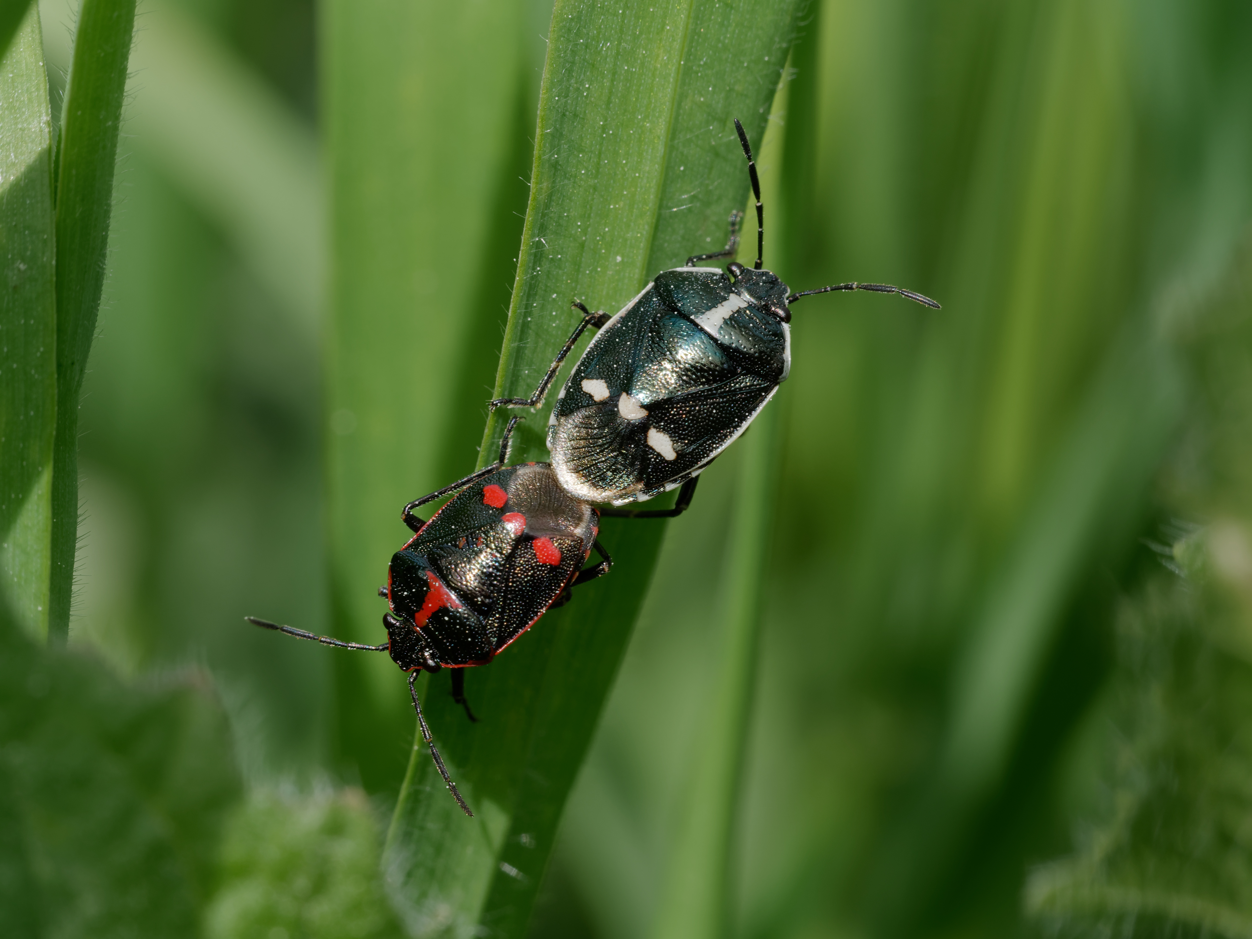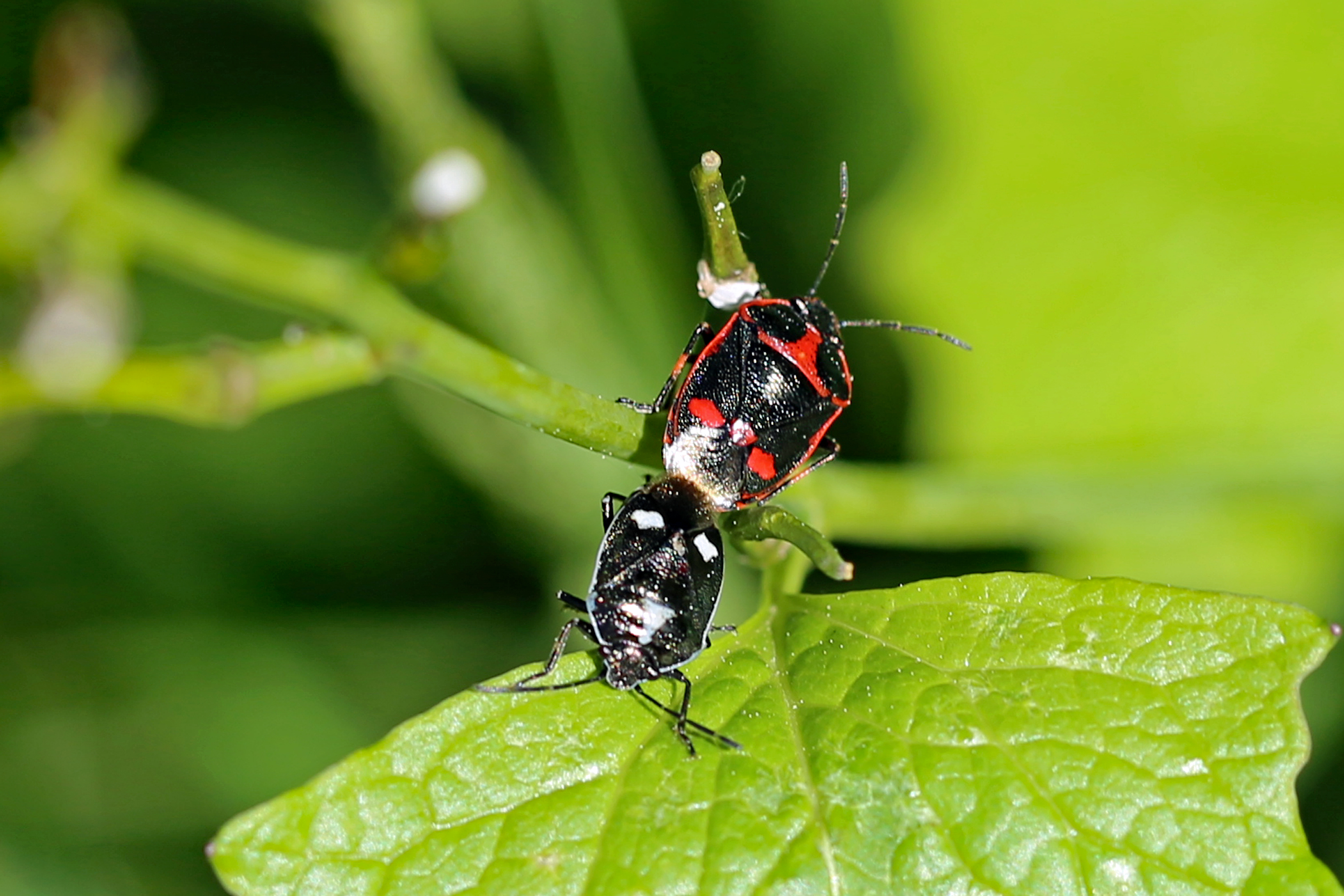 auf Alliaria petiolata in Kopula (oben W, unten M), Oberes Elbtal, Waldrand am Kohlberg, Pirna, 30.04.2020