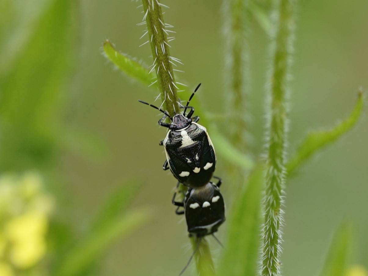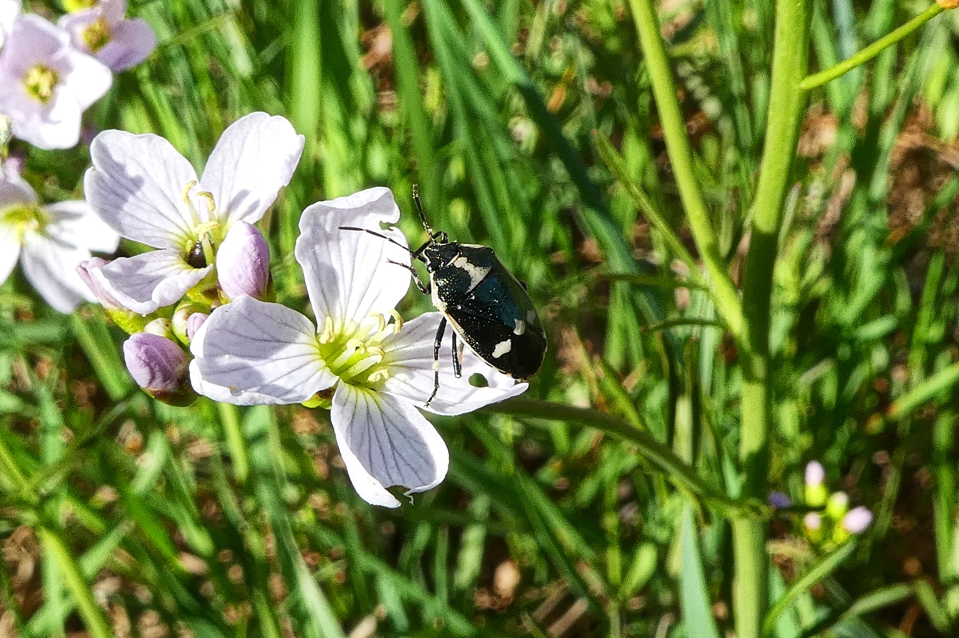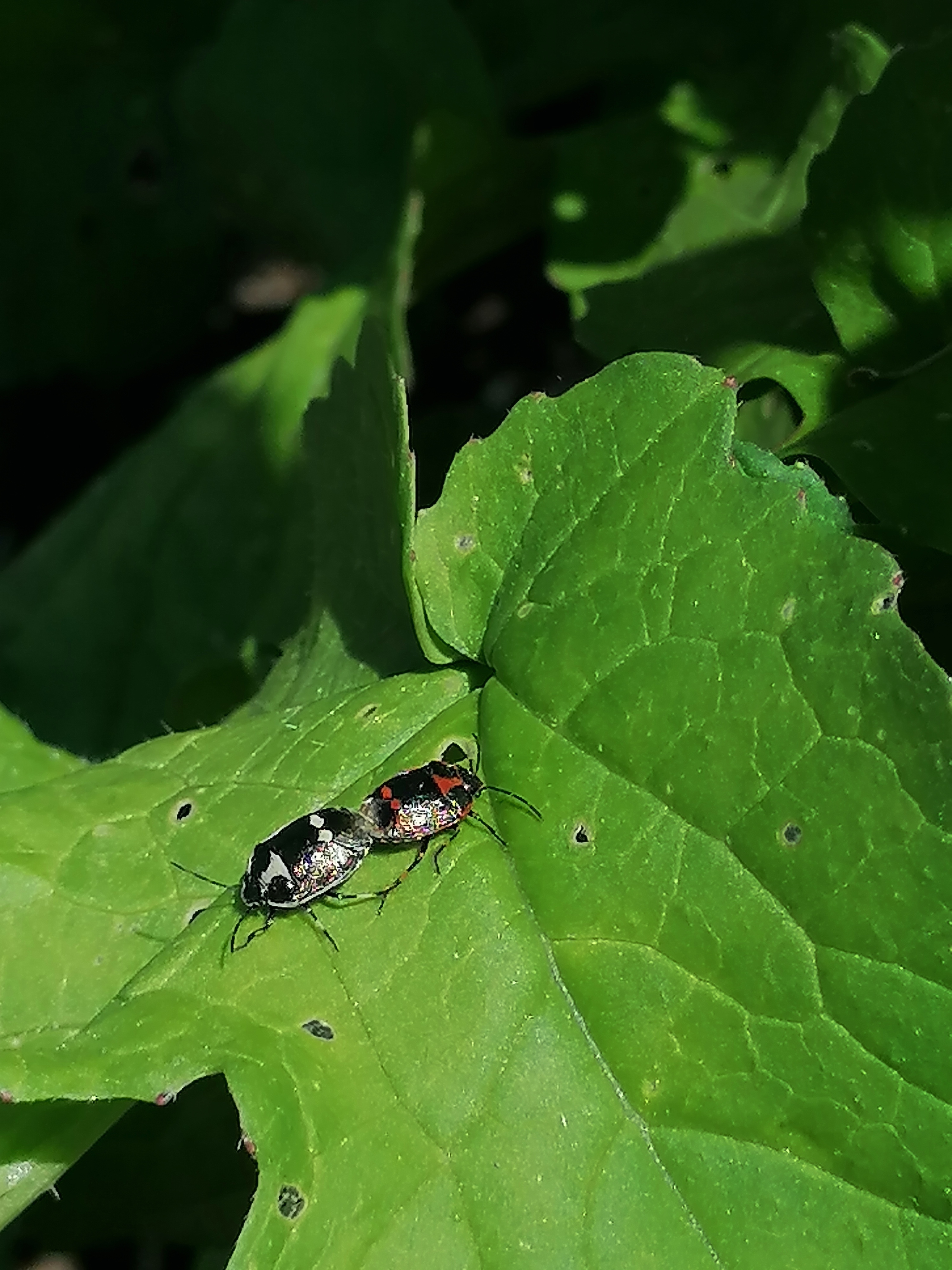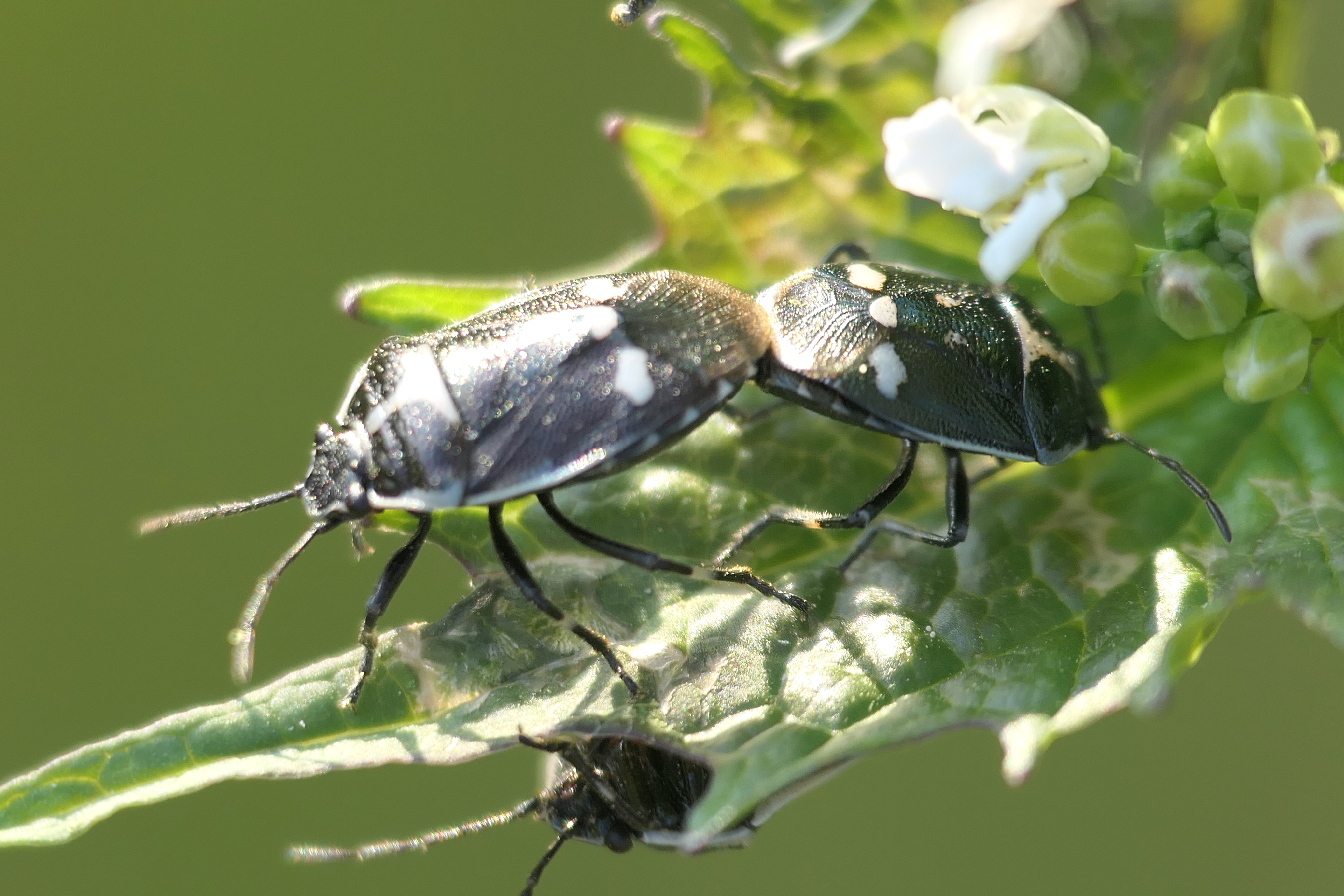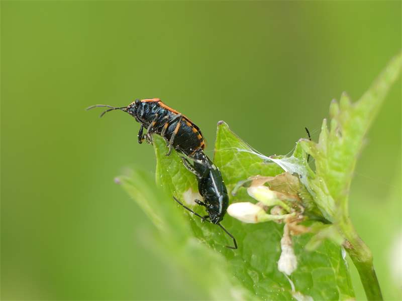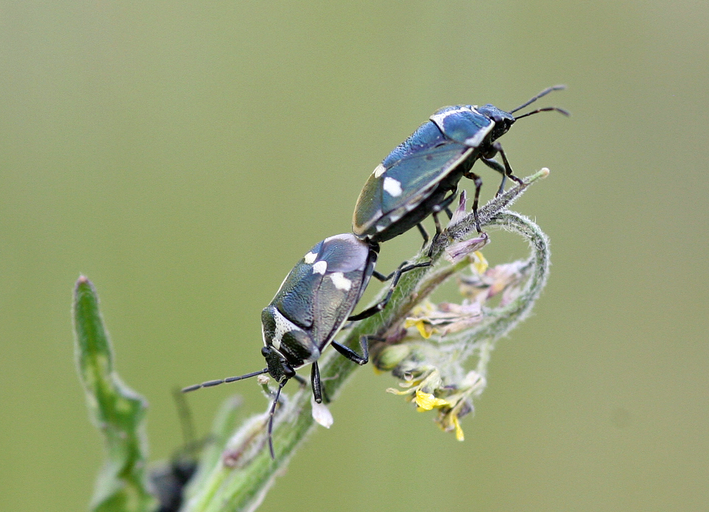 auf Alliaria petiolata in Kopula (oben W, unten M), Oberes Elbtal, Waldrand am Kohlberg, Pirna, 30.04.2020