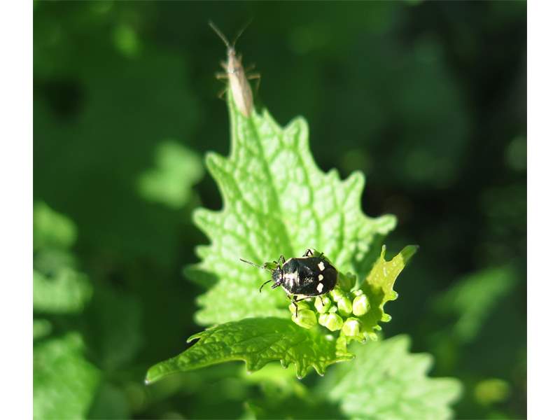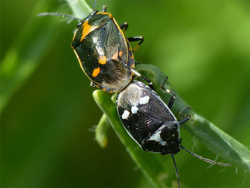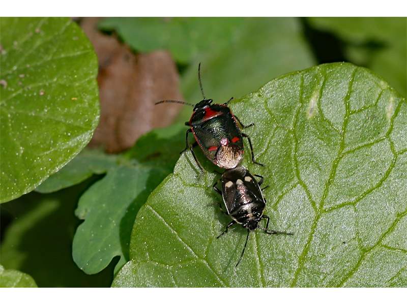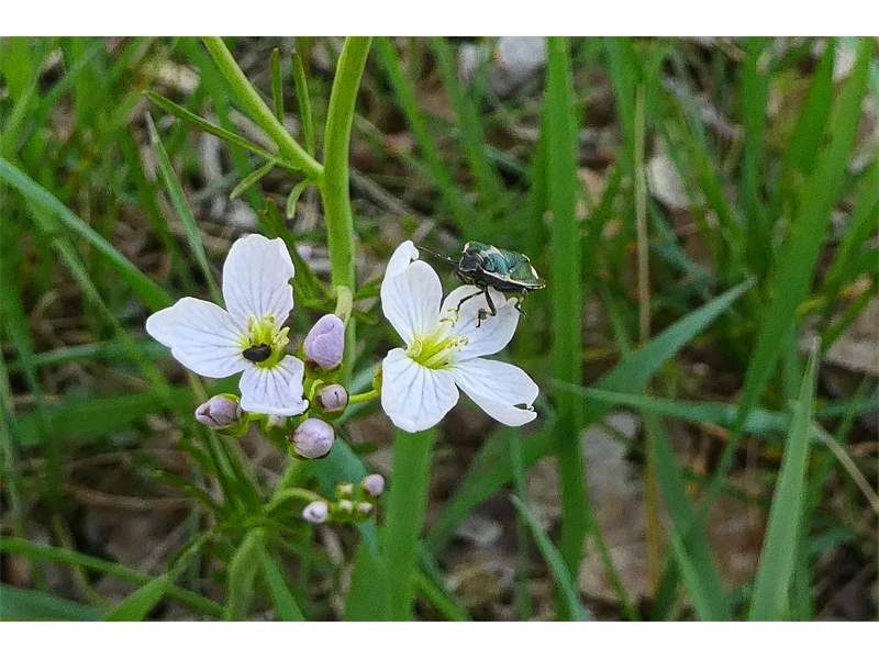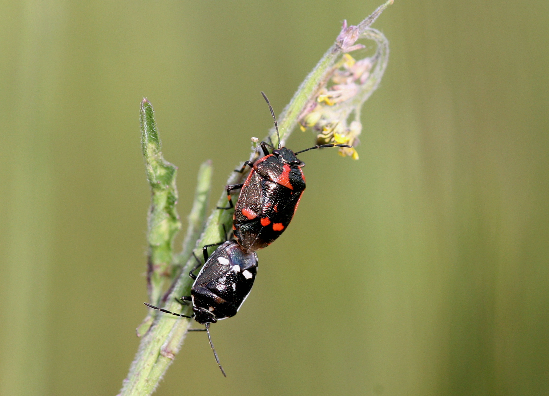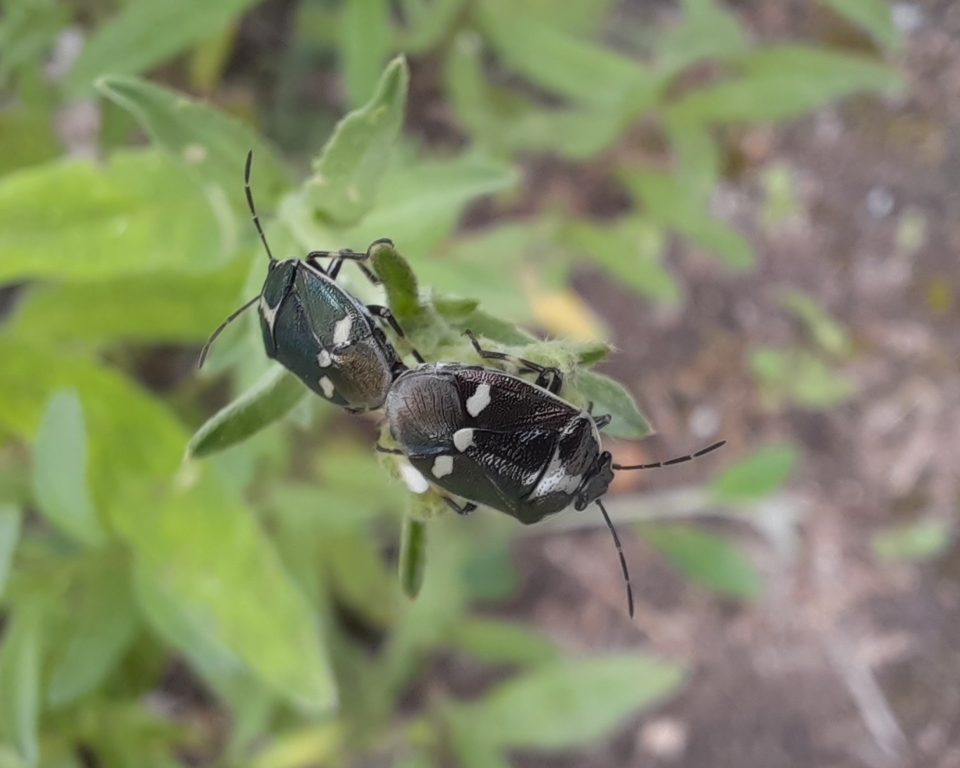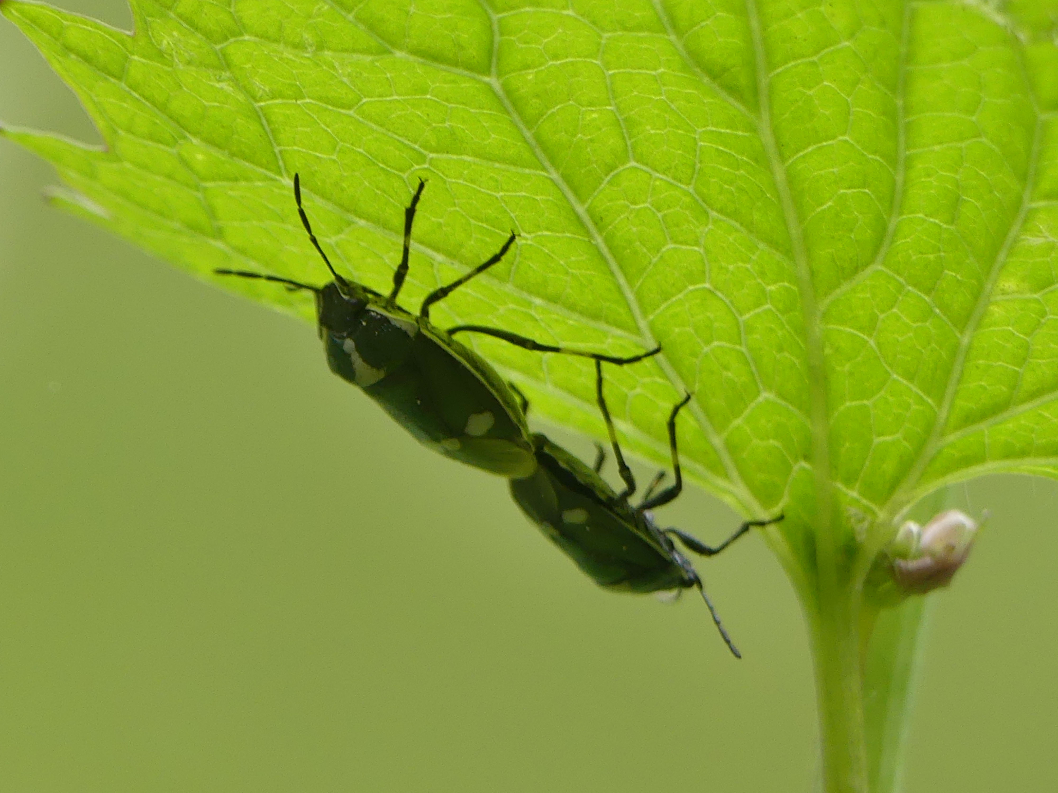 auf Alliaria petiolata in Kopula (oben W, unten M), Oberes Elbtal, Waldrand am Kohlberg, Pirna, 30.04.2020