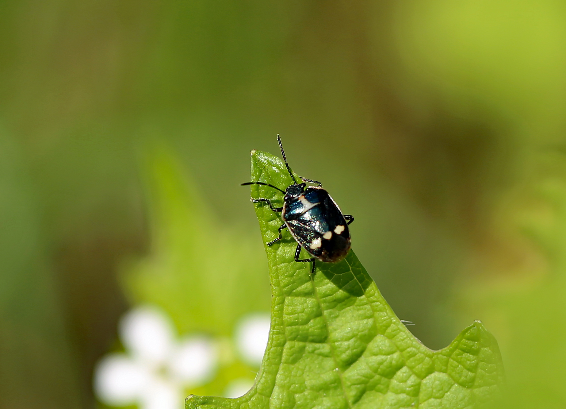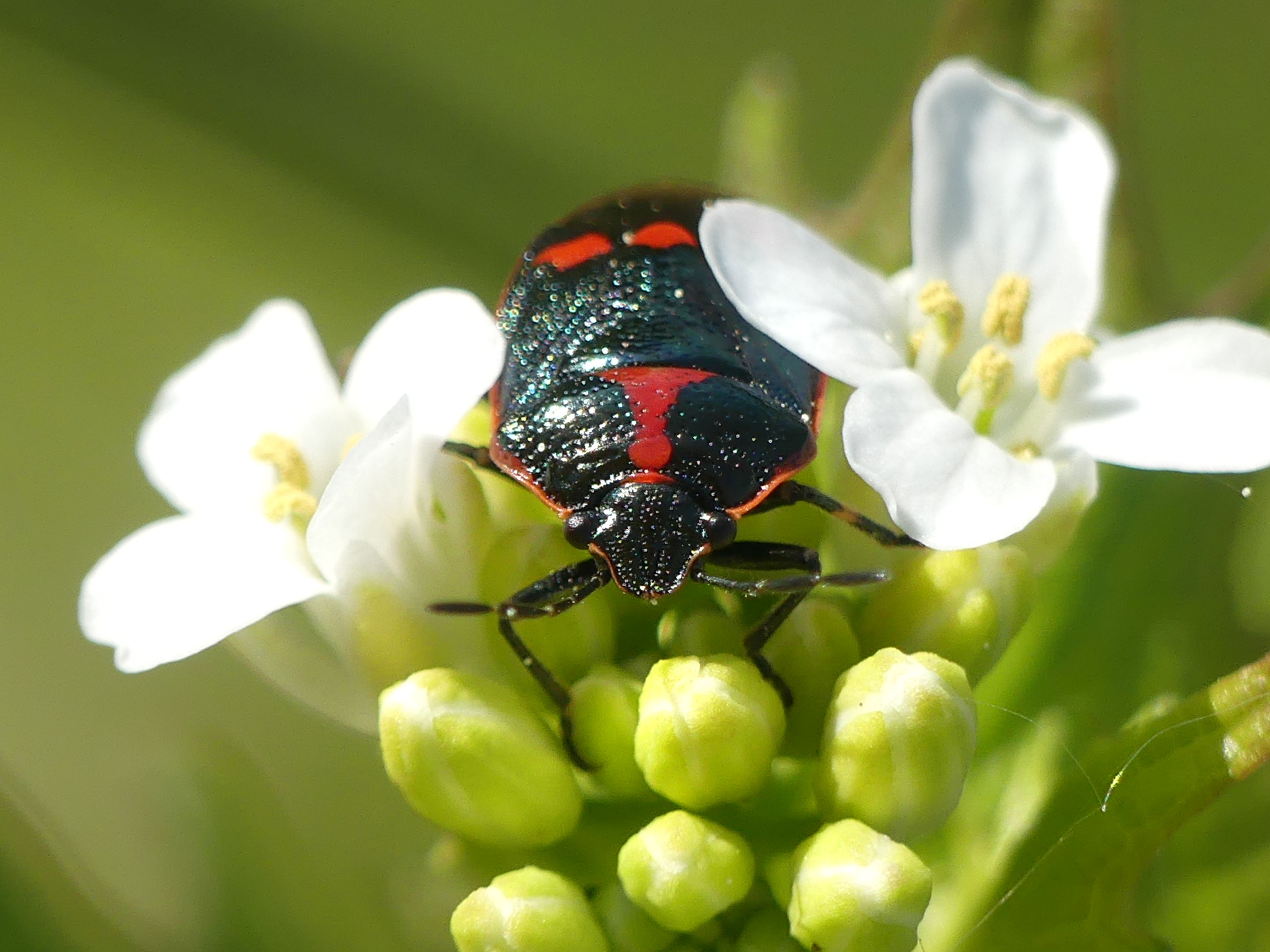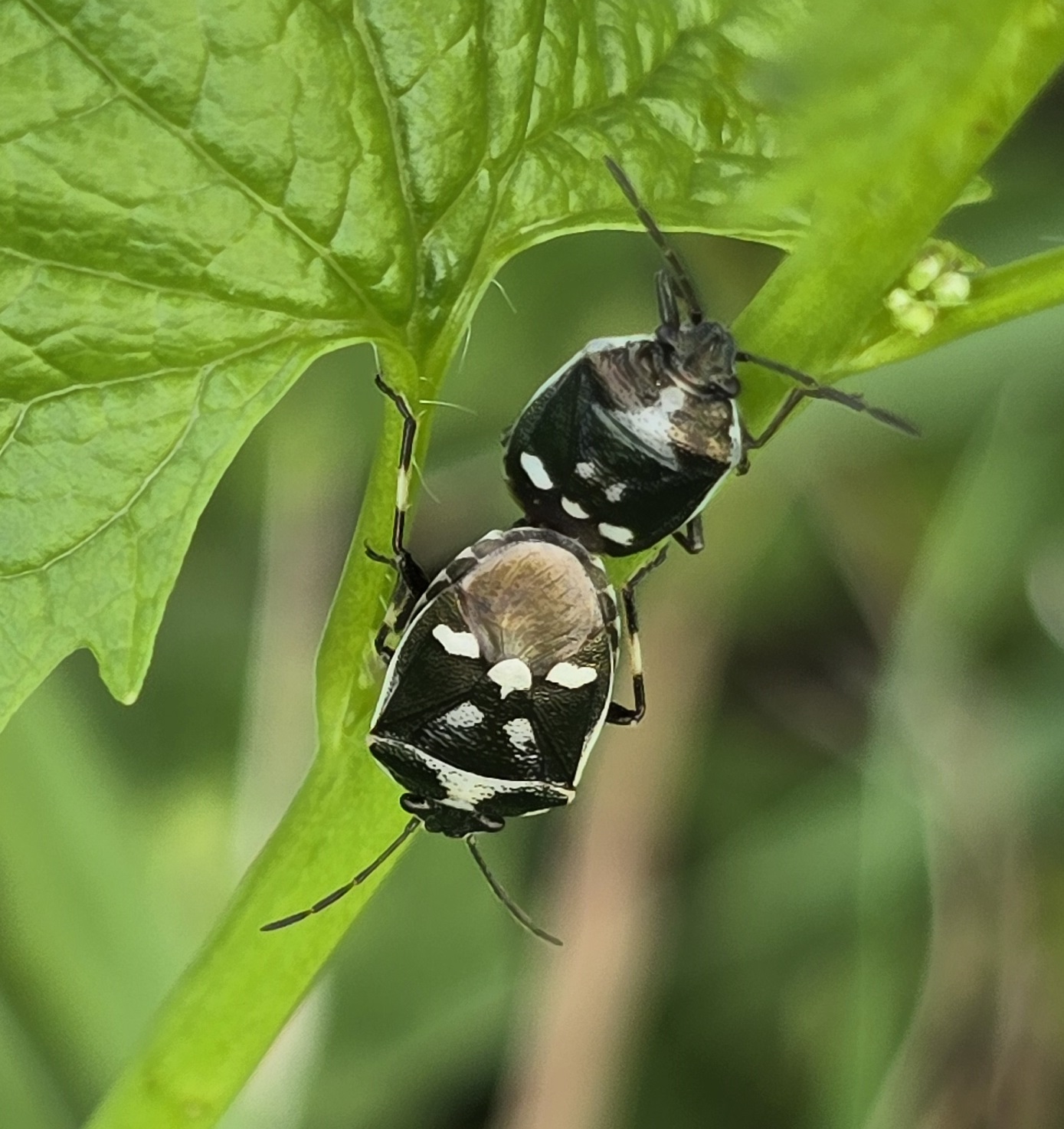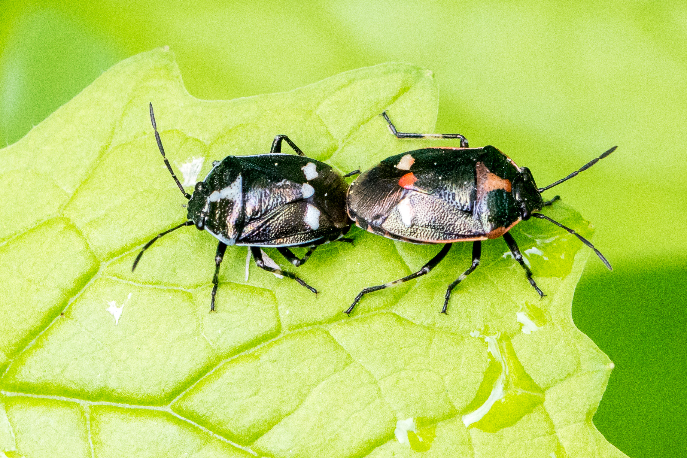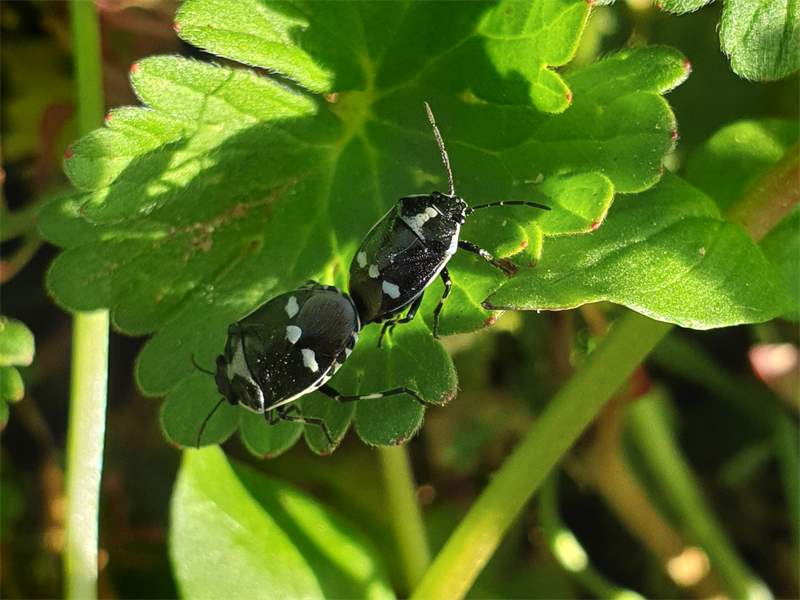 auf Alliaria petiolata in Kopula (oben W, unten M), Oberes Elbtal, Waldrand am Kohlberg, Pirna, 30.04.2020