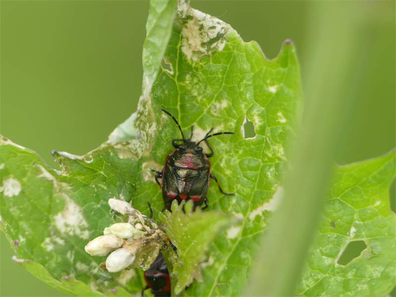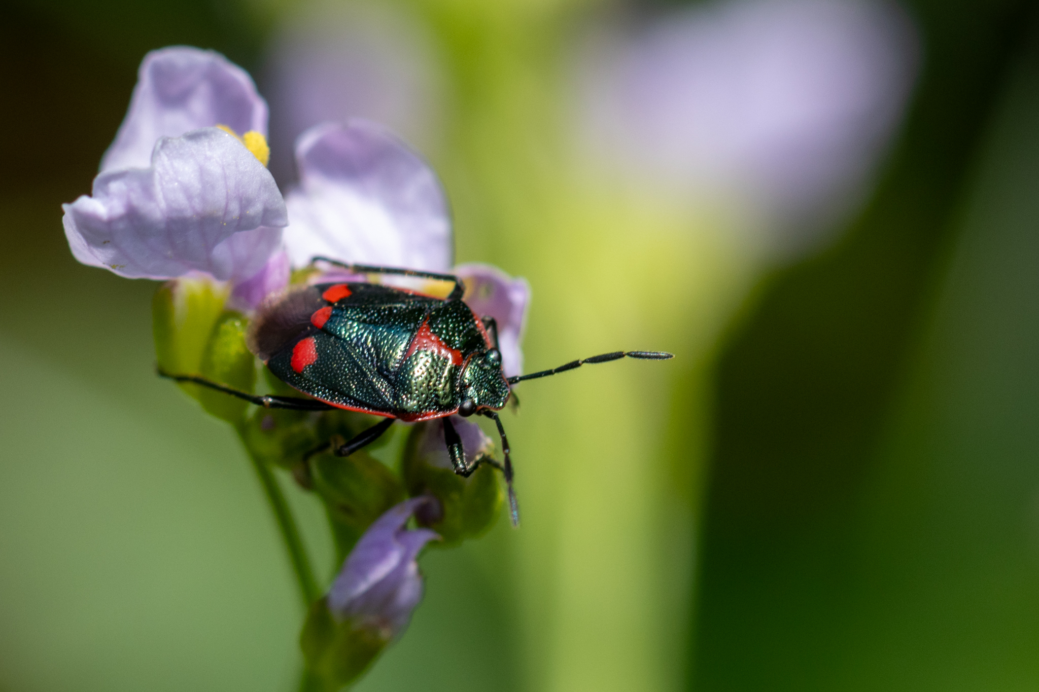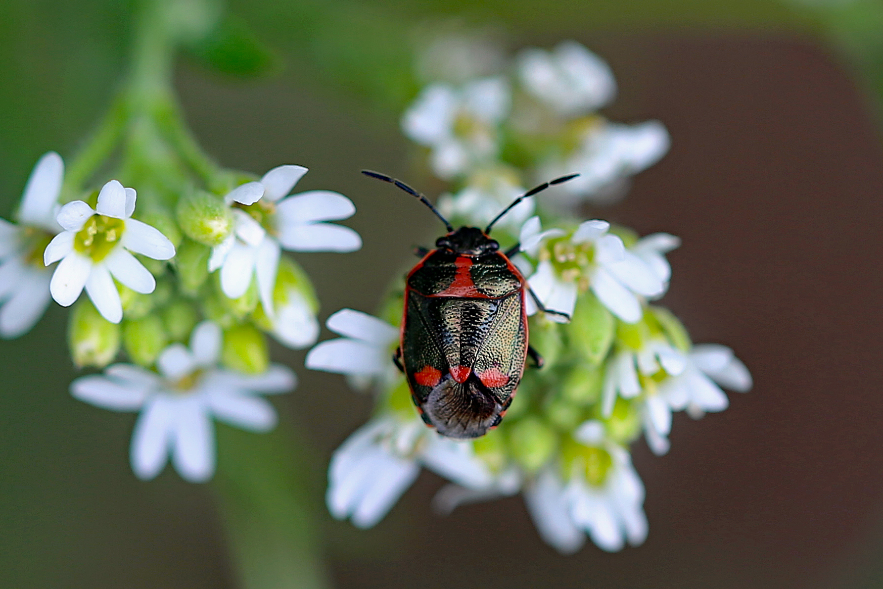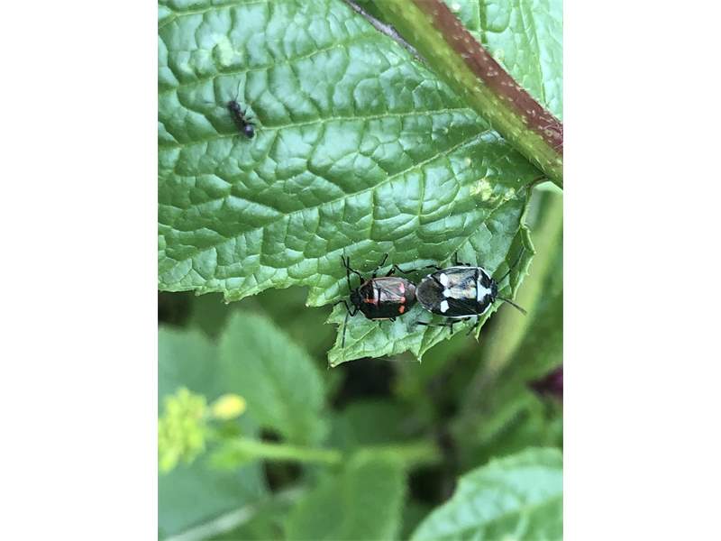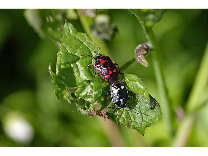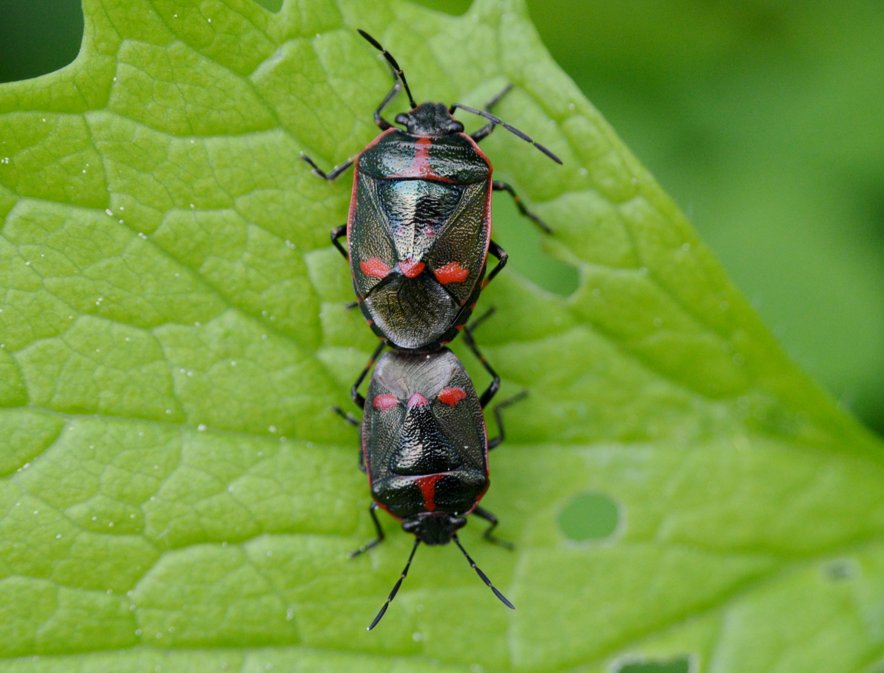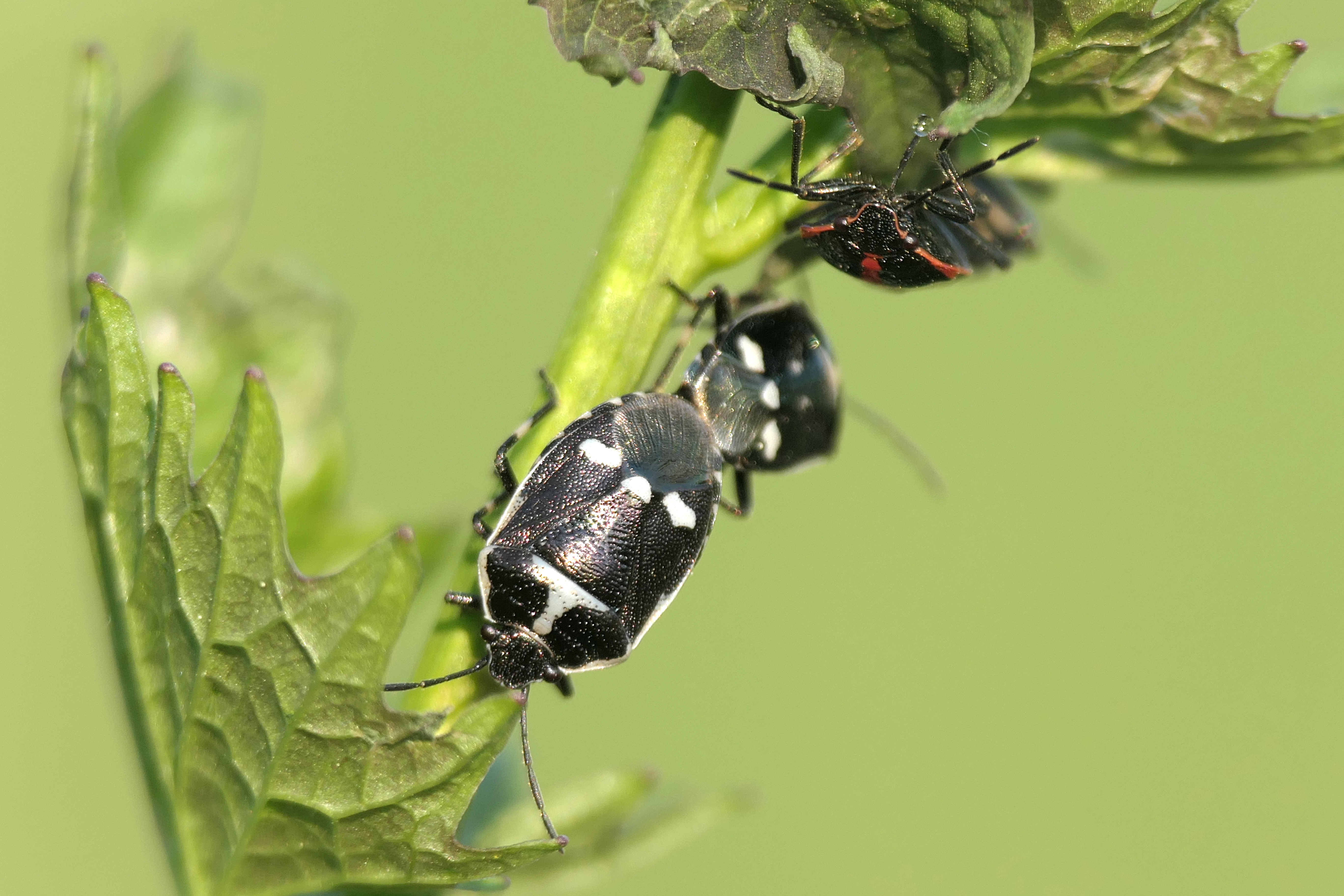 auf Alliaria petiolata in Kopula (oben W, unten M), Oberes Elbtal, Waldrand am Kohlberg, Pirna, 30.04.2020