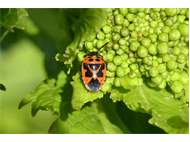 Eurydema dominulus auf Echter Brunnenkresse (Nasturtium officinale). Gösseldorf, Aufseßtal bei der Kuchenmühle (Bayern, Landkreis Bayreuth) Ende Juli 2014.