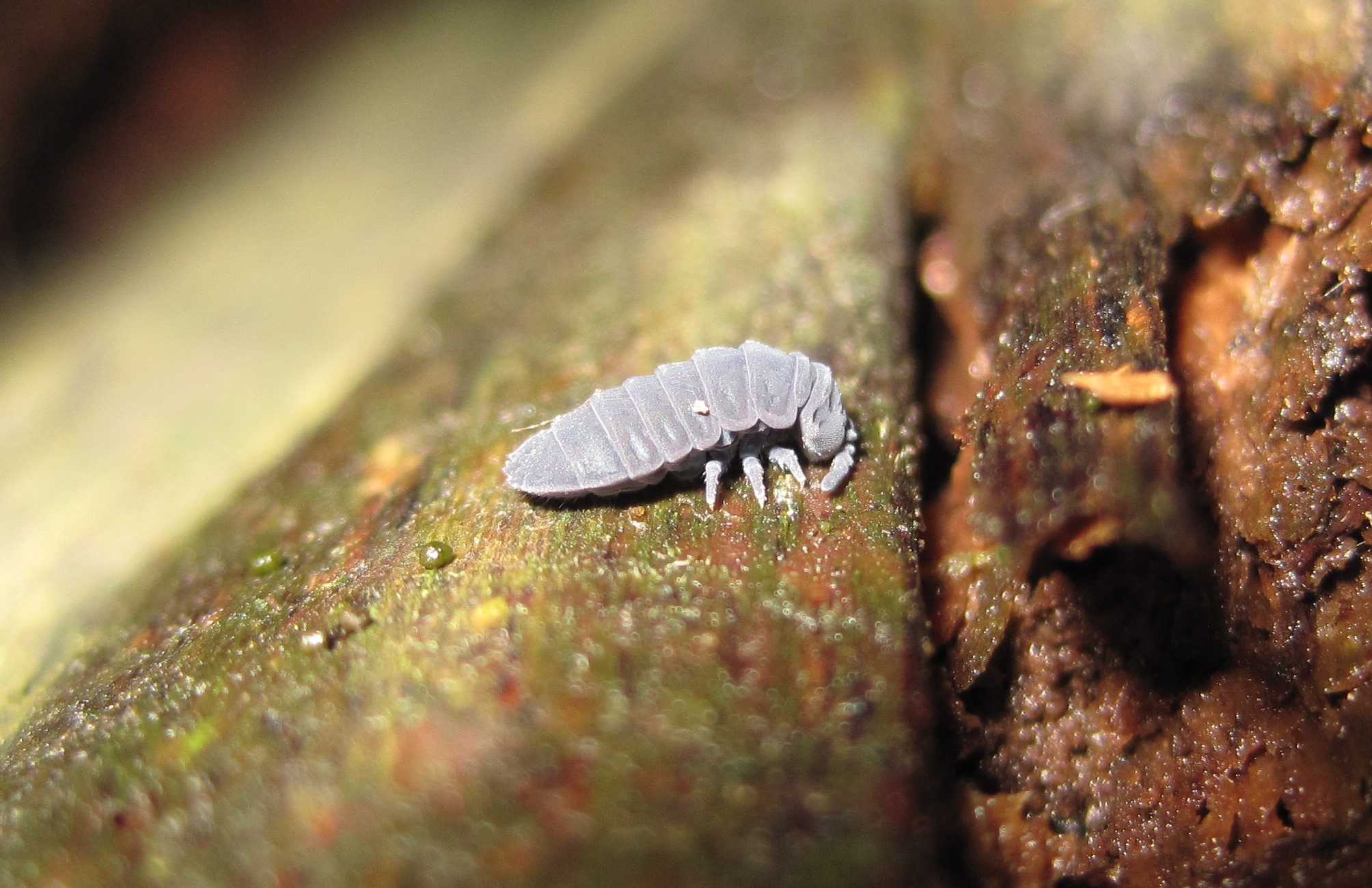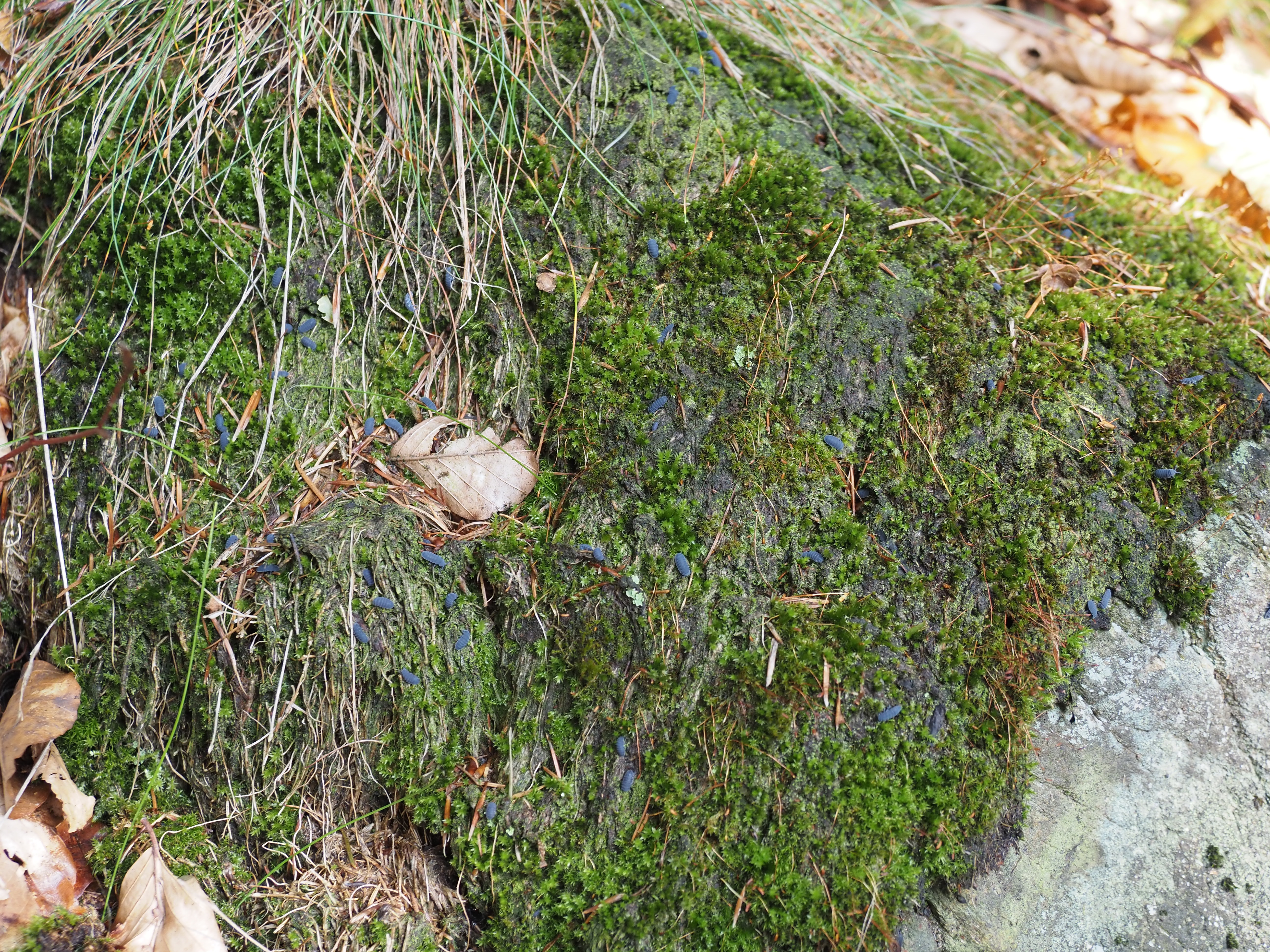Großer Winterberg, Sächsische Schweiz, September 2013. Auf liegendem Totholz, dort, wo keine Rinde mehr vorhanden ist und mit dem bloßen Auge kaum erkennbar Kryptogamen aufwachsen.