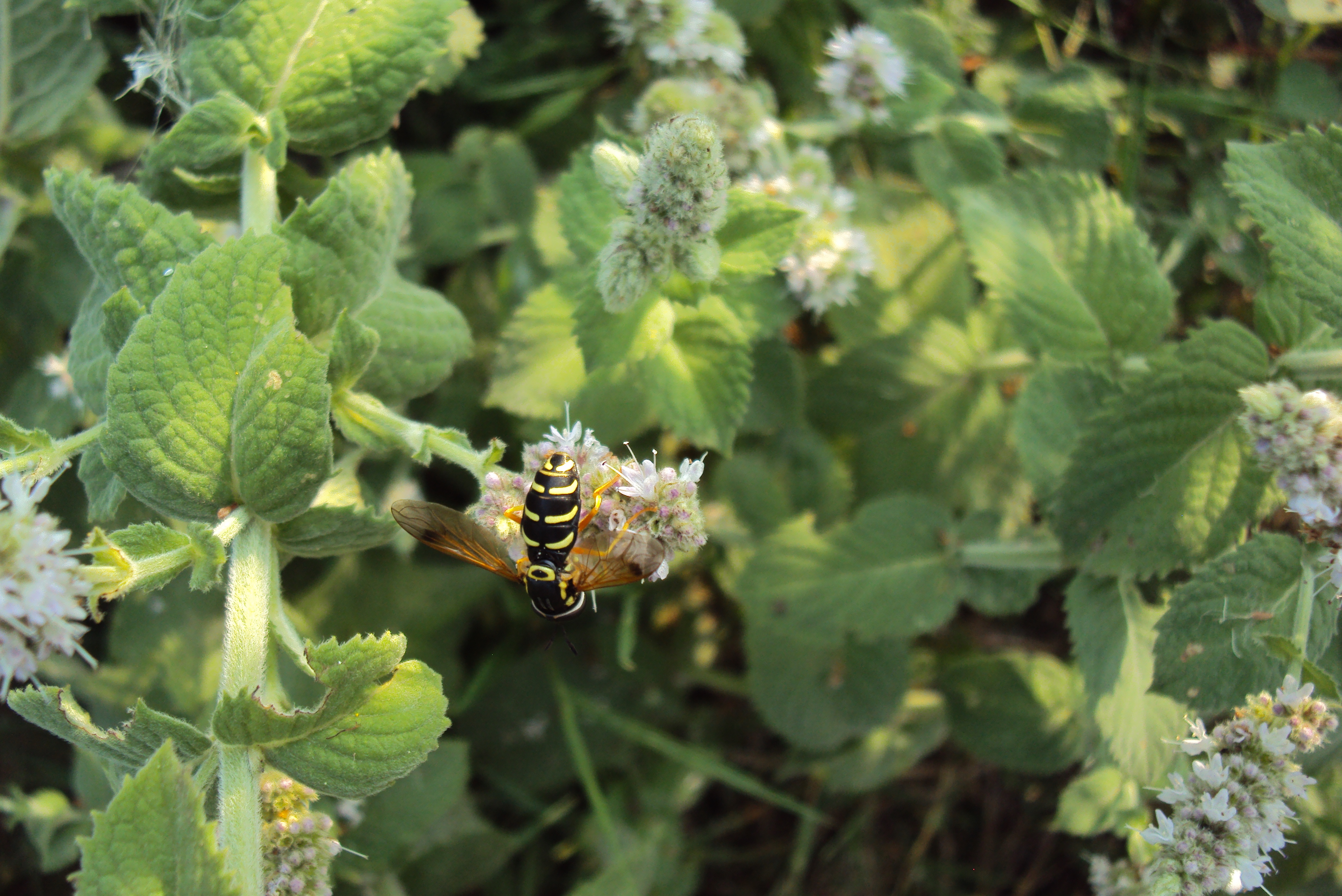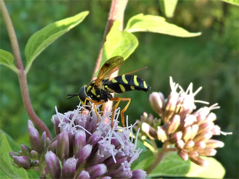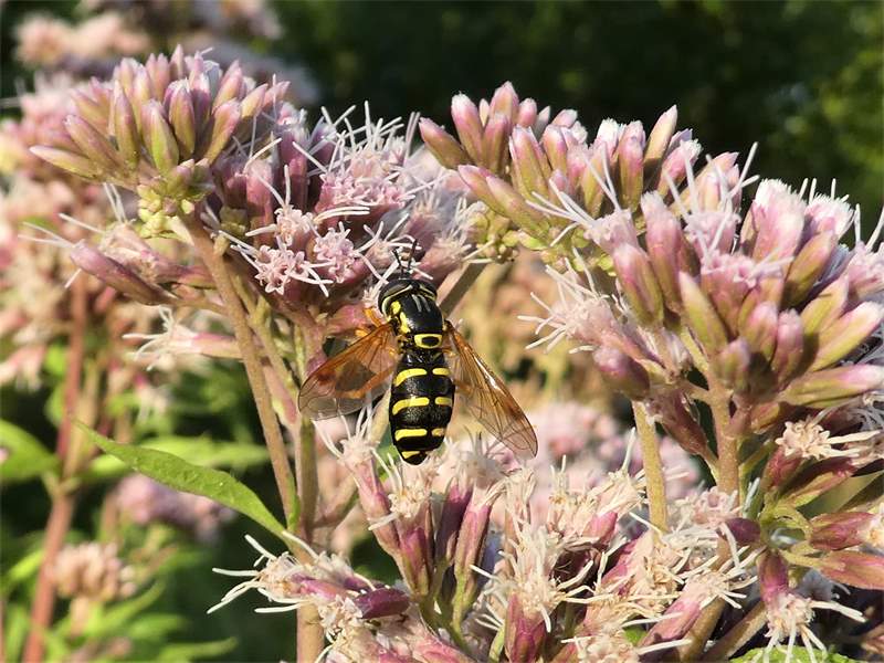 Späte Wespenschwebfliege an Wasserdost, Pockau-Lengefeld, August 2023