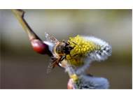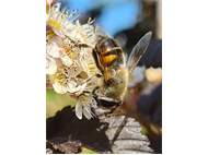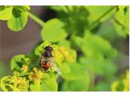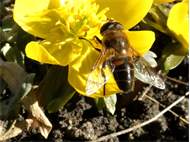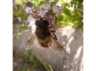 Weibchen der Scheinbienen-Keilfleckschwebfliege, Wohngrundstück, 01896 Lichtenberg, 28.03.2020. (© Uwe Schäfer)( Bild vergrößern)