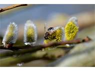 Weibchen der Scheinbienen-Keilfleckschwebfliege, Wohngrundstück, 01896 Lichtenberg, 28.03.2020.
