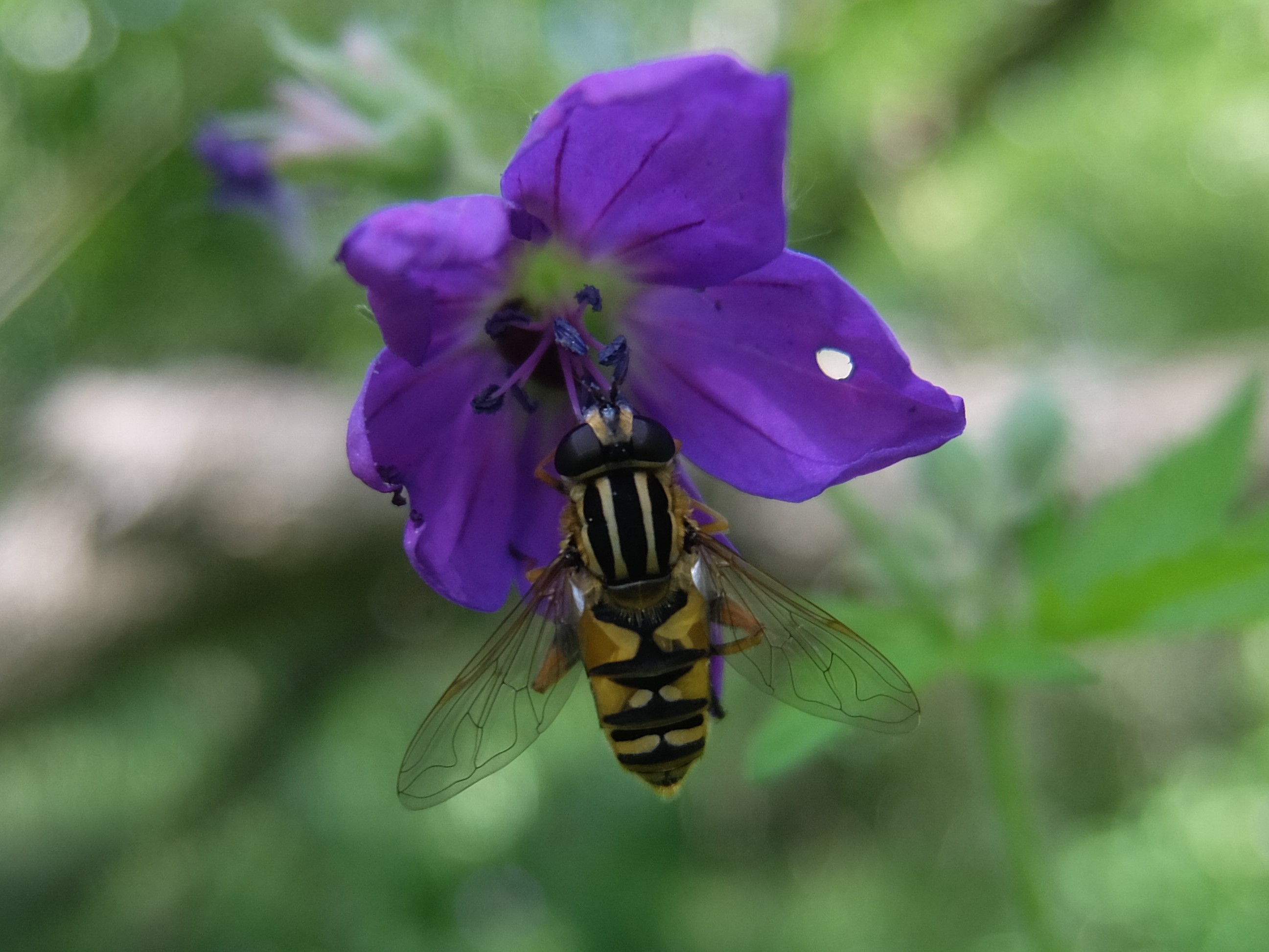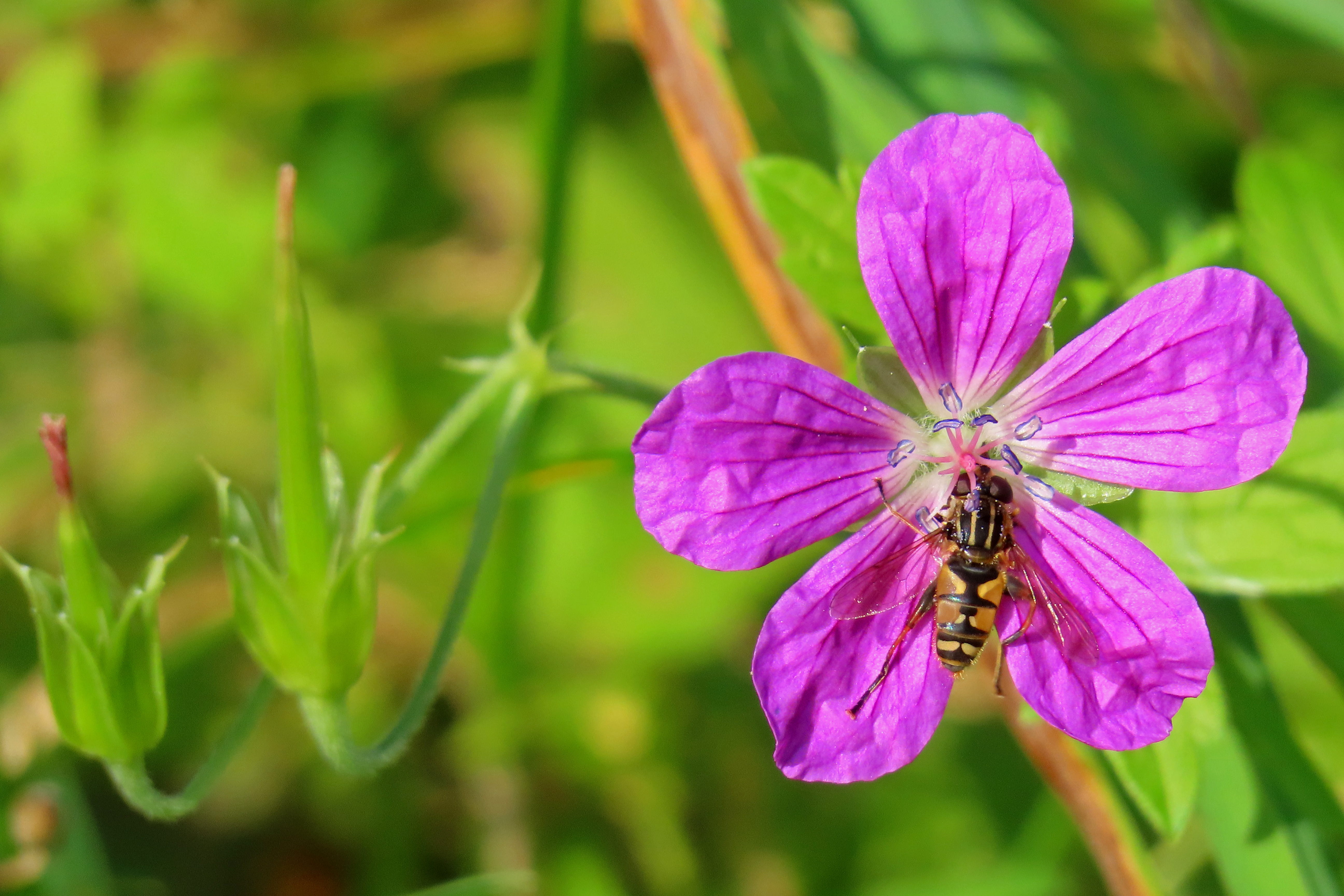 © Helophilus pendulus an Geranium sylvaticum, Geyersdorf, Schmetterlingswiese 25, 20.05.2018