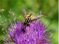 Gemeine Sumpfschwebfliege (Helophilus pendulus) auf Seifenkraut