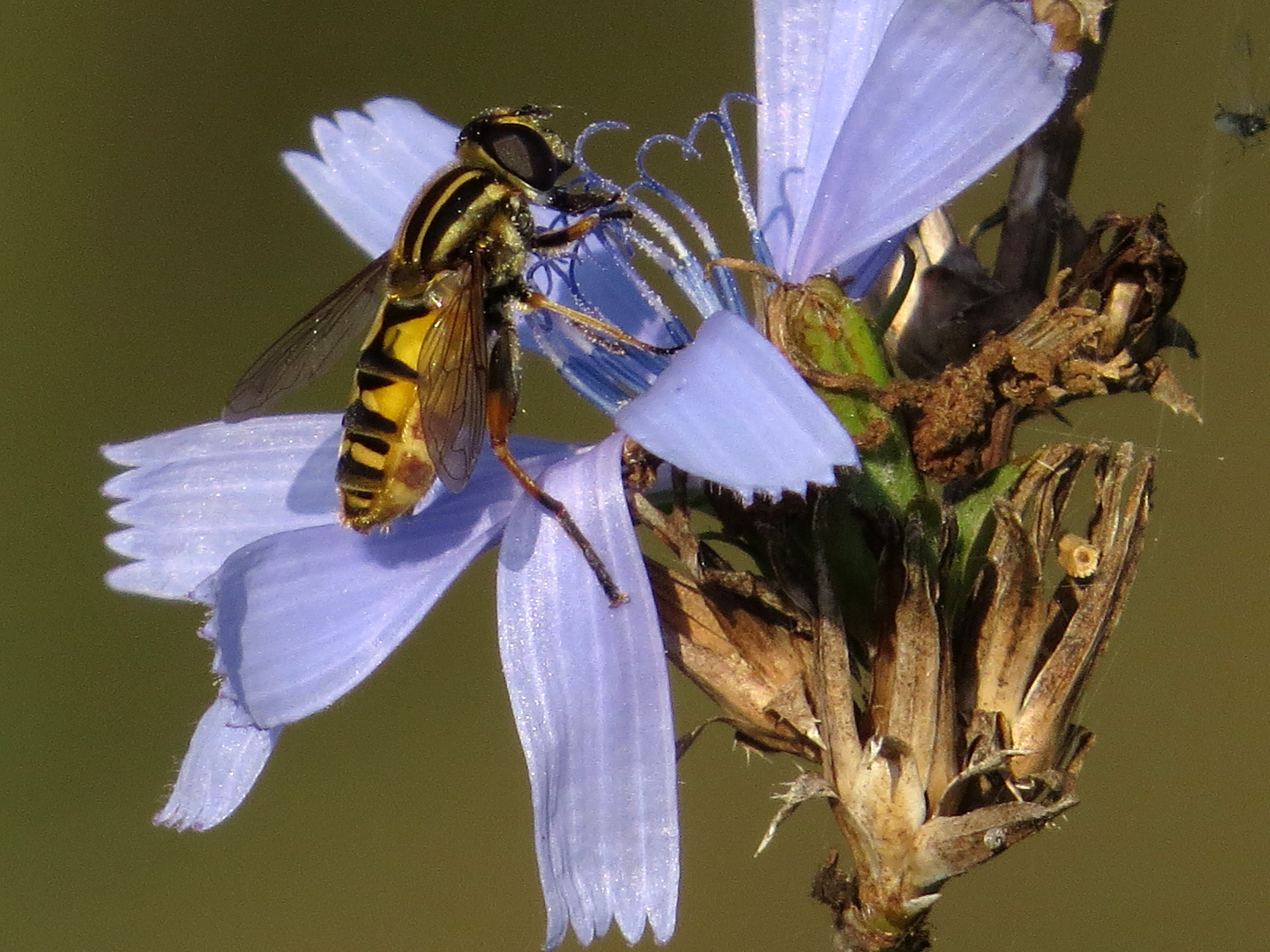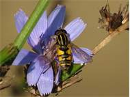 Helophilus pendulus an einer Wegwarte, Luppenaue bei Schkeuditz, September 2016