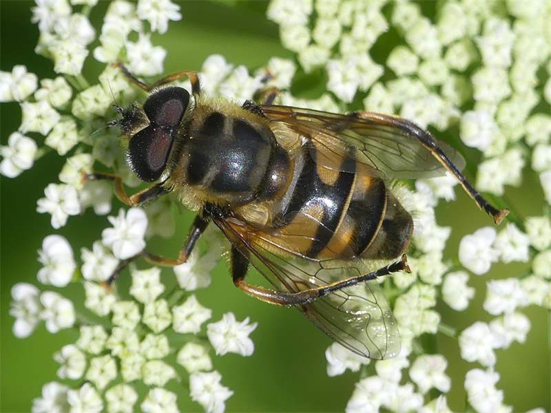 Männchen der Totenkopfschwebfliege Ende Juli 2015 bei Olbernhau-Grünthal