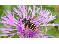 Eine Gelbband-Torfschwebfliege besucht am 26.07.2013 Perücken-Flockenblumen in Glashütte