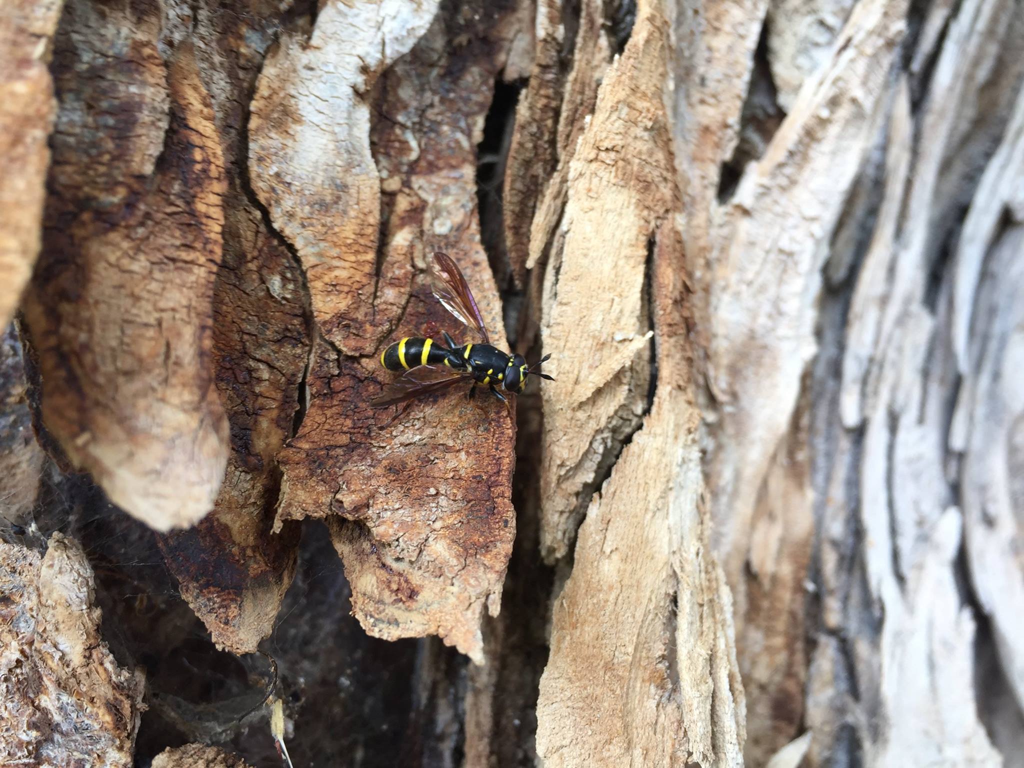 Sphiximorpha subsessilis im Juni 2015 im Tharandter Wald an einer abgestorbenen Buche am Waldsportplatz Grund