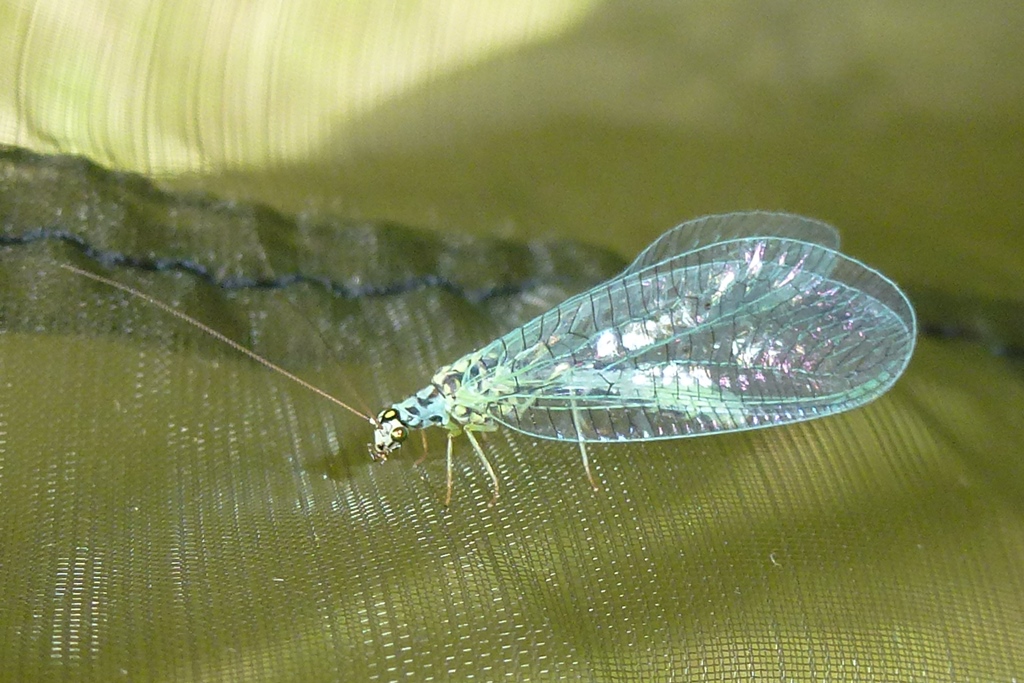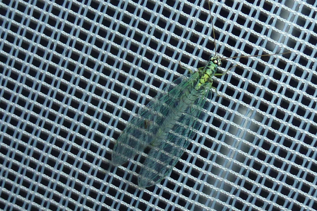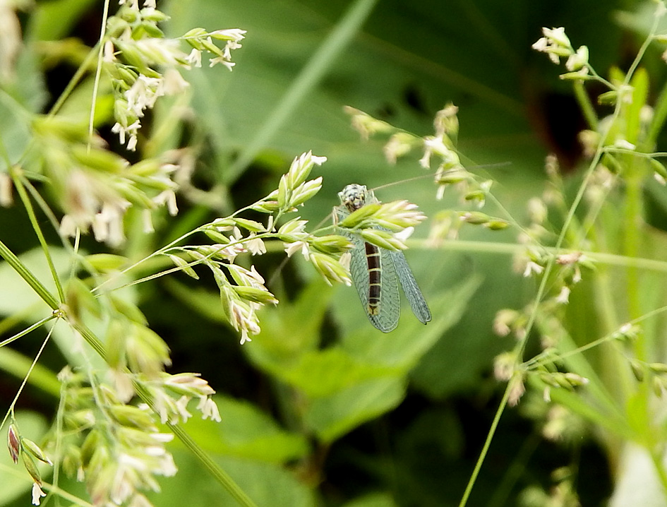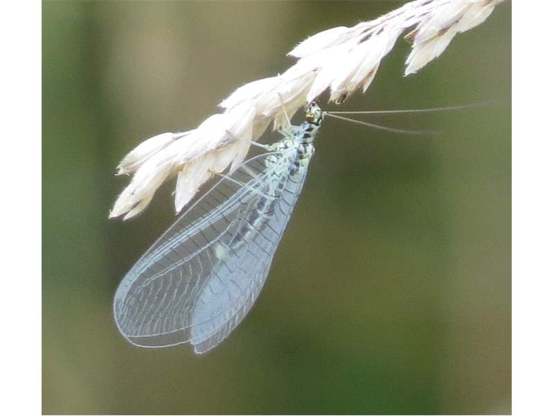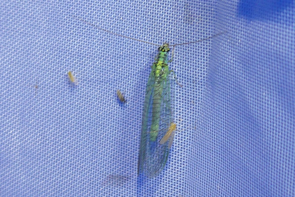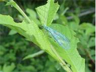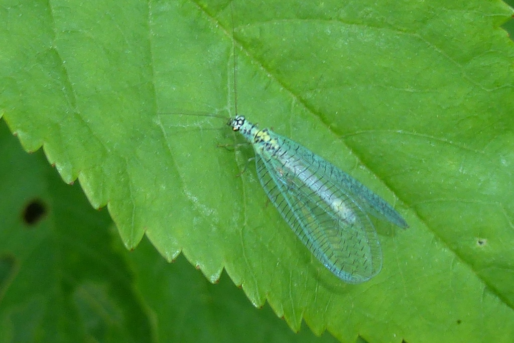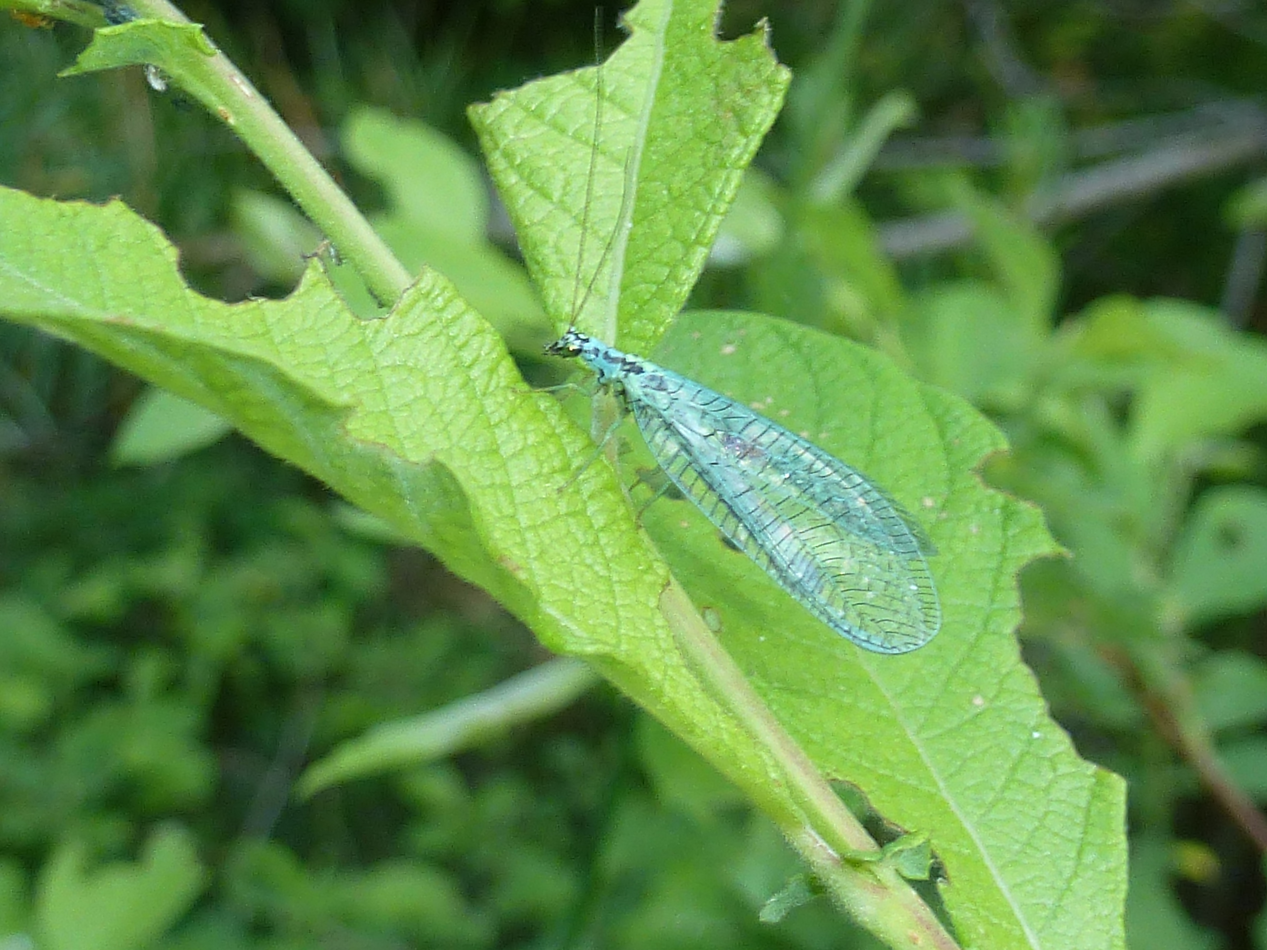 Grüne Perlaugen-Florfliege im Juli 2018 entlang Freiberger Mulde östlich Teichhaus
