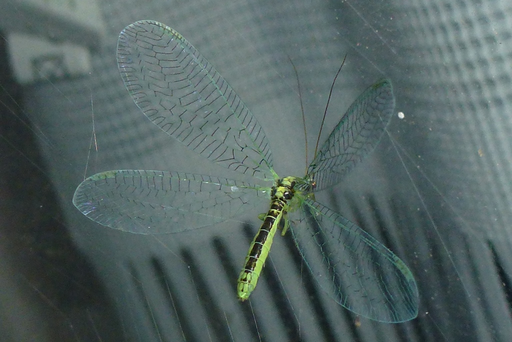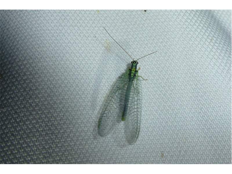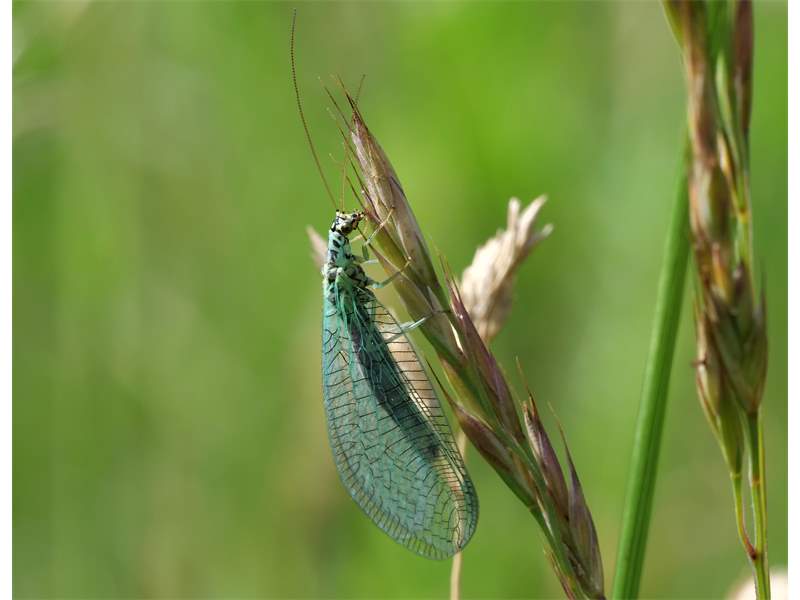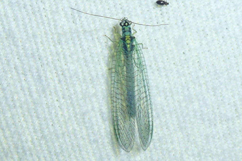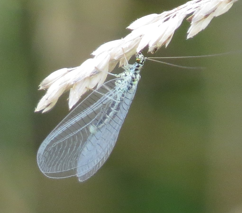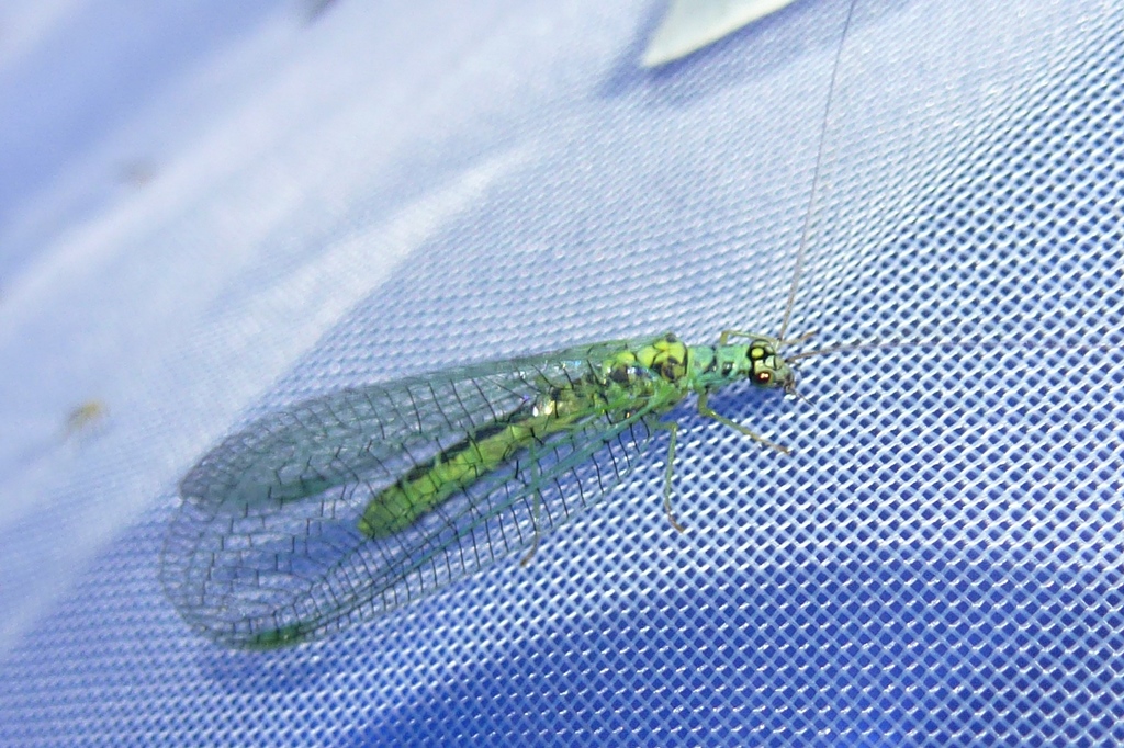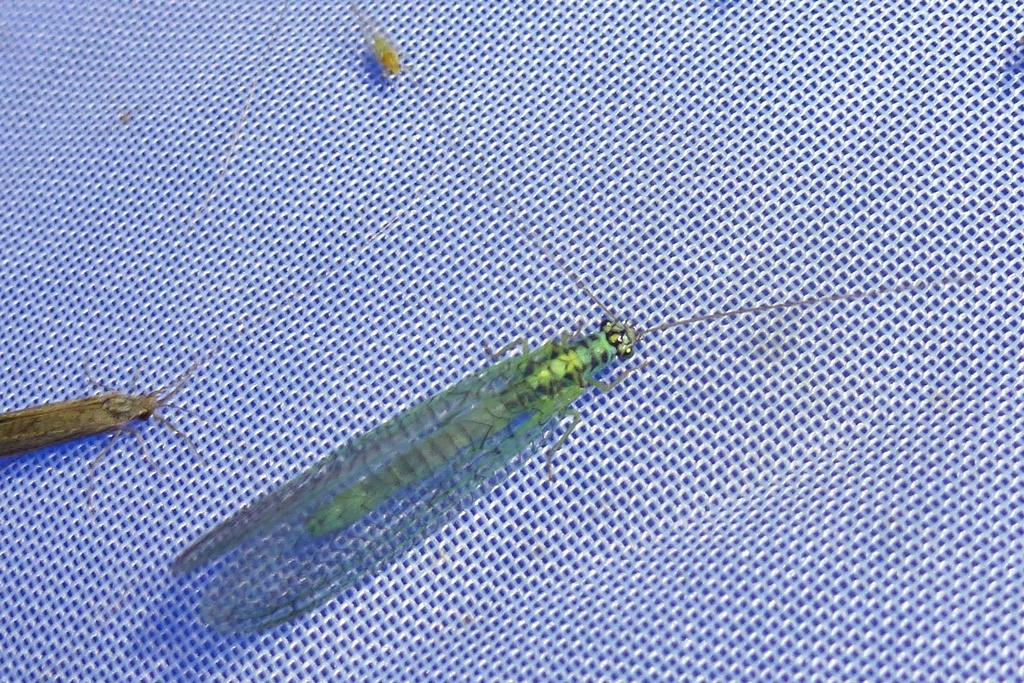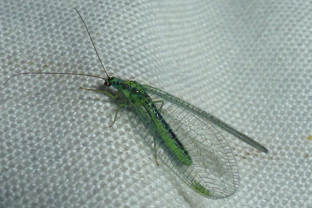 Grüne Perlaugen-Florfliege im Juli 2018 entlang Freiberger Mulde östlich Teichhaus
