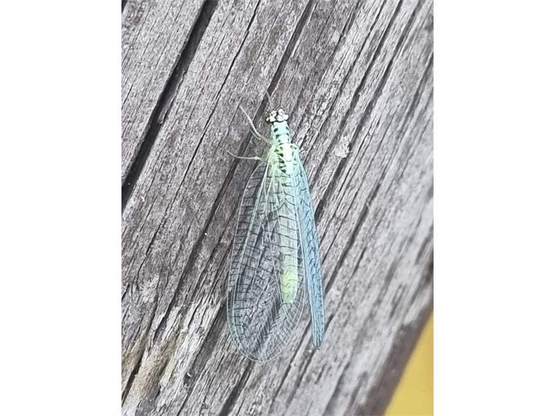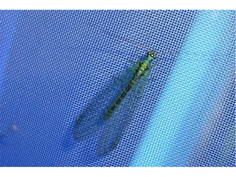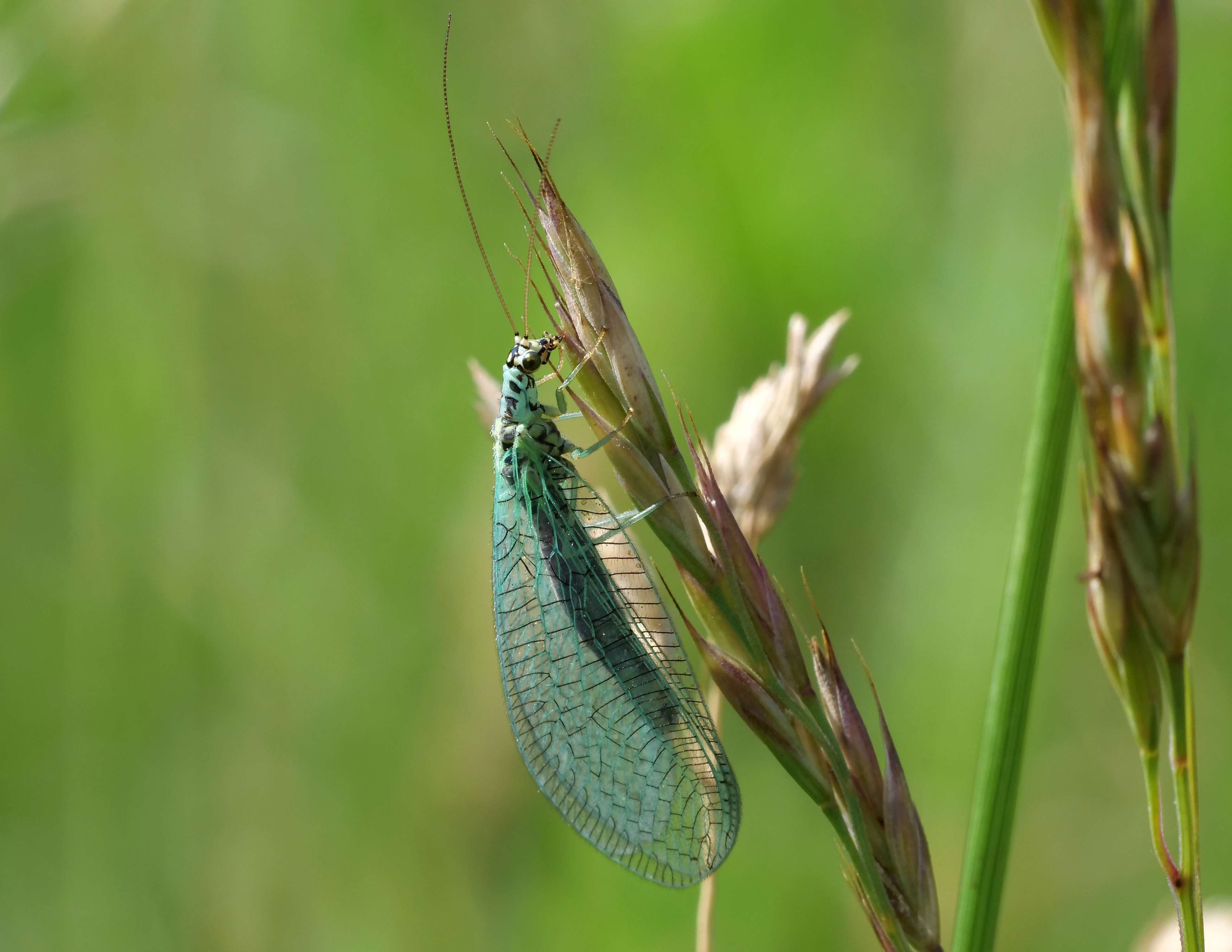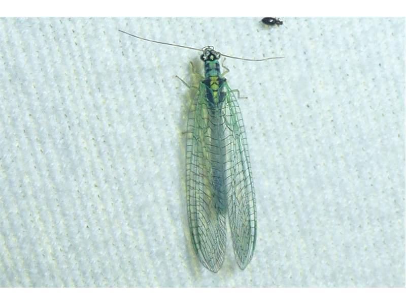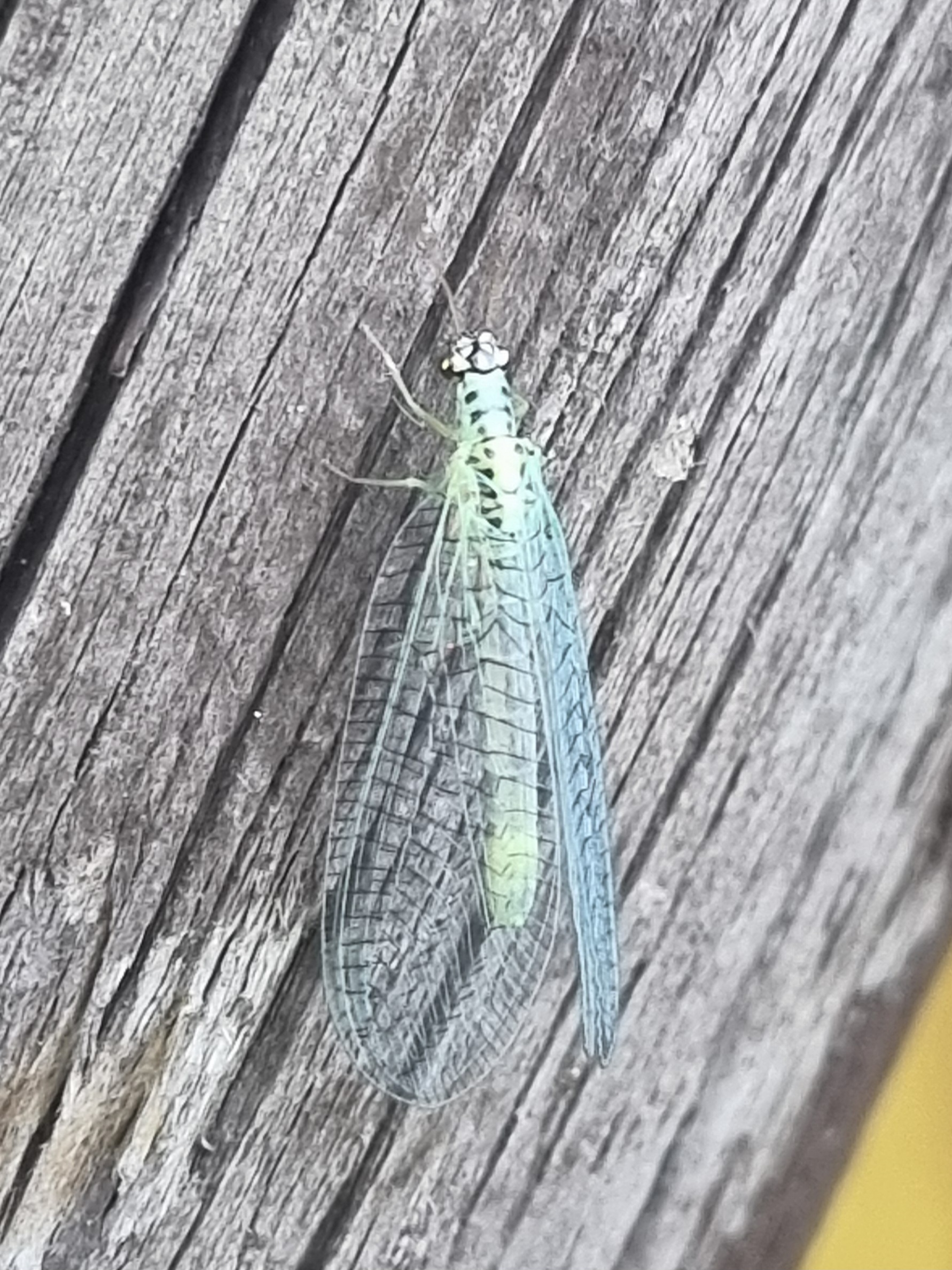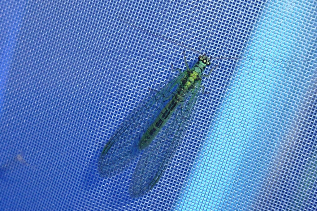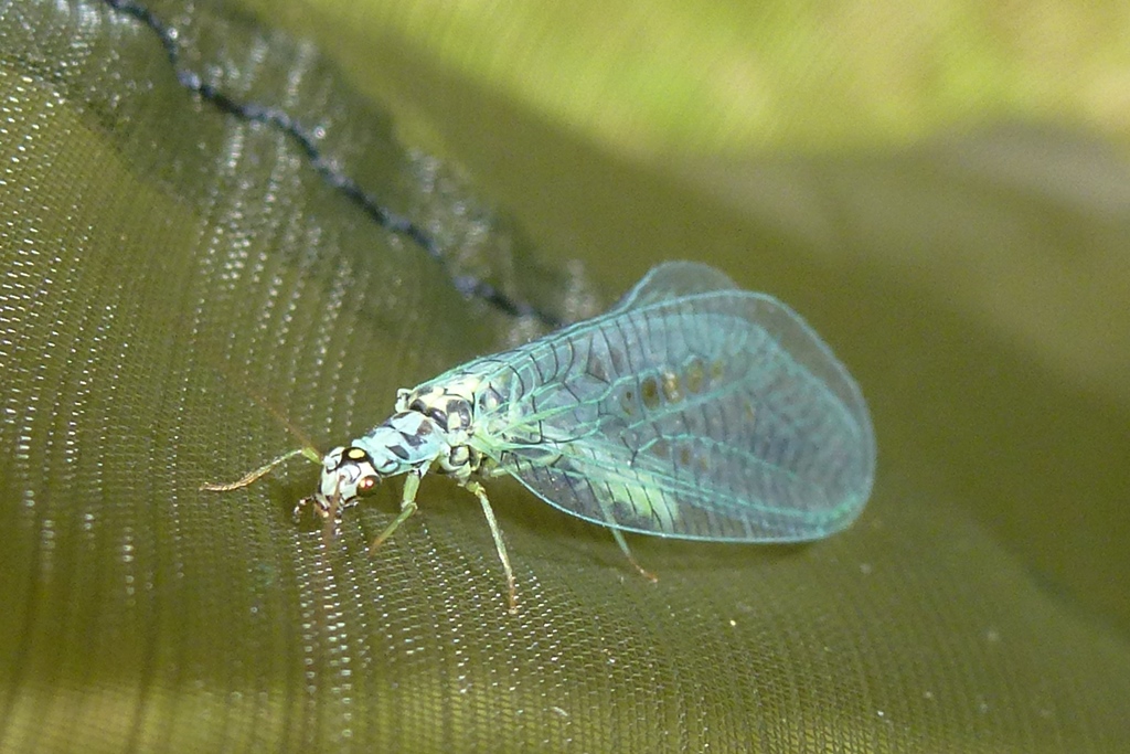 Grüne Perlaugen-Florfliege im Juli 2018 entlang Freiberger Mulde östlich Teichhaus