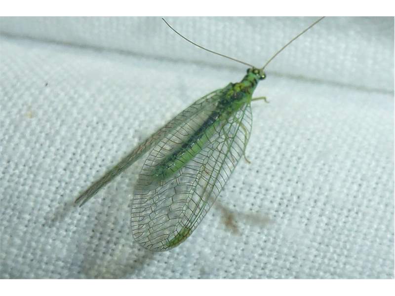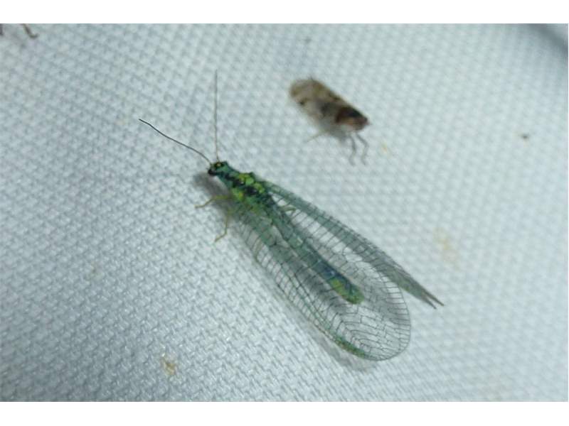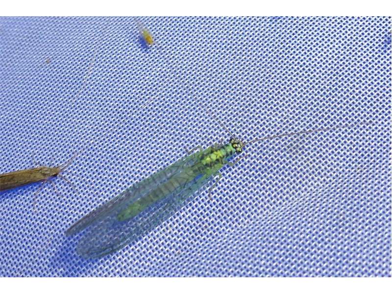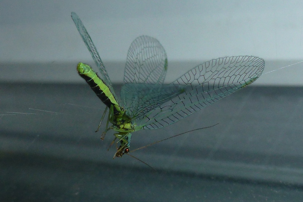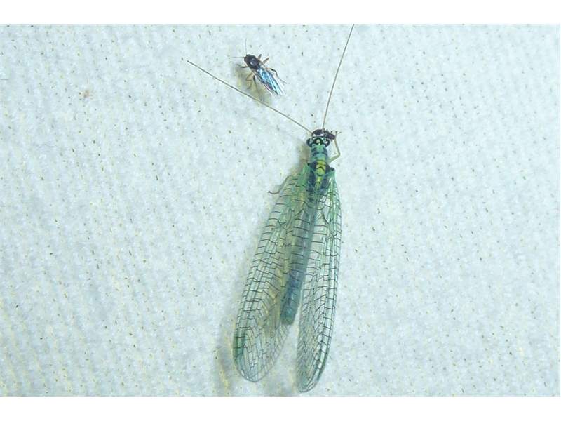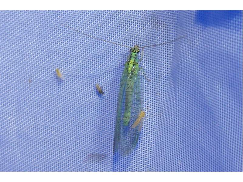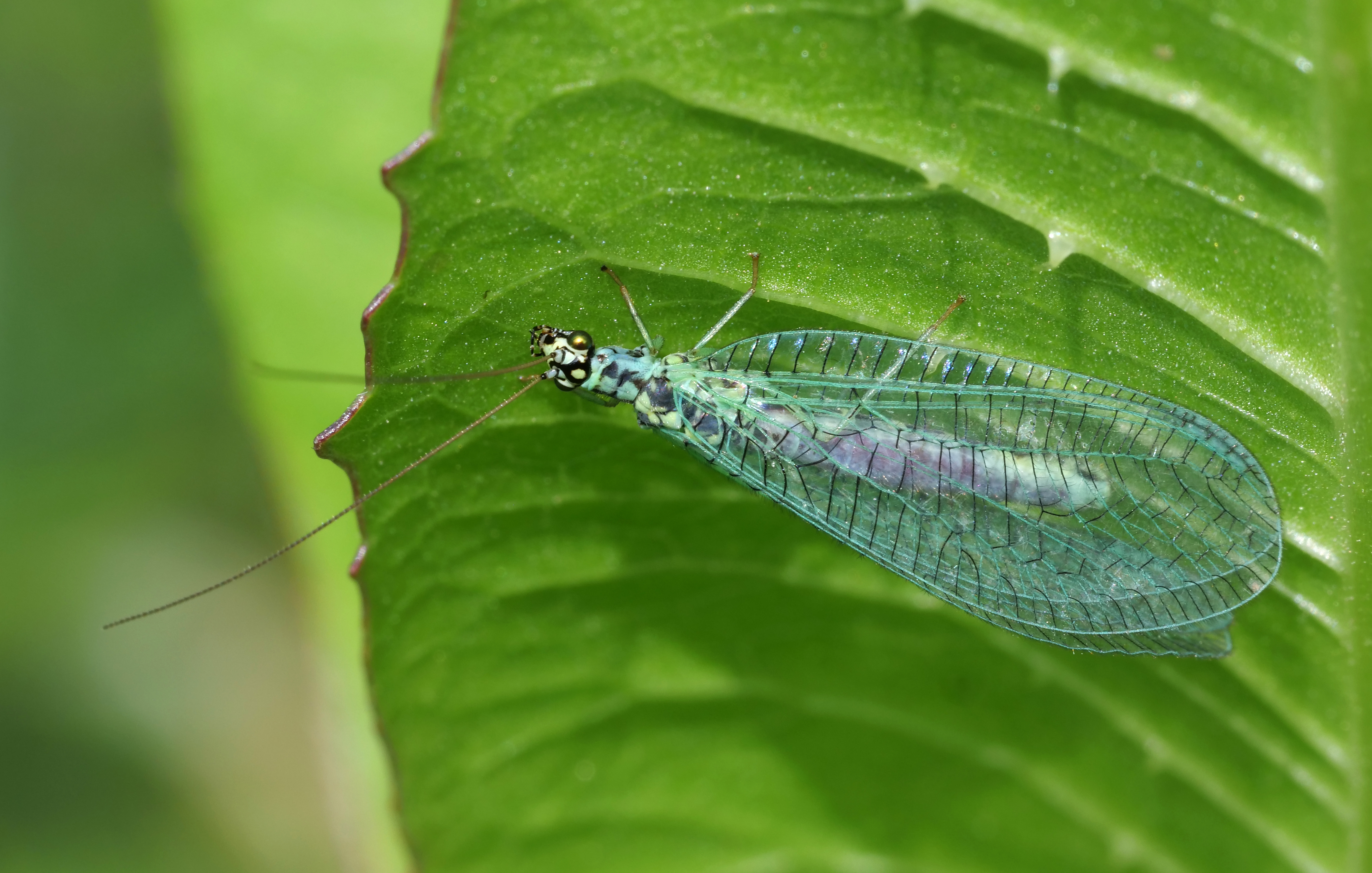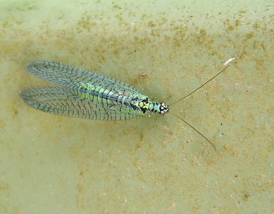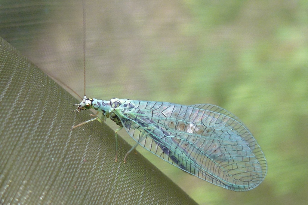 Grüne Perlaugen-Florfliege im Juli 2018 entlang Freiberger Mulde östlich Teichhaus