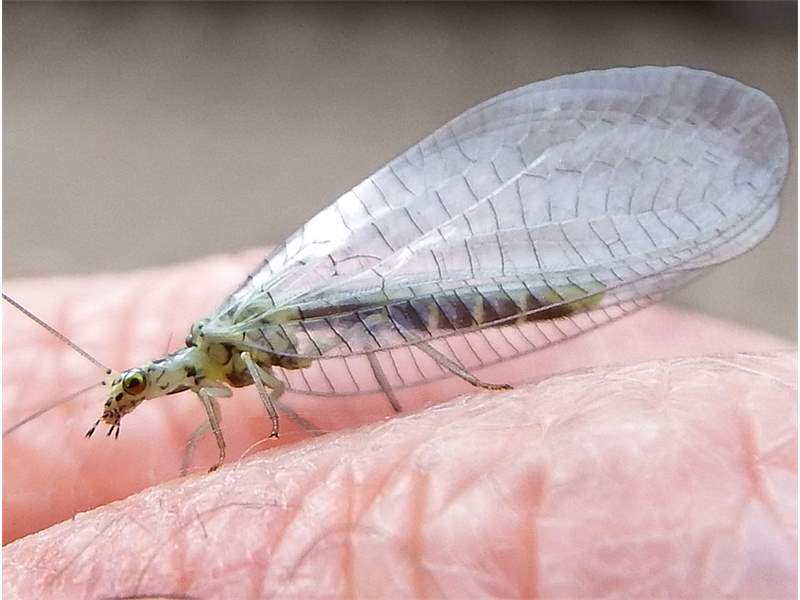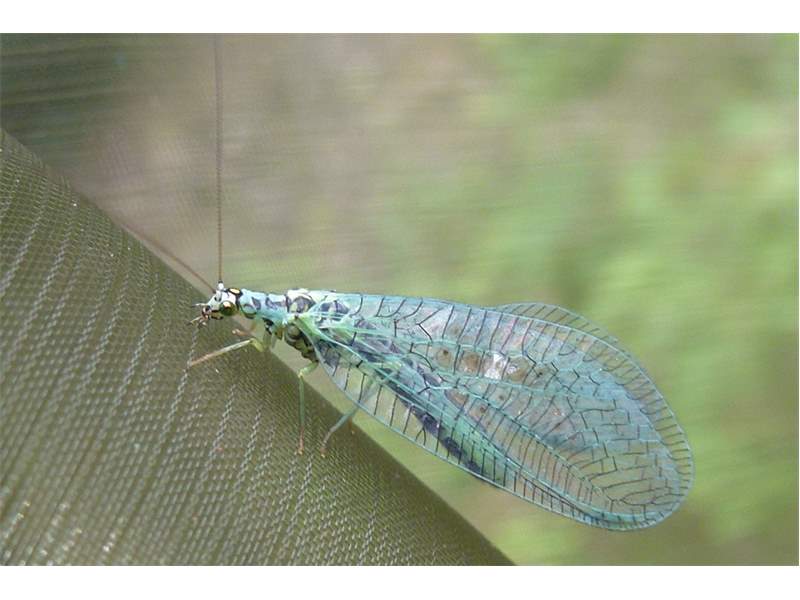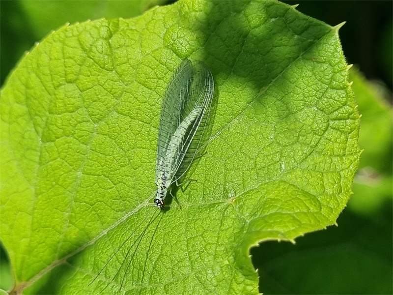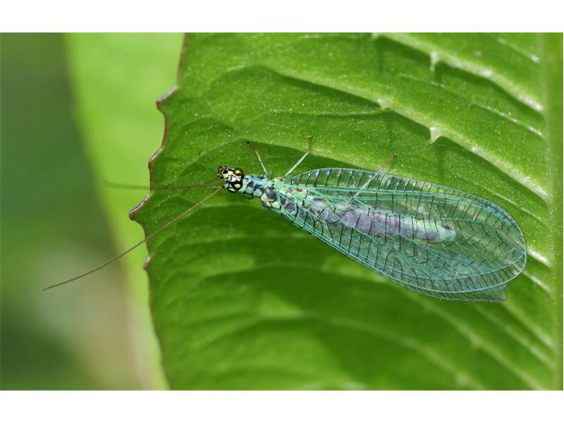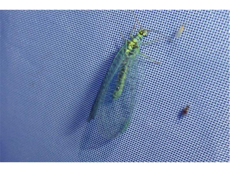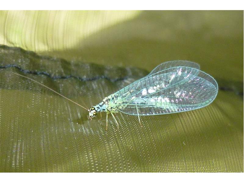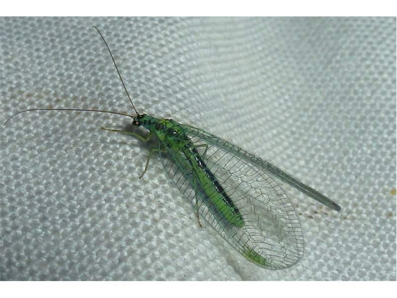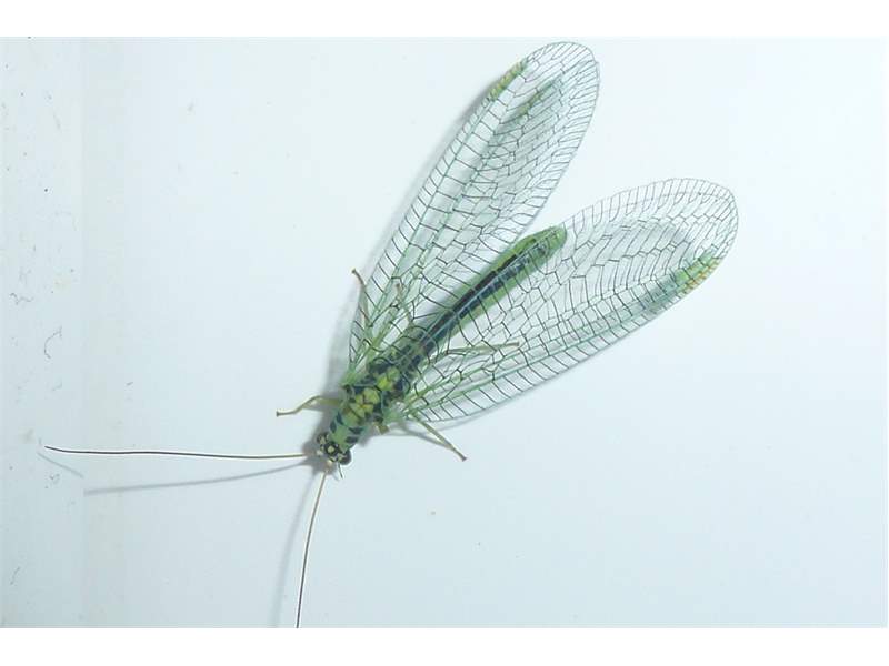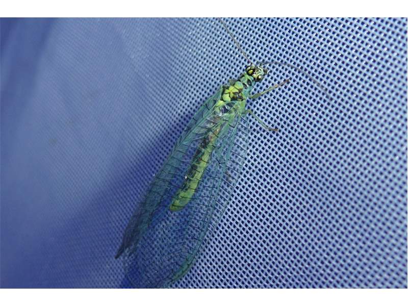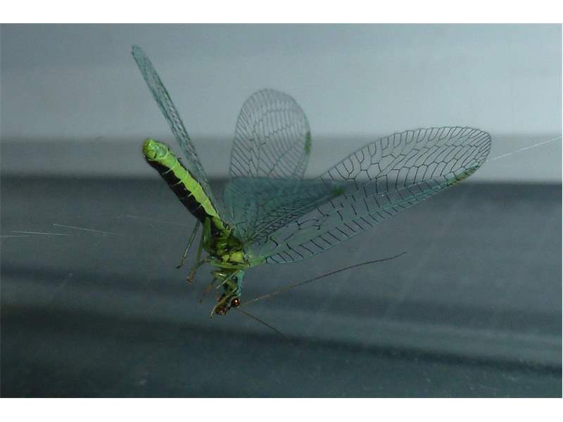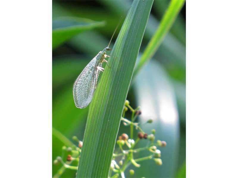 Grüne Perlaugen-Florfliege im Juli 2018 entlang Freiberger Mulde östlich Teichhaus