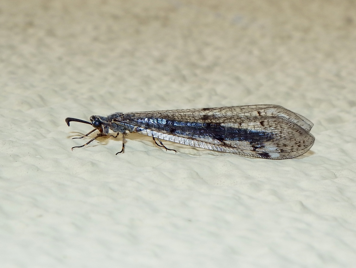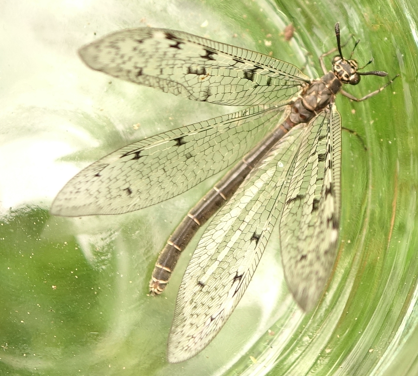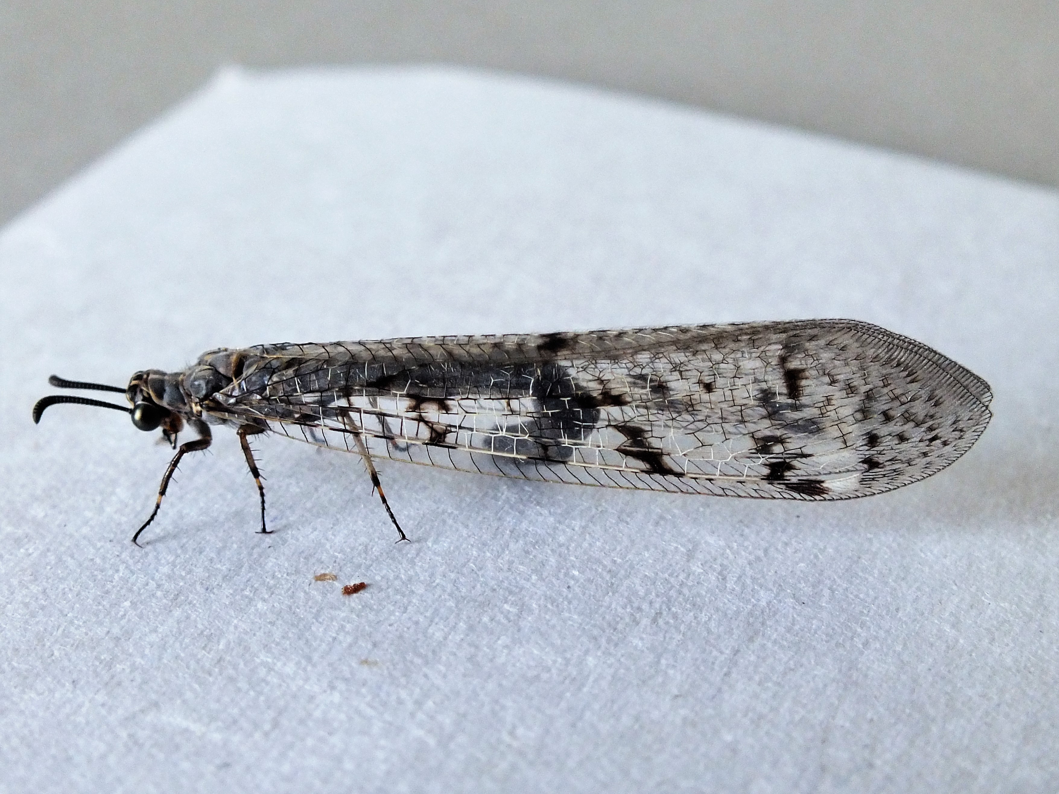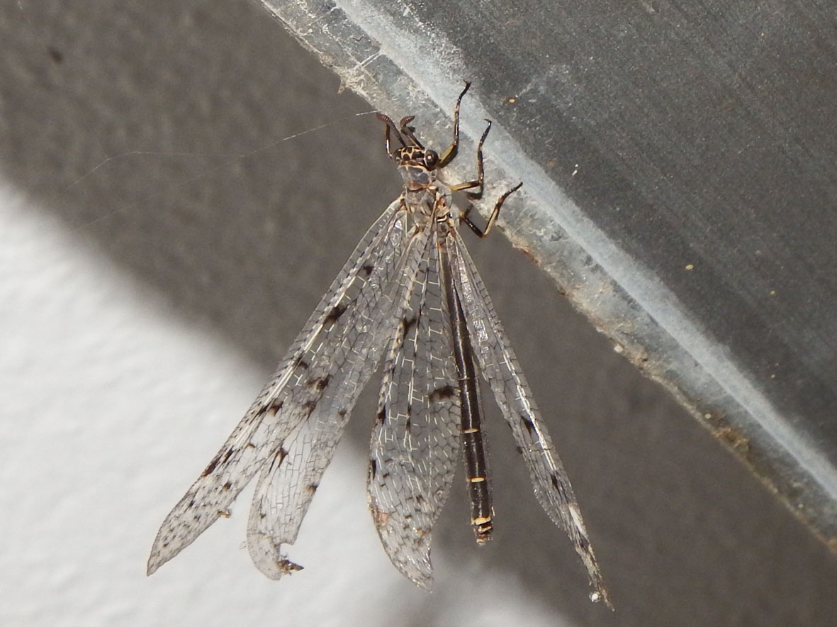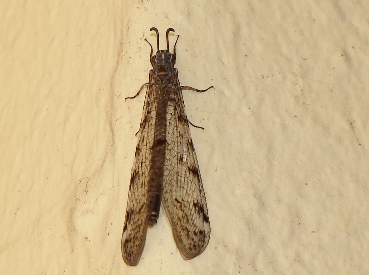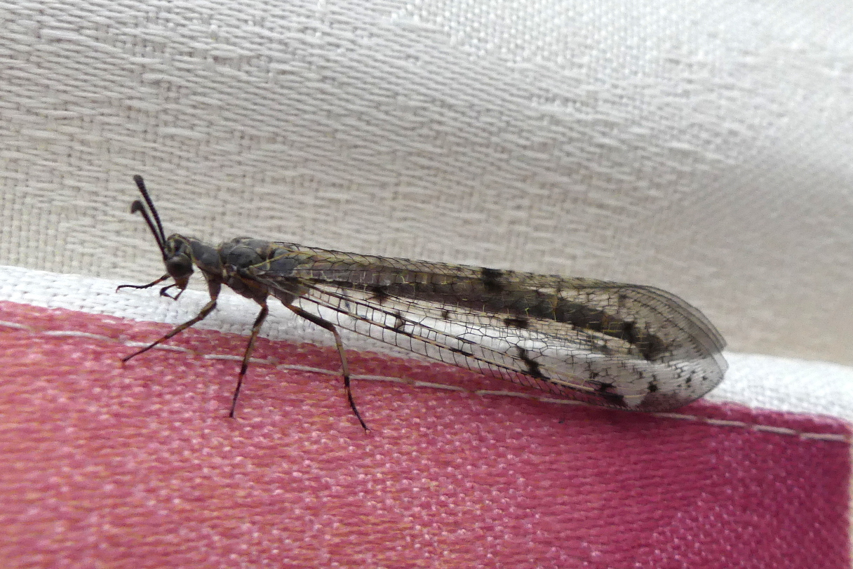 Geflecktflüglige Ameisenjungfer (Euroleon nostras (Geoffroy in Fourcroy, 1785)), Wohngrundstück, 01896 Lichtenberg, Juli 2019.