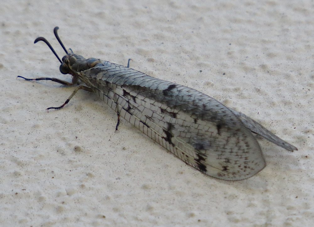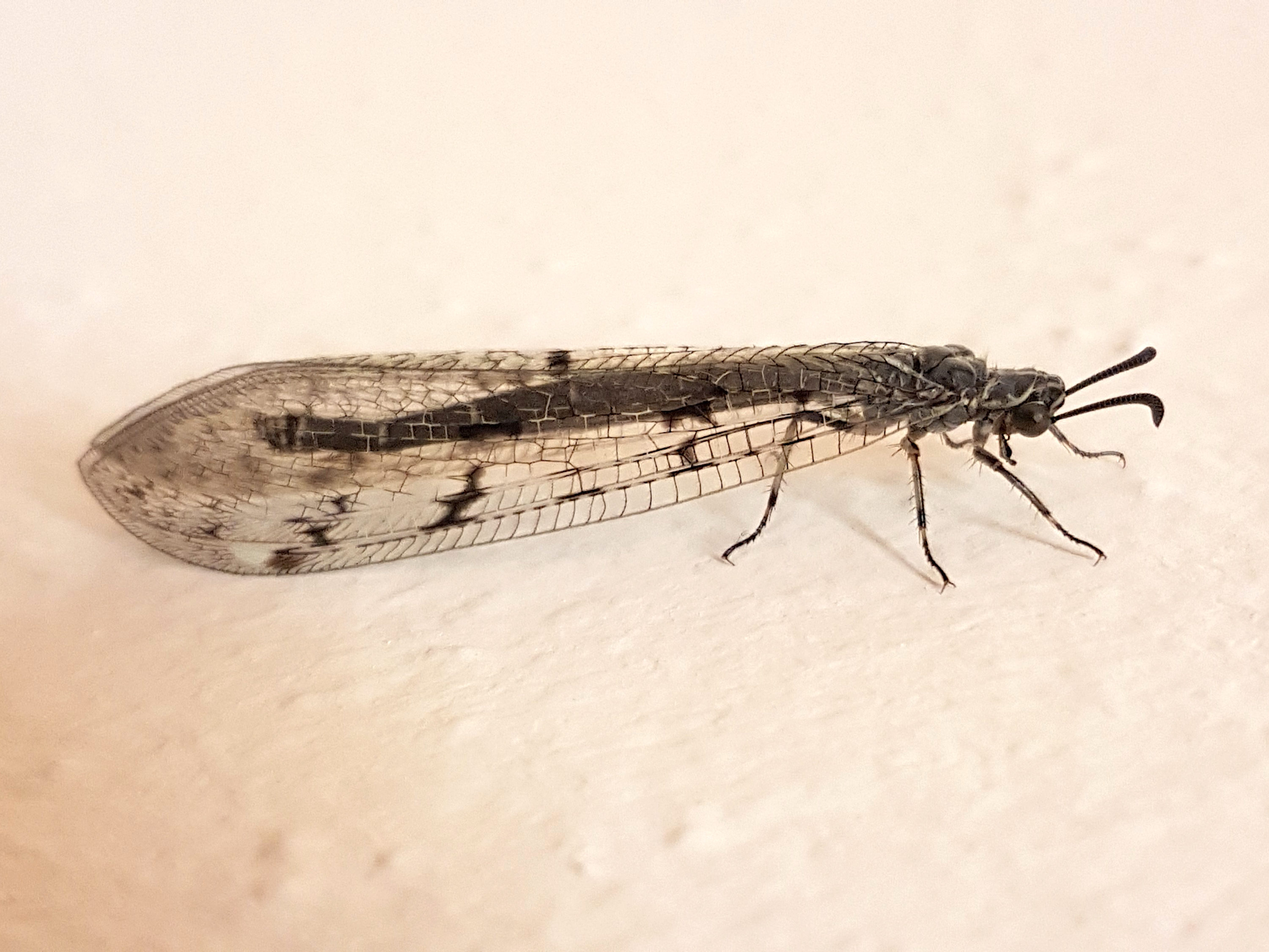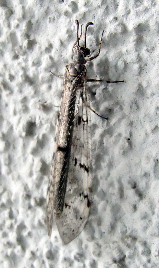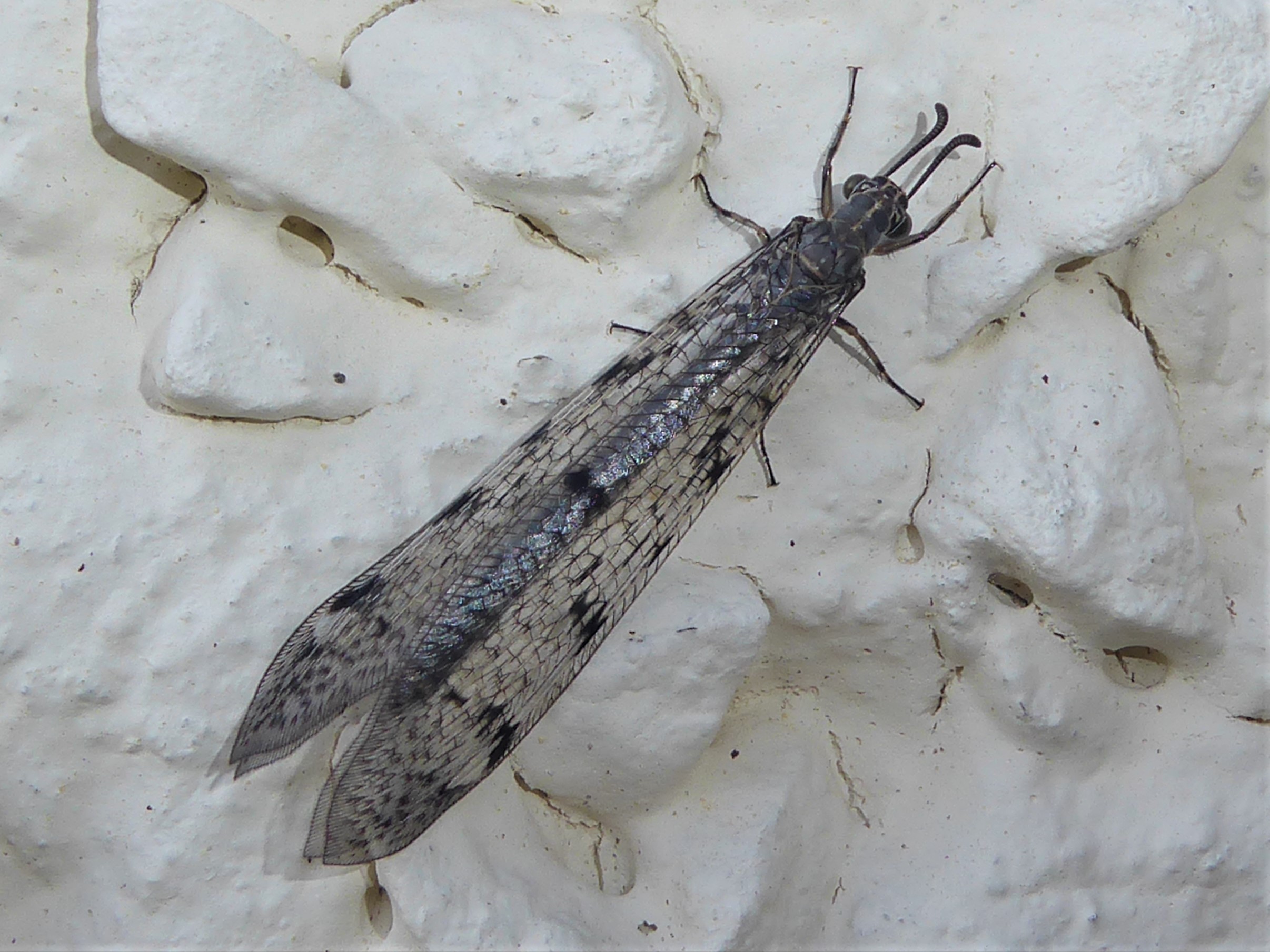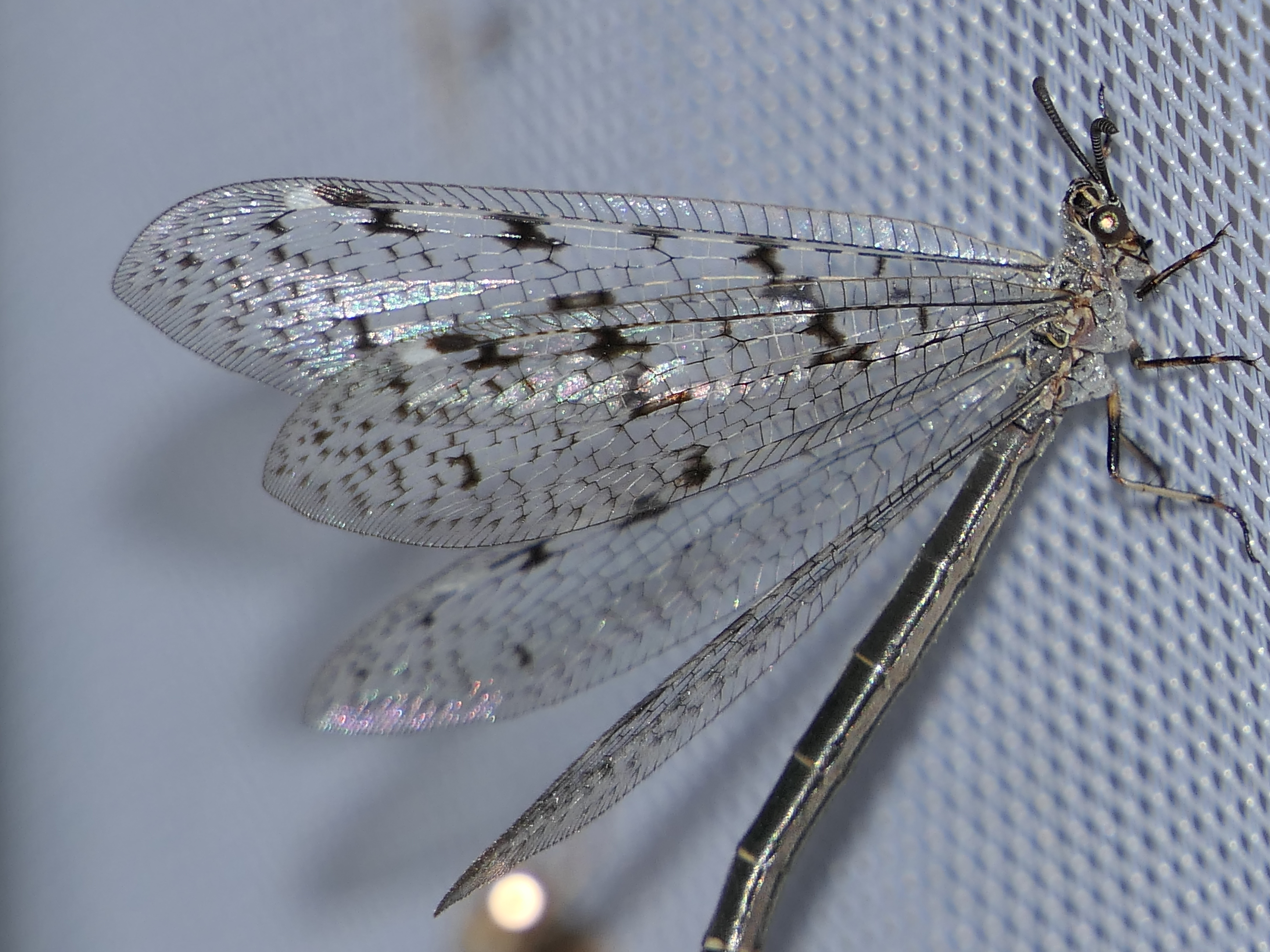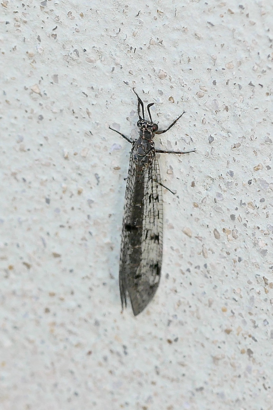 Geflecktflüglige Ameisenjungfer (Euroleon nostras (Geoffroy in Fourcroy, 1785)), Wohngrundstück, 01896 Lichtenberg, Juli 2019.