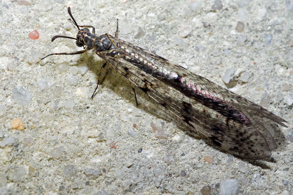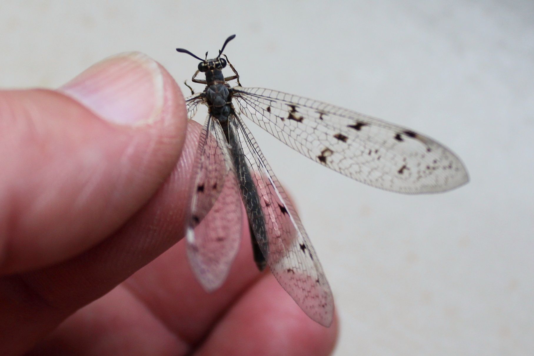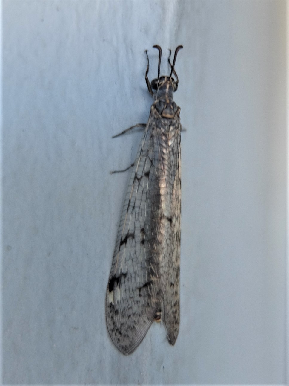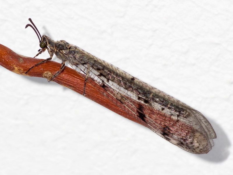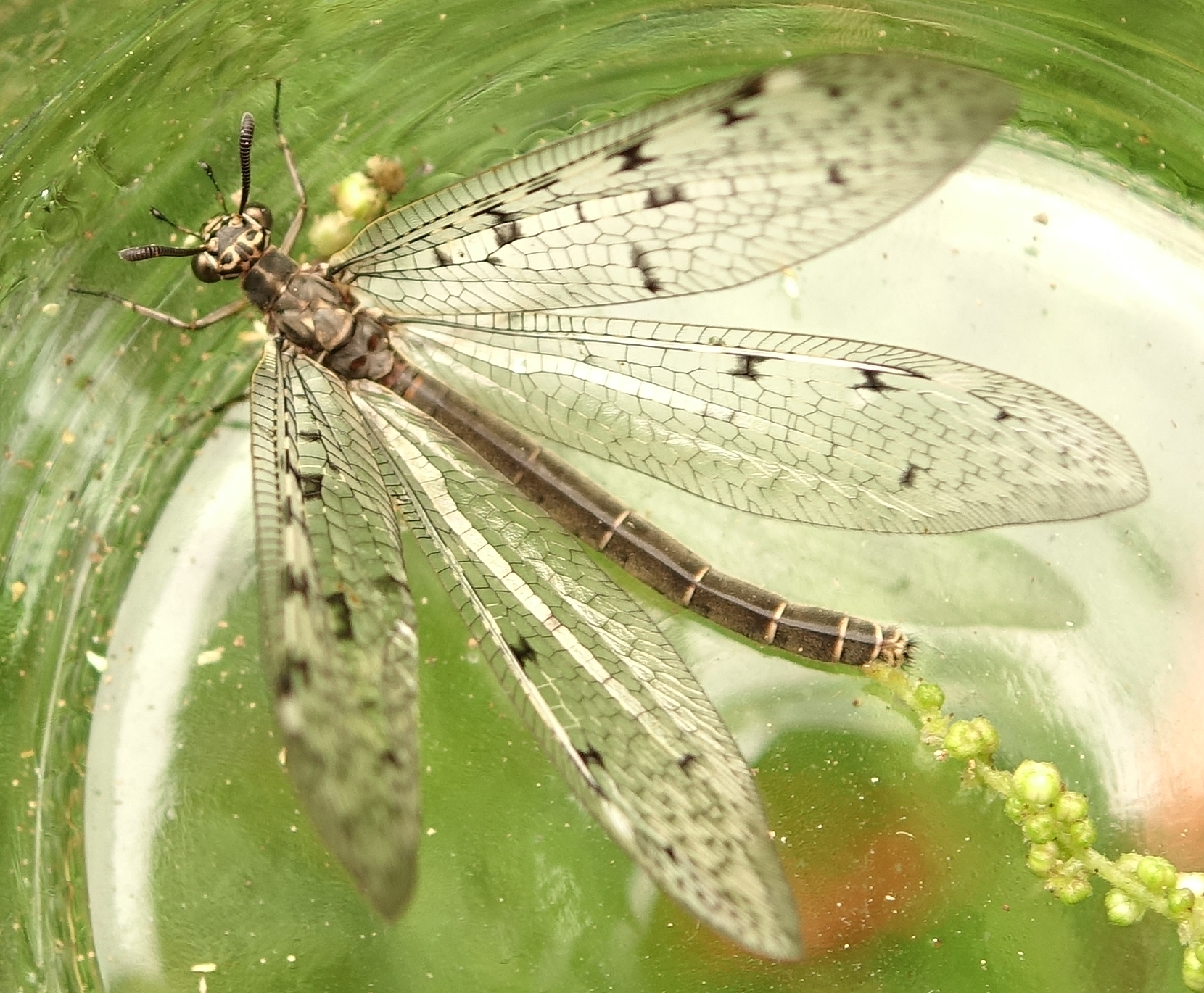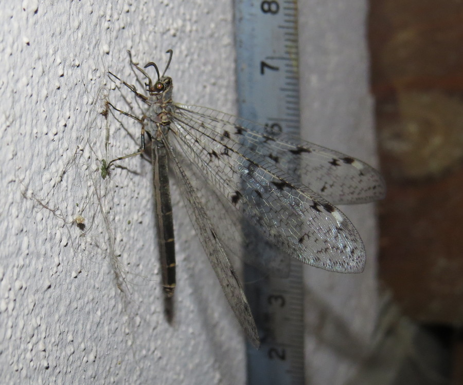 Geflecktflüglige Ameisenjungfer (Euroleon nostras (Geoffroy in Fourcroy, 1785)), Wohngrundstück, 01896 Lichtenberg, Juli 2019.