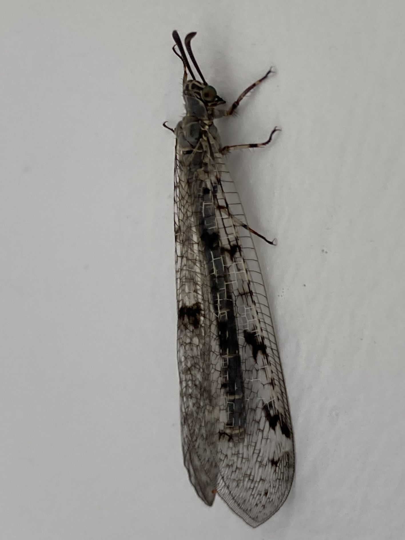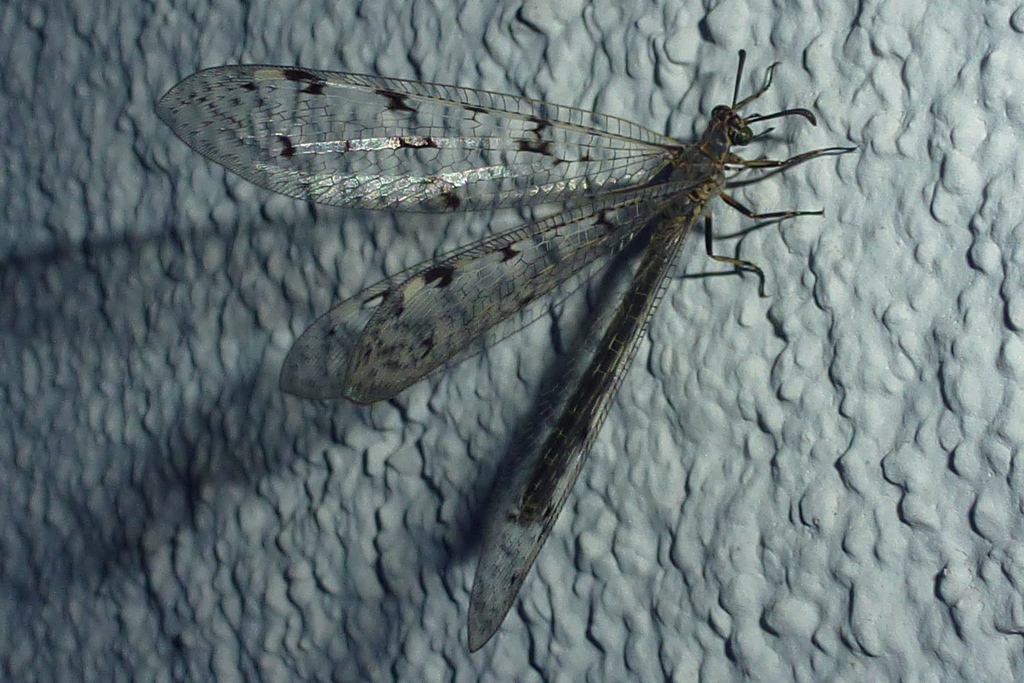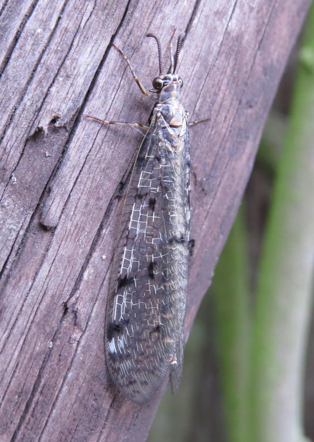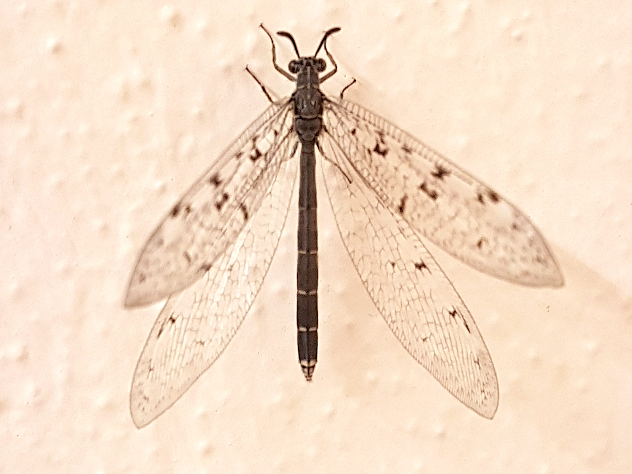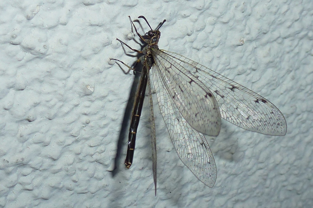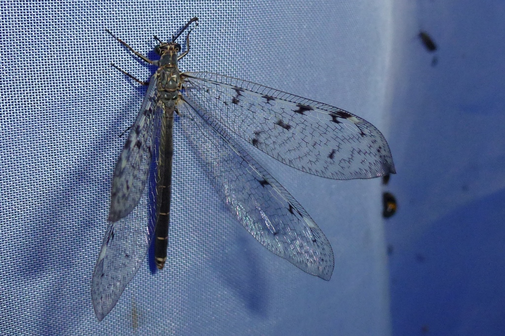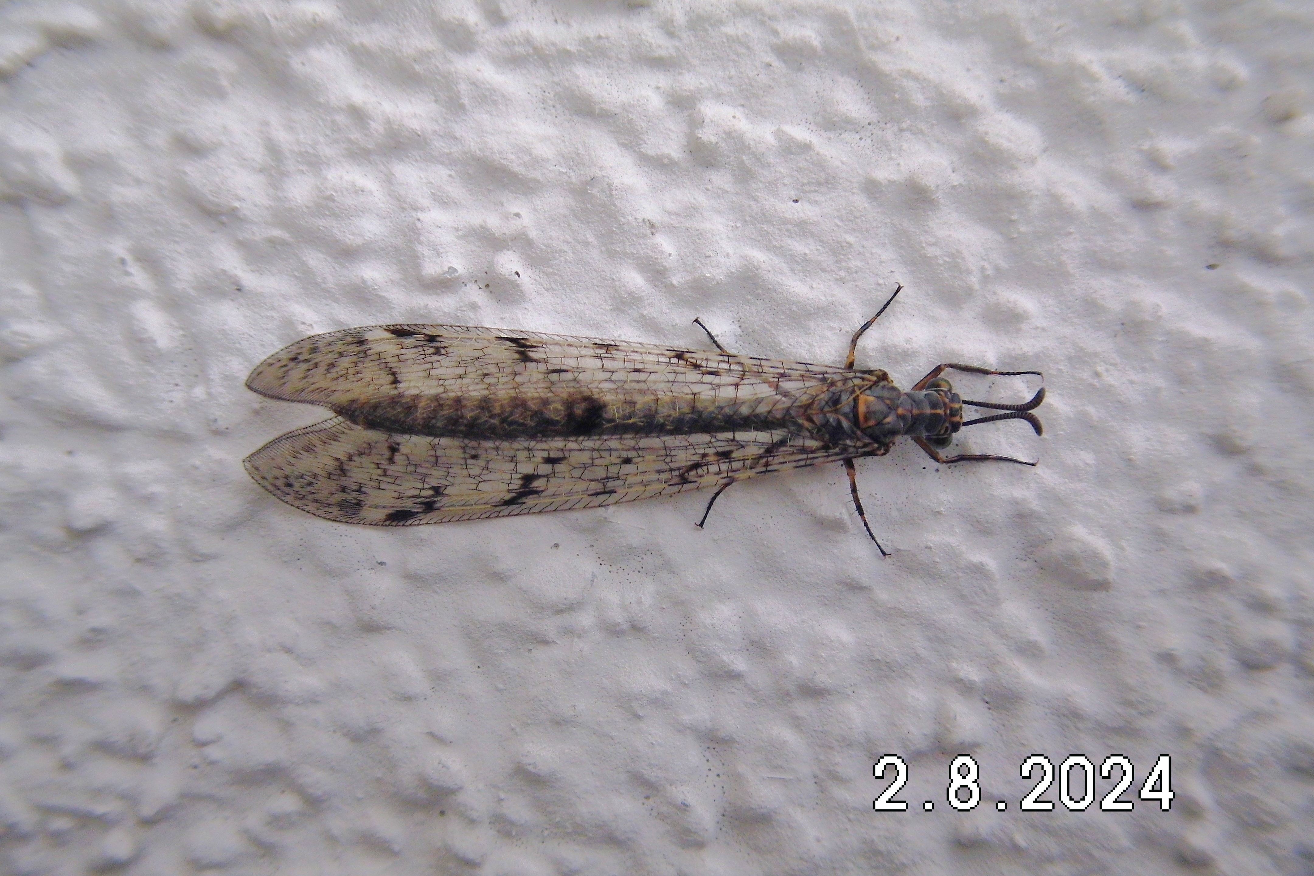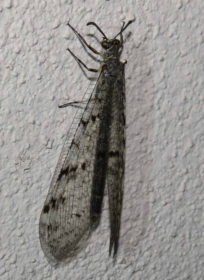 Geflecktflüglige Ameisenjungfer (Euroleon nostras (Geoffroy in Fourcroy, 1785)), Wohngrundstück, 01896 Lichtenberg, Juli 2019.